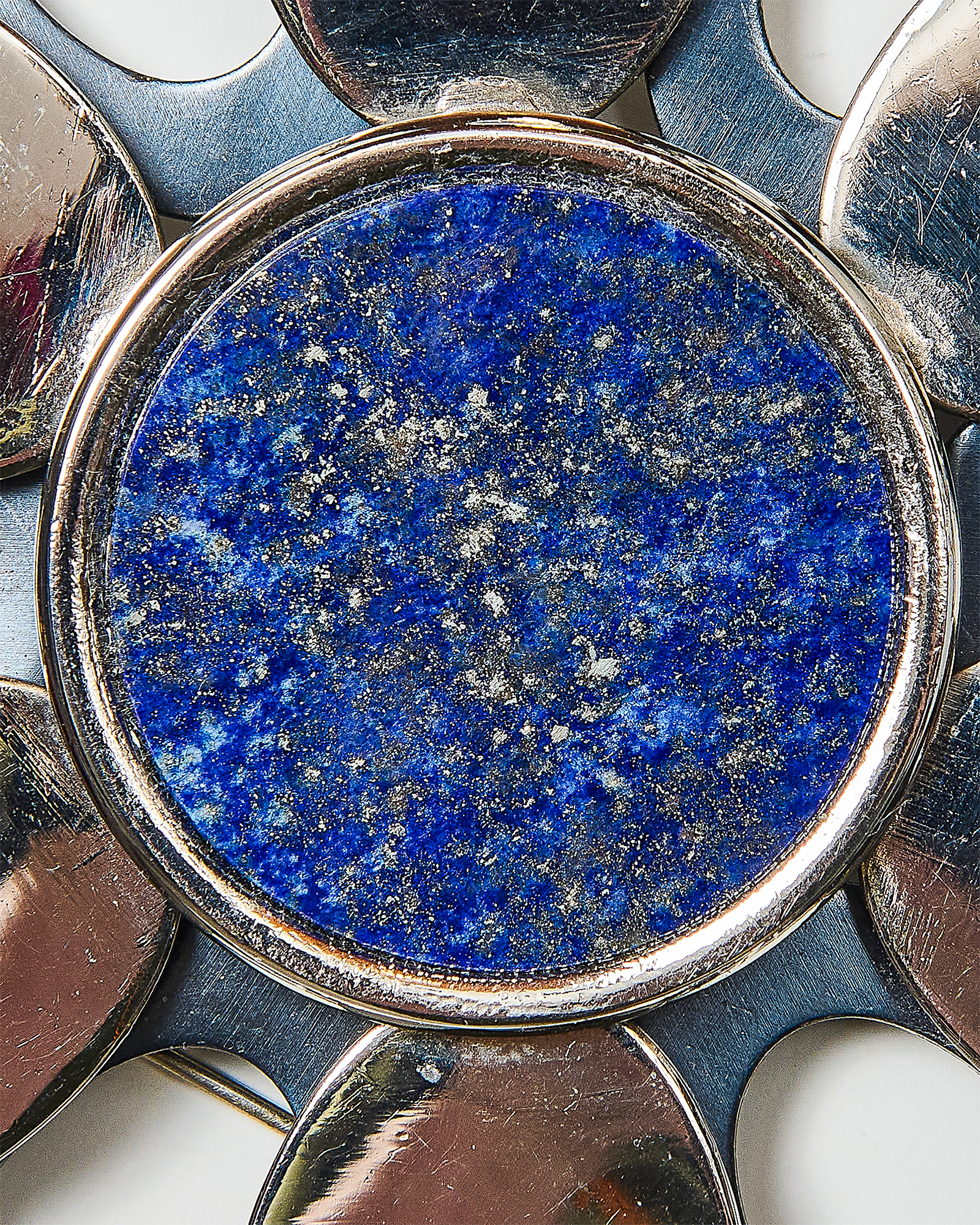 1969 Silver Geometric Choker Necklace with Lapis Stone