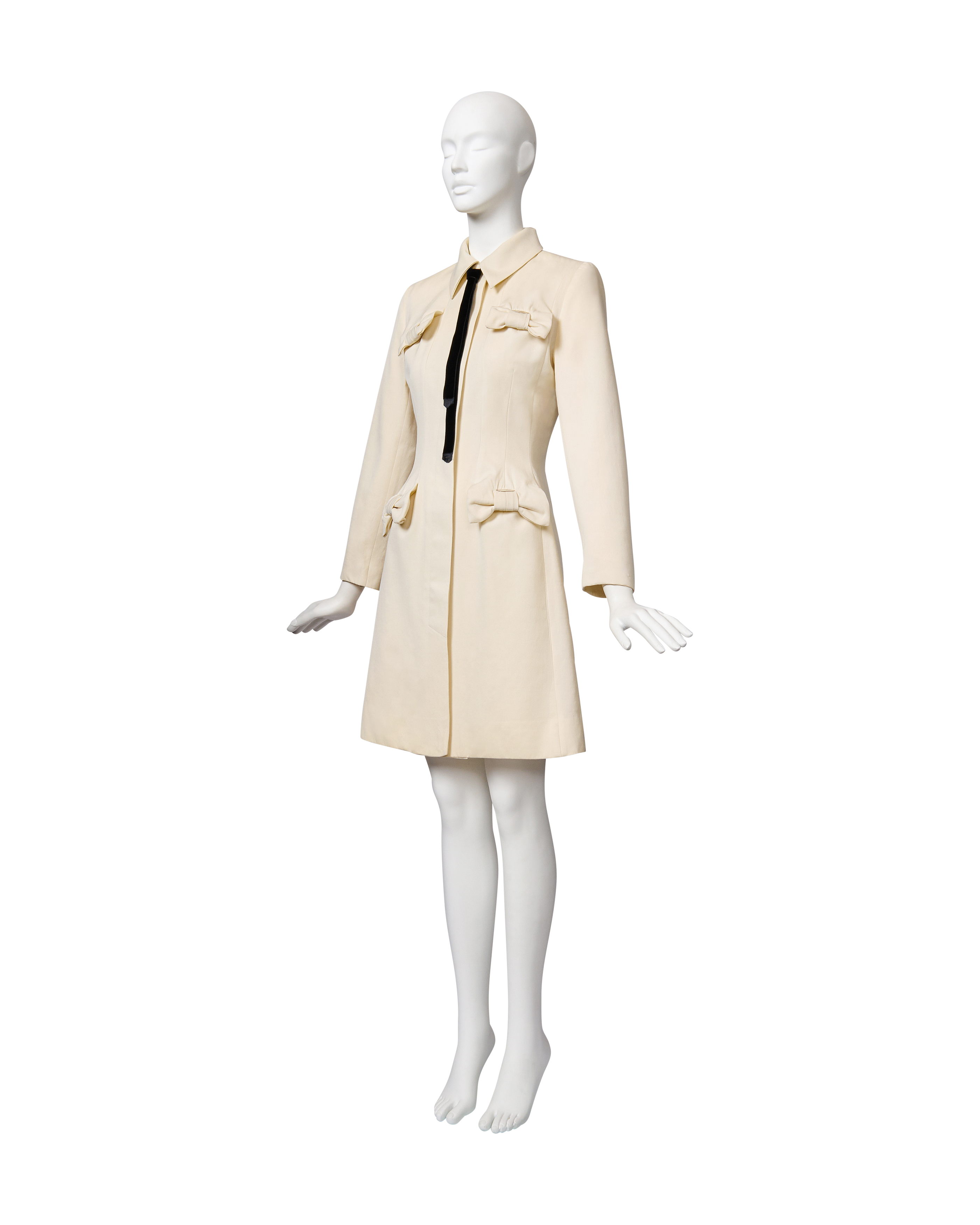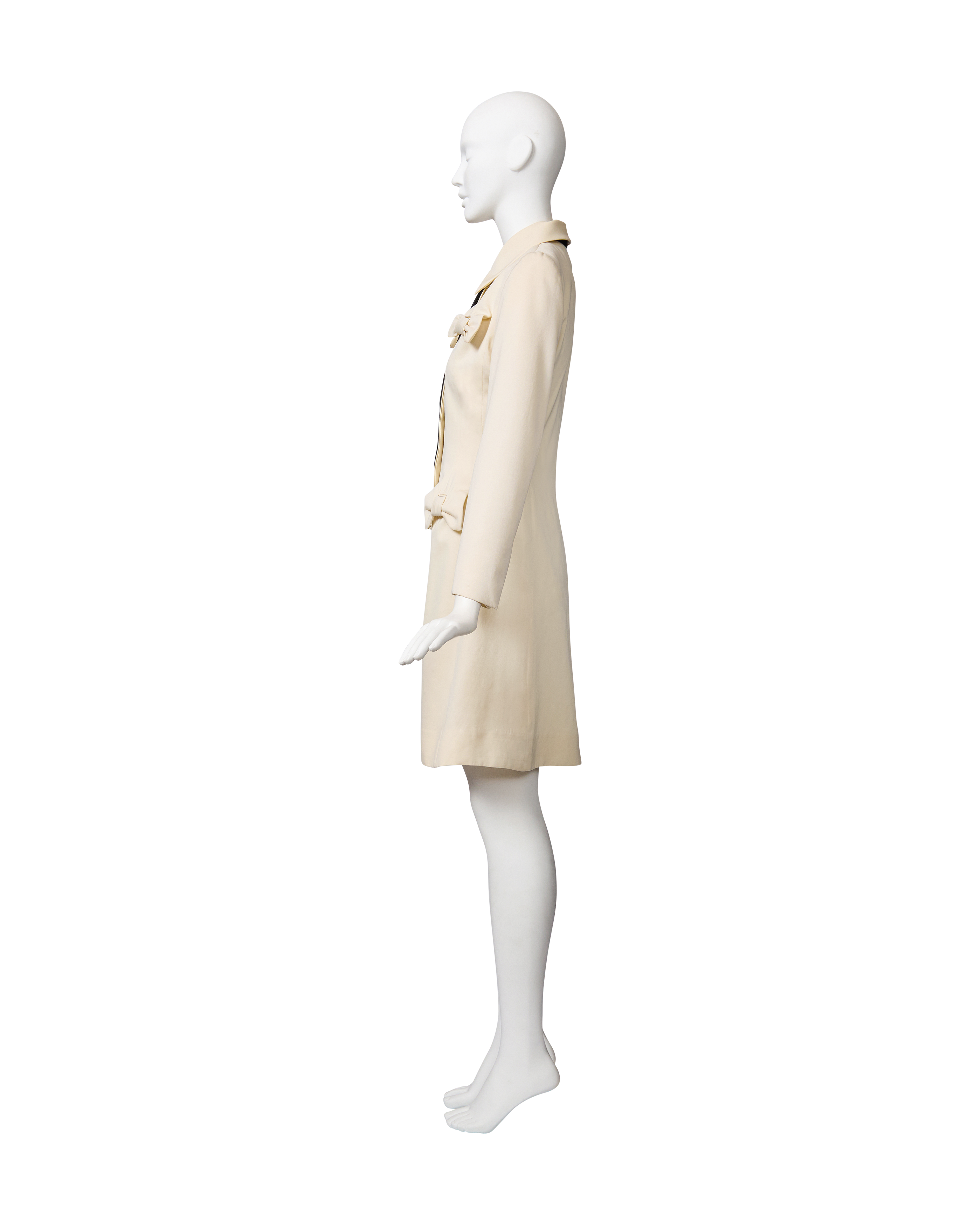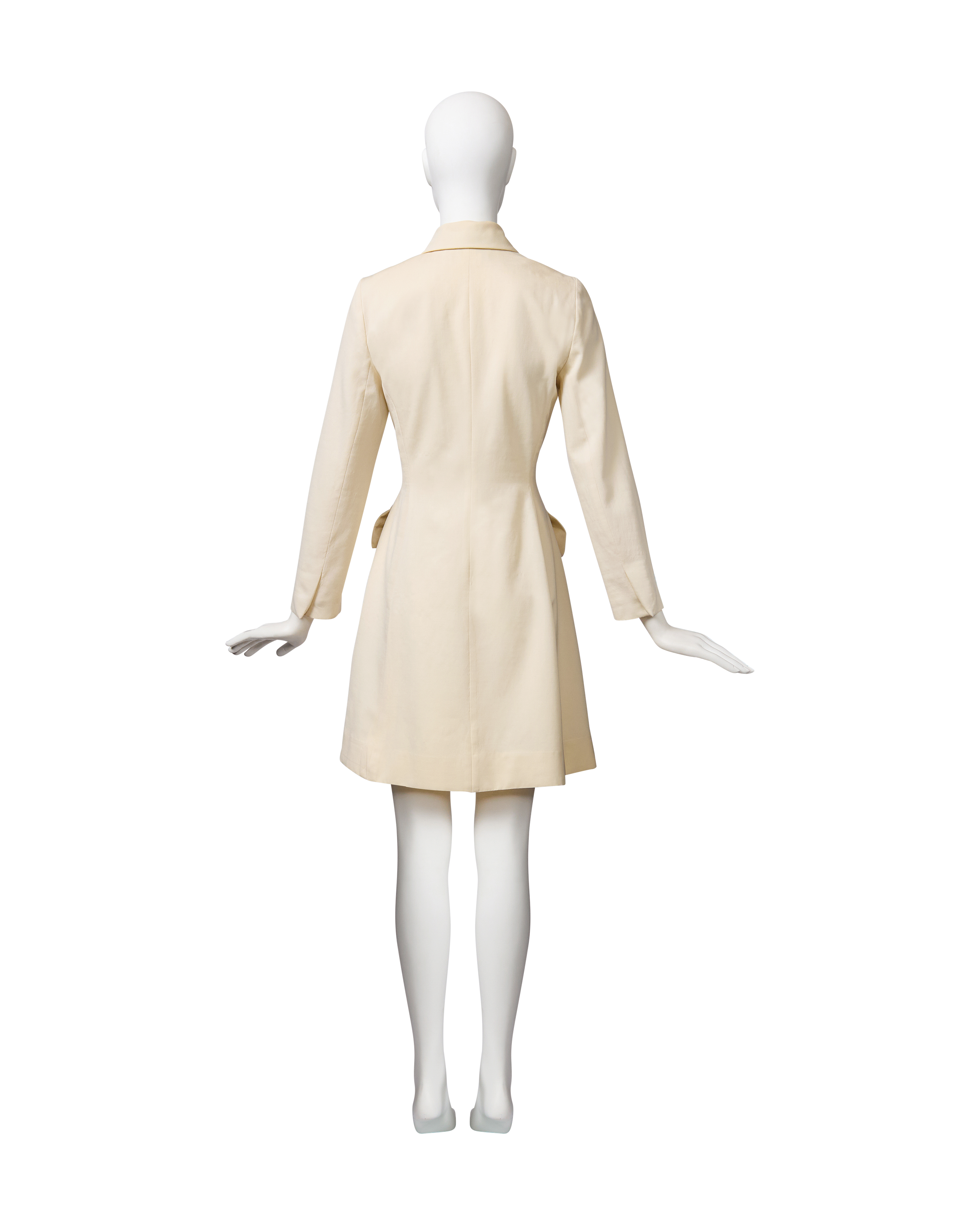 A/W 1996 Ivory Collared Mini Coat Dress with Bow Details