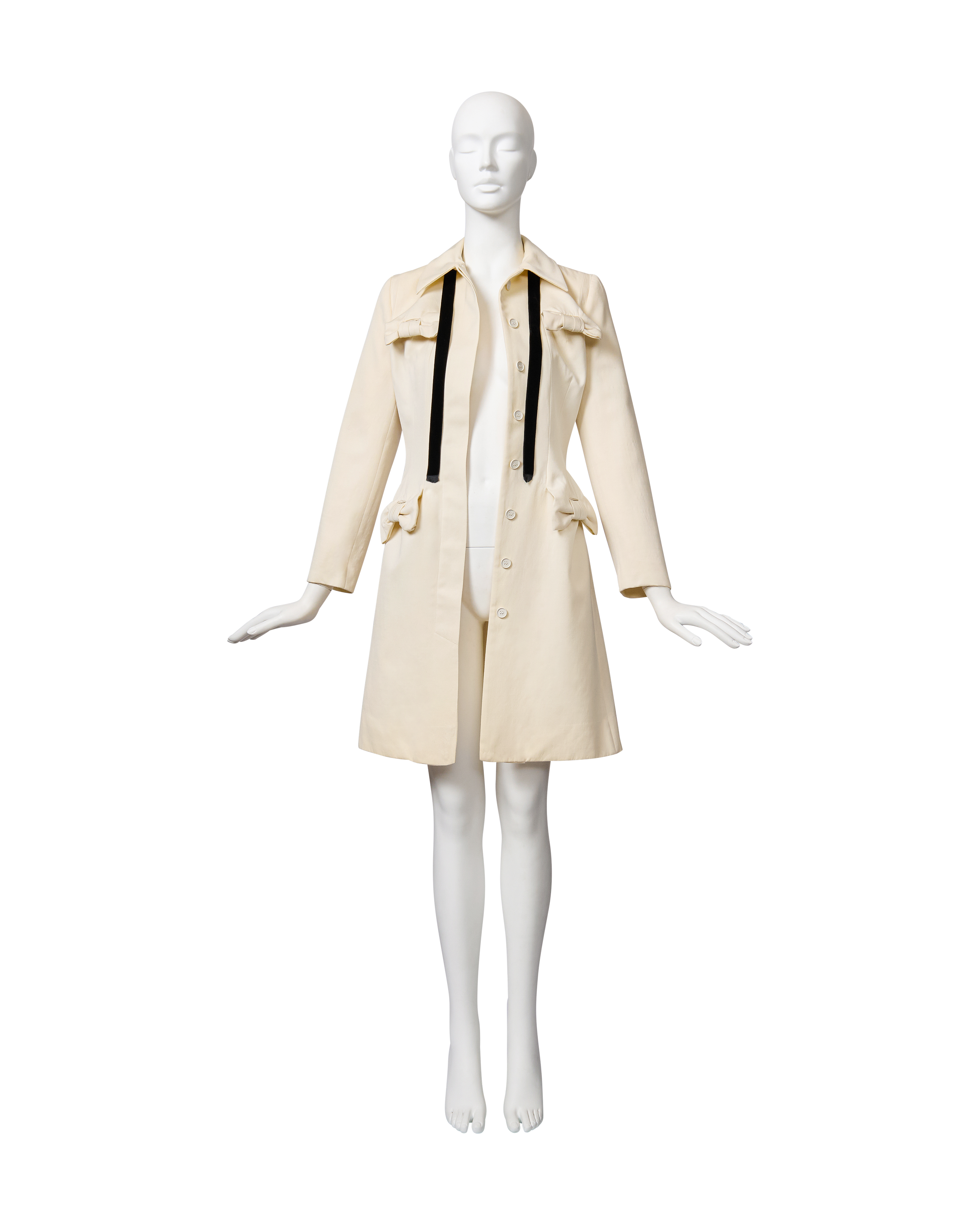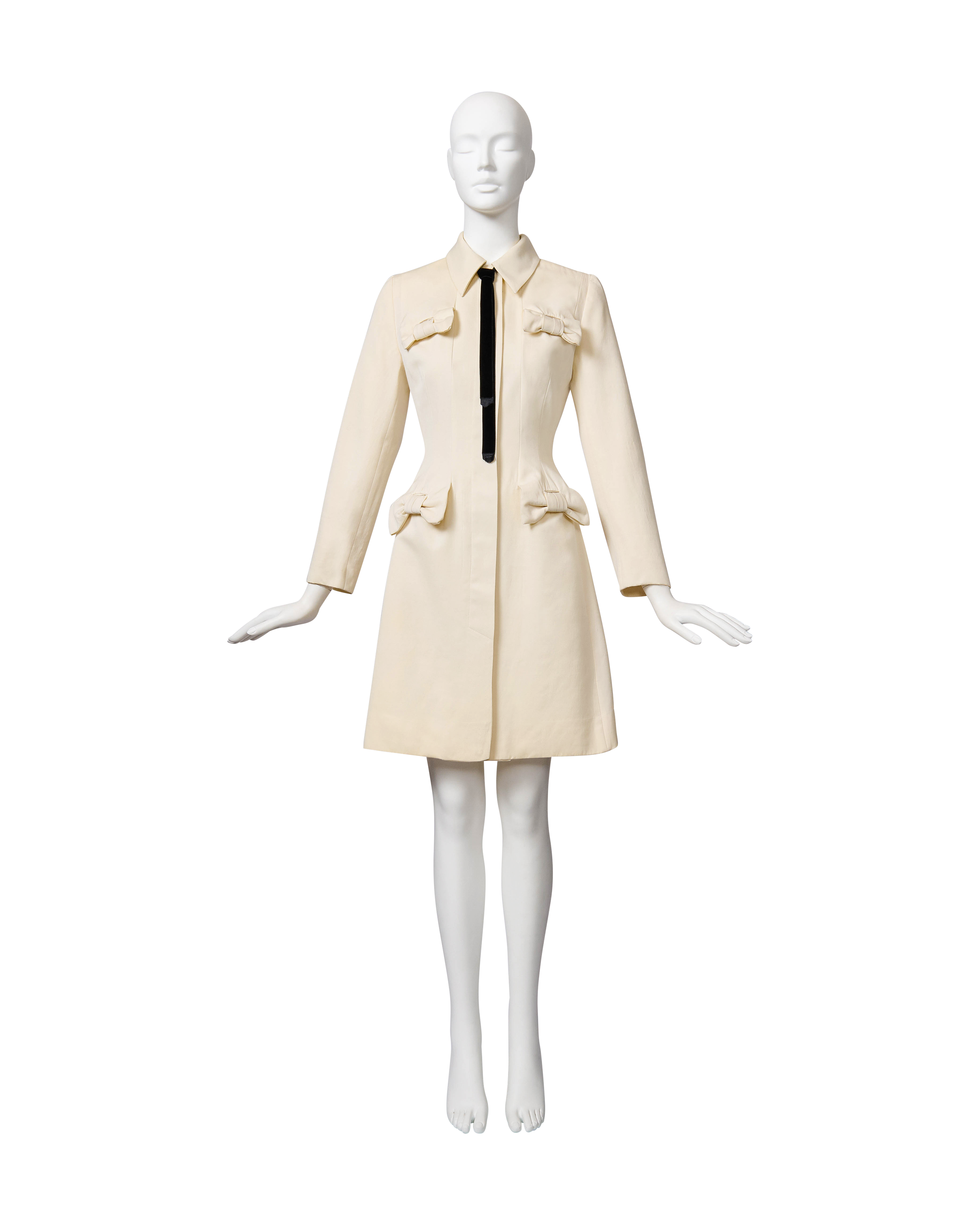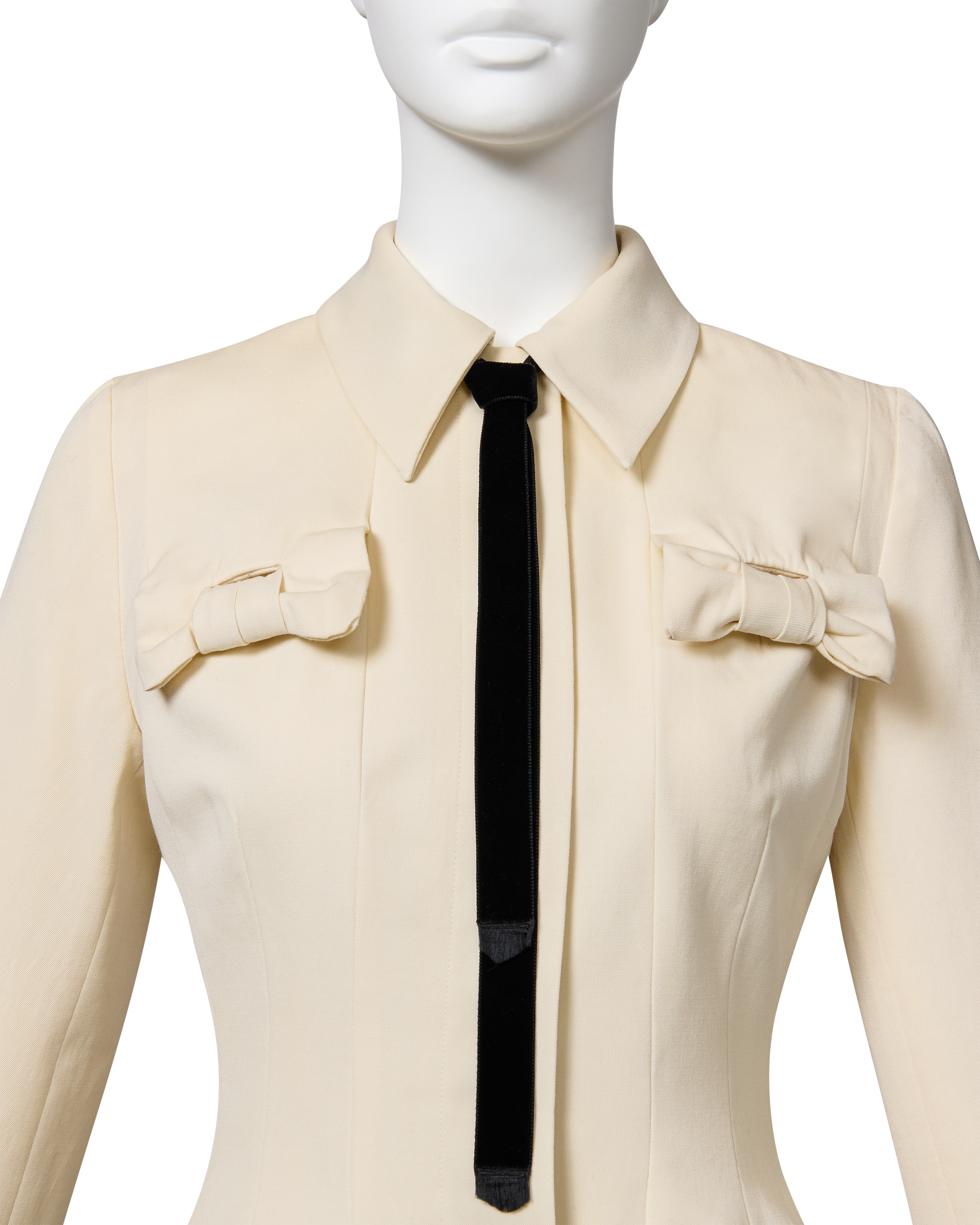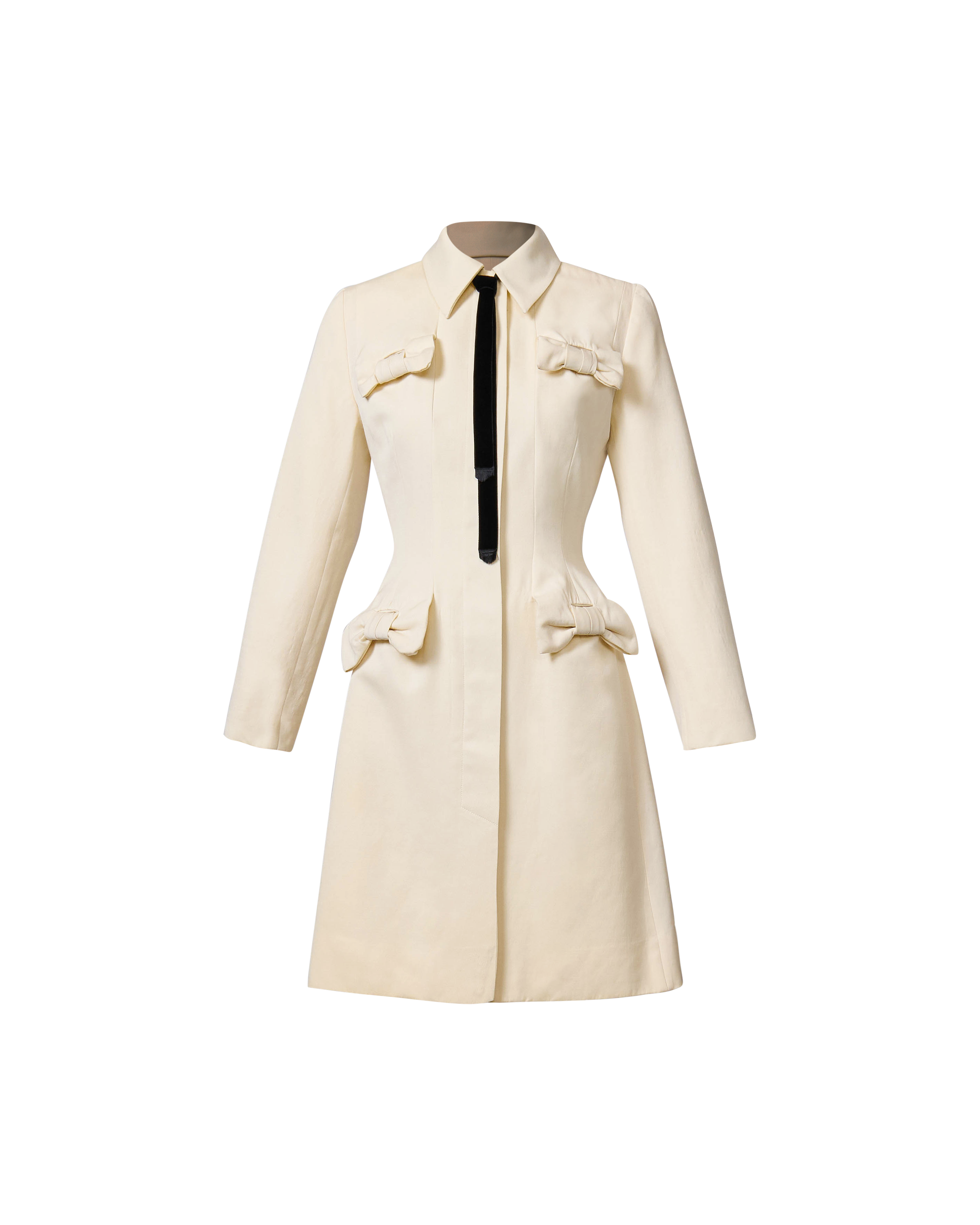 A/W 1996 Ivory Collared Mini Coat Dress with Bow Details