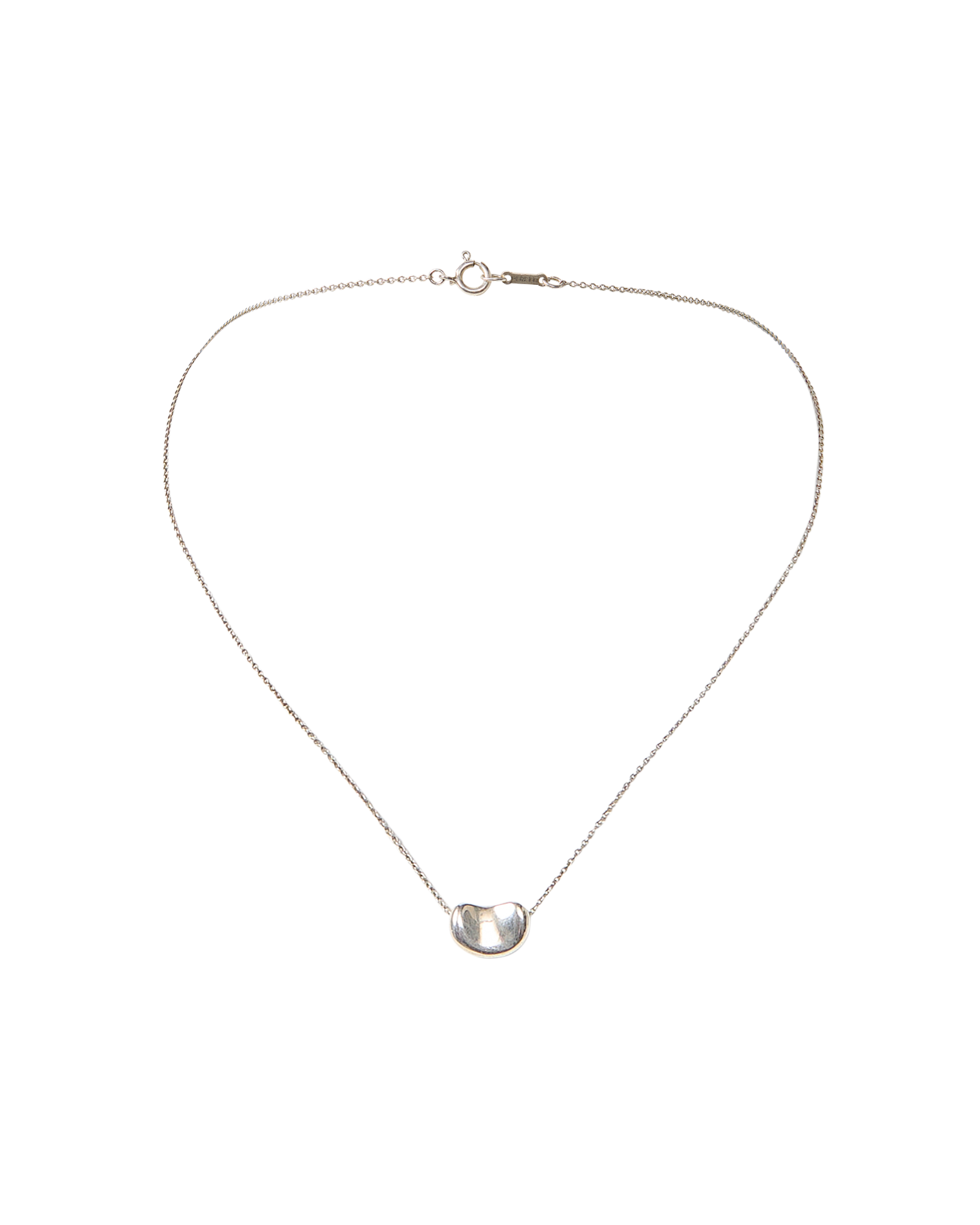1970's Tiffany & Co. x Elsa Peretti Sterling Silver mini 'Bean' pendant necklace. Silver chain necklace with small 'Bean' pendant detail. Sterling Silver (marked 925). In very good vintage condition with light wear throughout. Comes with original Tiffany & Co. small dust bag and box.