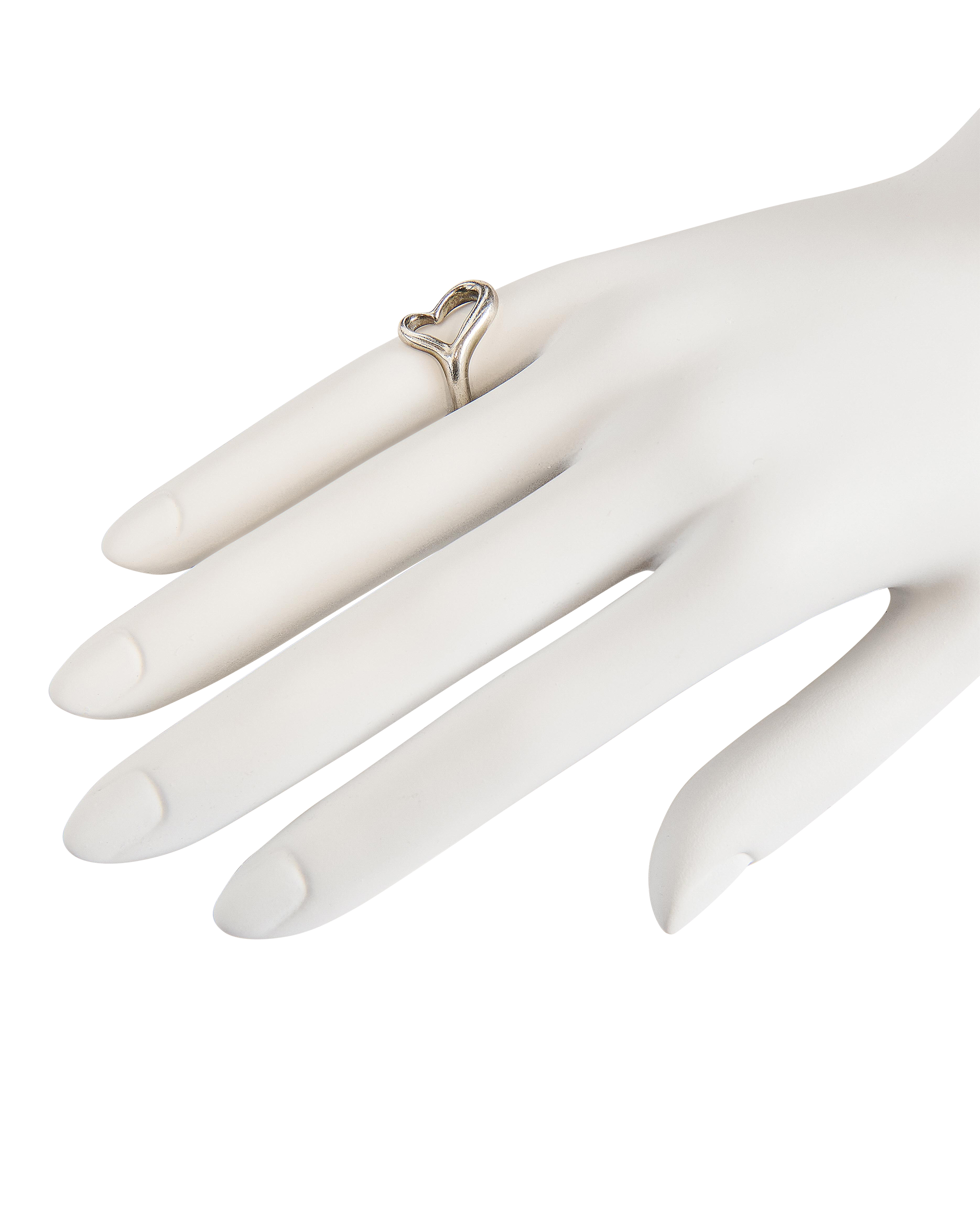 1970's Elsa Peretti for Tiffany & Co. Sterling Silver heart wrap ring. Wrap-around ring with open heart. Sterling Silver (marked 925). In very good vintage condition with light wear throughout.