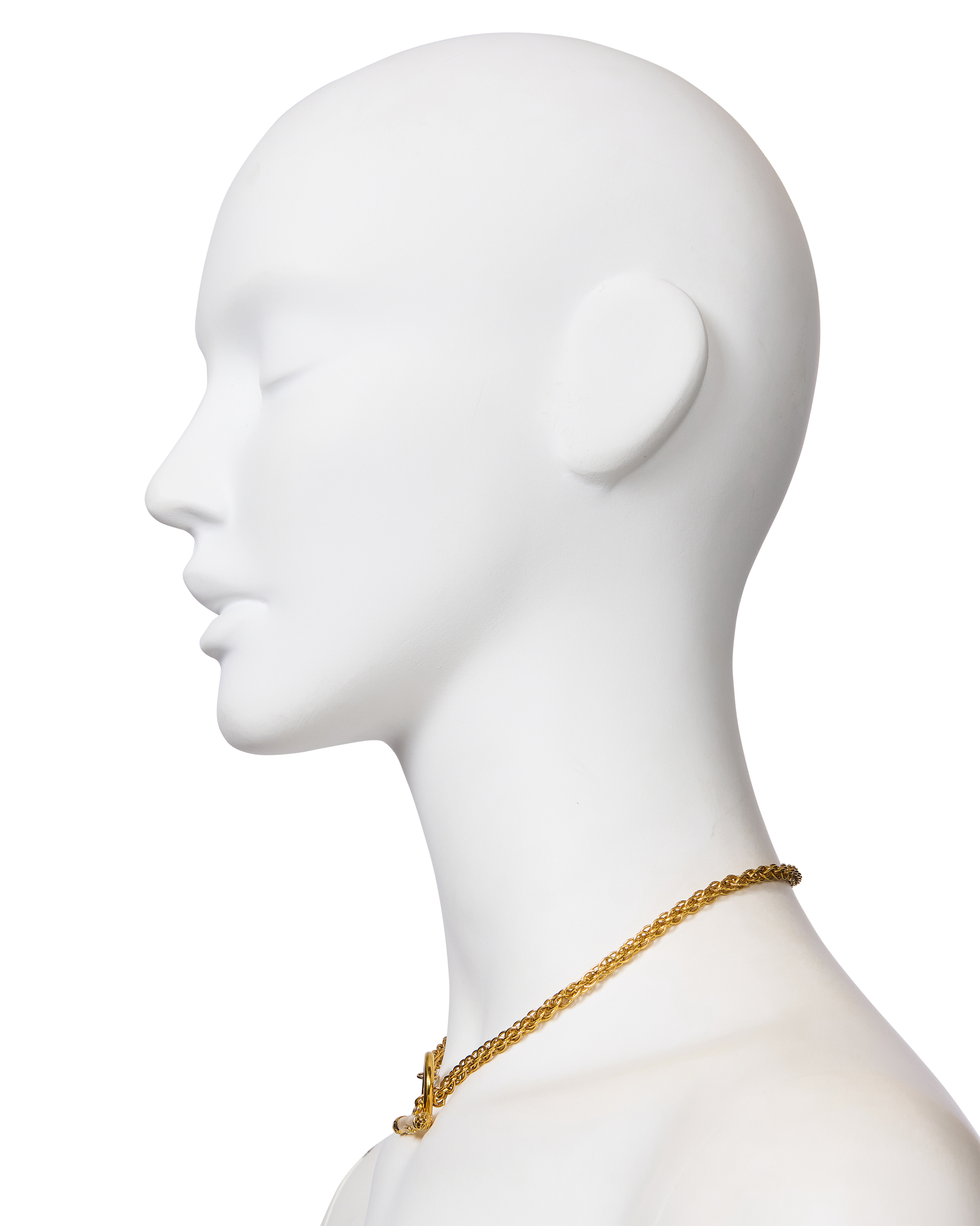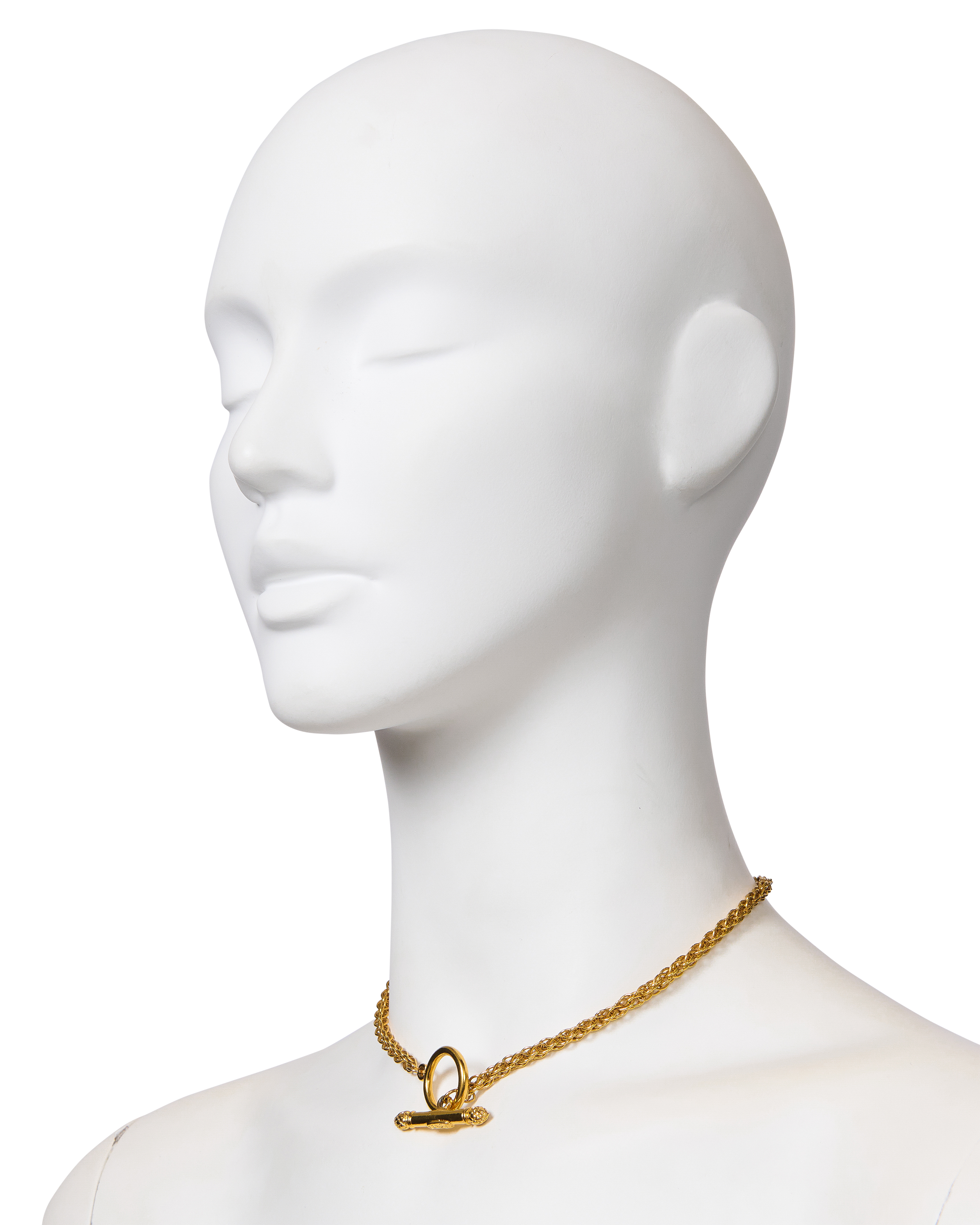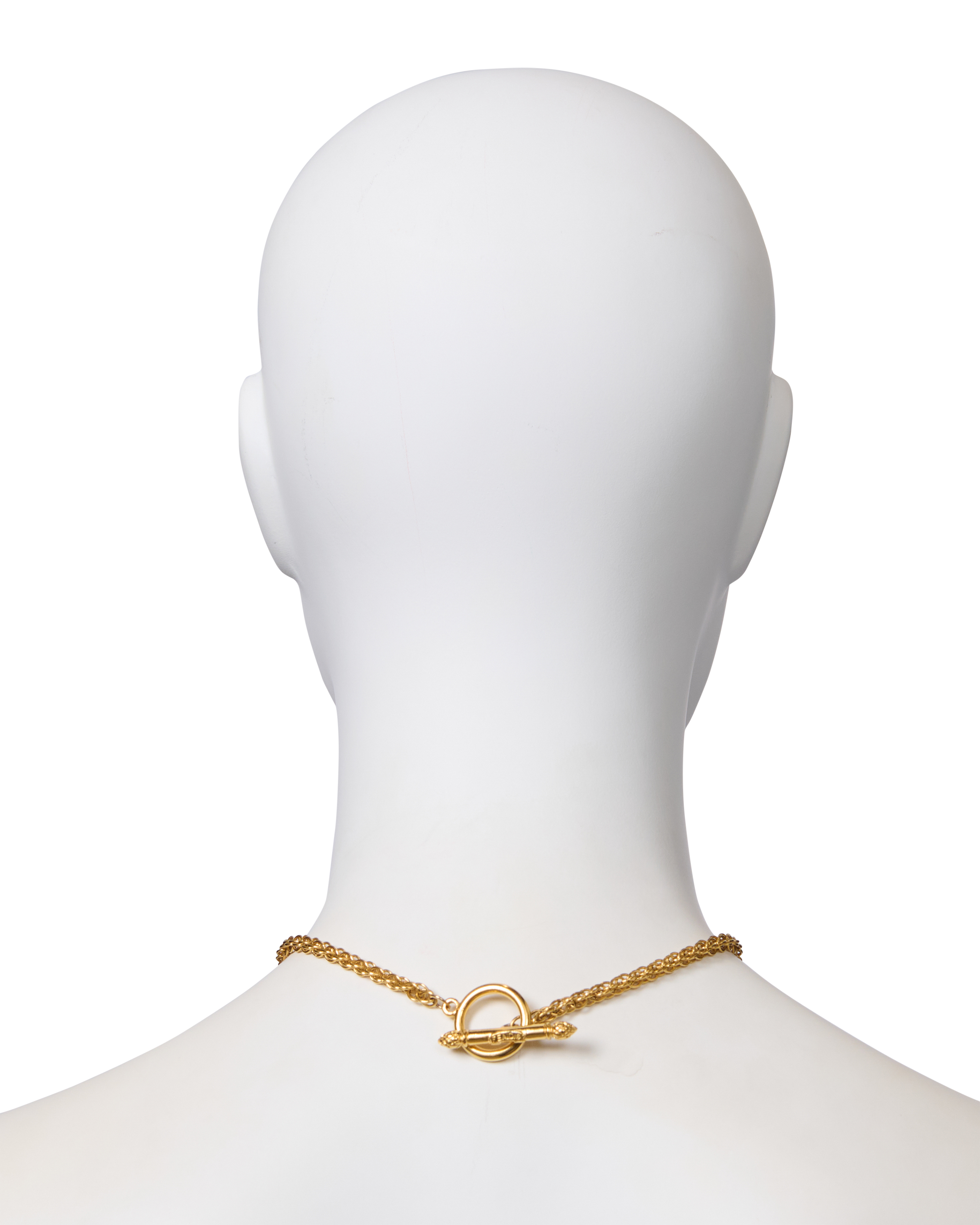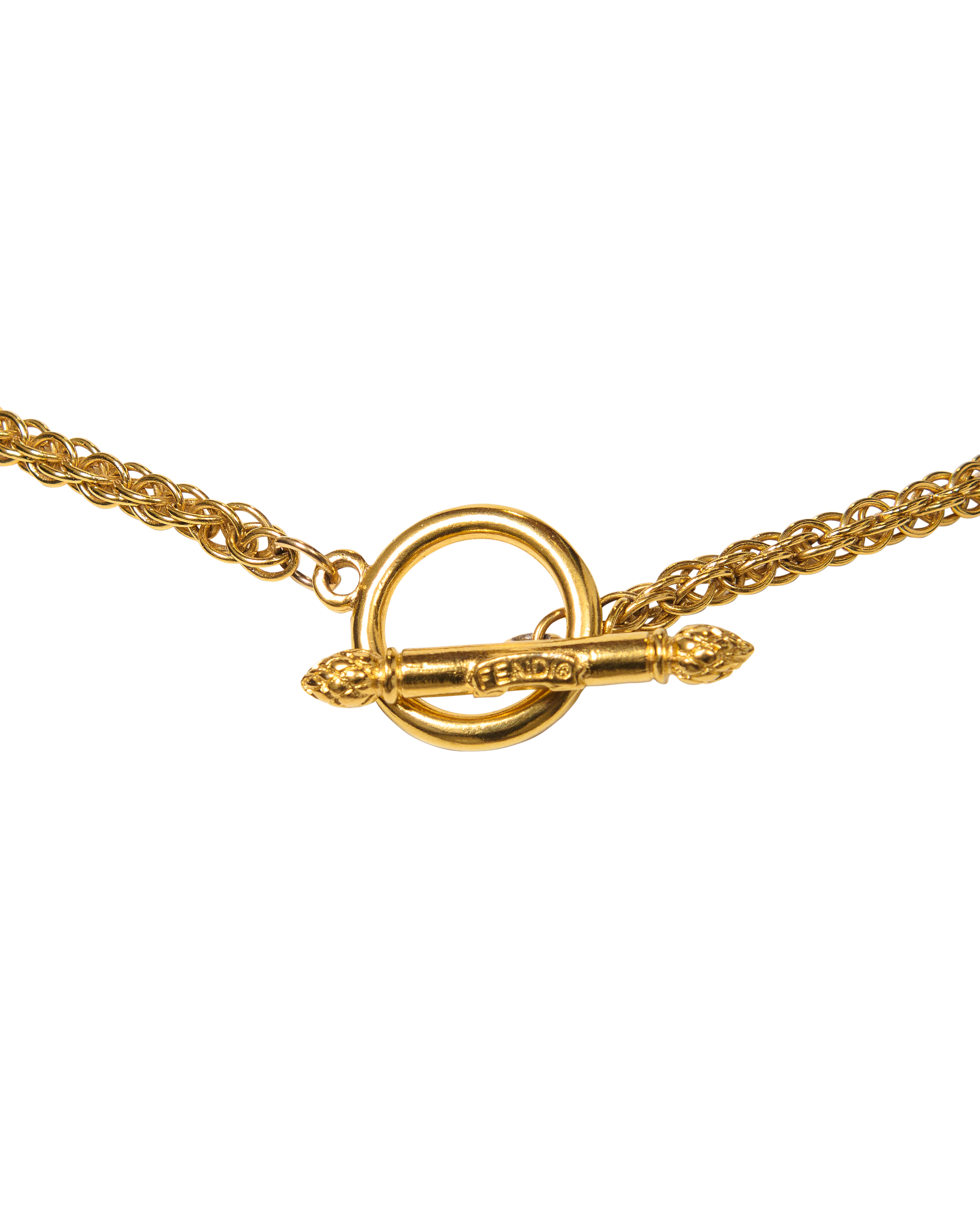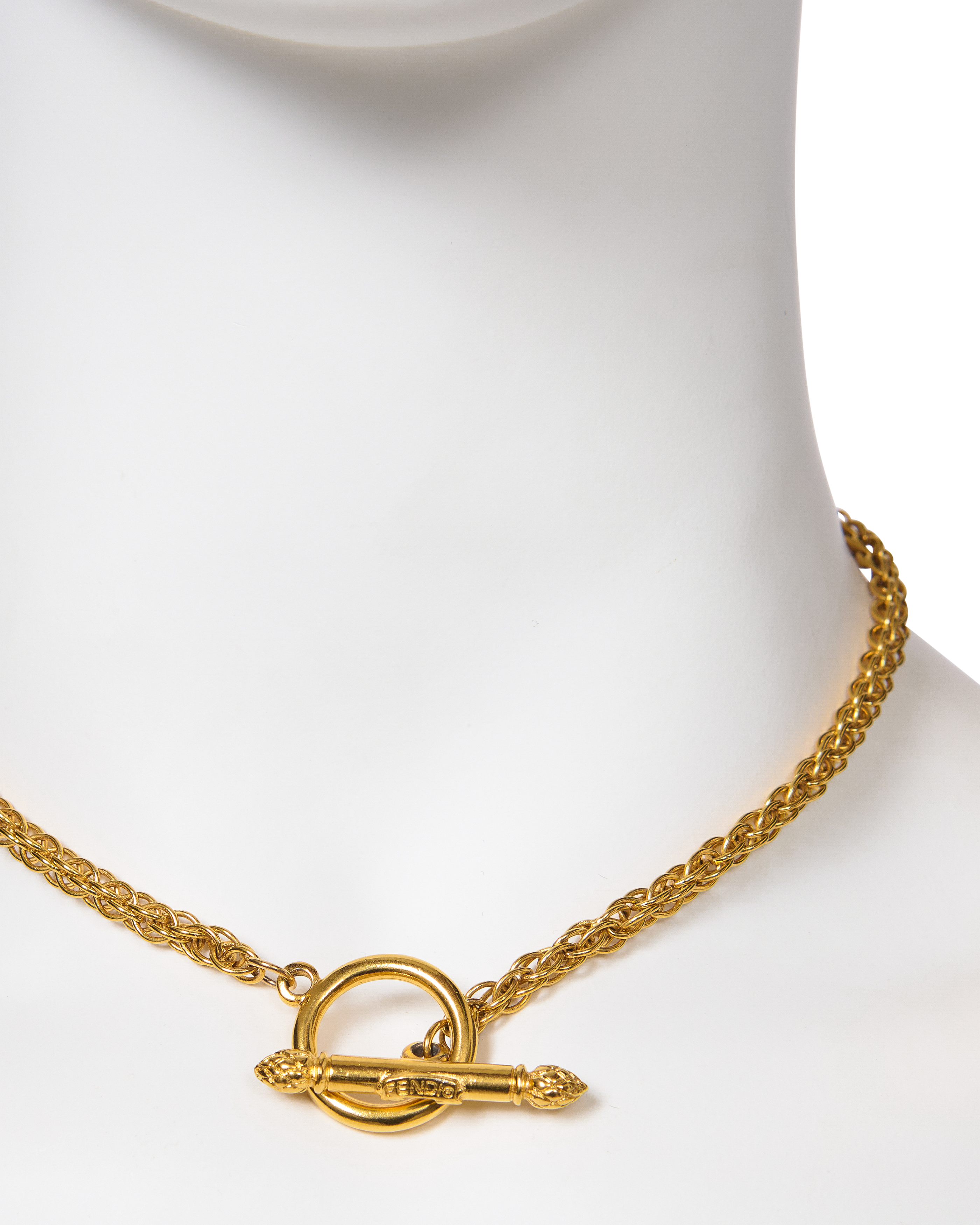 1990's FENDI by Karl Lagerfeld gold-tone toggle chain choker necklace. Gold chain necklace with toggle chain back or front decorative closure (can be styled either way as desired). In very good vintage condition with light wear throughout.