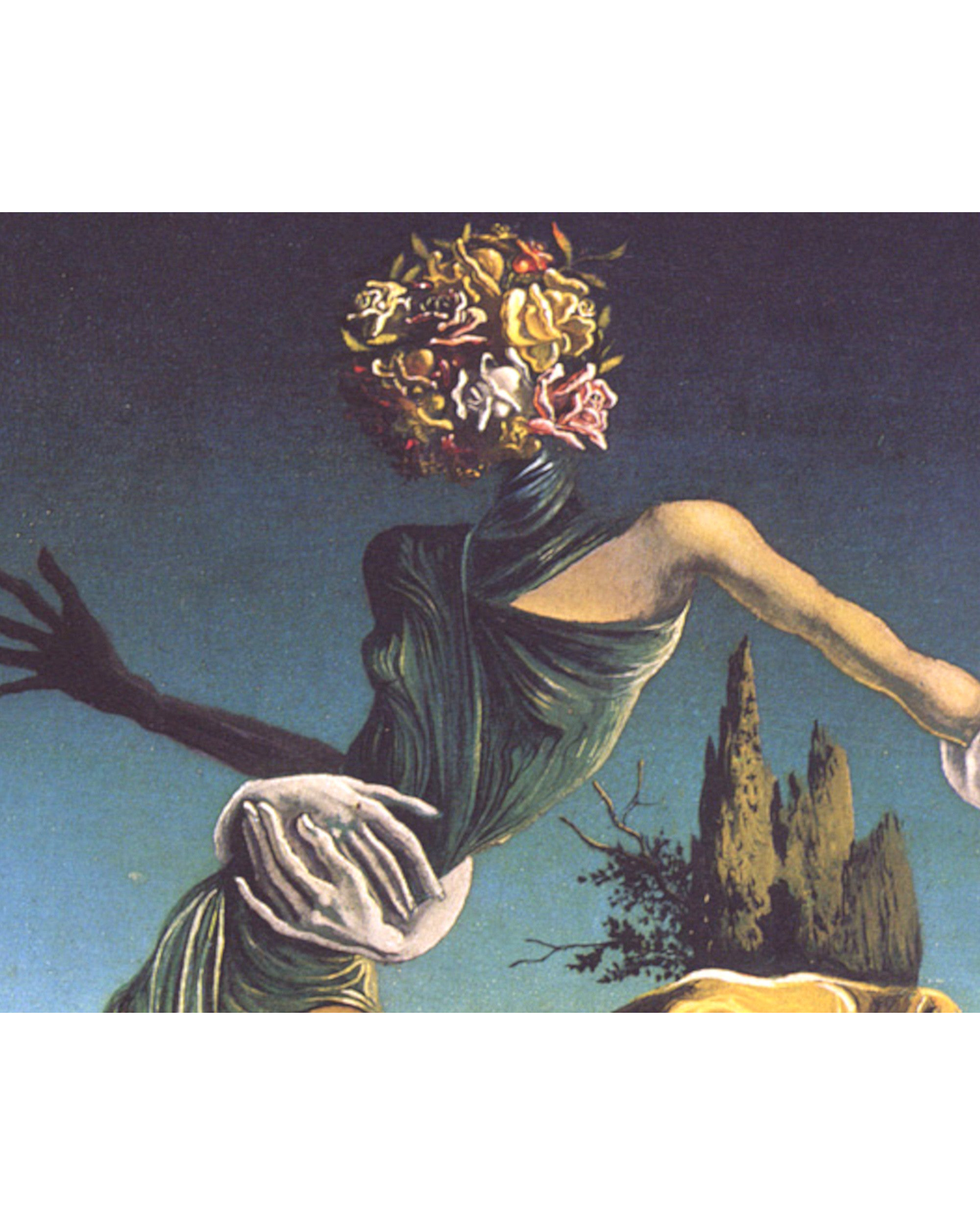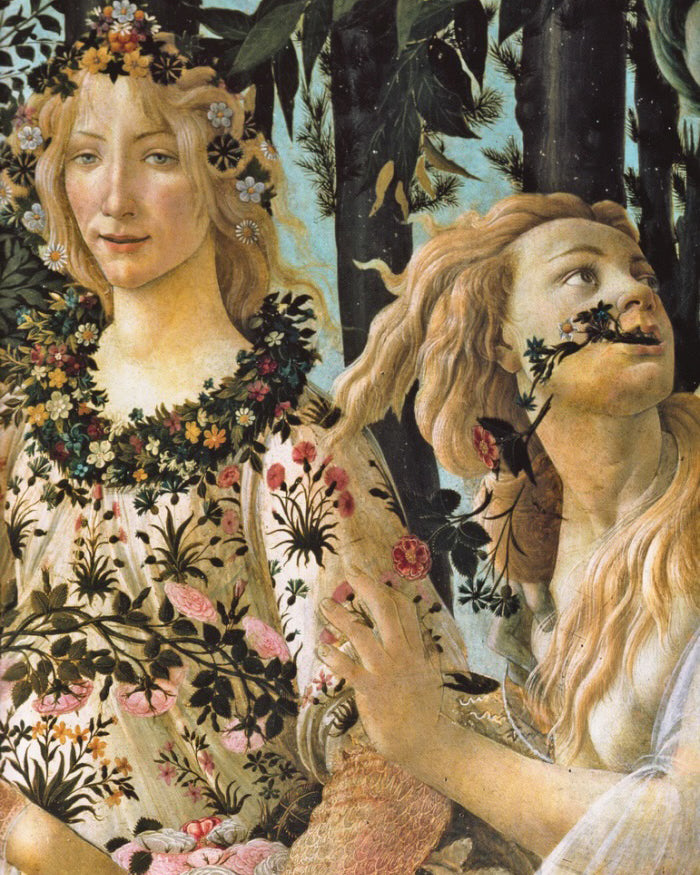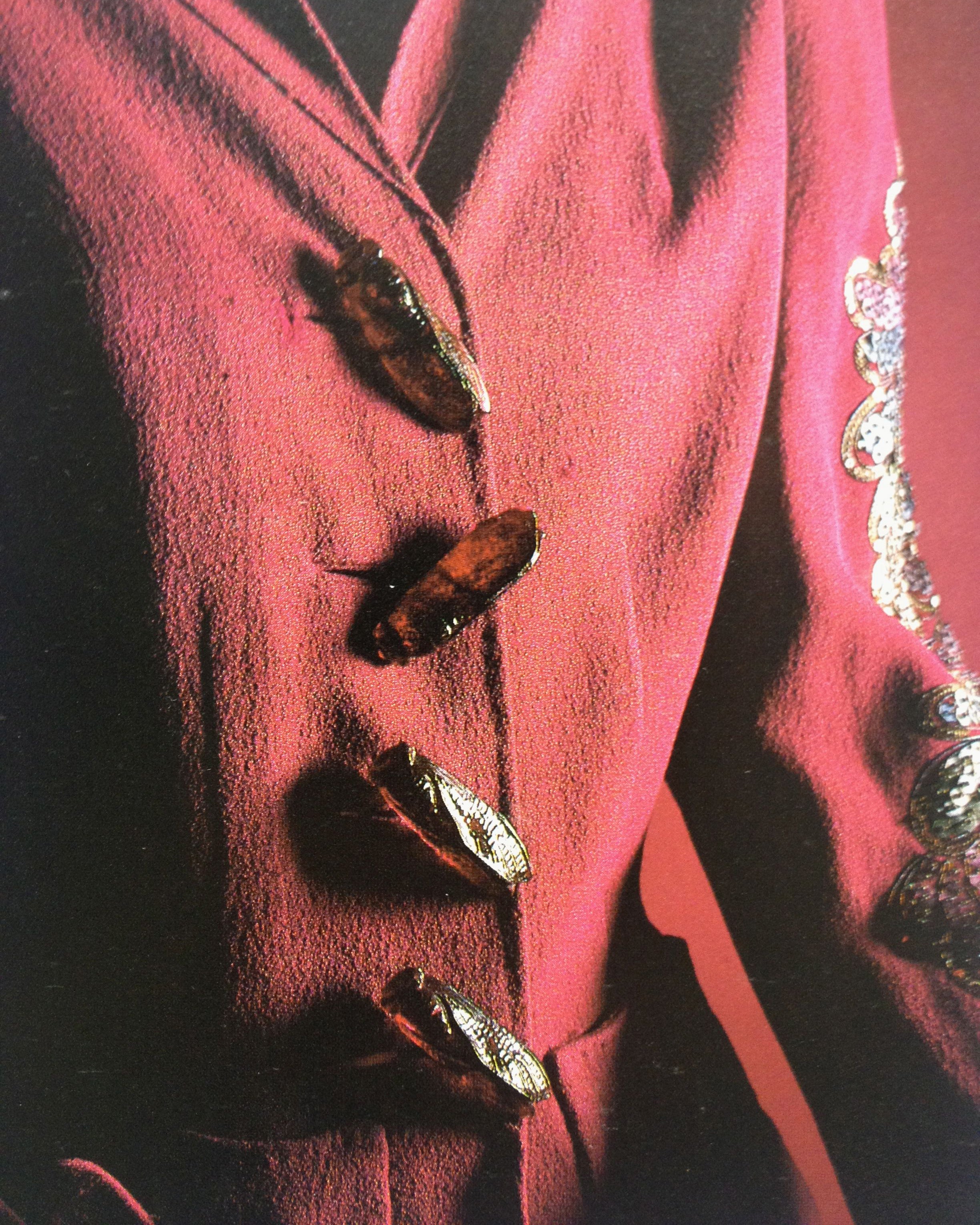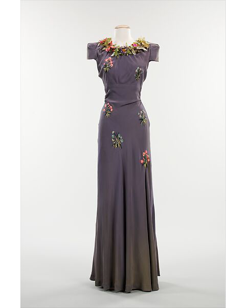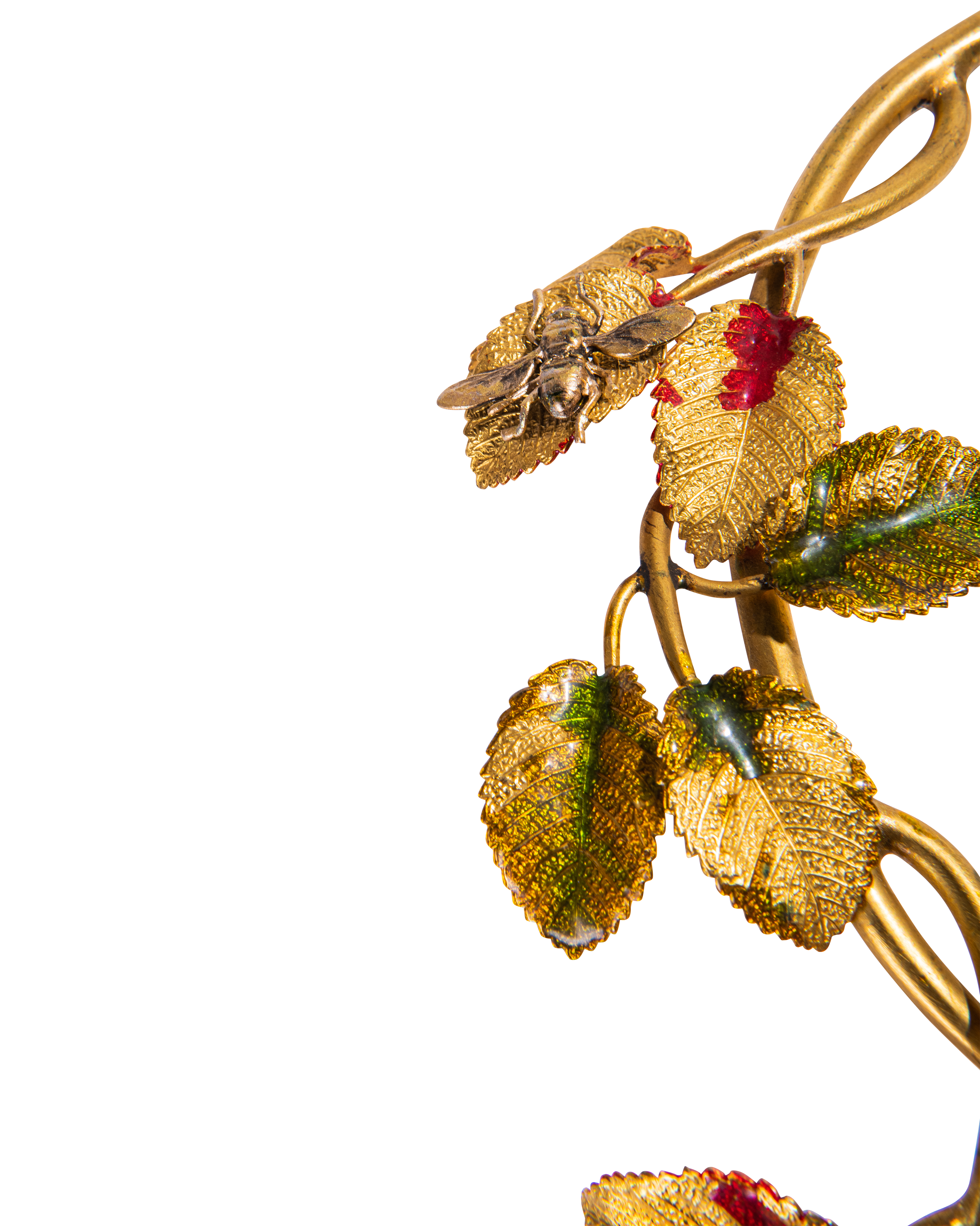 Of their own necklace from the same collection, the Met Museum describes: "Schiaparelli's fall 1938 collection was rife with references to flora and fauna, inspired by the Renaissance painter Sandro Botticelli's lush depictions of spring, specifically in 'The Birth of Venus' and 'Primavera'...Coined the 'pagan' collection, motifs such as insects, leaves and flowers were in abundance as embroidery, buttons and jewelry, such as this beautifully crafted one-of-a-kind necklace. Artistically rendered in enameled gilt metal...the insect is a subtle masterful Schiaparelli touch that would likely only be noticed on second glance, giving a surreal tone to this otherwise glistening and naturalistic ornamental piece."