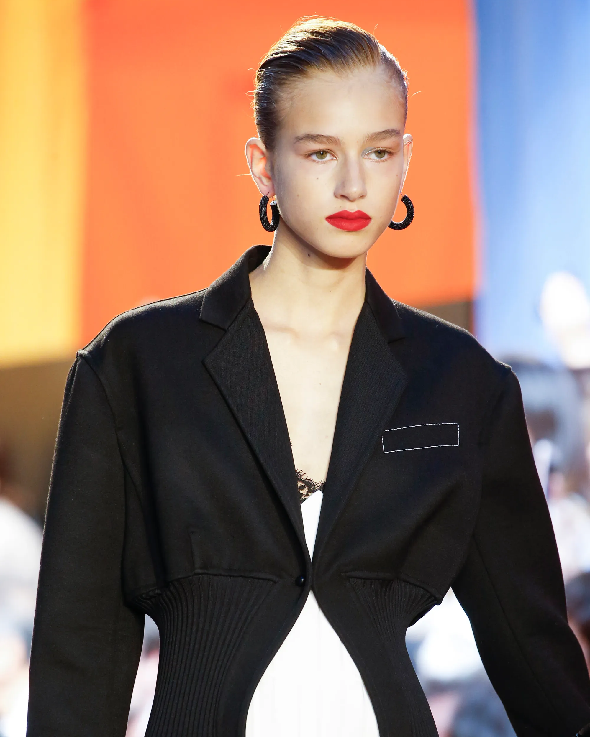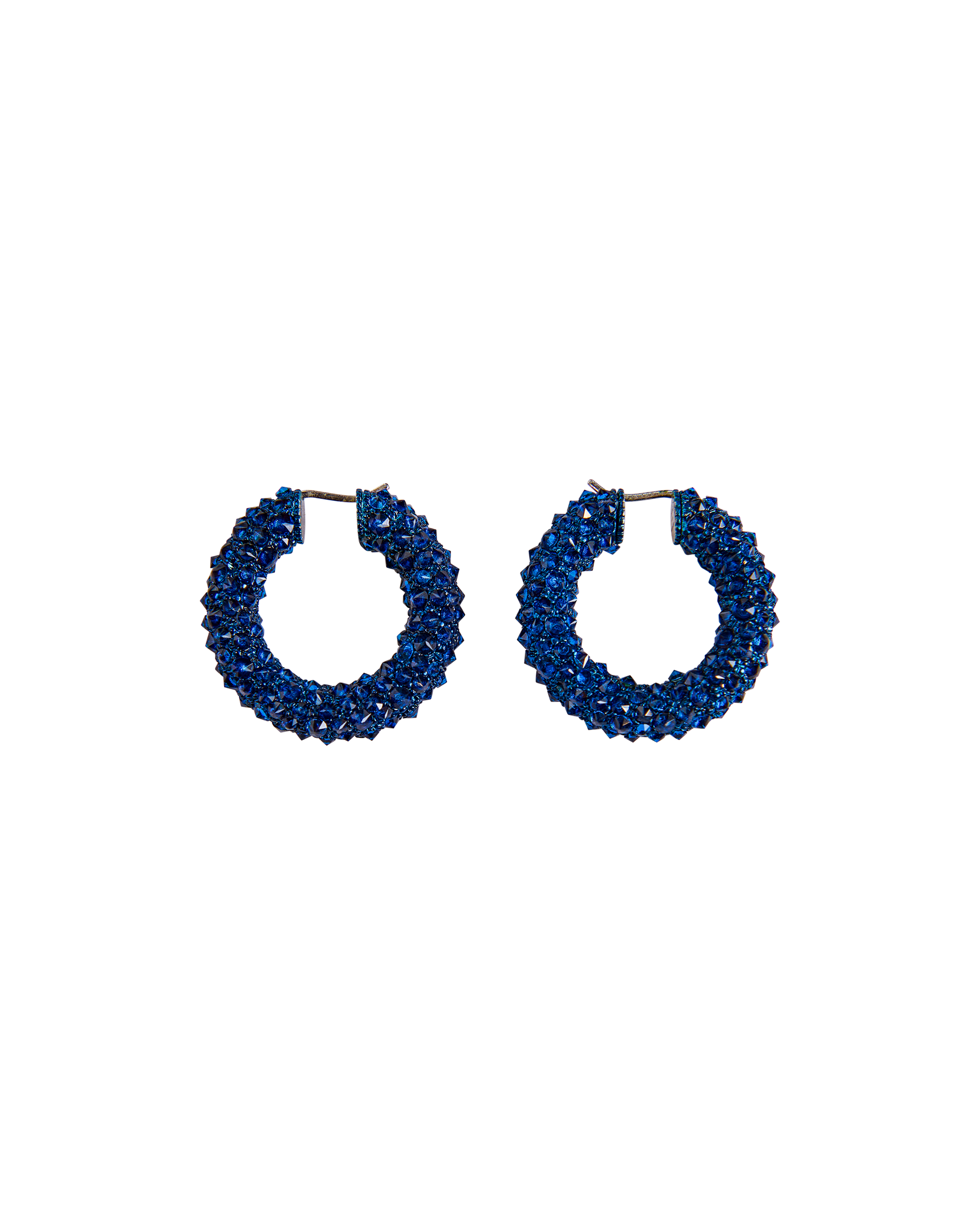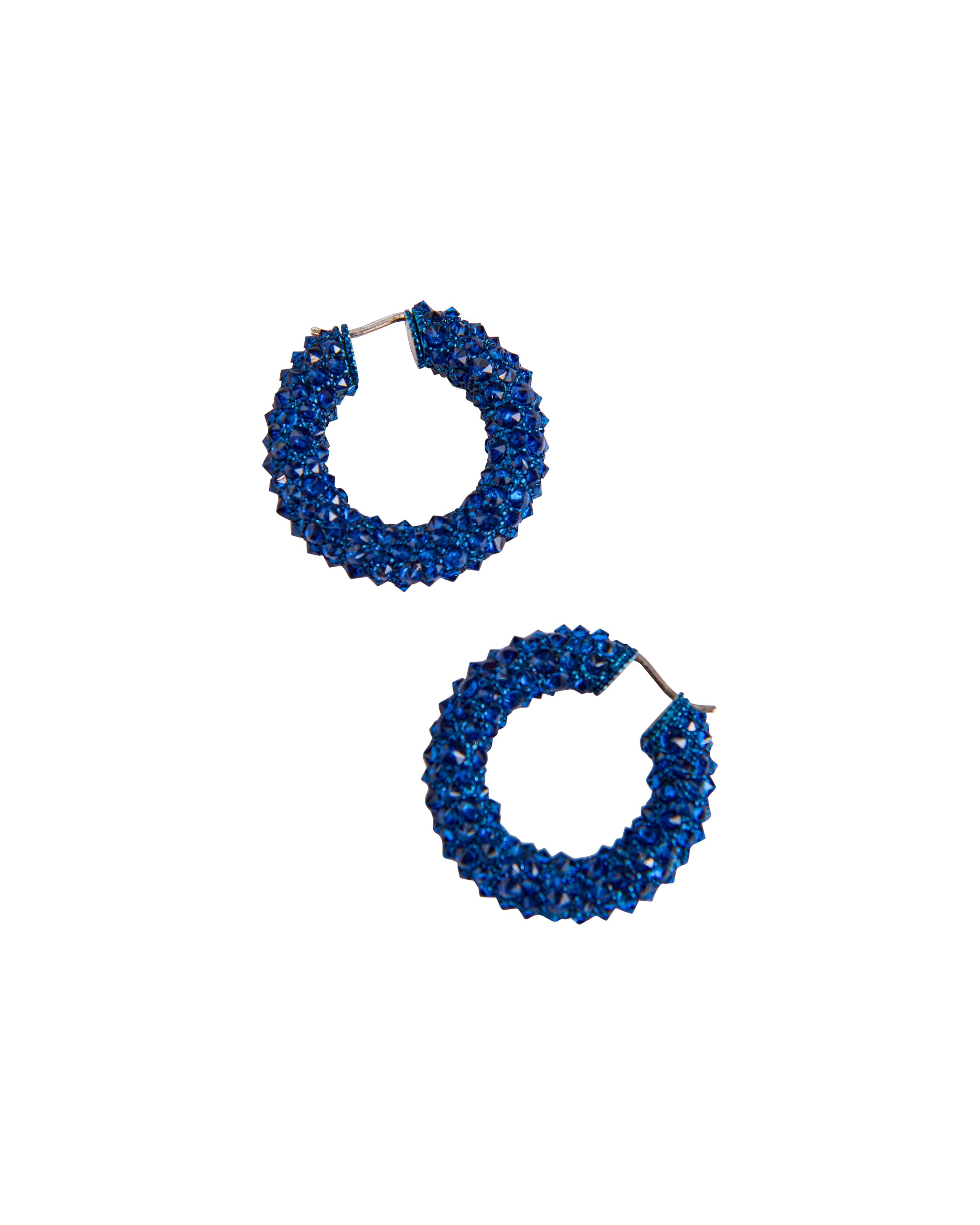 A/W 2018 Céline by Phoebe Philo (Old Céline) blue crystal hoop earrings. Sliver-tone and vibrant blue crystal earrings. Similar featured in the lookbook. In very good vintage condition with very light wear throughout (unnoticeable when worn).