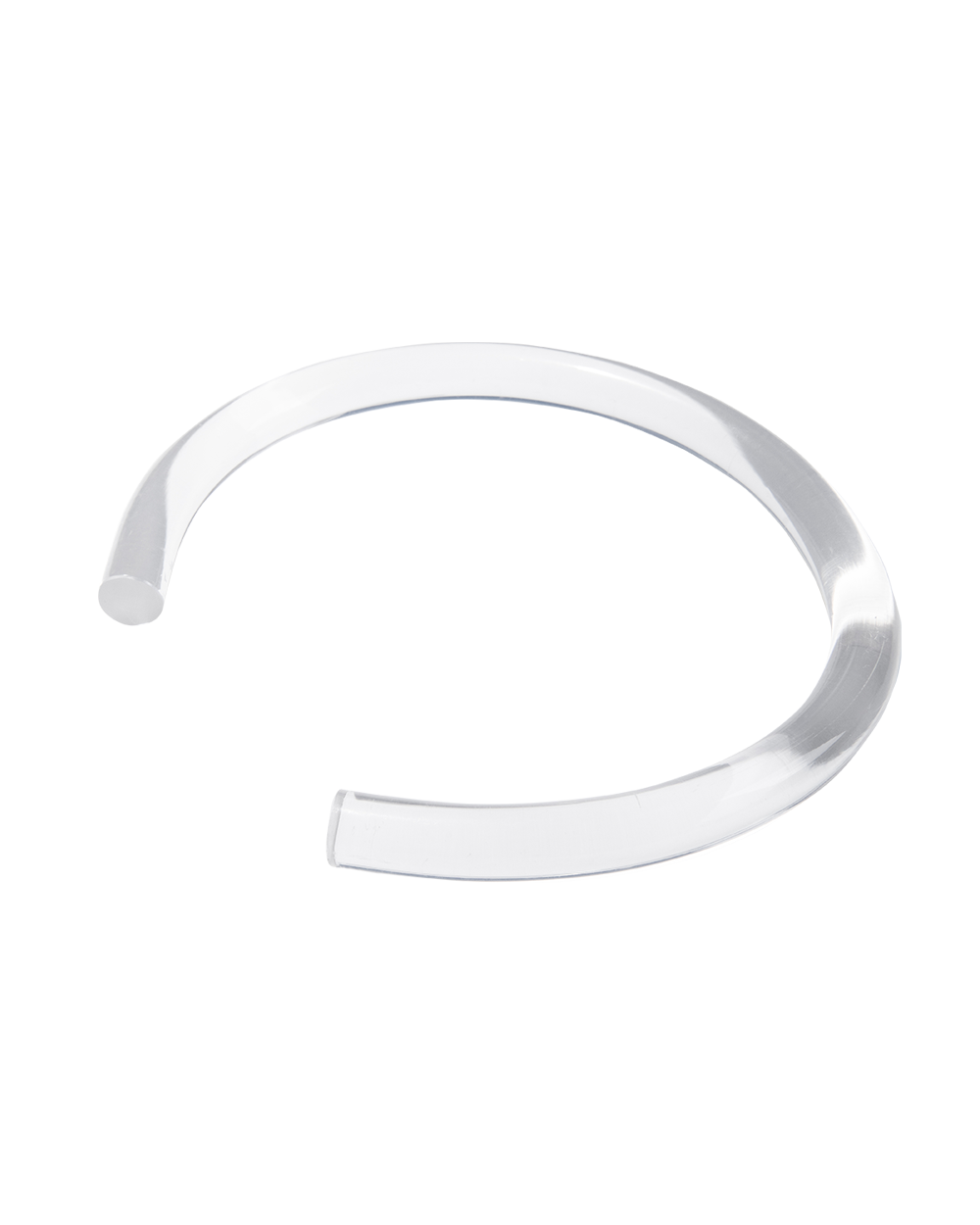 1978 Patricia Von Musulin (Unsigned) Lucite Curved Collar Necklace. Clear white lucite curved collar necklace. As seen in the Met Museum. Similar pieces also seen on the legendary Iman, Linda Evangelista, and many major magazine editorials, including W Magazine, Paper Magazine, and Harper's Bazaar. In very good vintage condition with extremely light wear throughout (unnoticeable when worn).