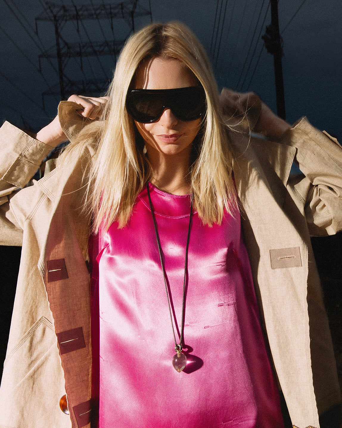 Styled with pink Maison Martin Margiela 'Lining' Dress available for purchase here, and Louis Vuitton jacket available for purchase here (not included with purchase of necklace). White bra top and skirt are utilized for e-commerce purposes only and are not included with purchase.