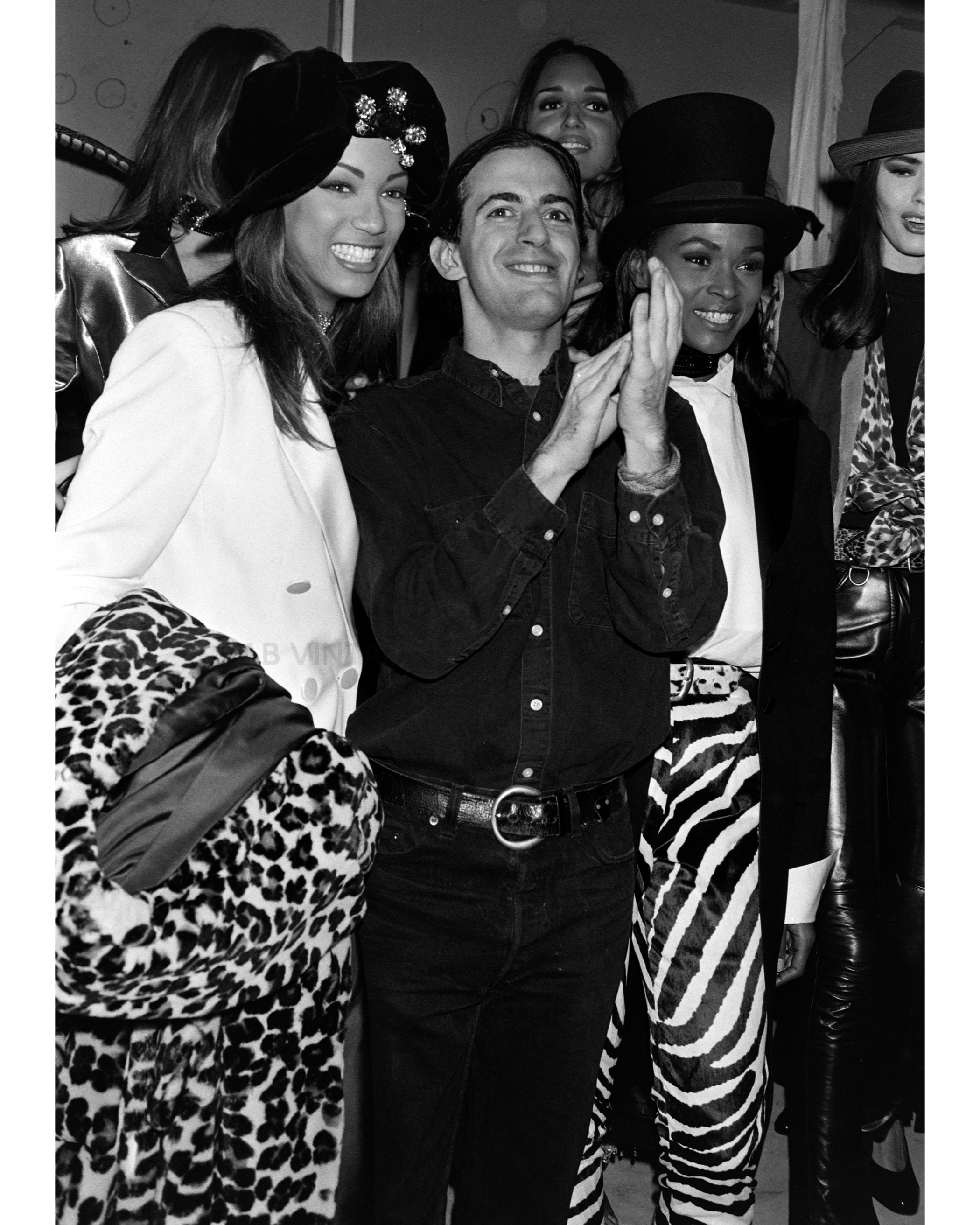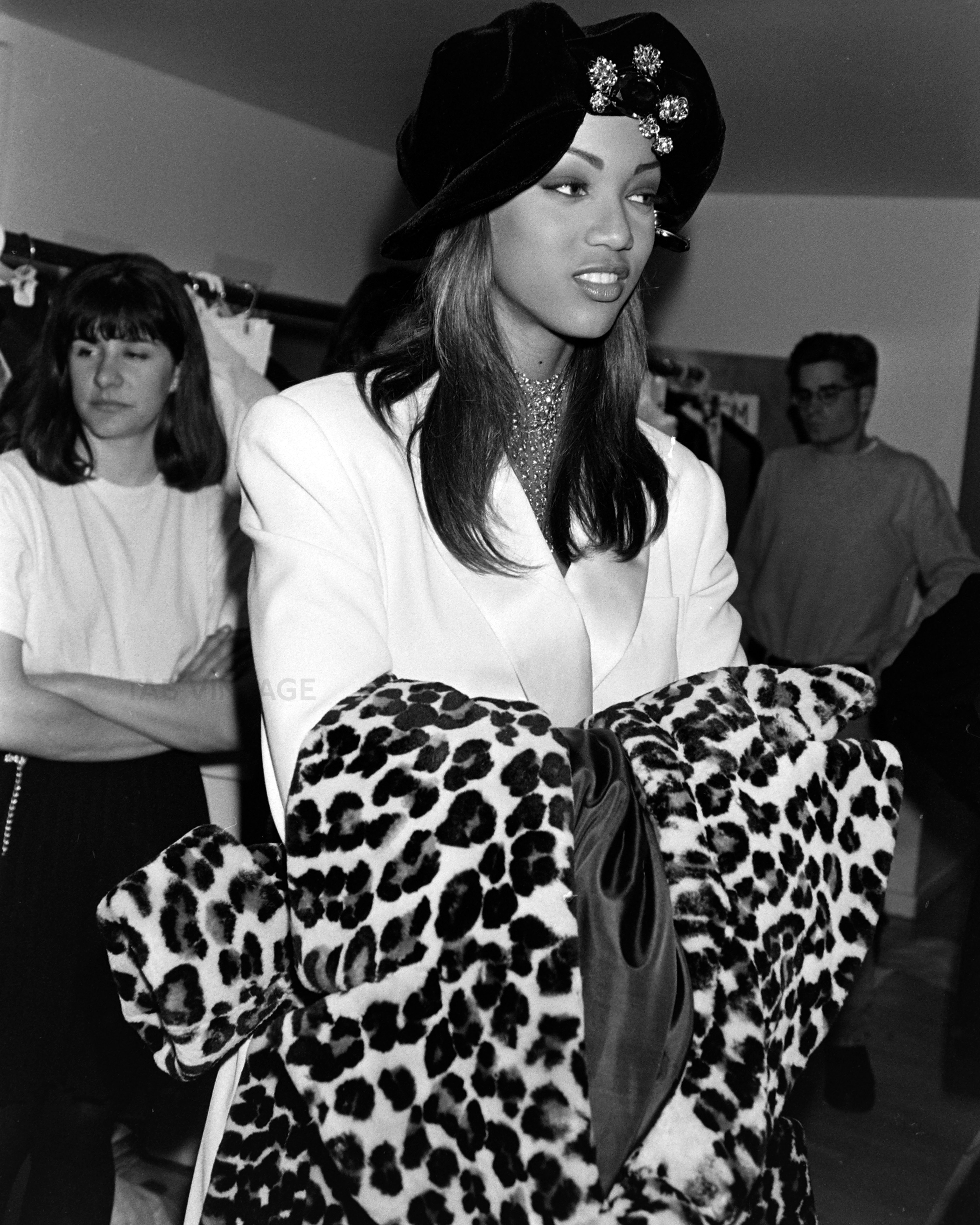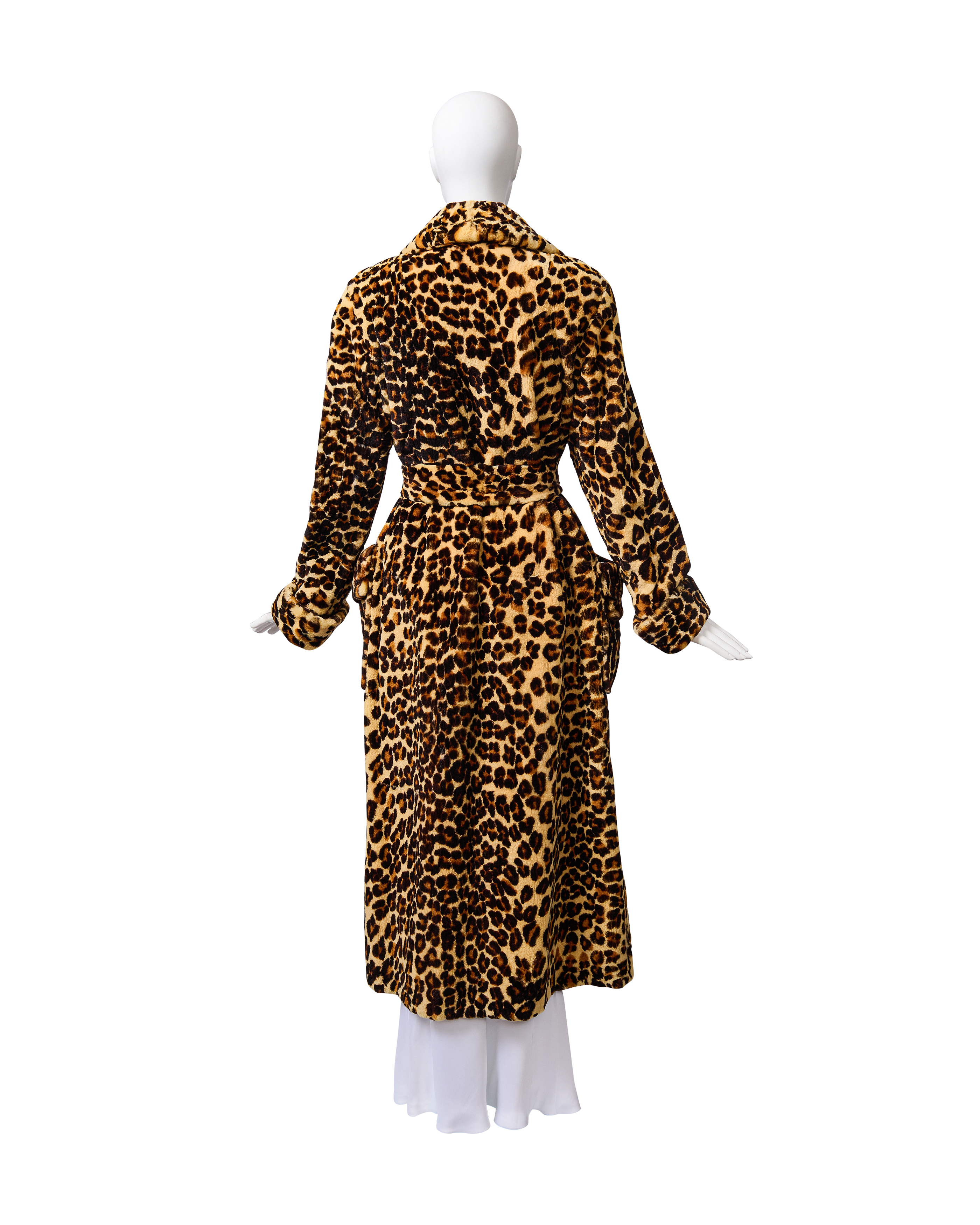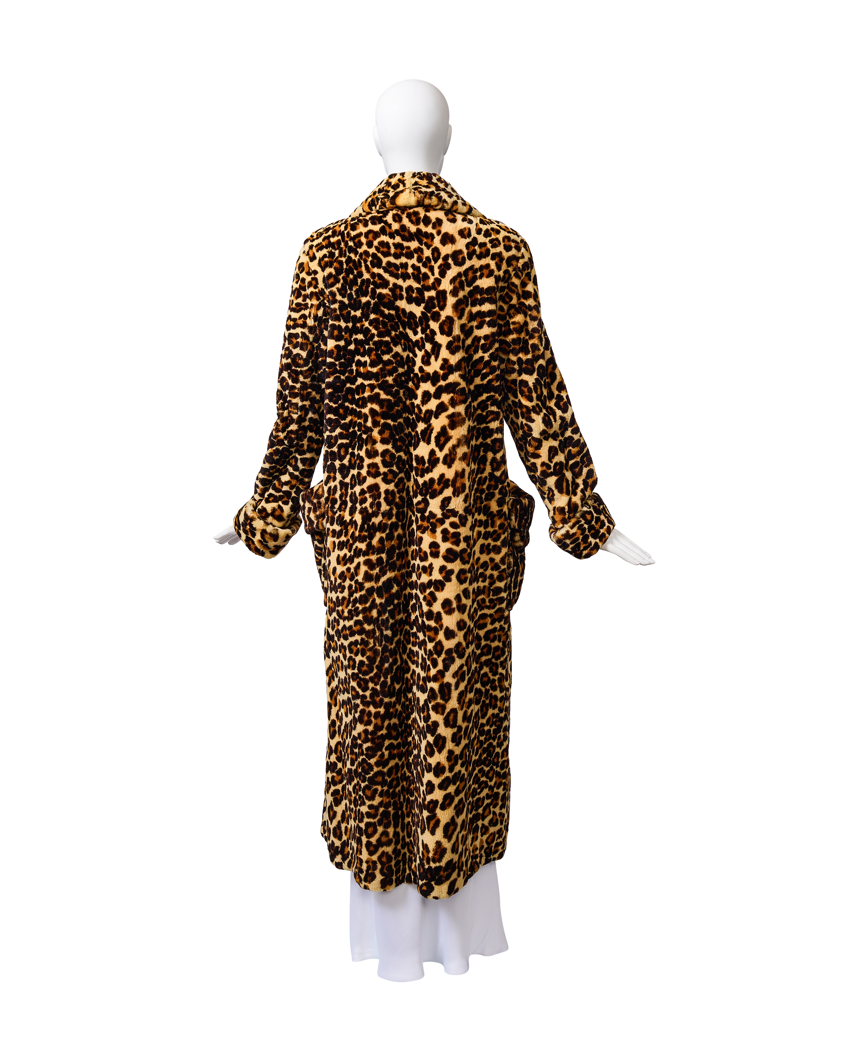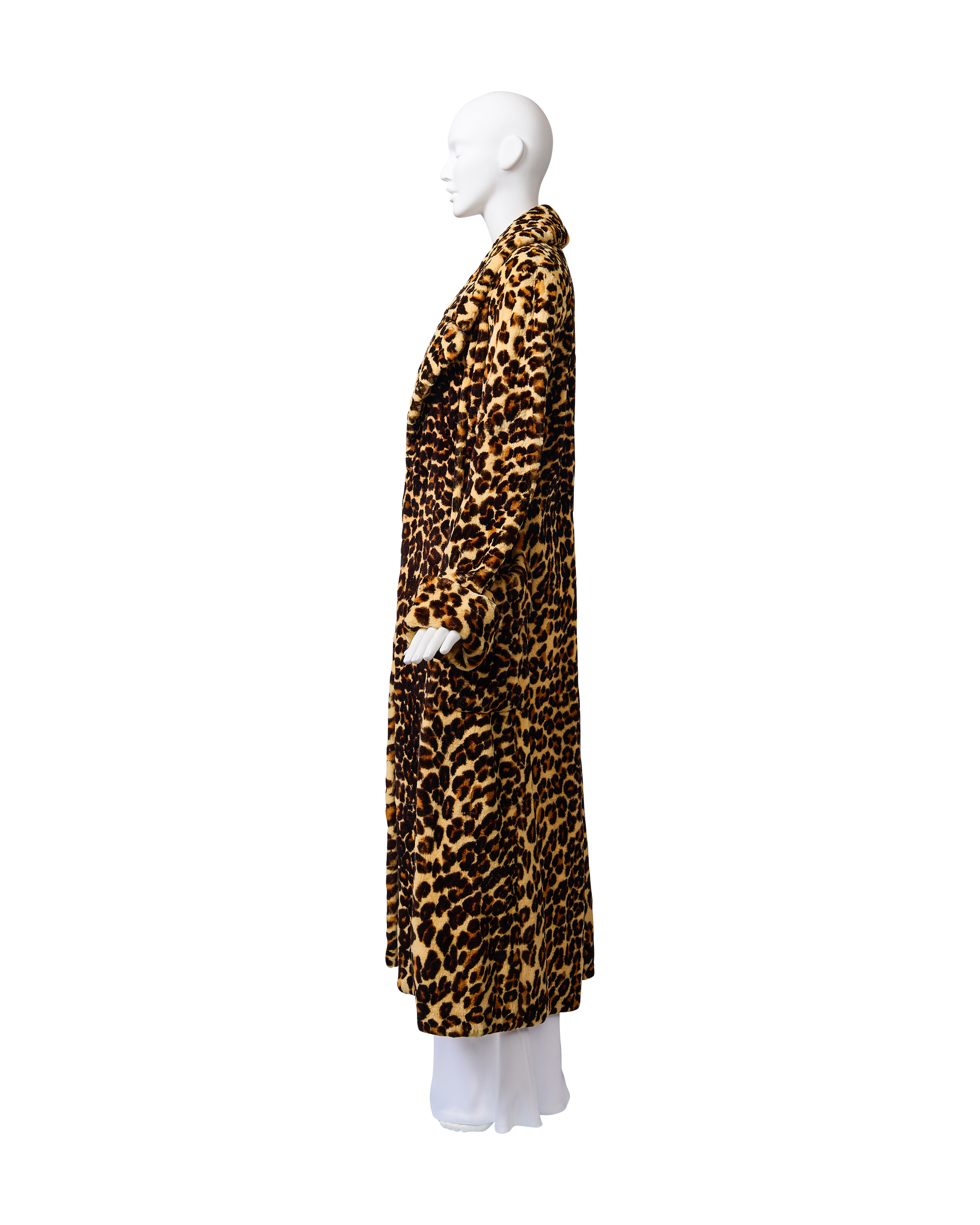 A/W 1992 Perry Ellis by Marc Jacobs leopard print fur coat. Collared long sleeve leopard print fur coat with front belt tie closure. Functional patch pockets. Rare jacket as seen on Tyra Banks on the runway. Embroidered cursive 'Cynthia' monogram on interior lining from prior owner. Likely alpaca fur (unlisted). In very good vintage condition with light wear throughout. Note that white skirt and bra top are utilized for e-commerce purposes only and are not included with purchase.