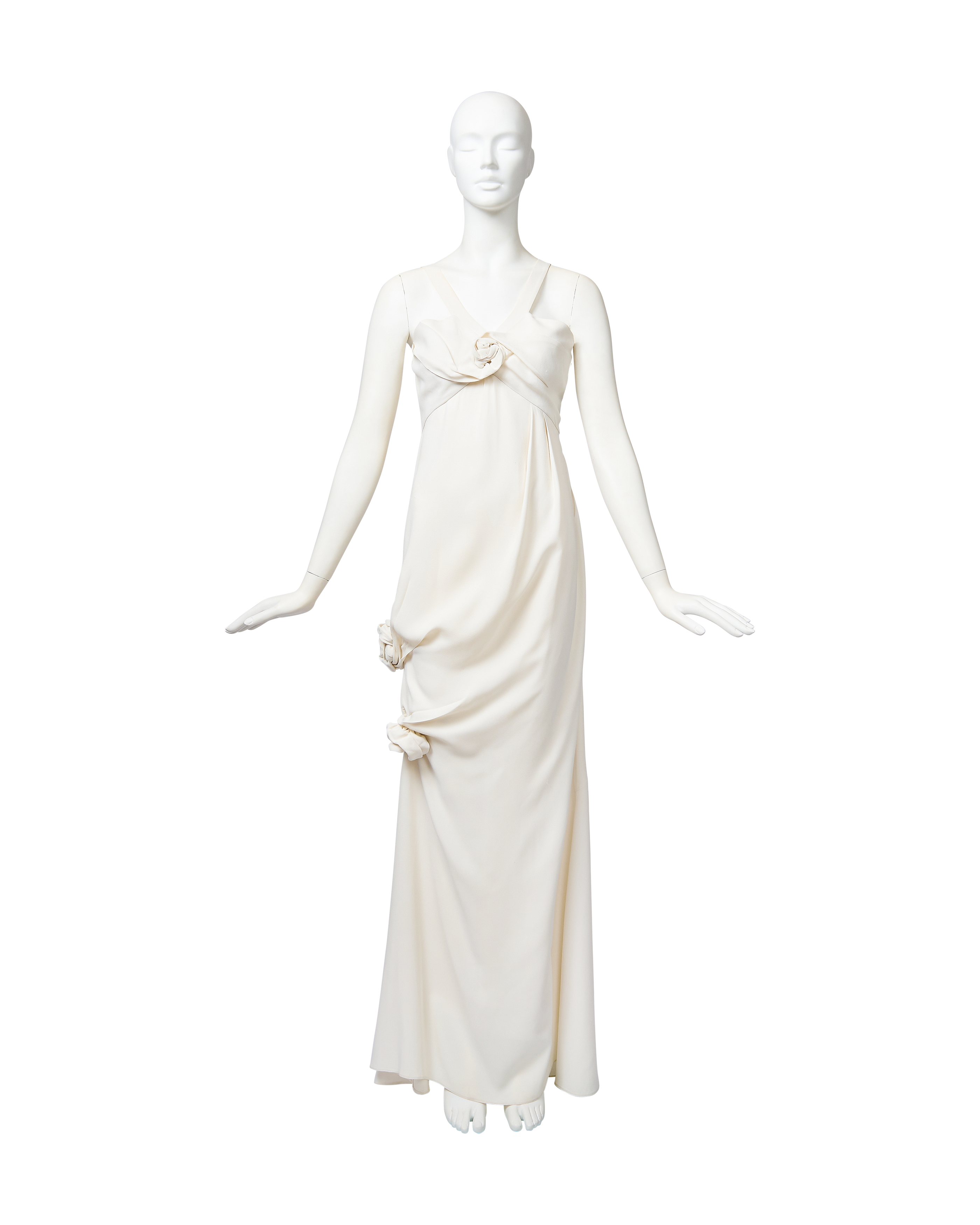A/W 2008 White Crepe Gown with 3D Rosette Details