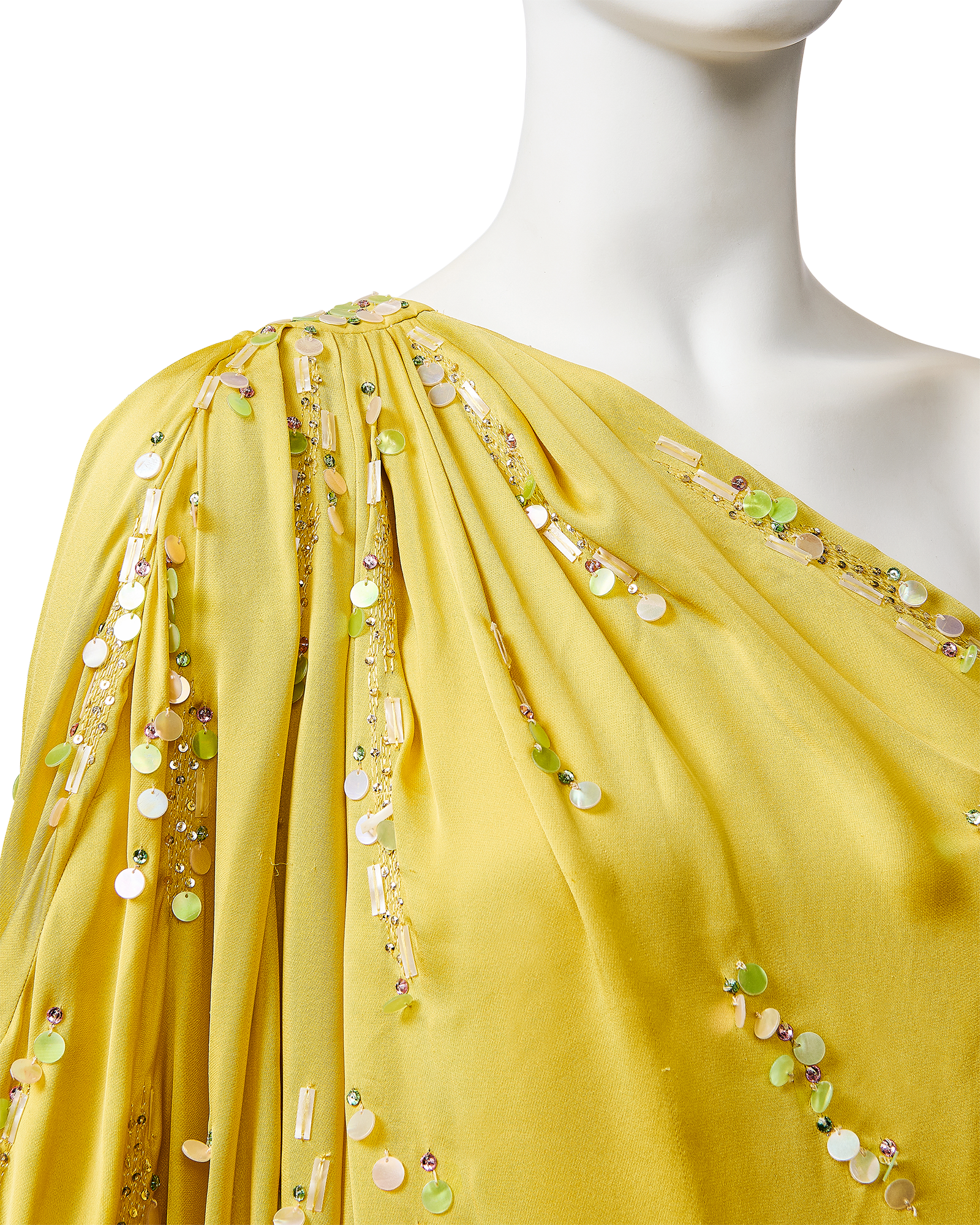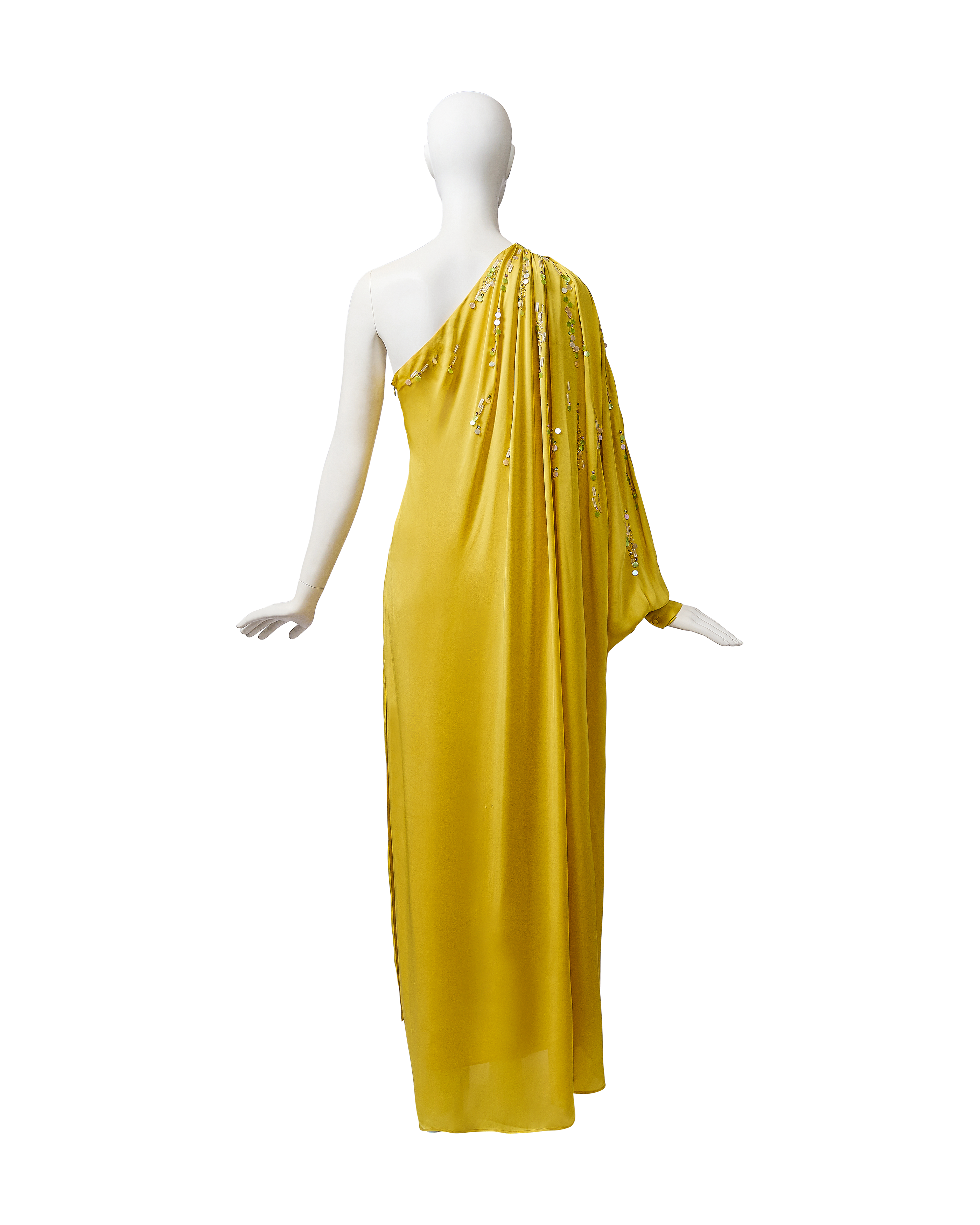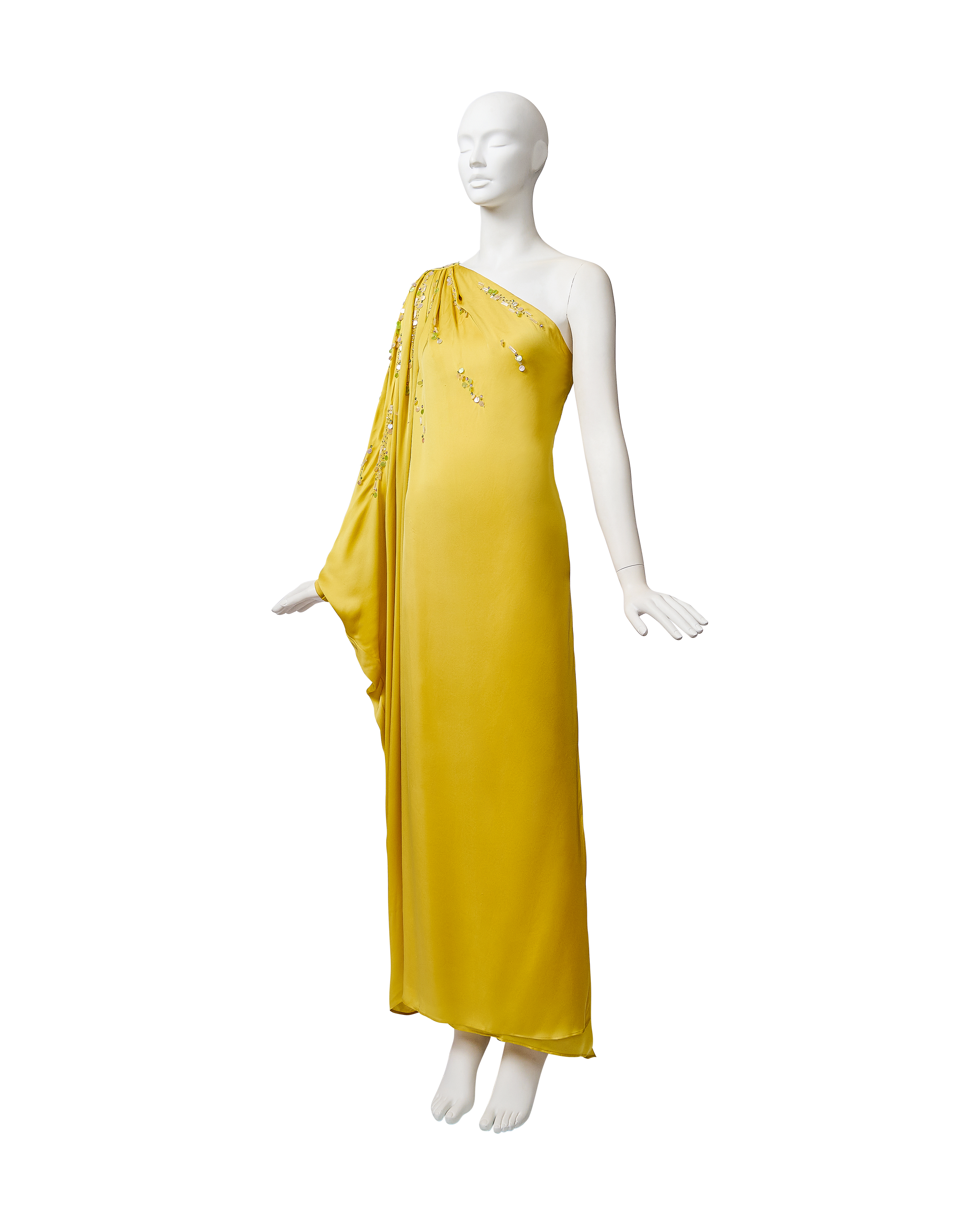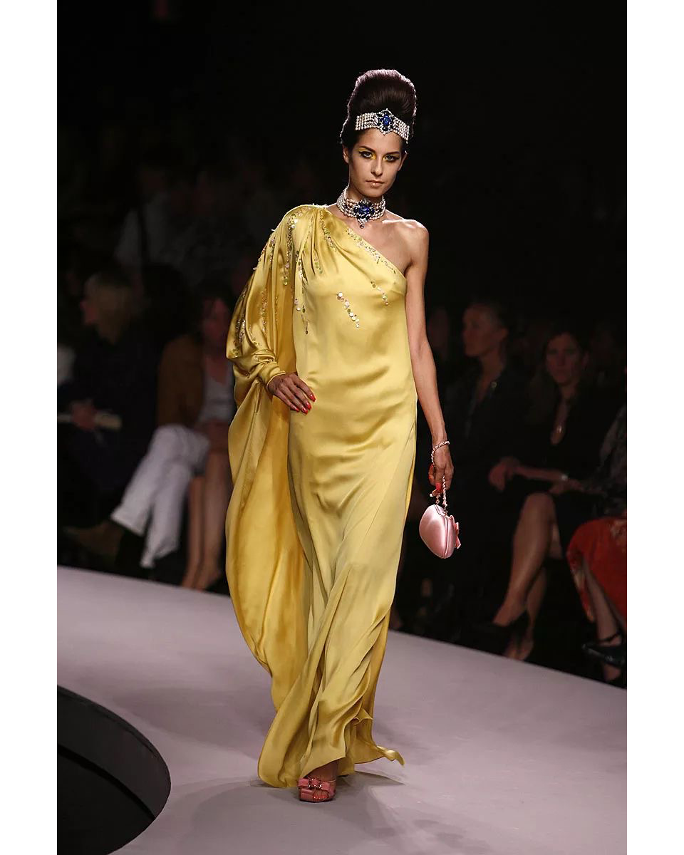 Resort 2008 Silk One-Shoulder Yellow Drape Gown