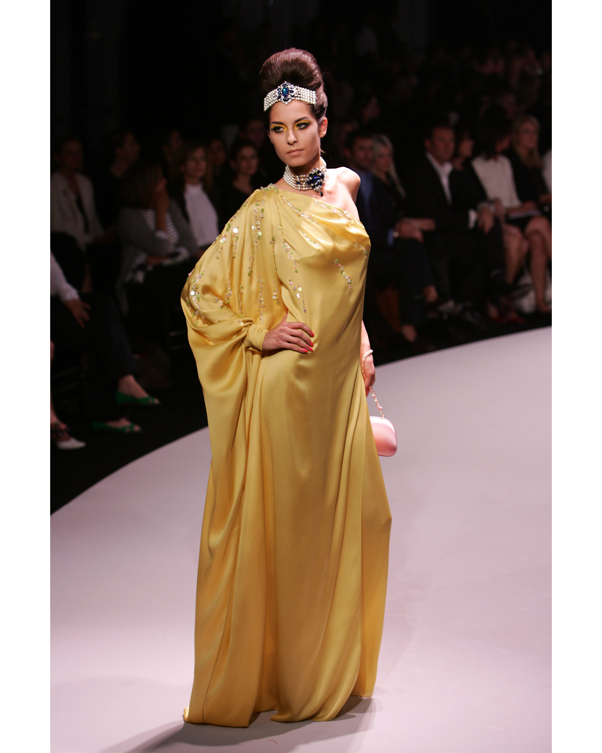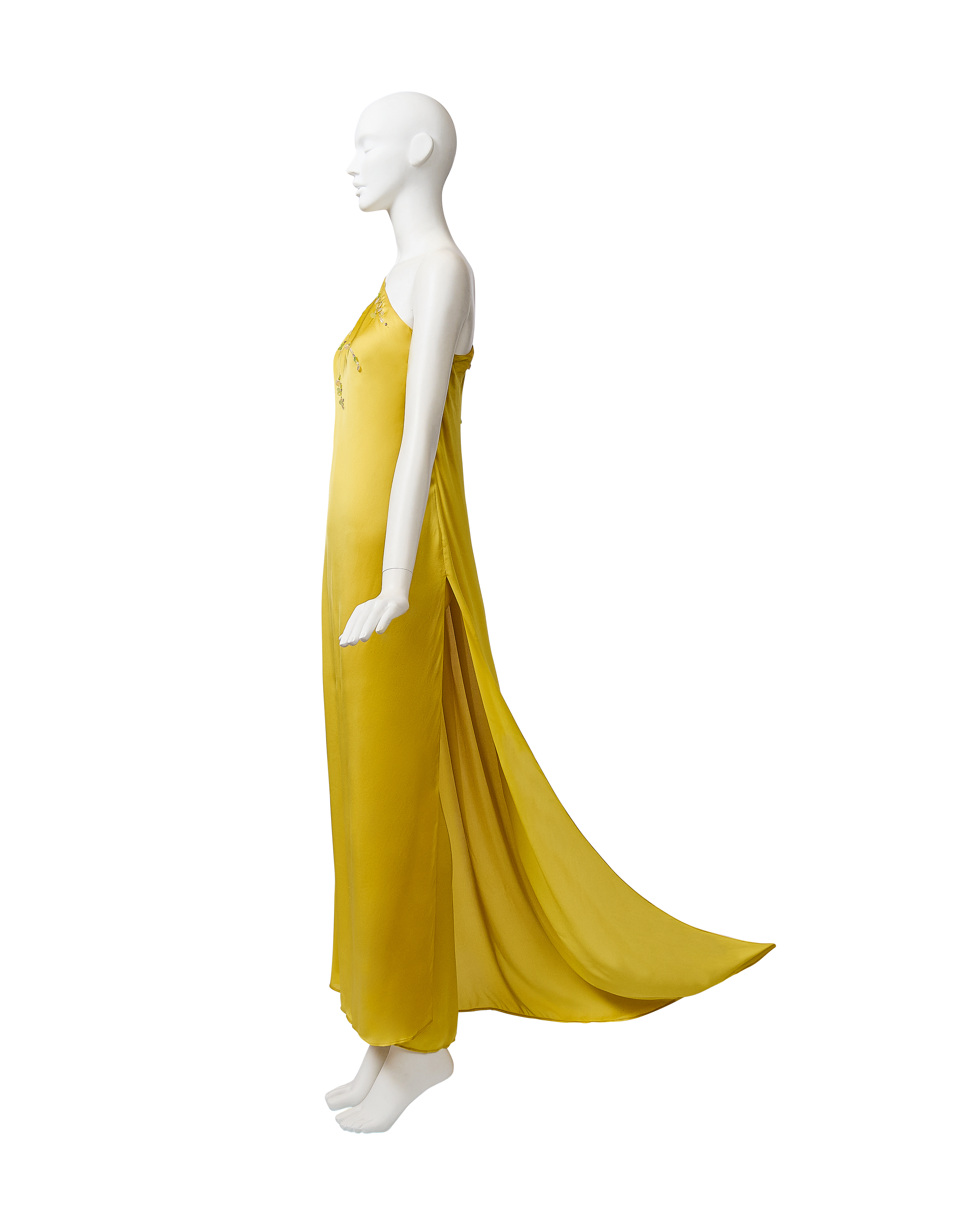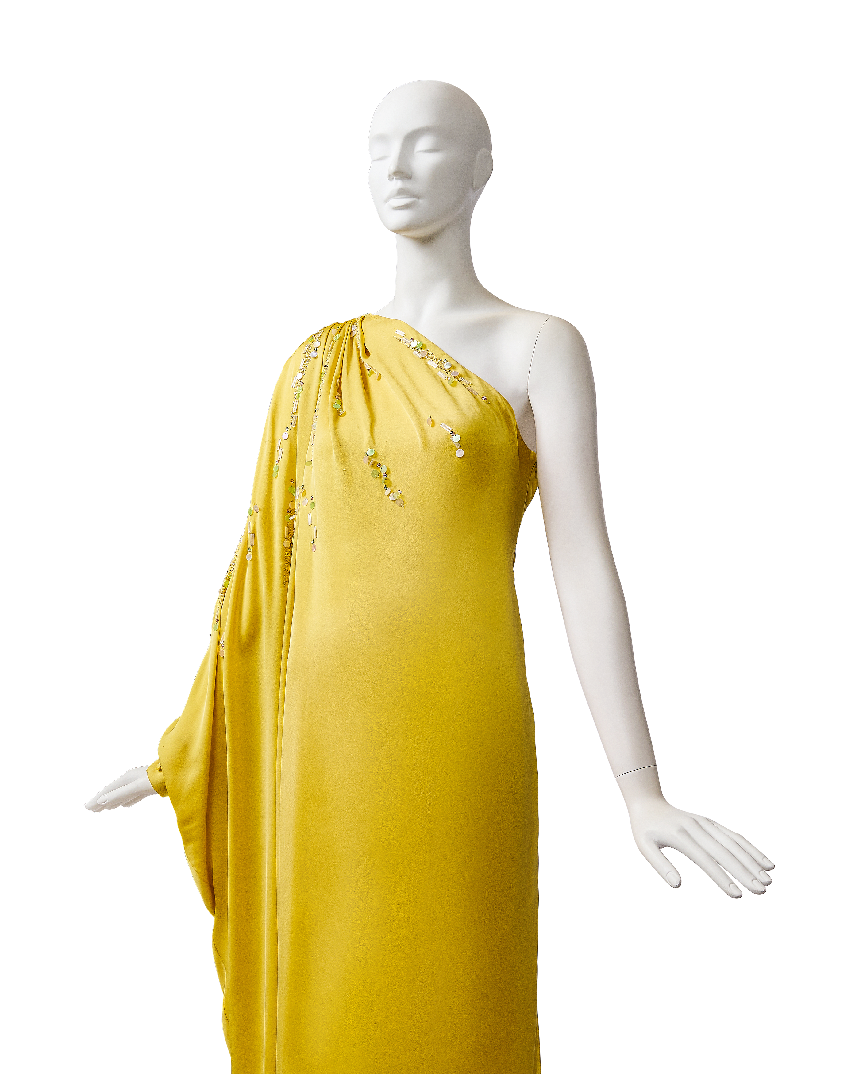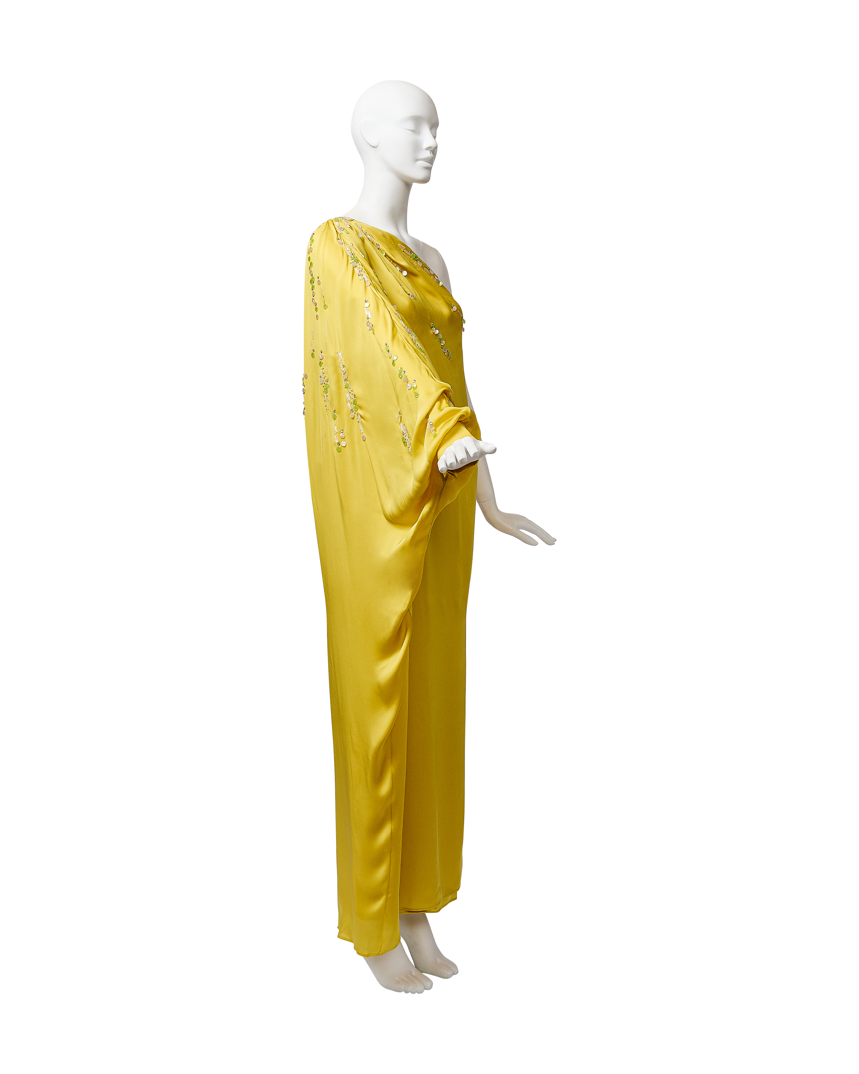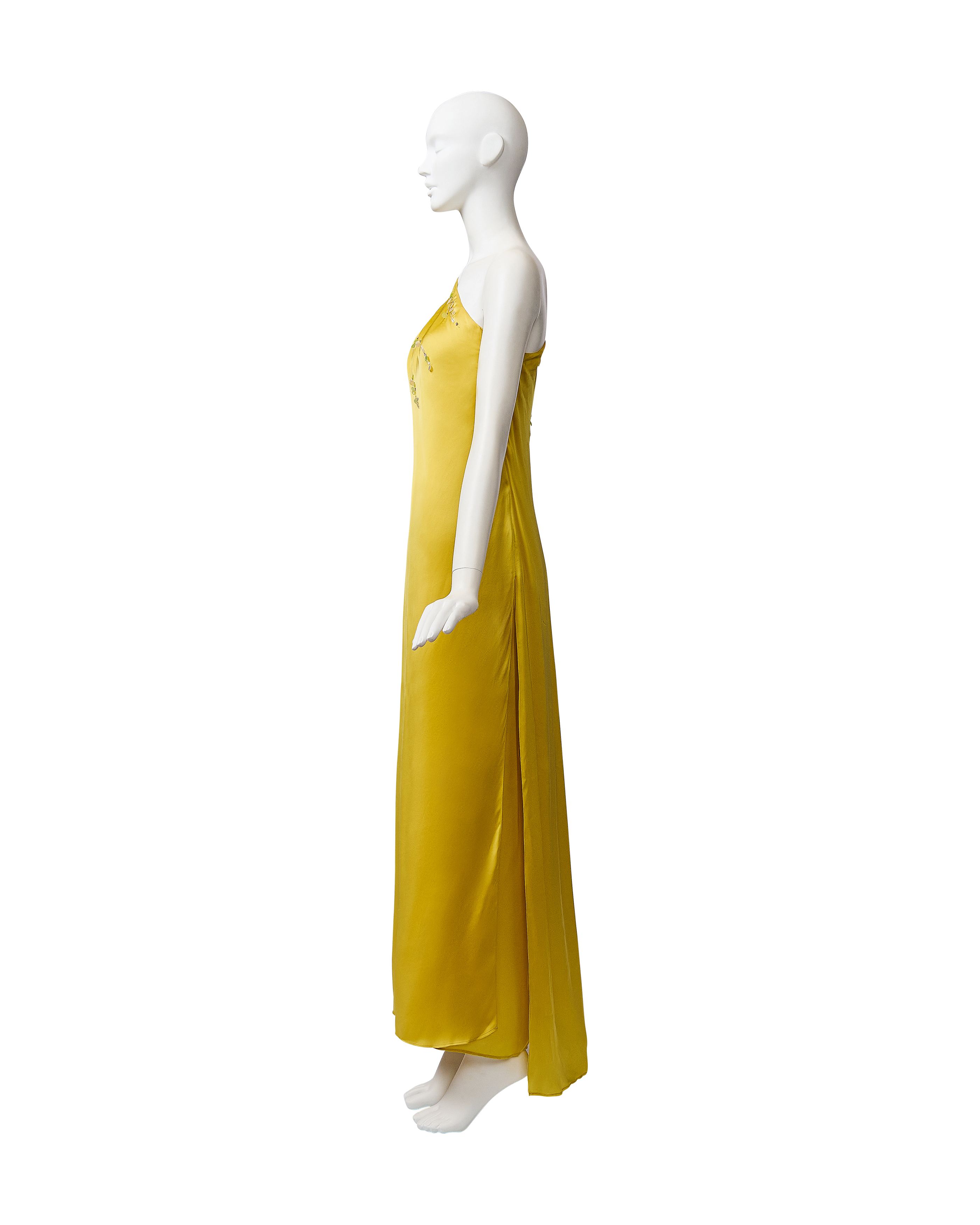 Resort 2008 Silk One-Shoulder Yellow Drape Gown