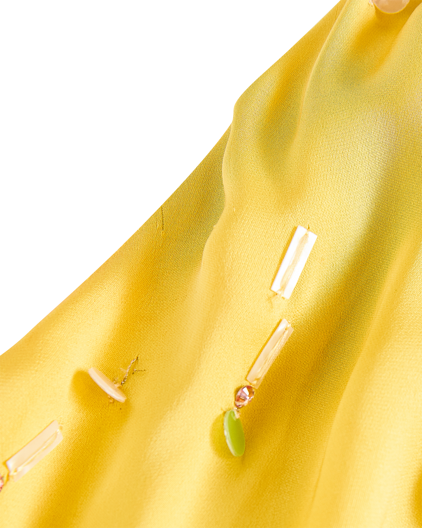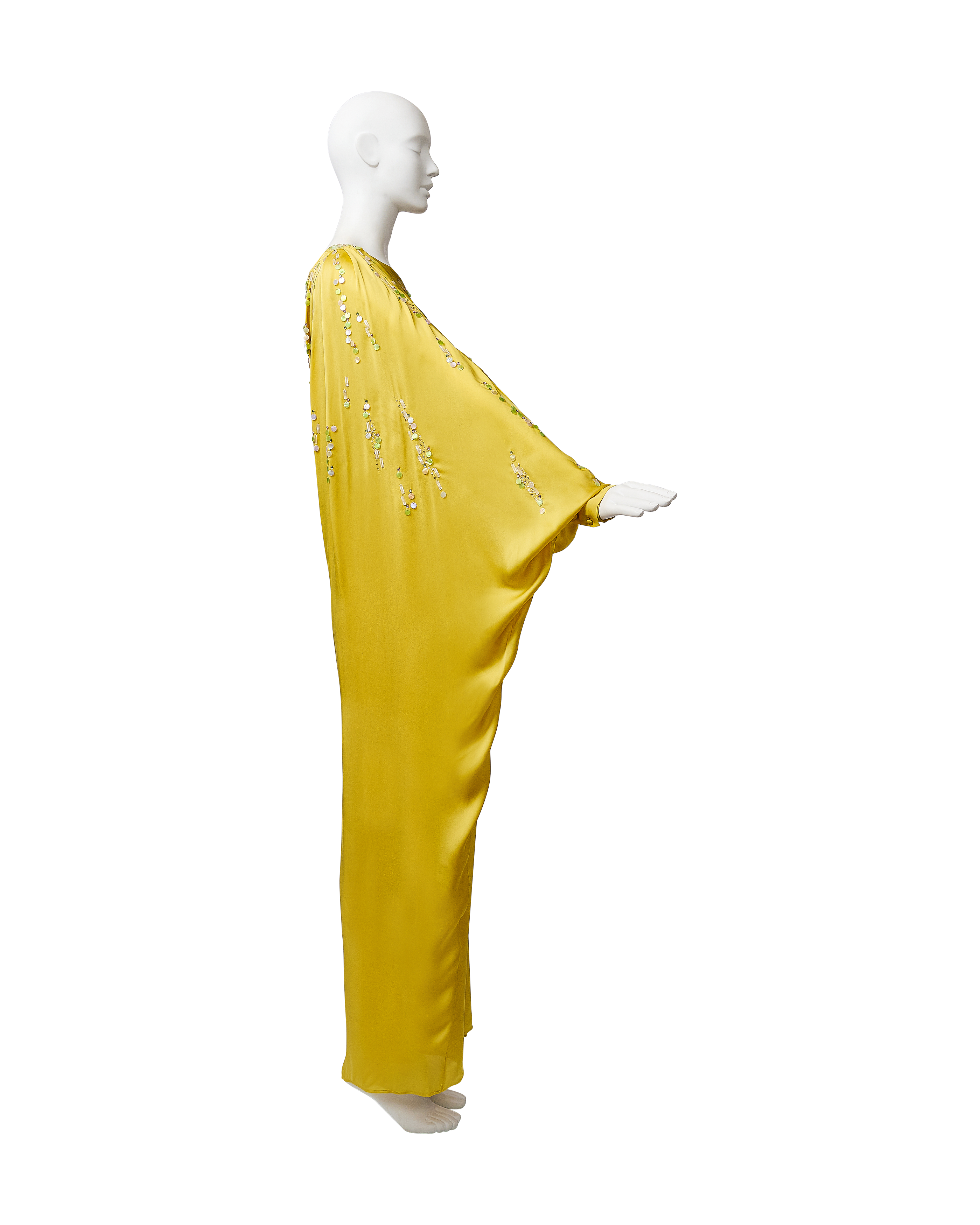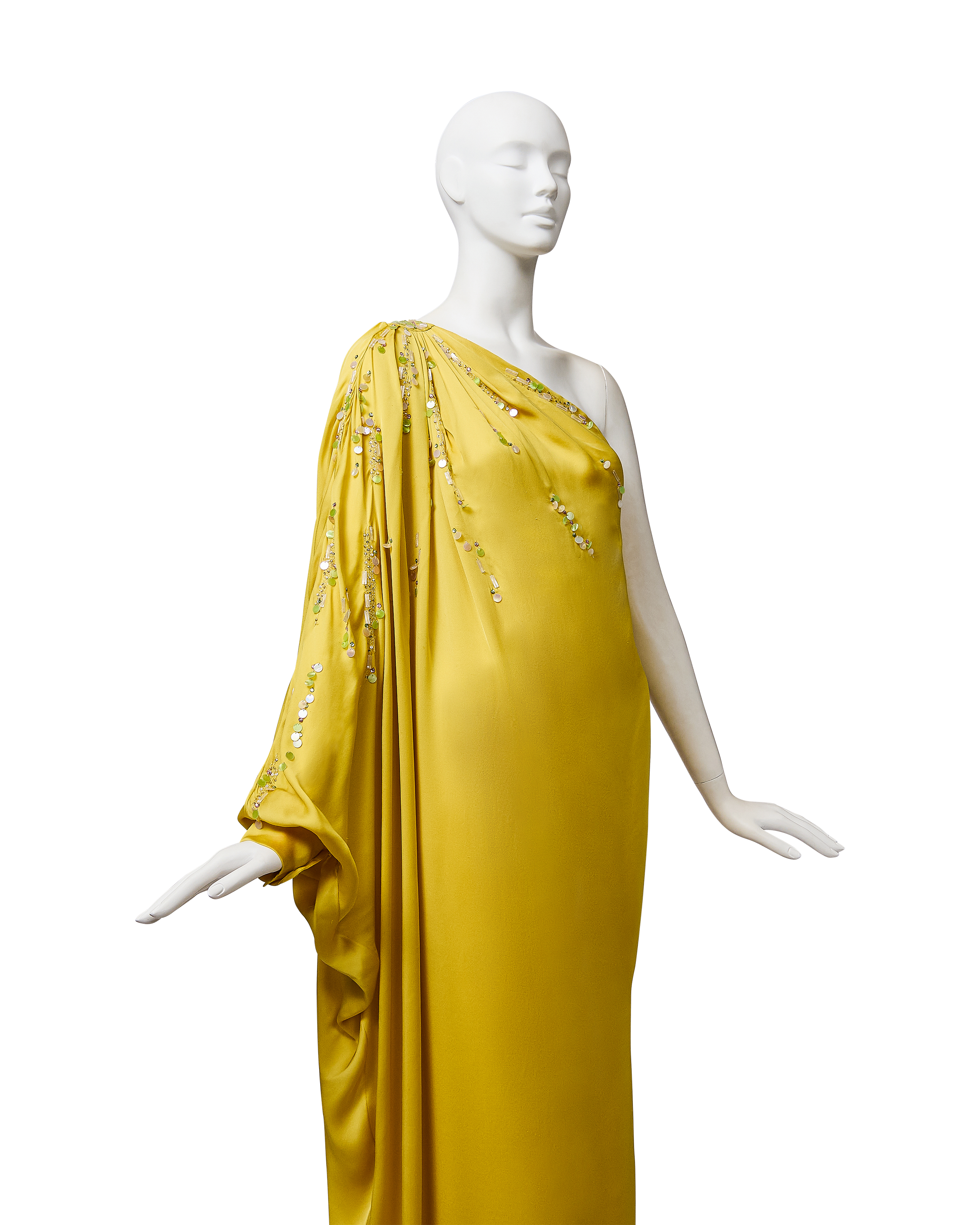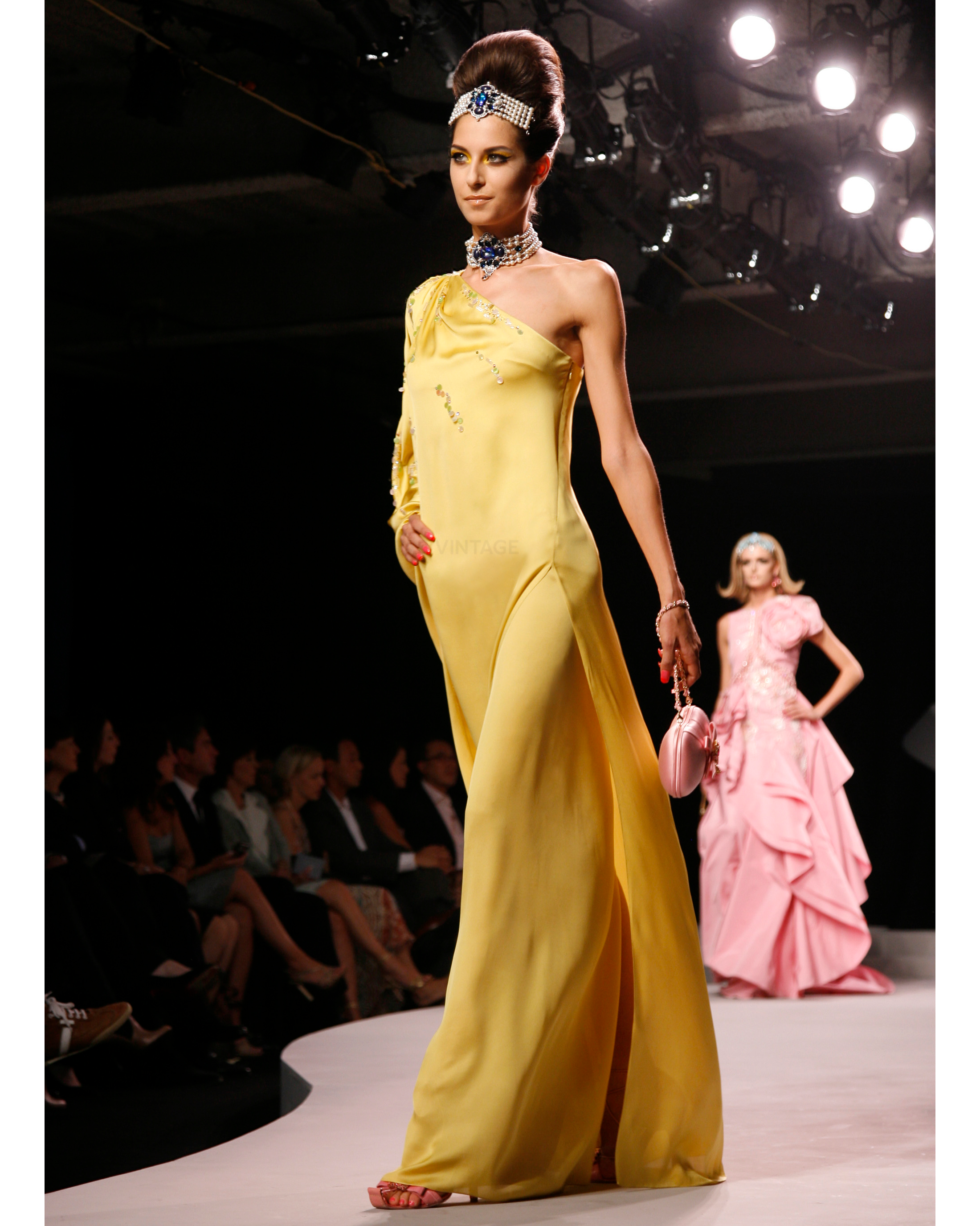 Resort 2008 Silk One-Shoulder Yellow Drape Gown