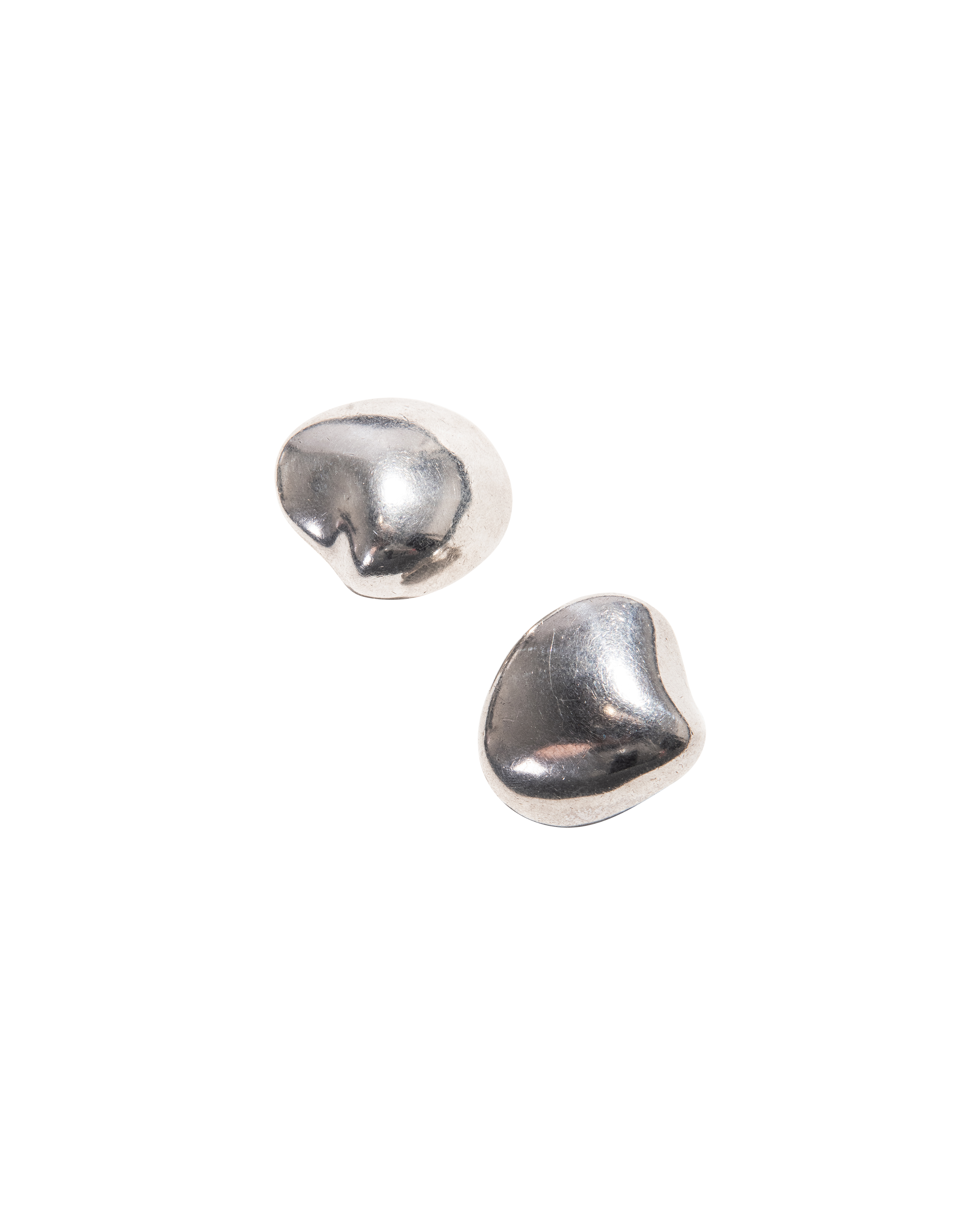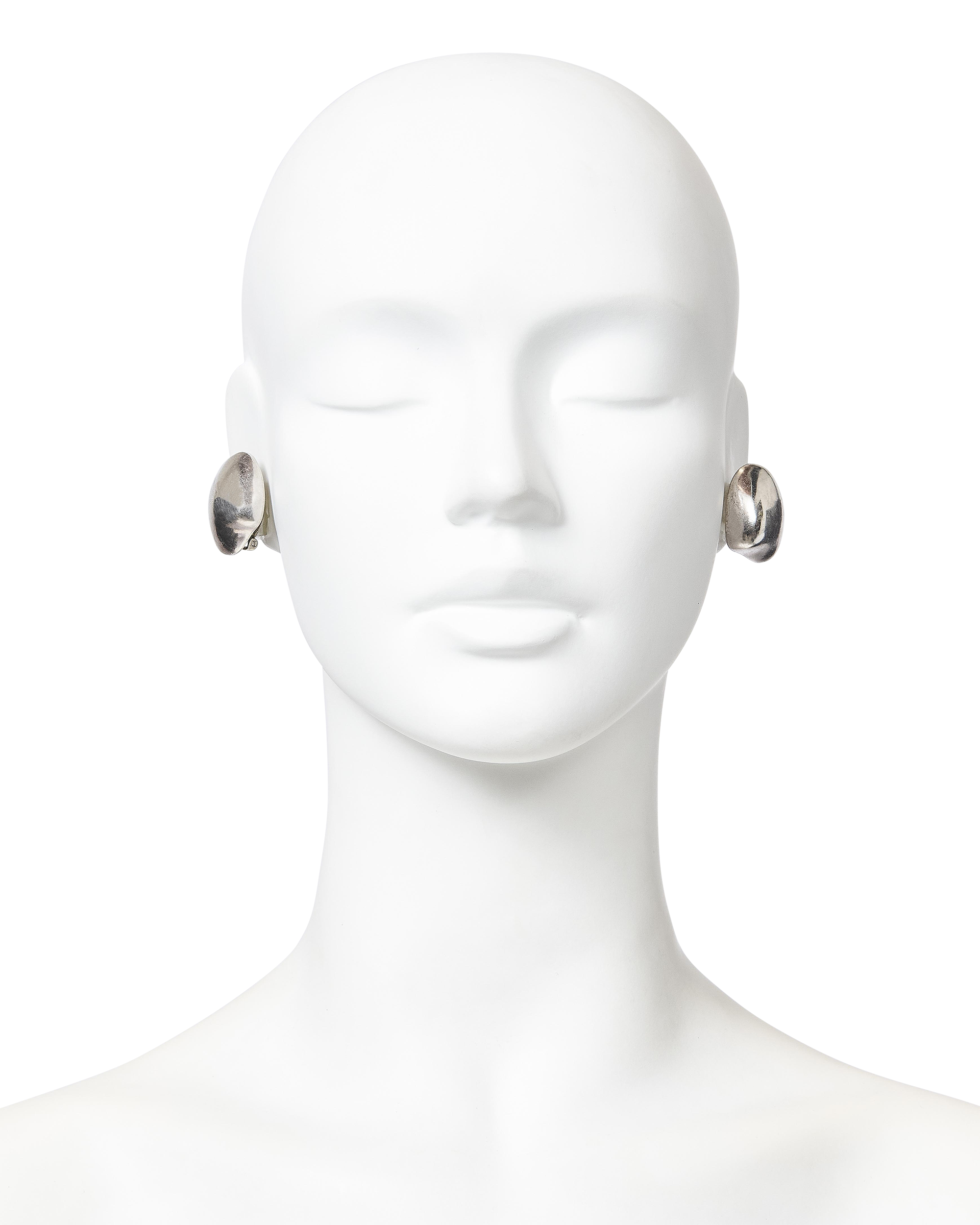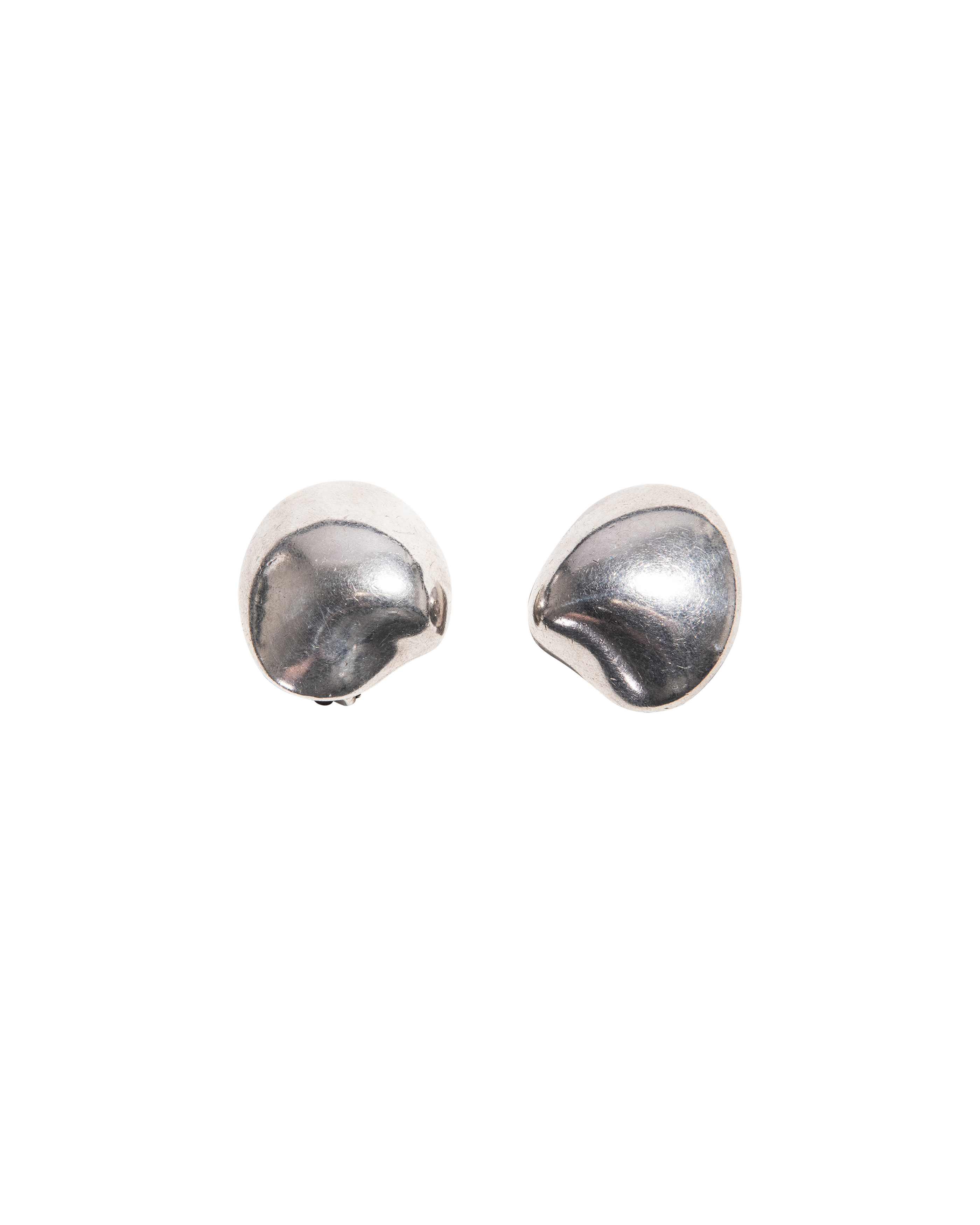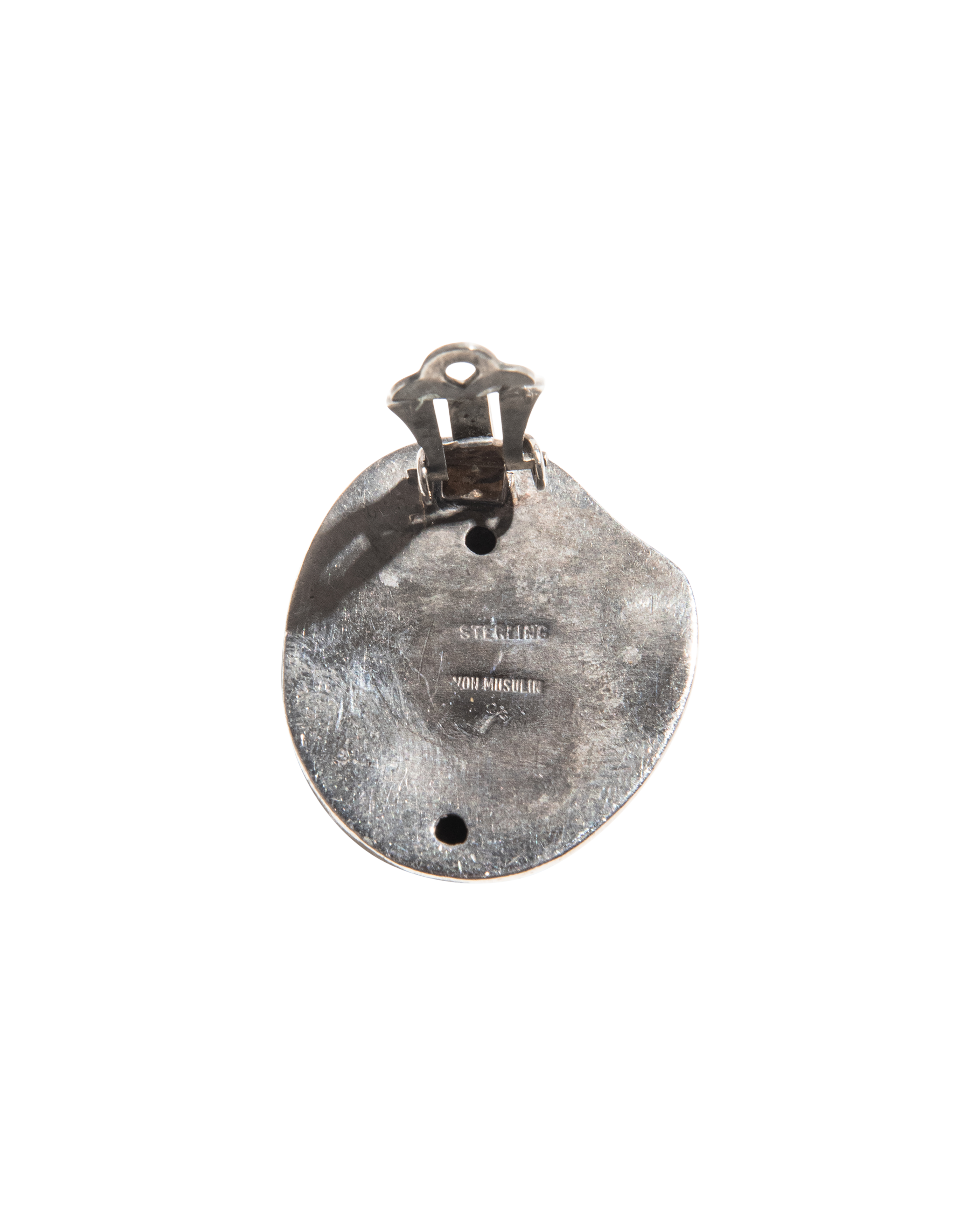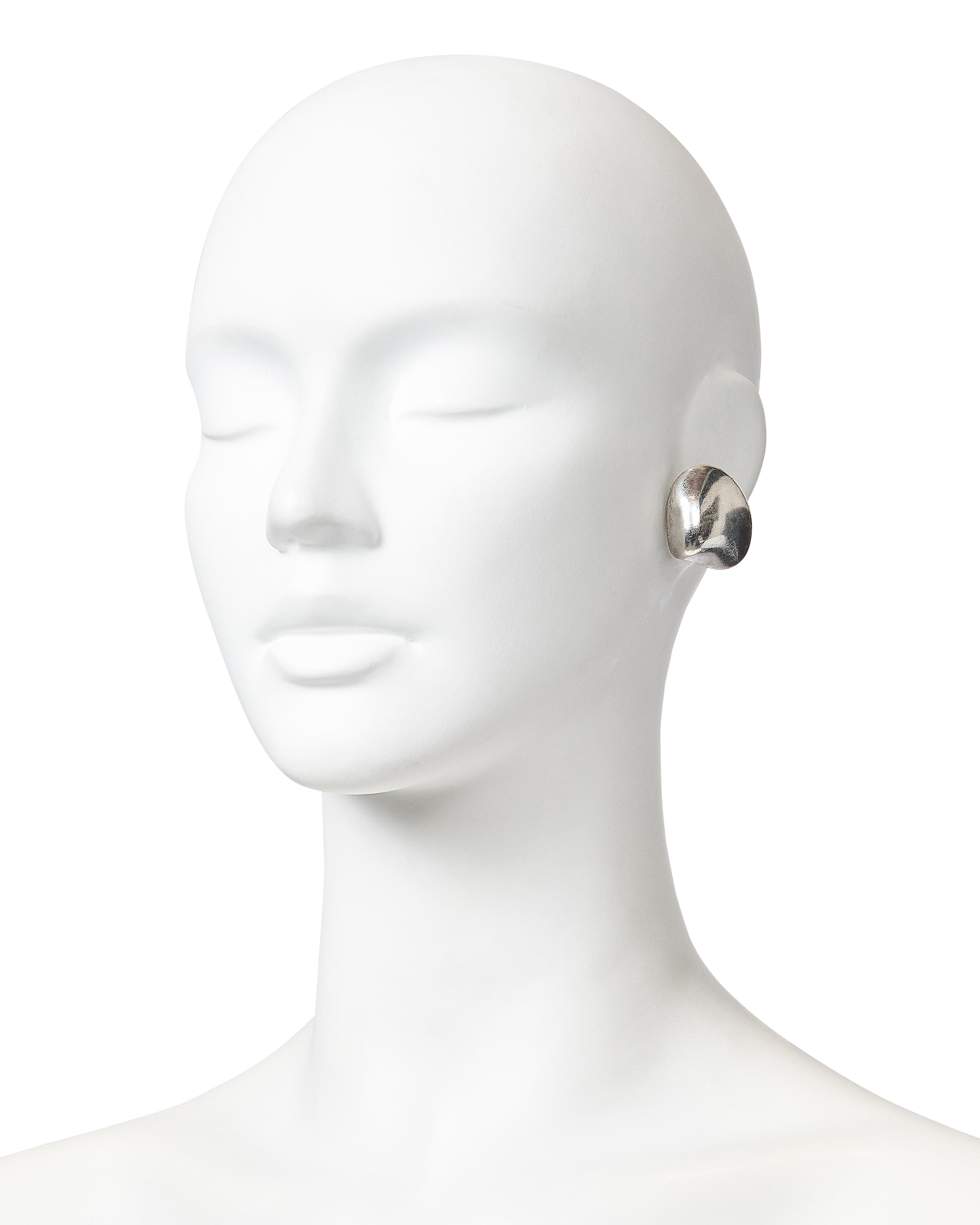 1970's Patricia Von Musulin (Signed) sterling silver curved clip-on earrings. Medium-sized raised silver-tone curved clip-on earrings. In very good vintage condition with light wear throughout (unnoticeable when worn).