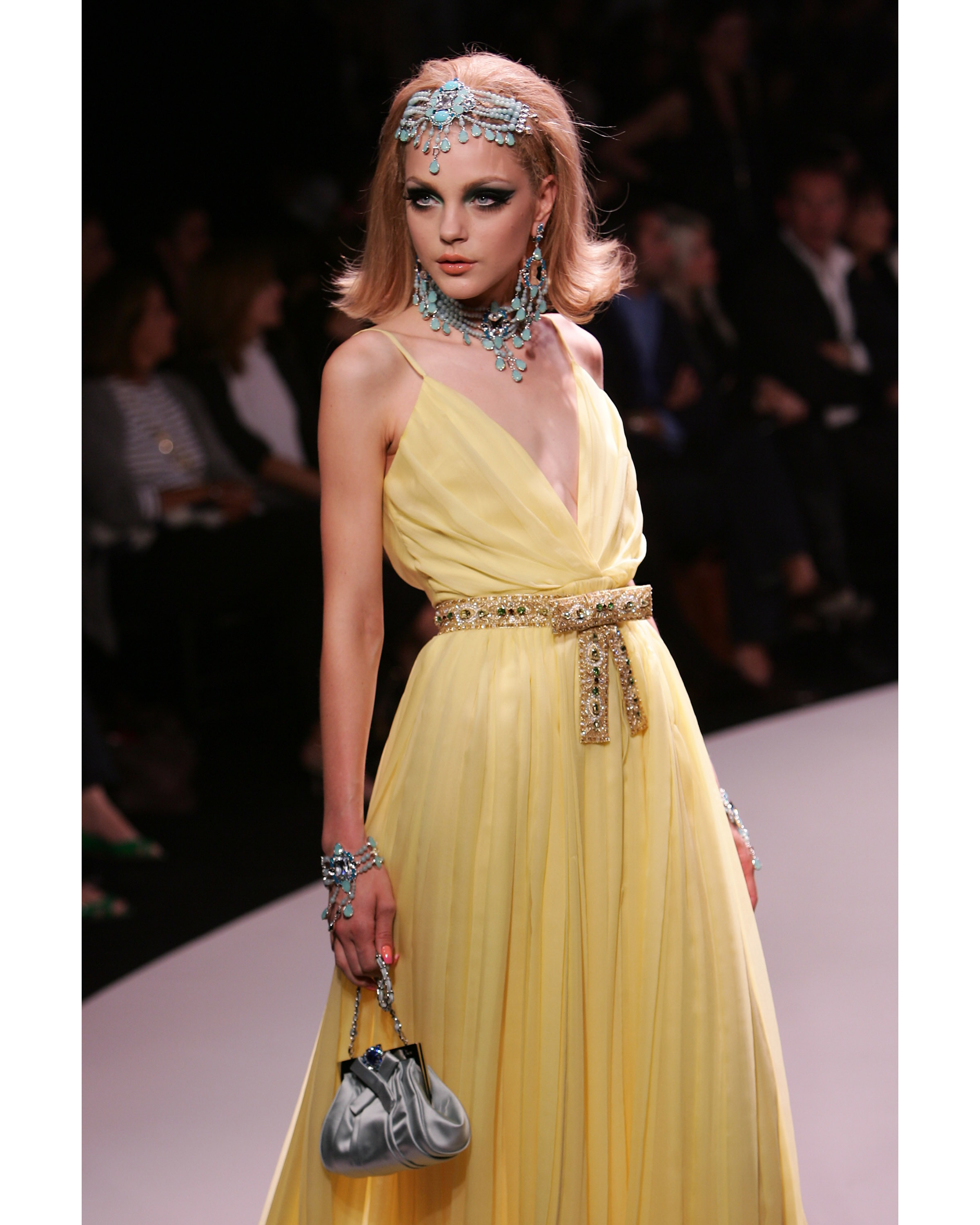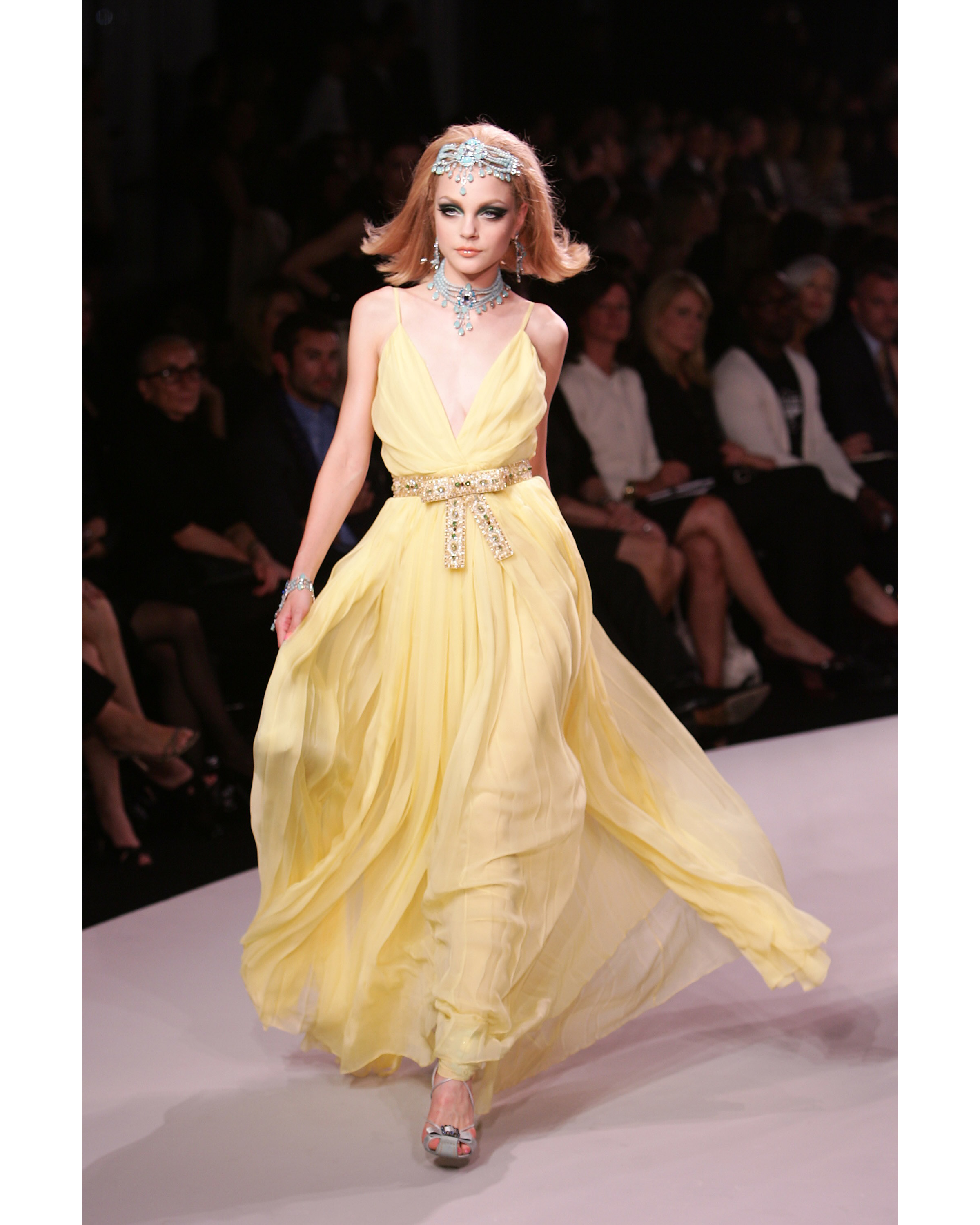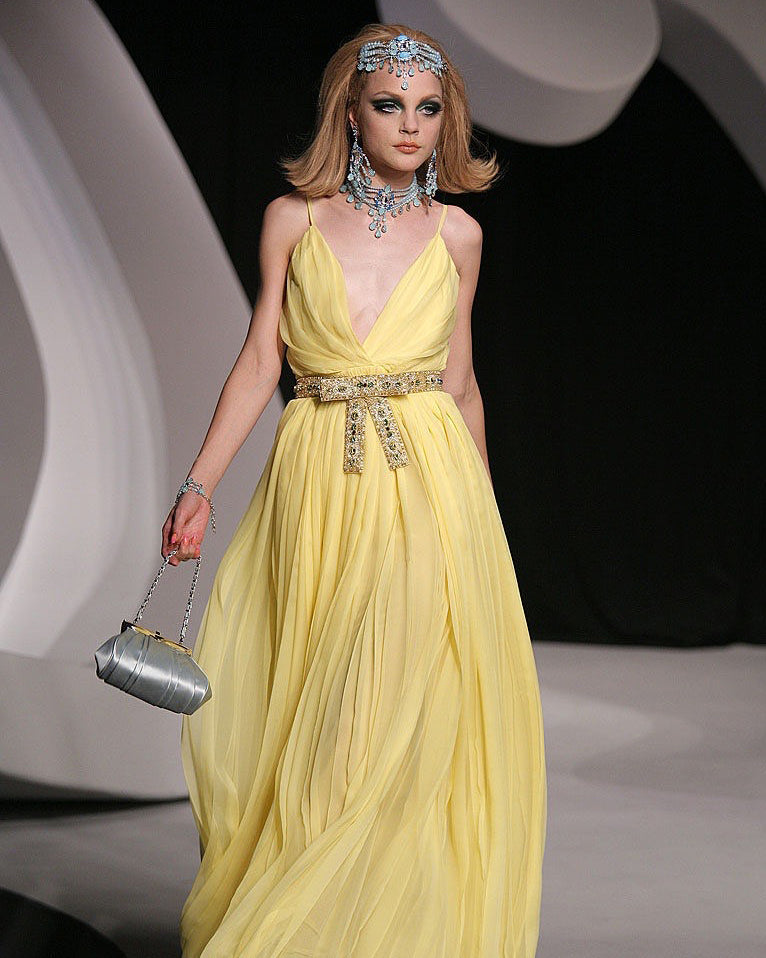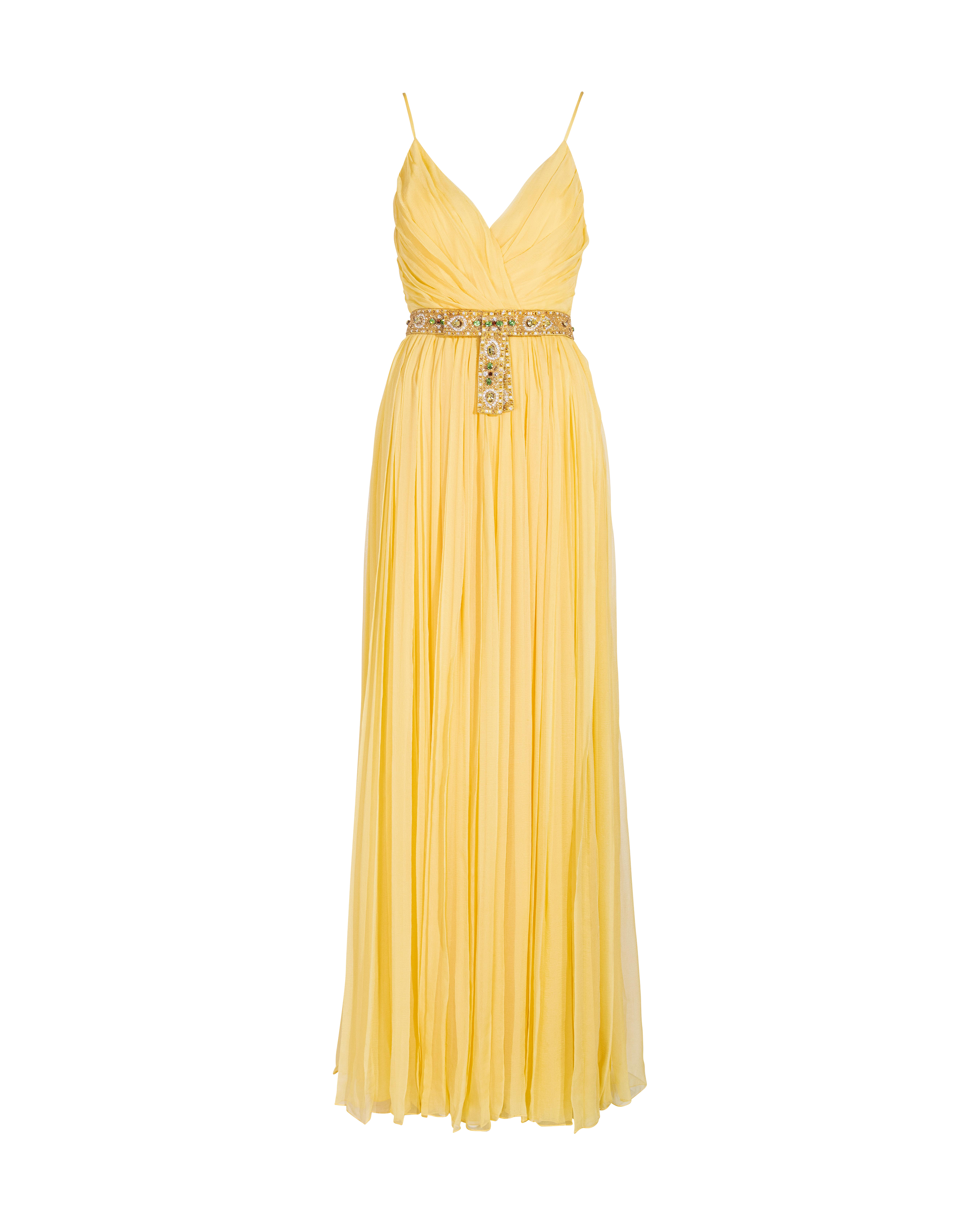 Resort 2008 Yellow Pleated Gown with Jeweled Belt