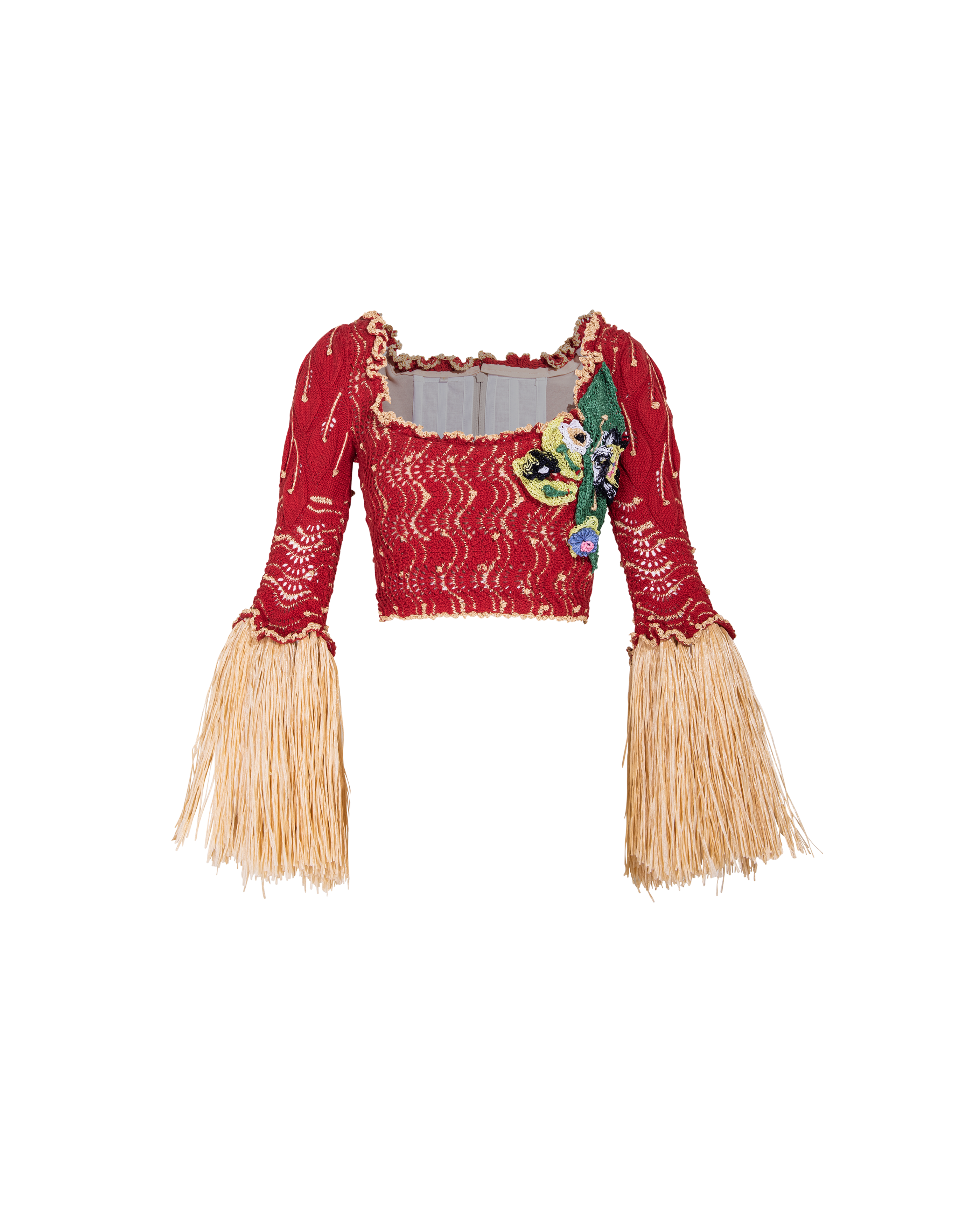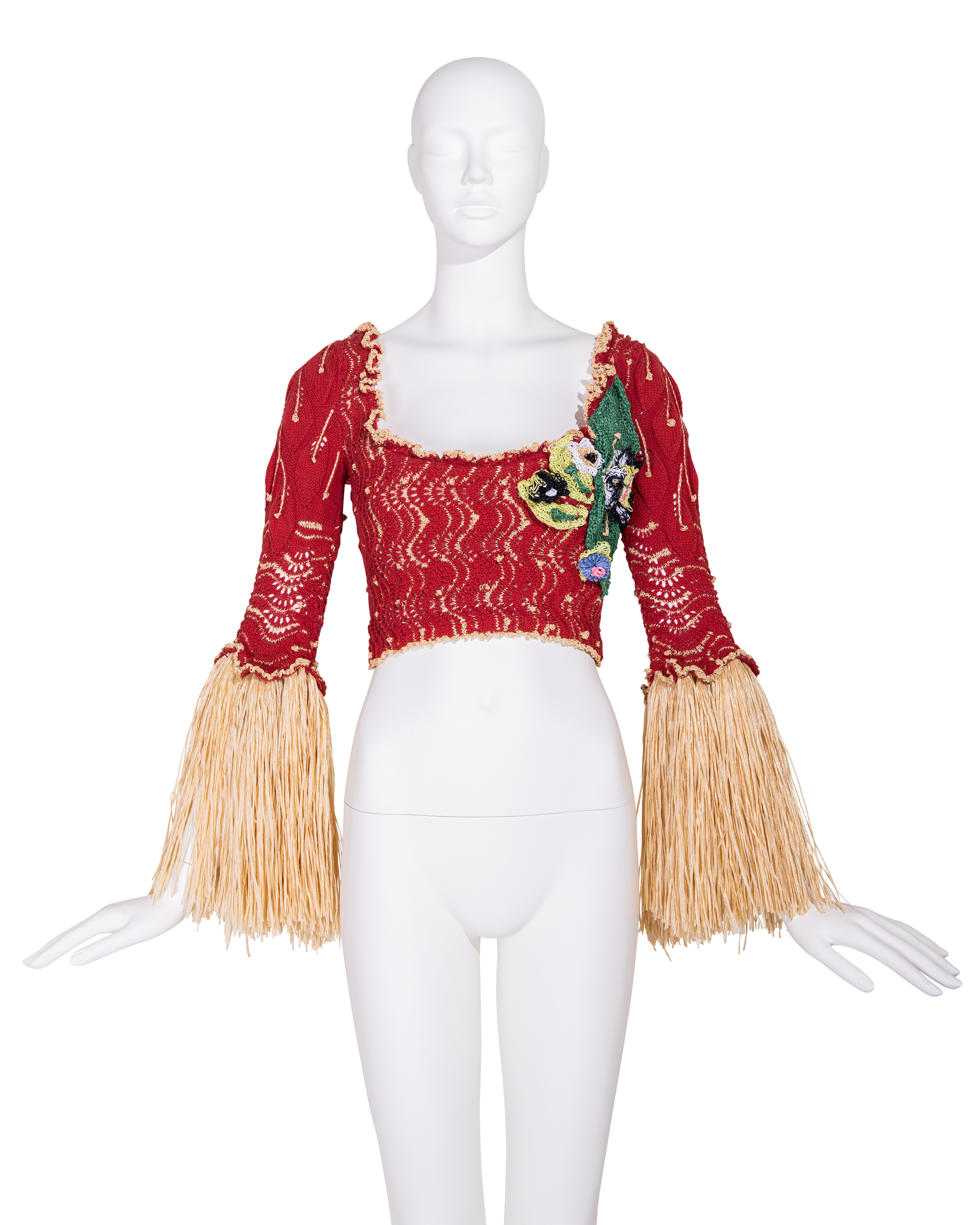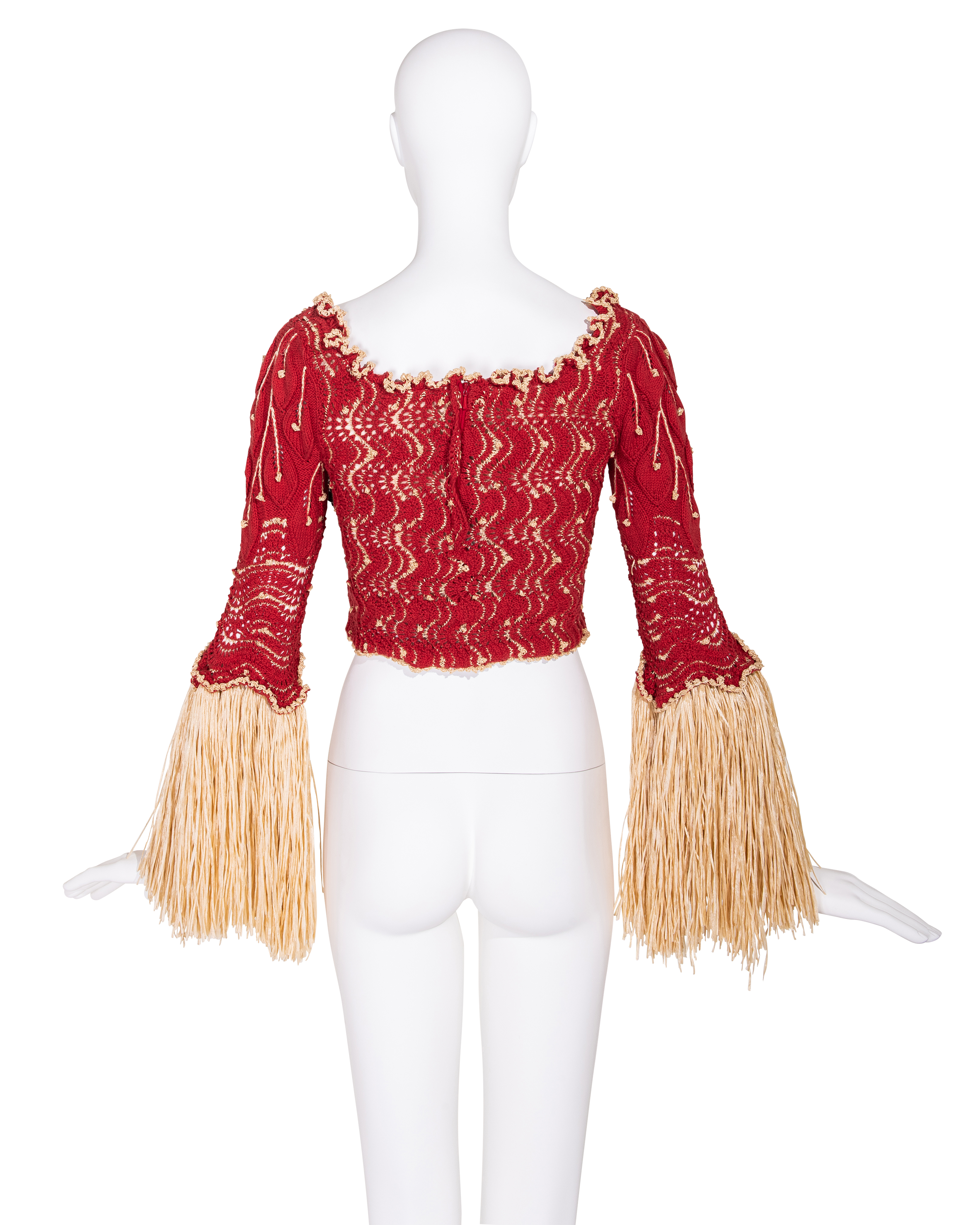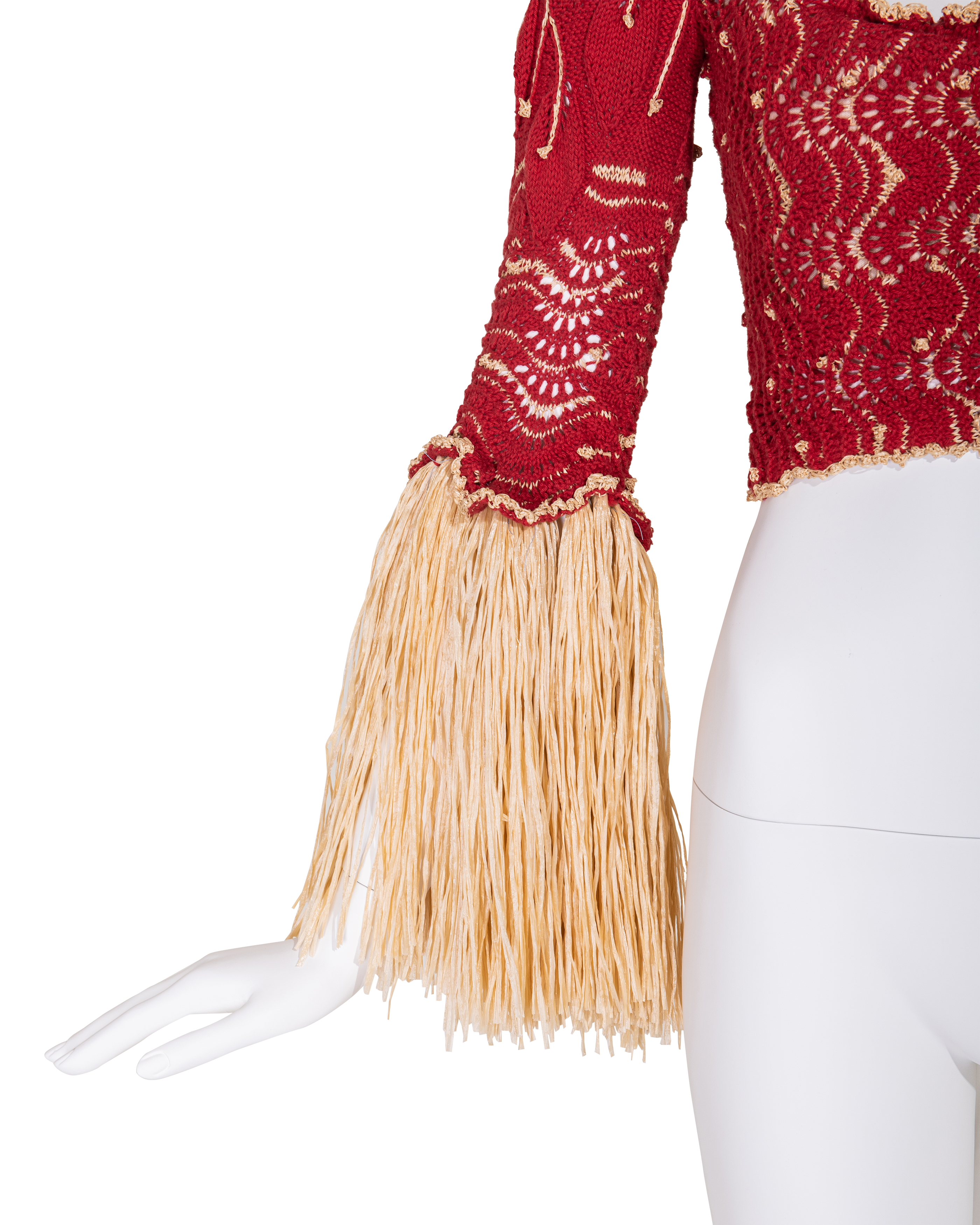 S/S 1995 Red Knit Corset Top with Raffia Sleeves
