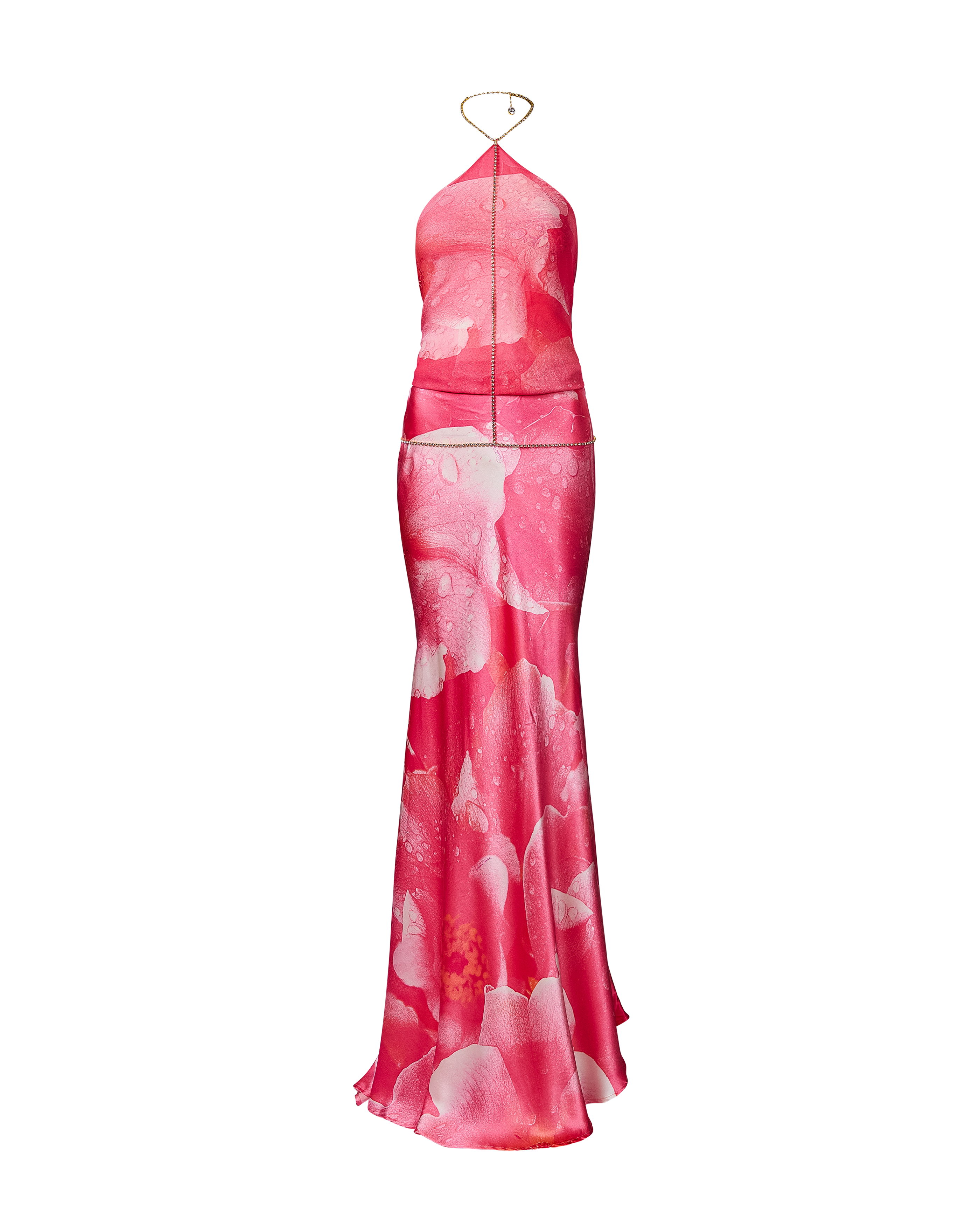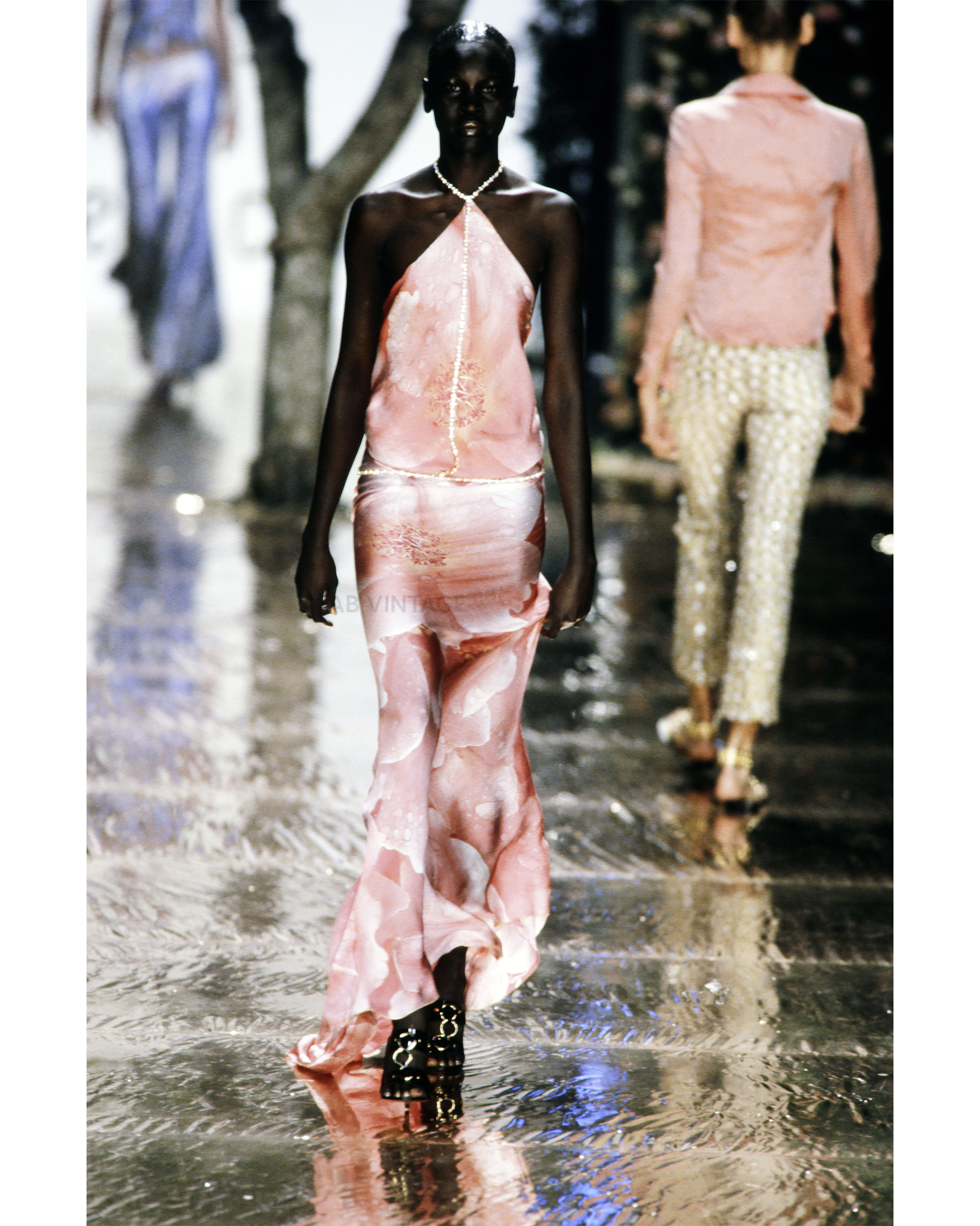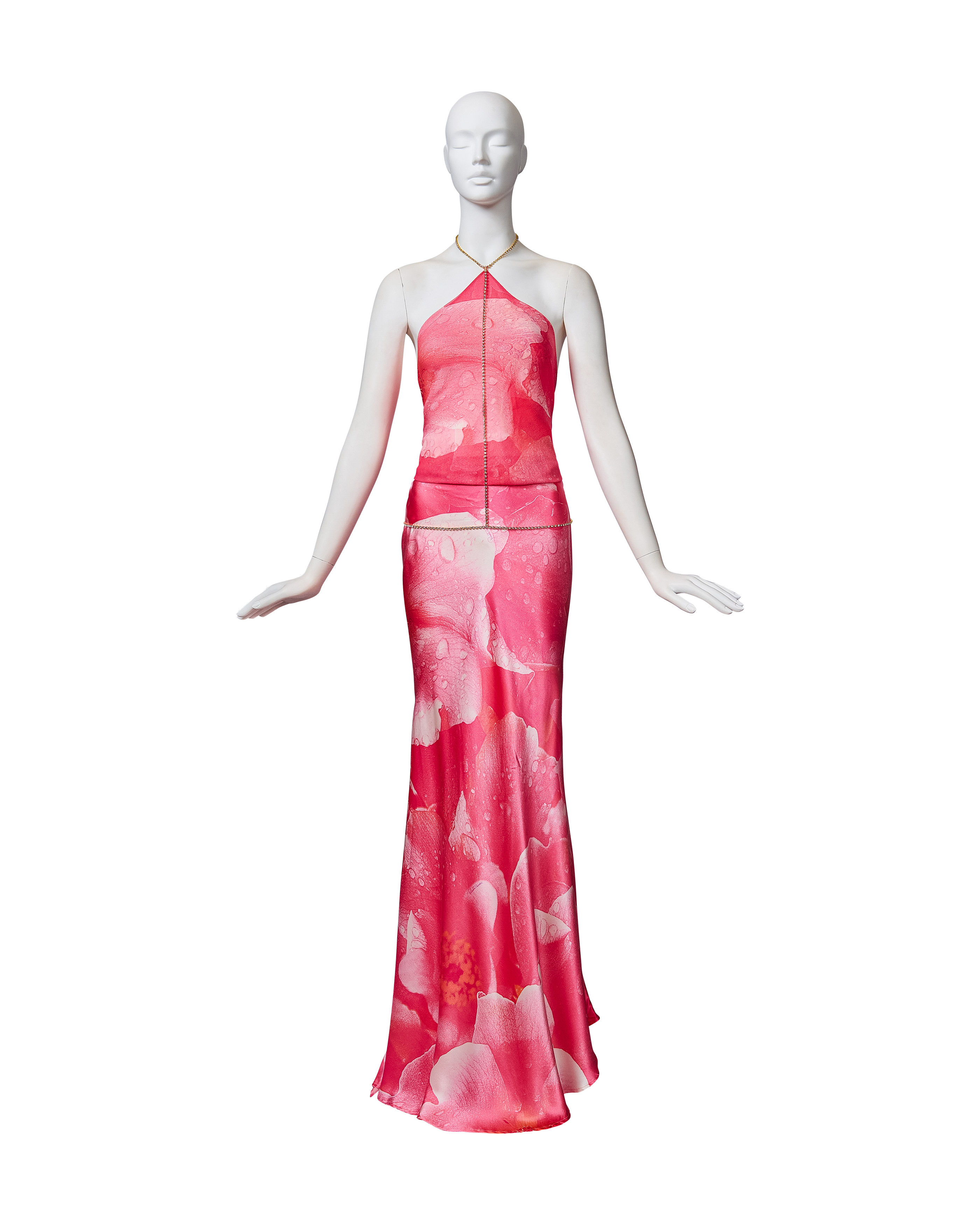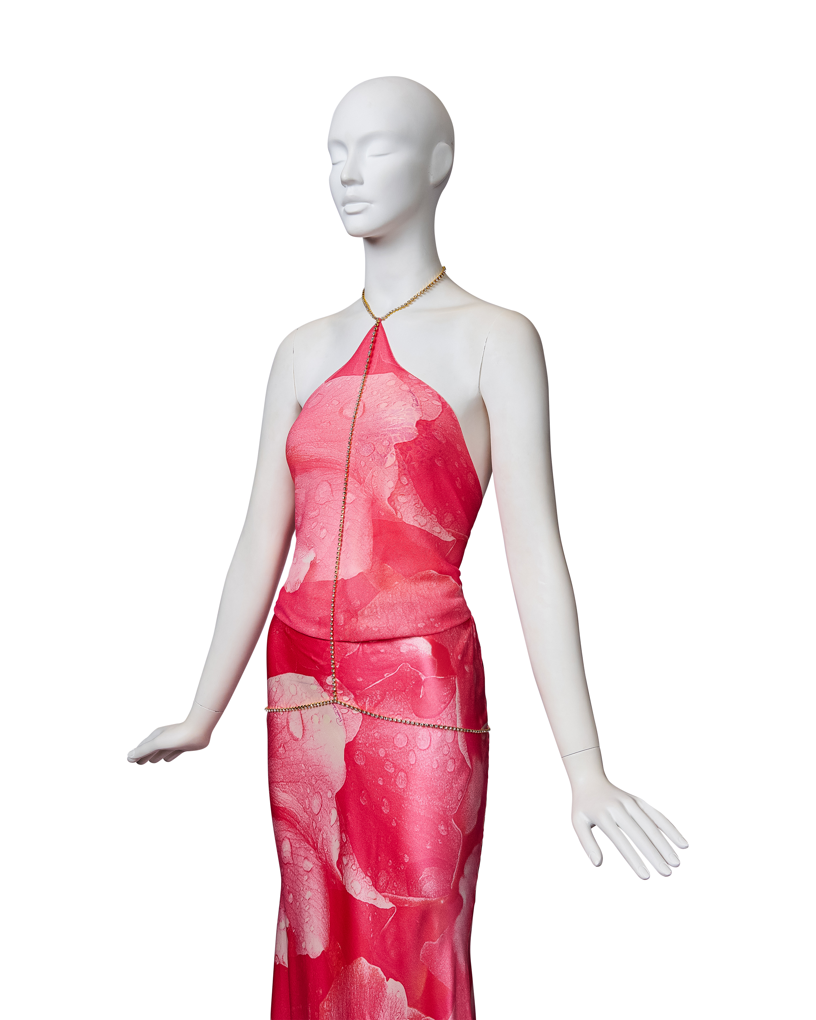 S/S 2000 Pink Patterned Halter Gown and Body Chain