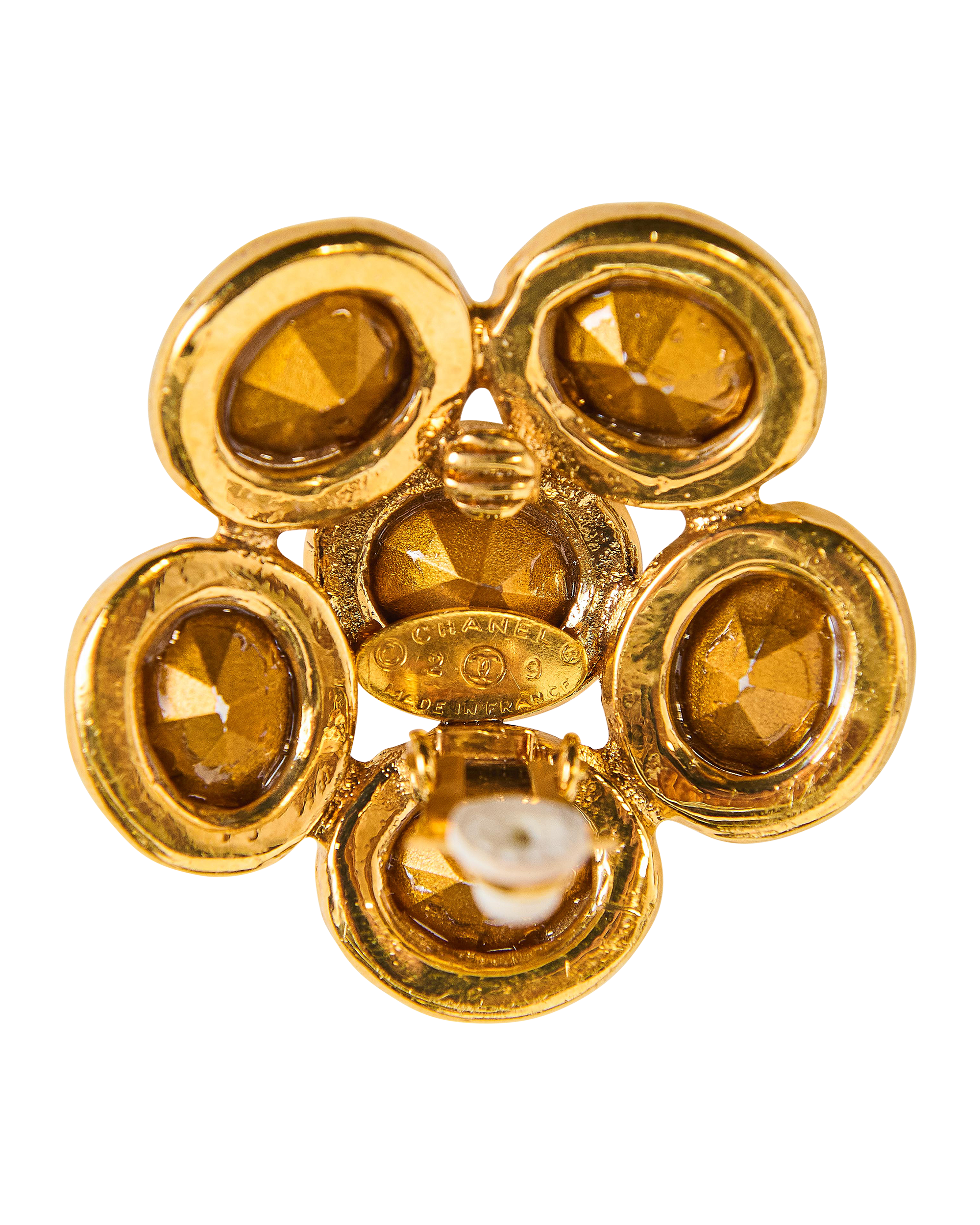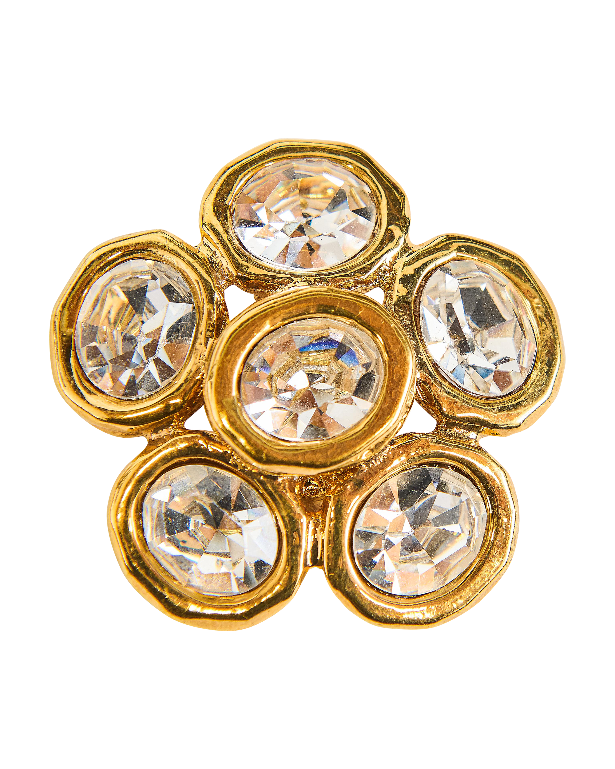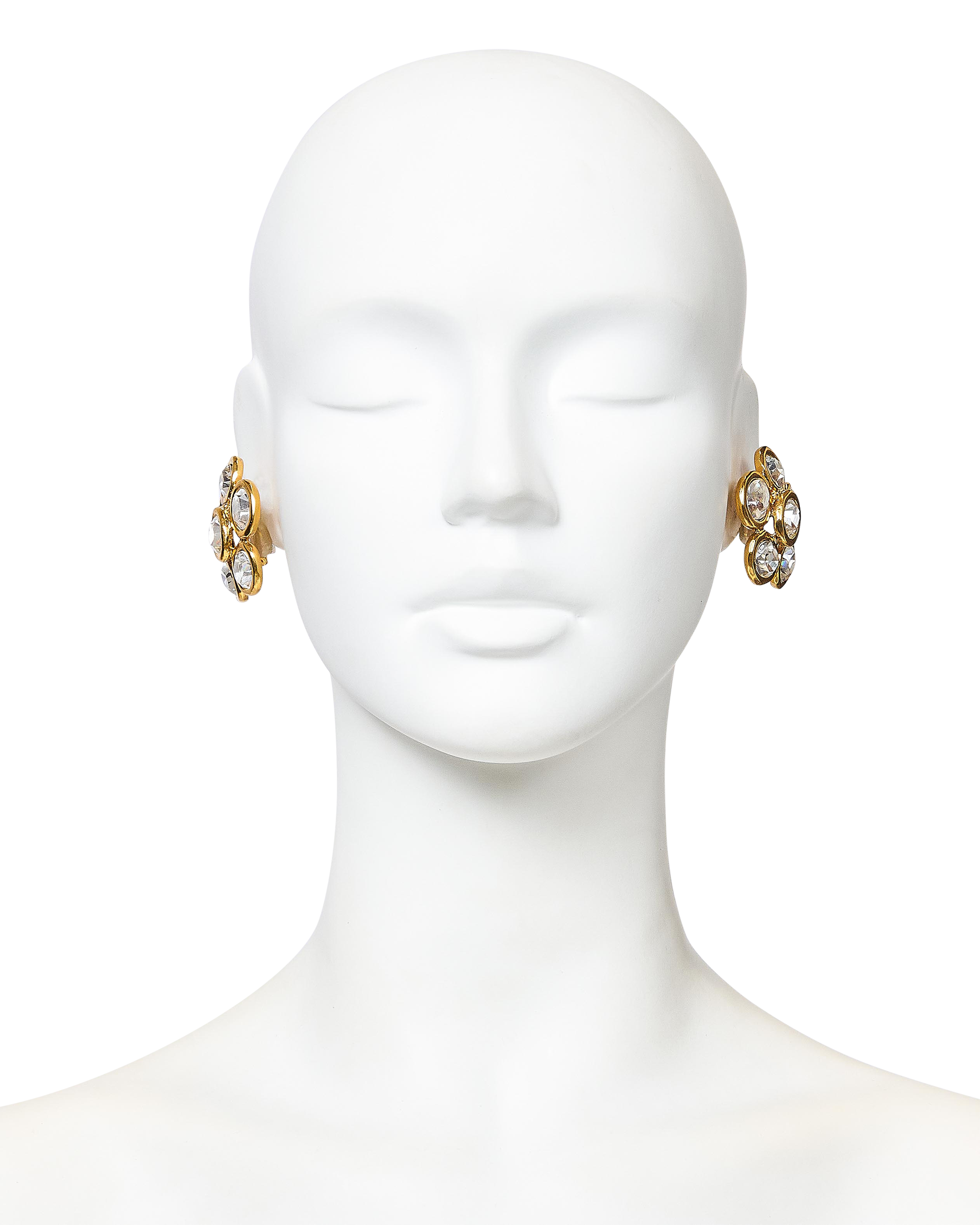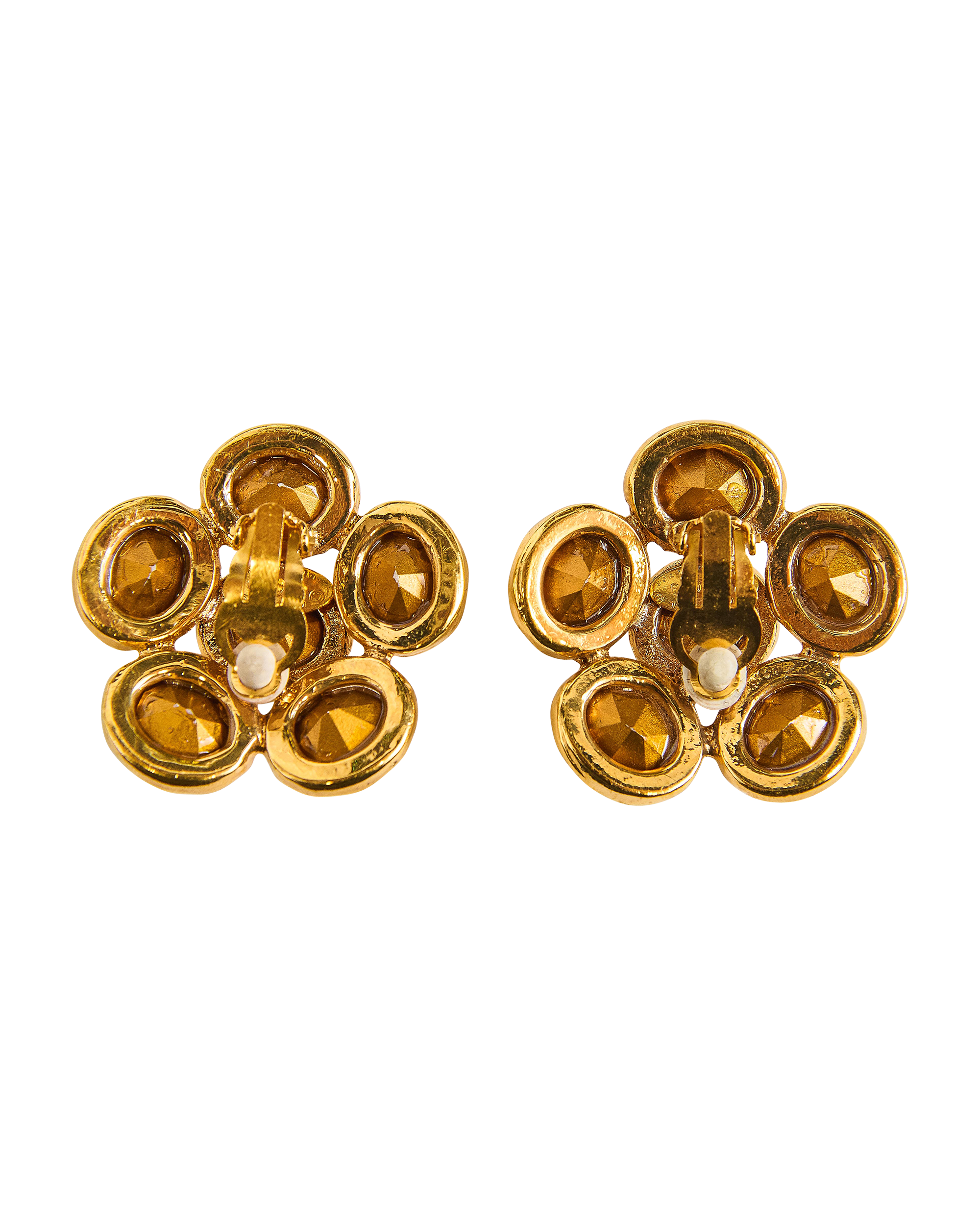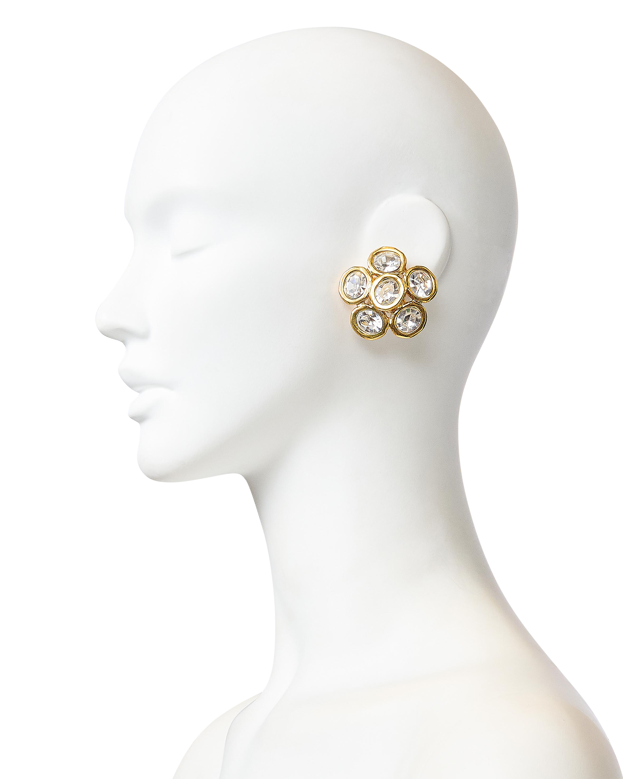 A/W 1992 Gold and Crystal Flower Clip-On Earrings