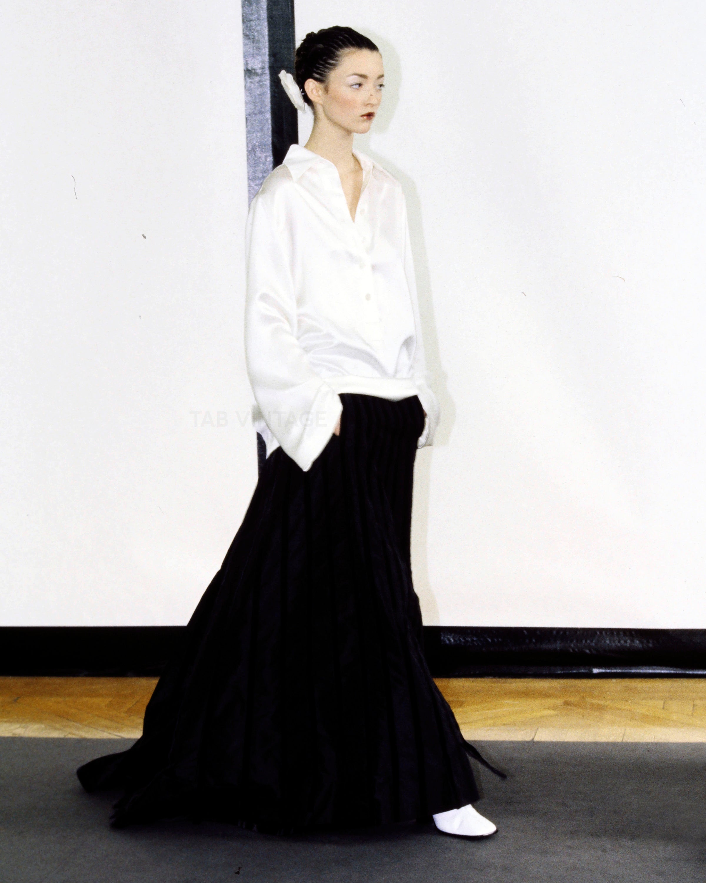 A/W 1998 Black Silk and Velvet Paneled Skirt with Train