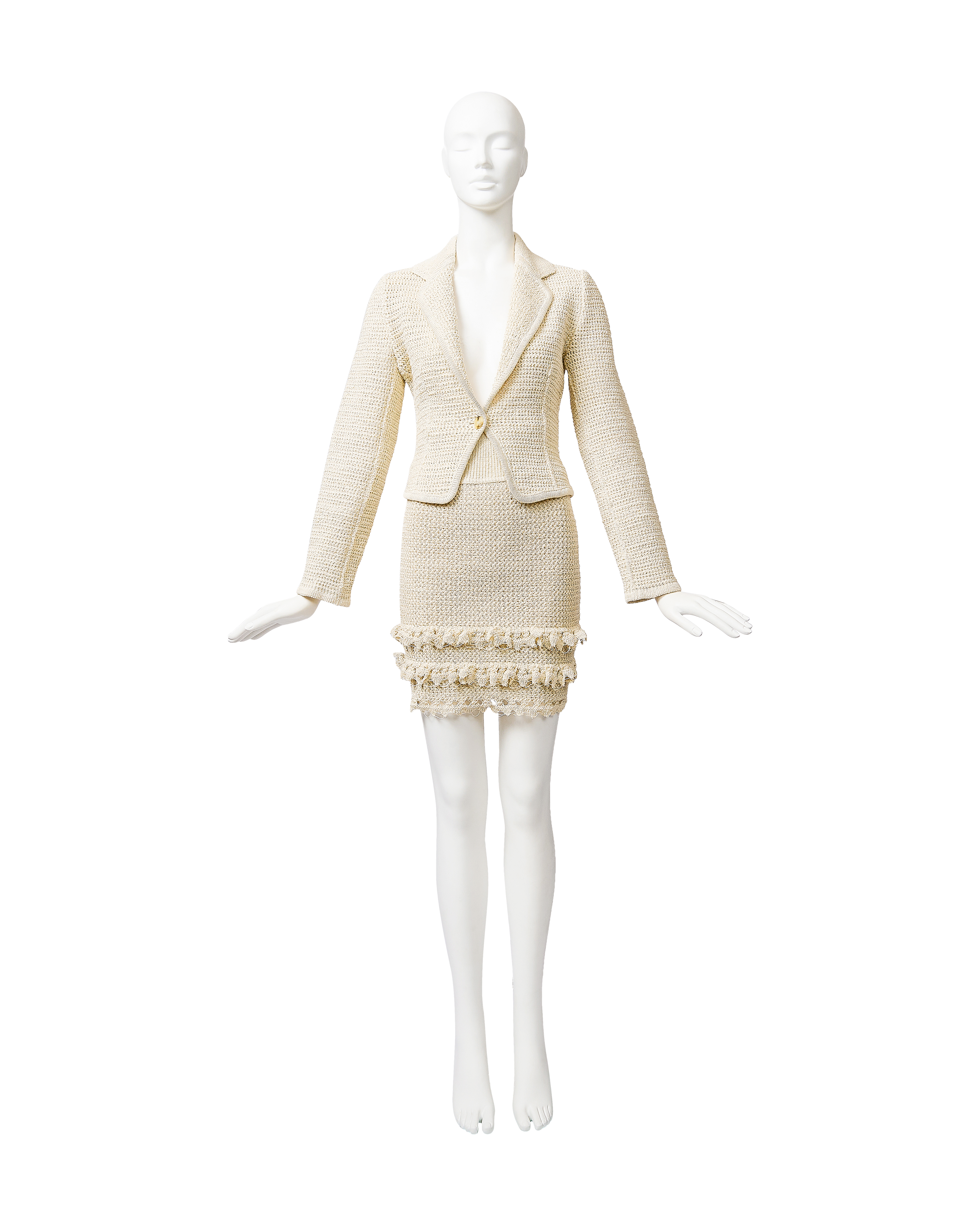 S/S 1990 Ecru Crochet Skirt Suit Set