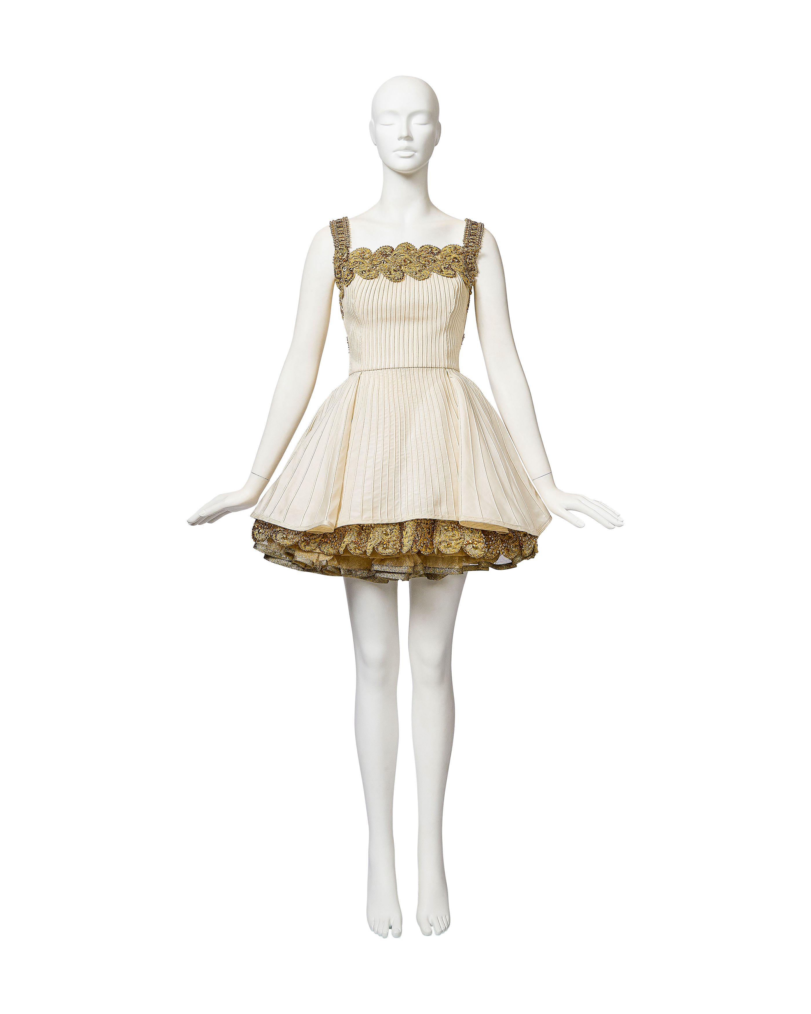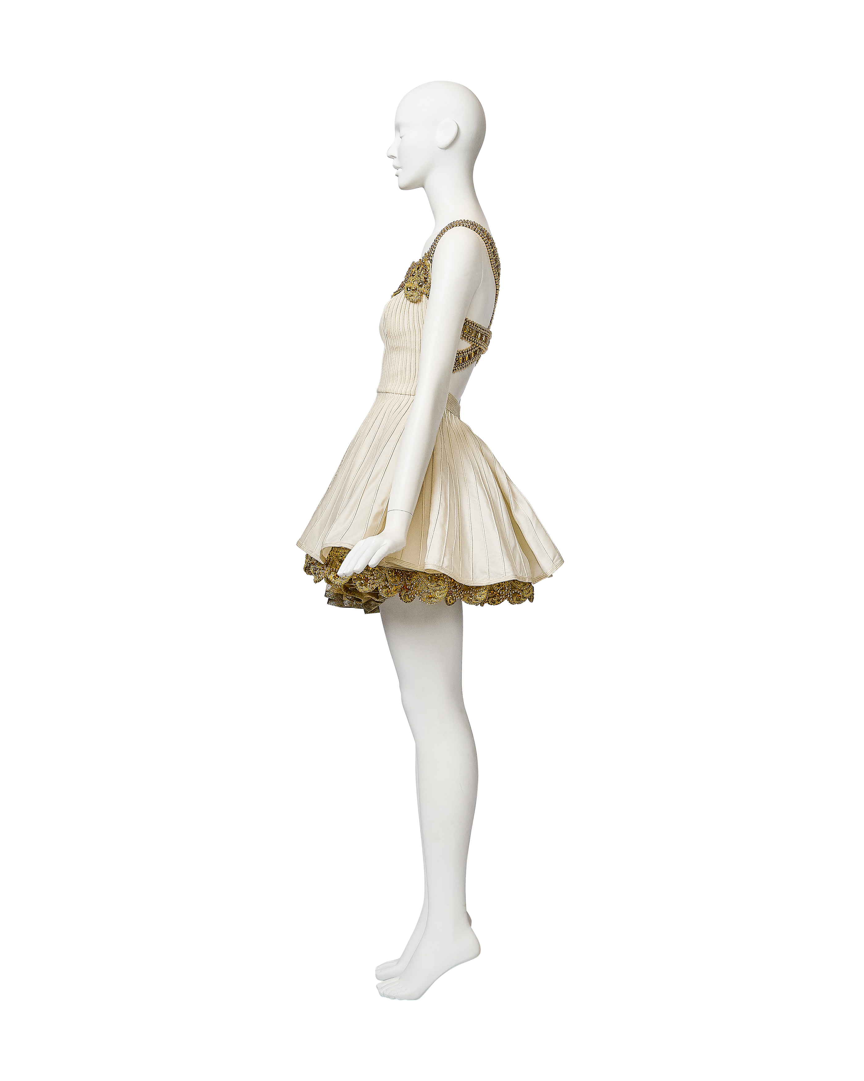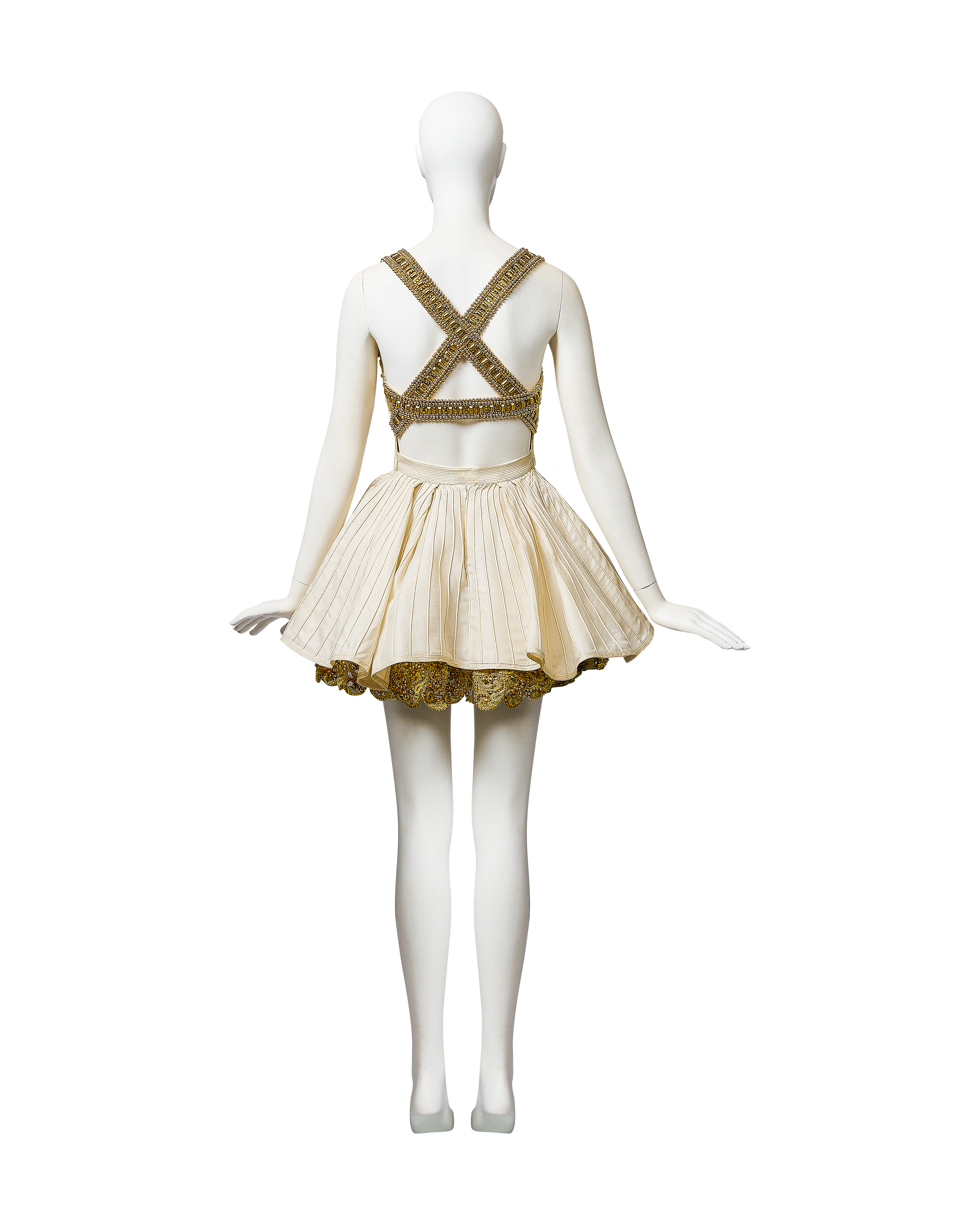 S/S 1992 Ivory and Metallic Gold Embellished Mini Dress and Gold Underskirt
