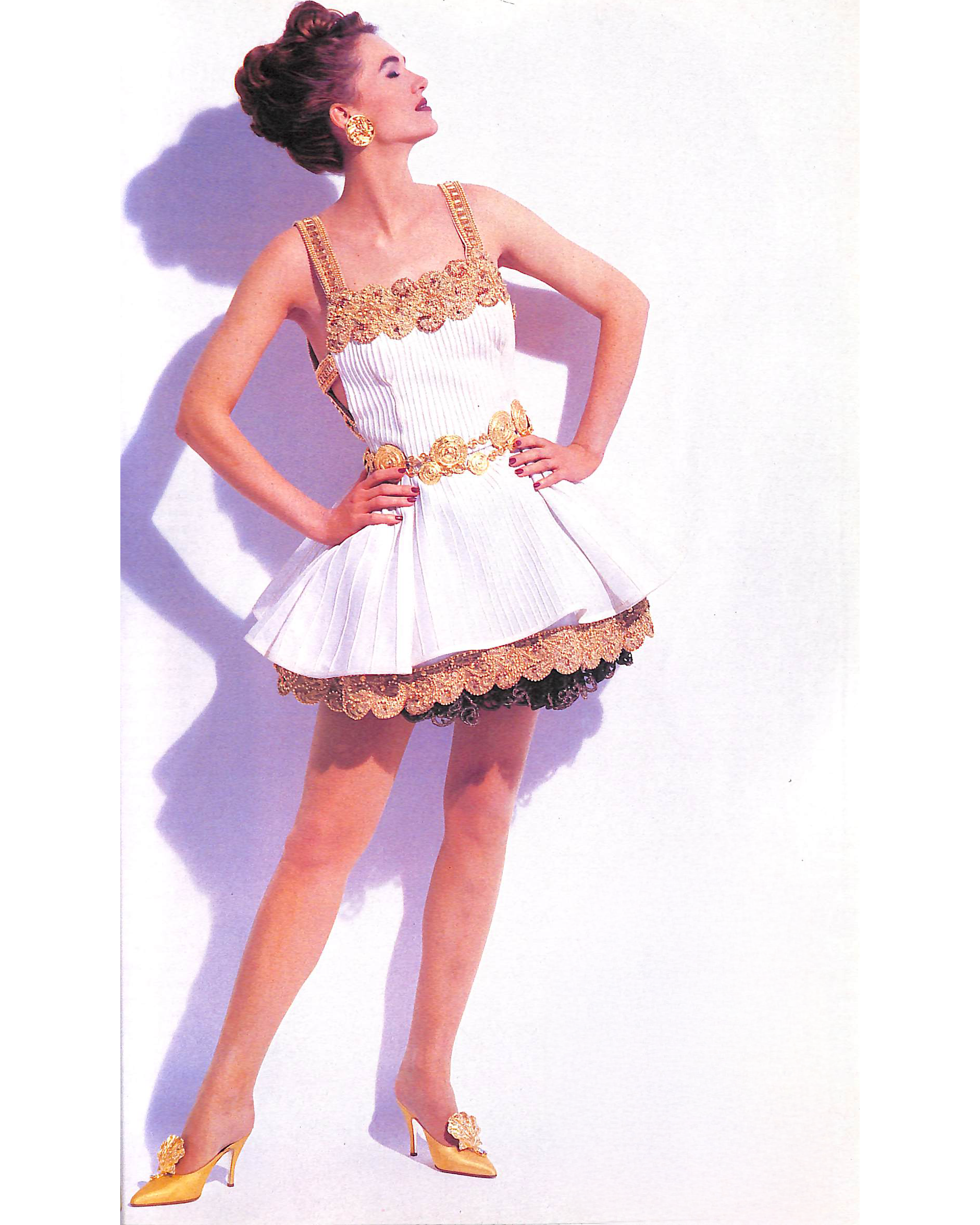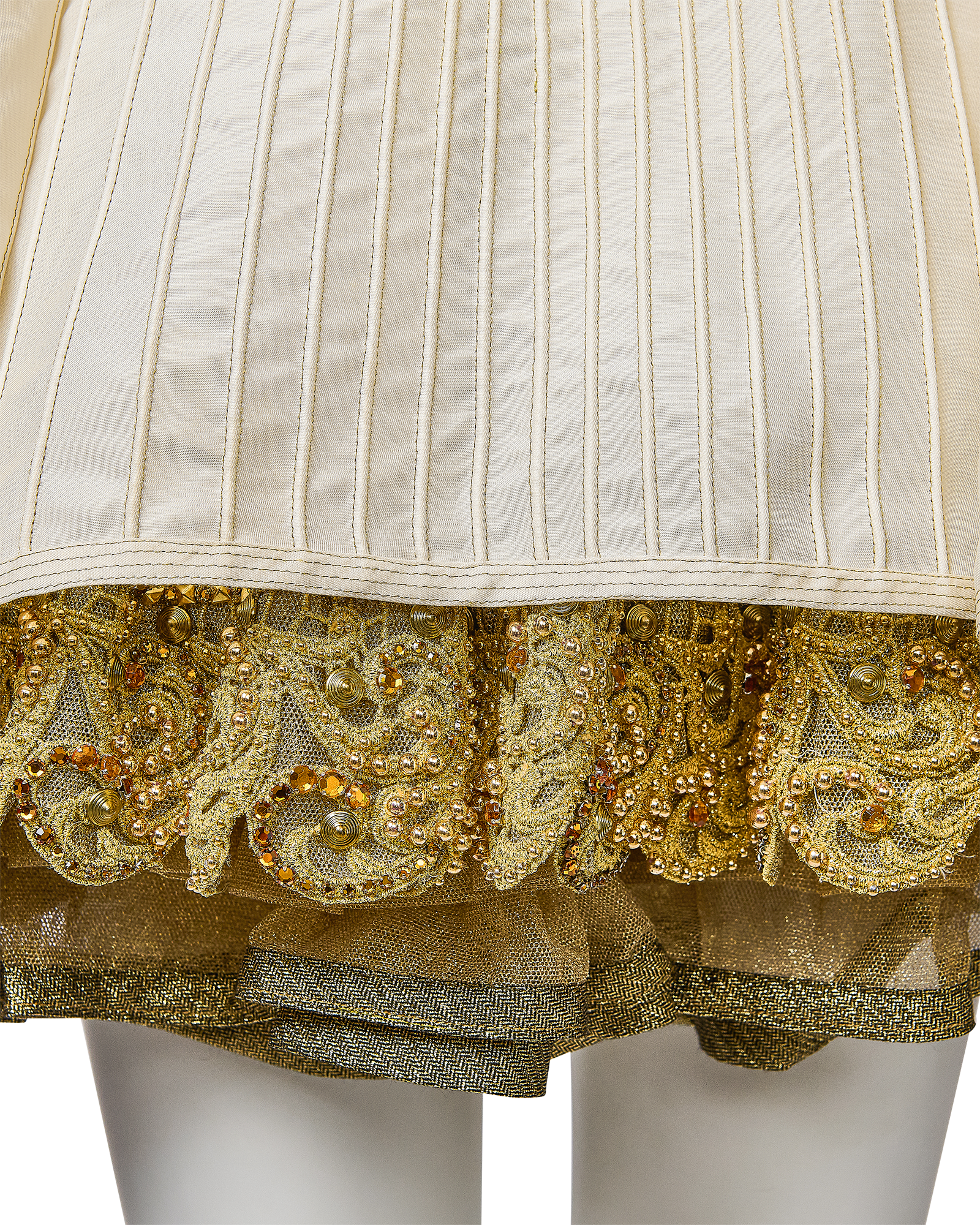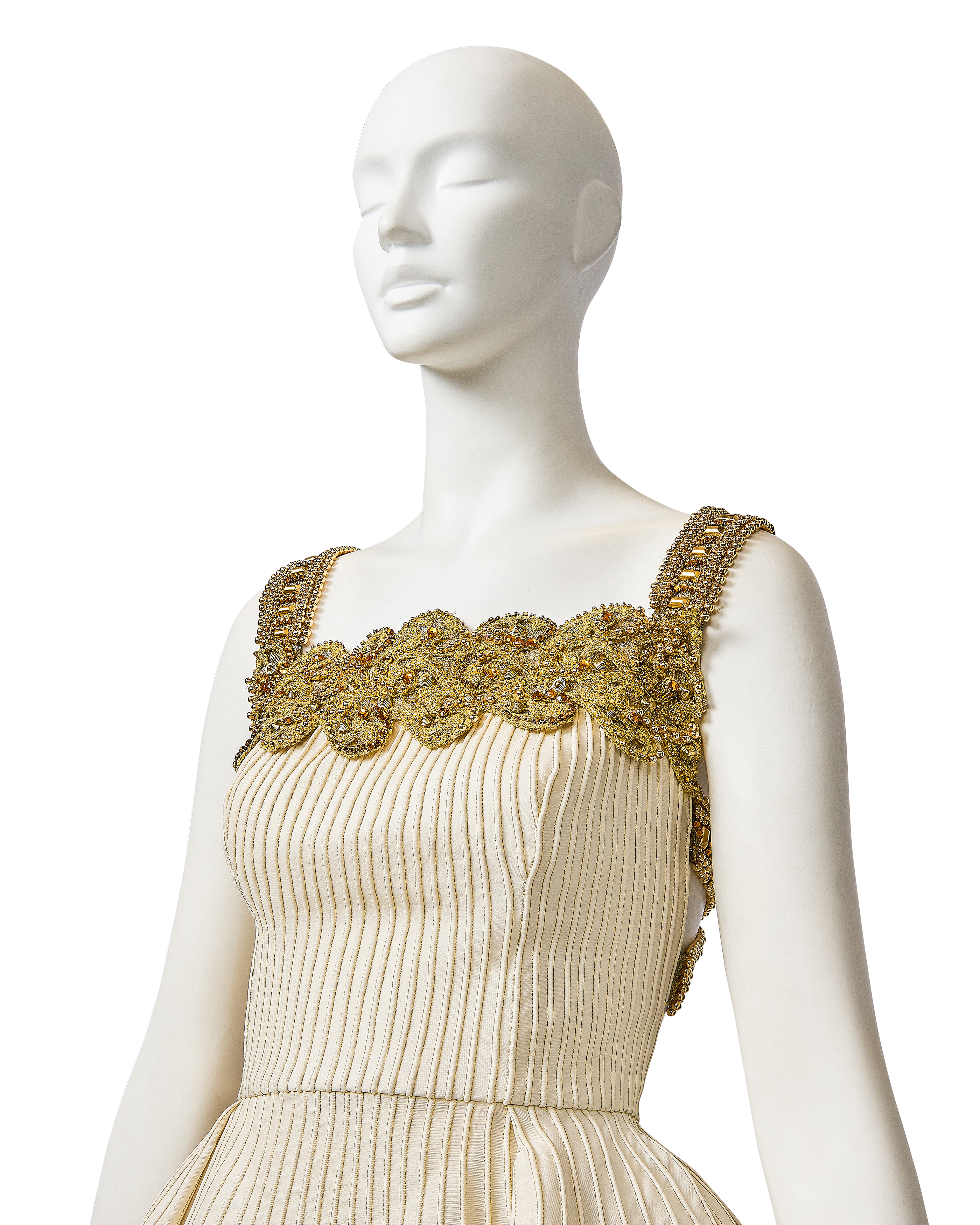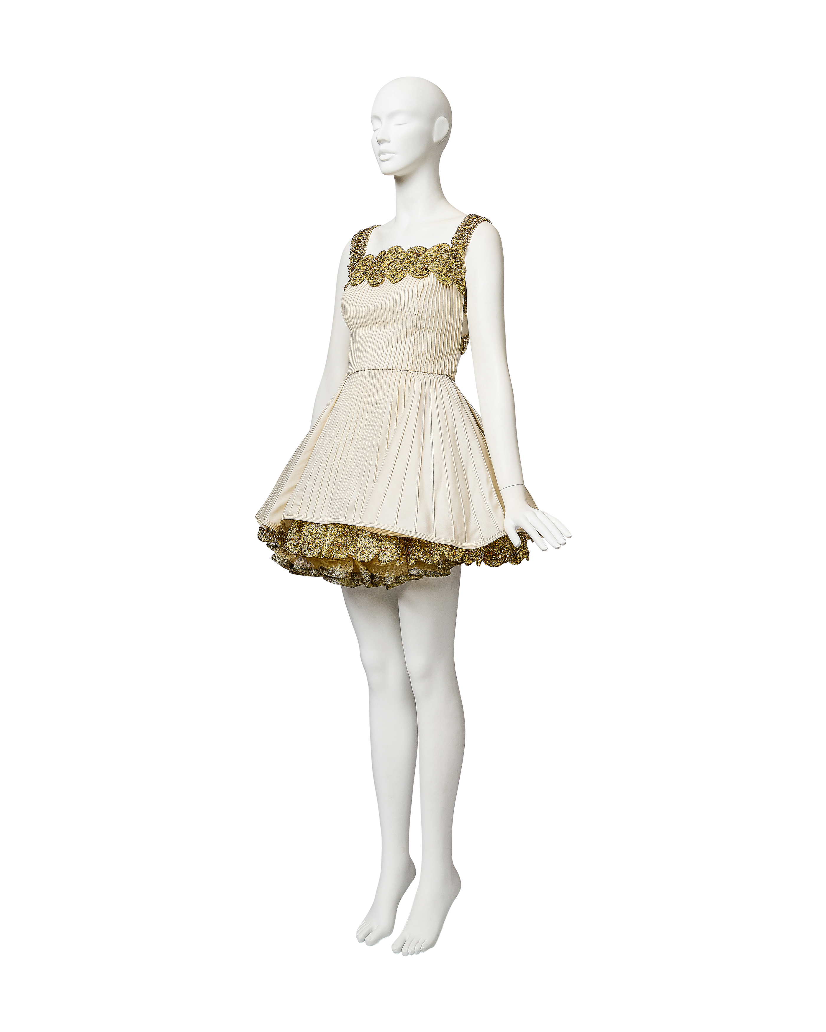 S/S 1992 Ivory and Metallic Gold Embellished Mini Dress and Gold Underskirt
