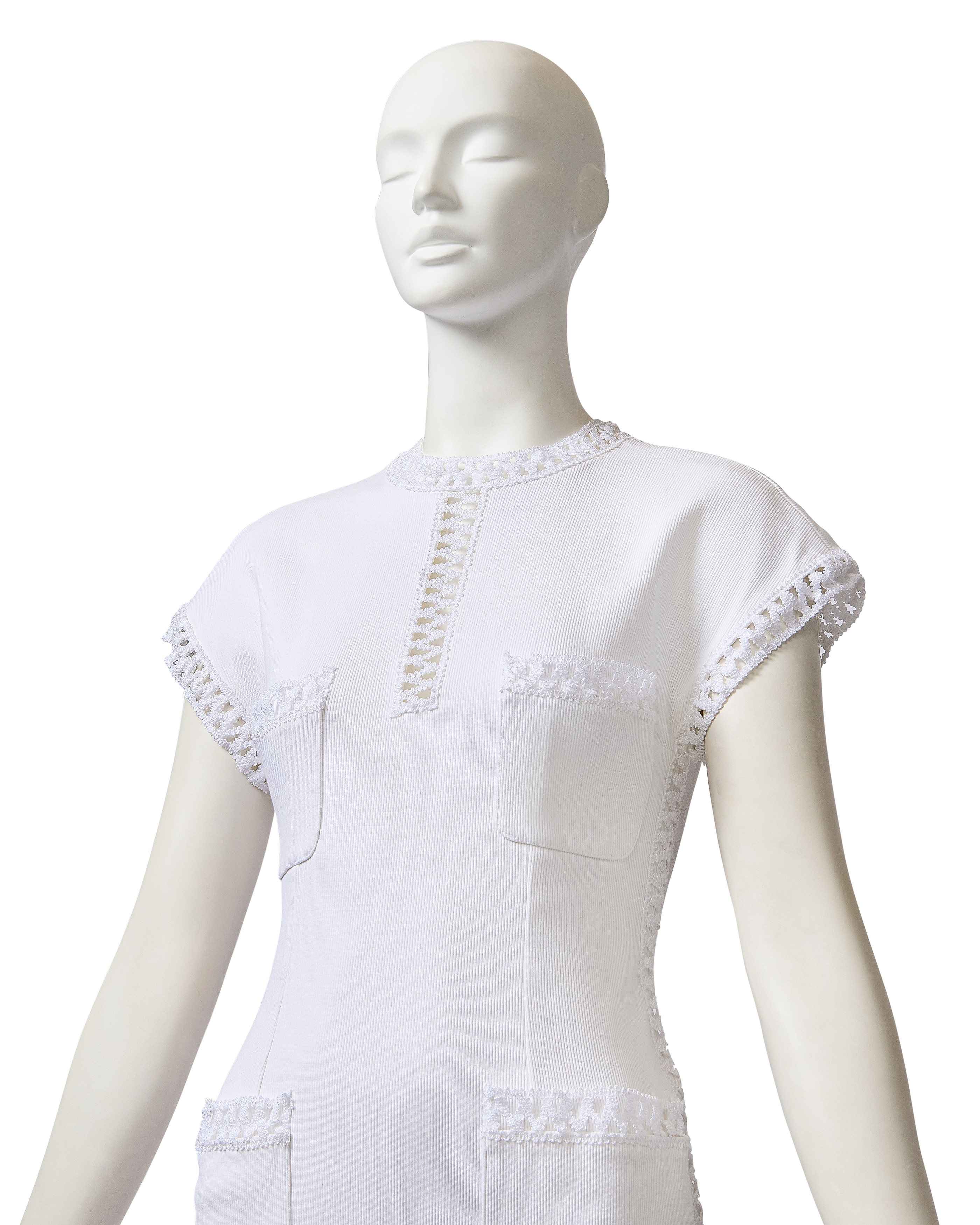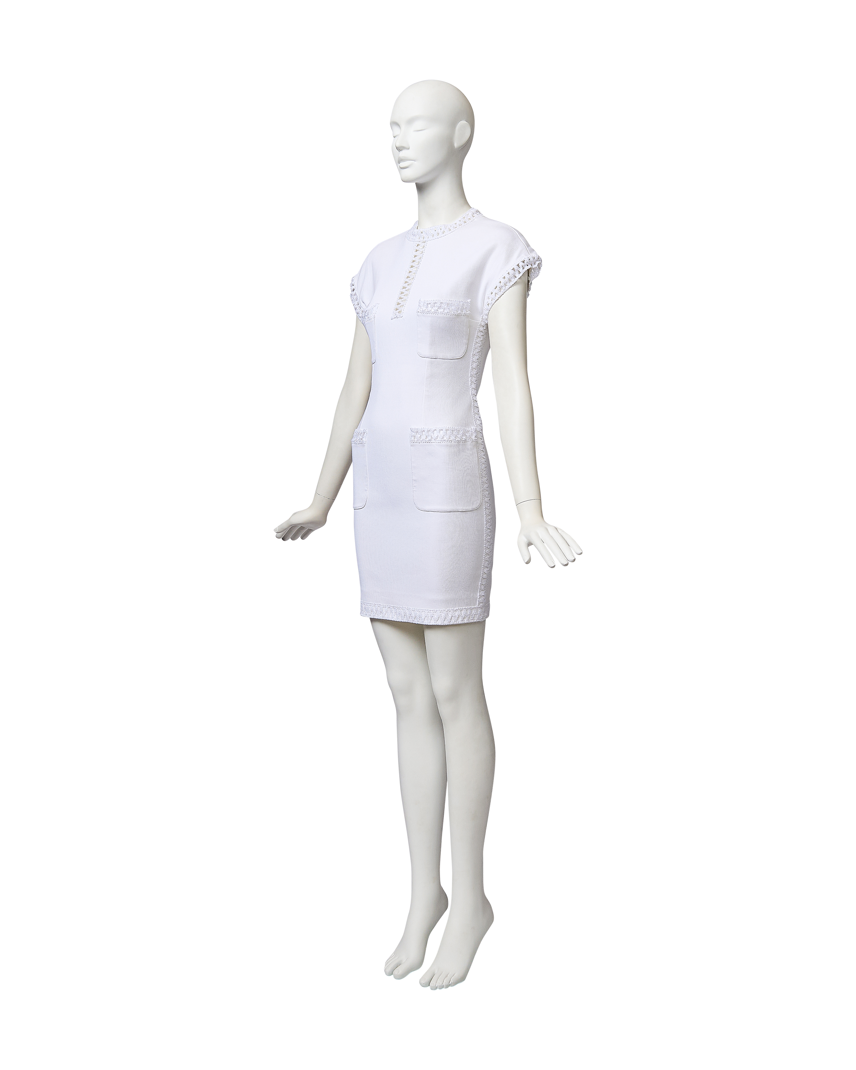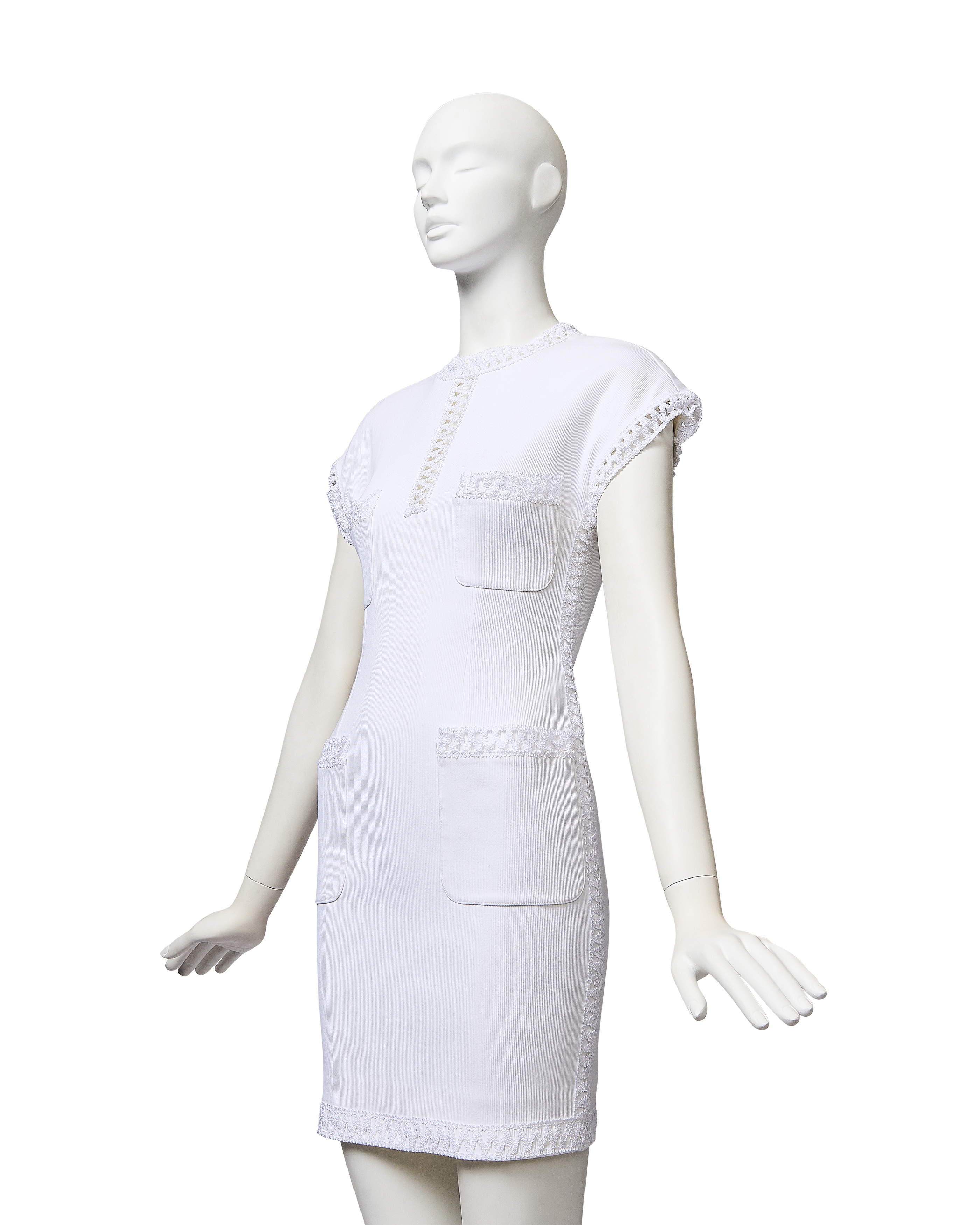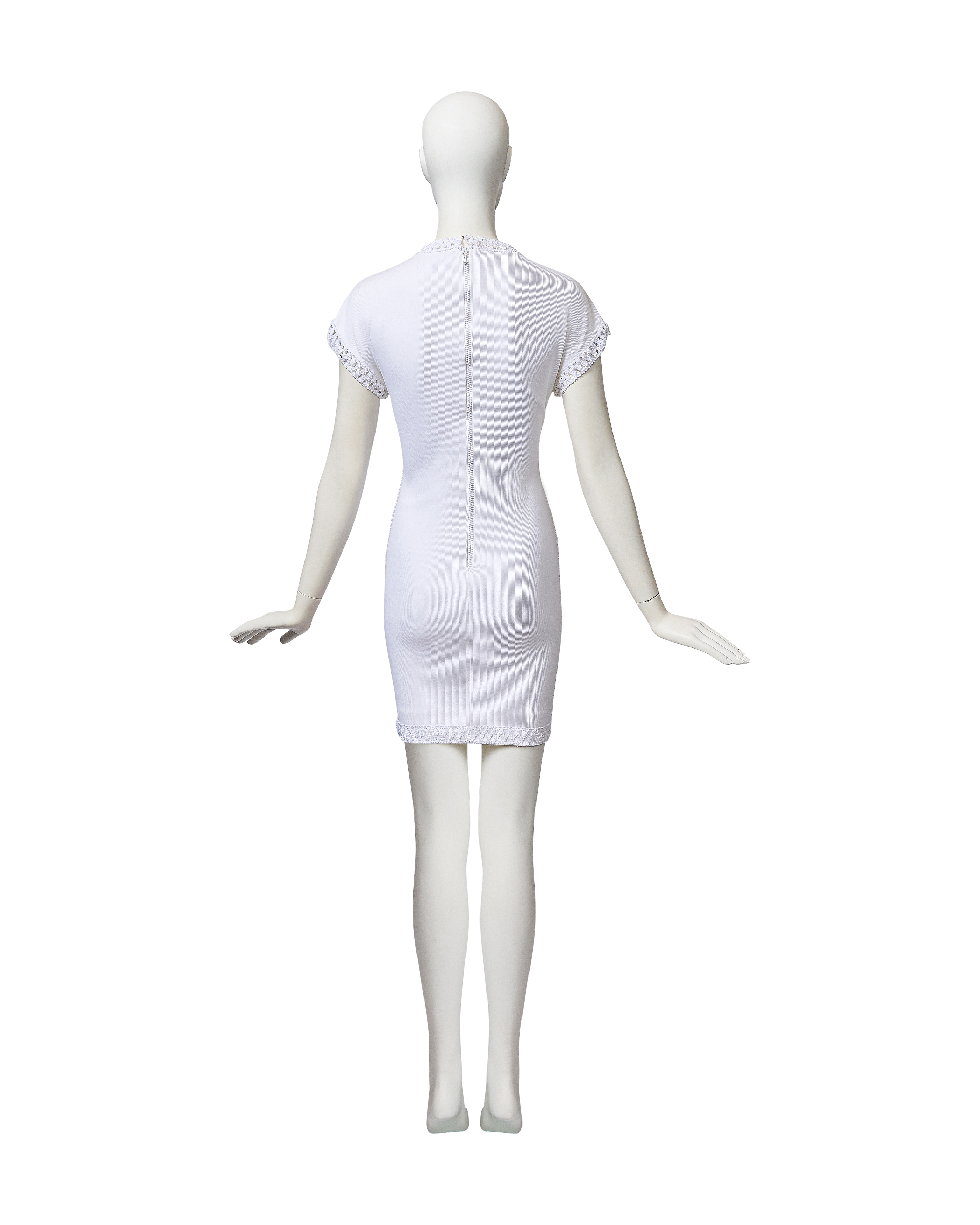 S/S 1992 White Woven Trim Short Sleeve Mini Dress