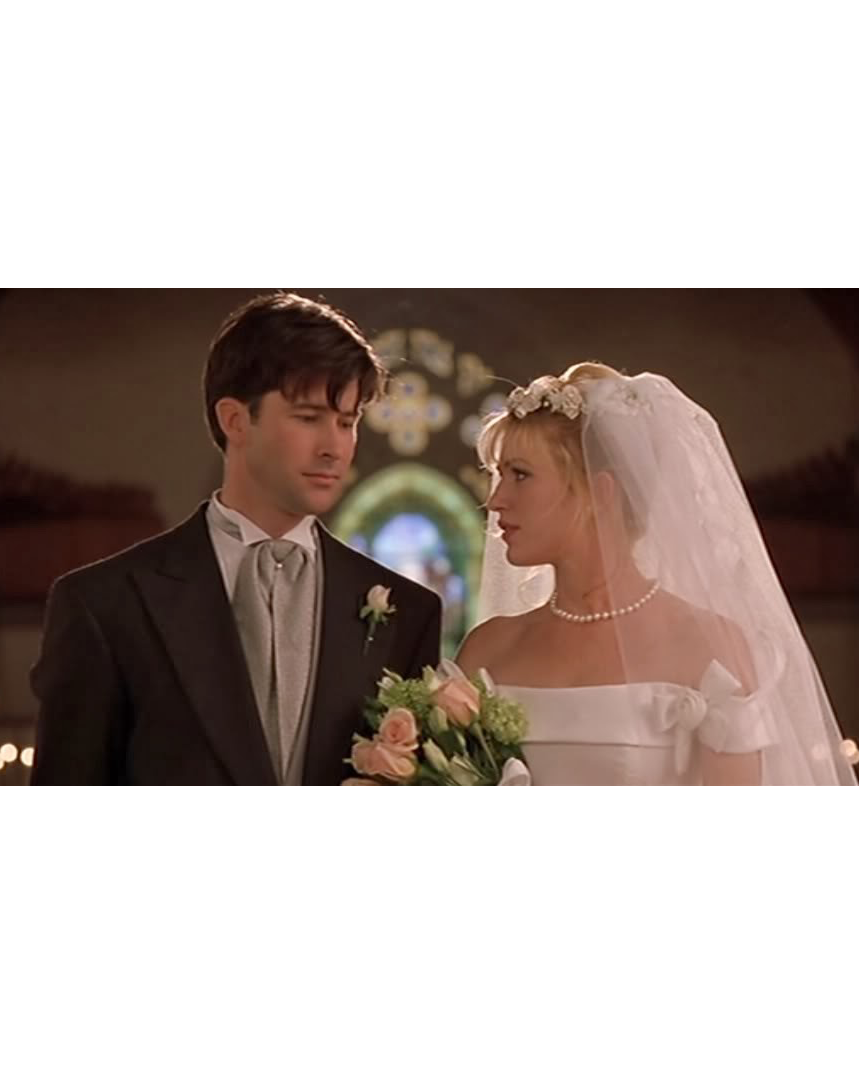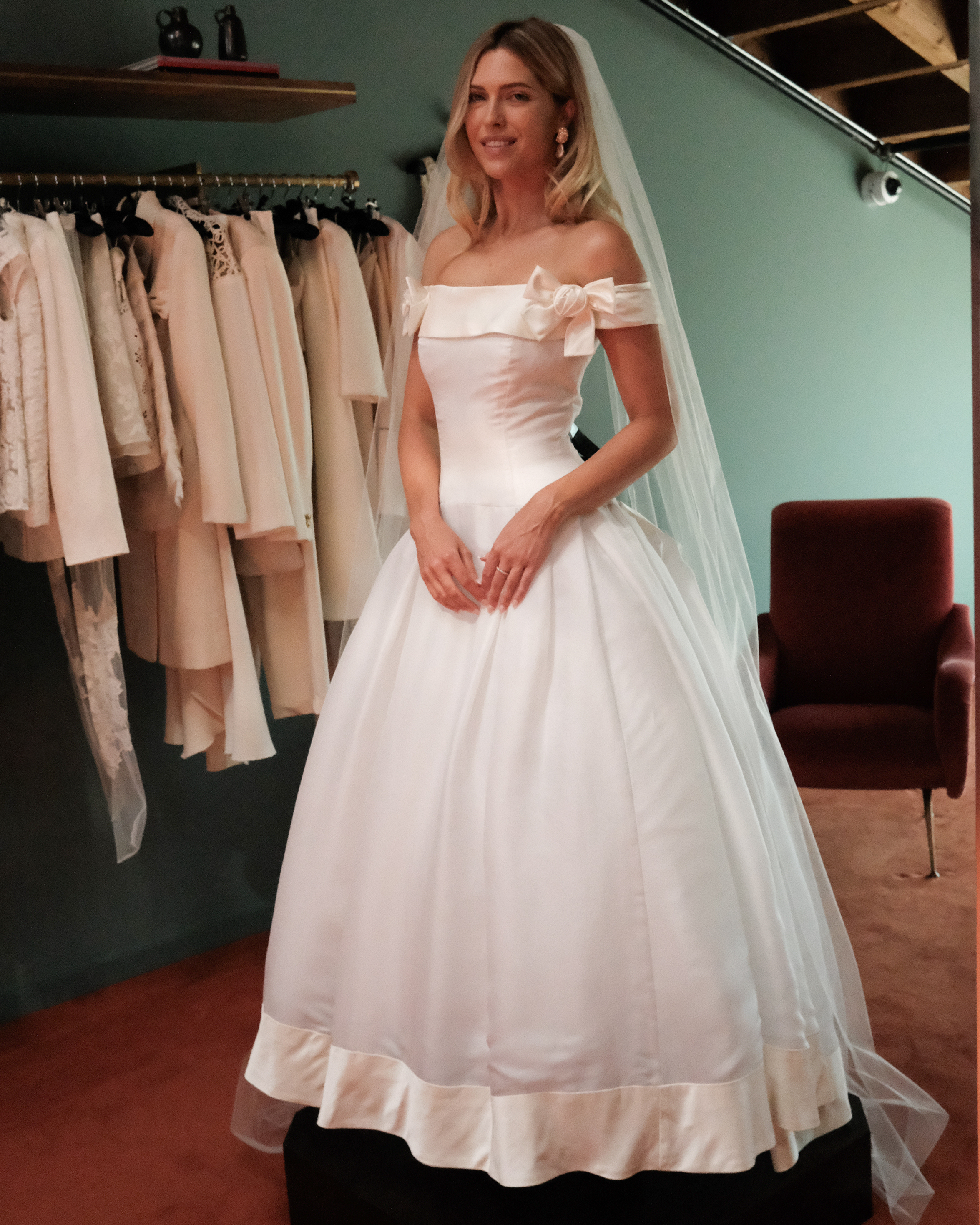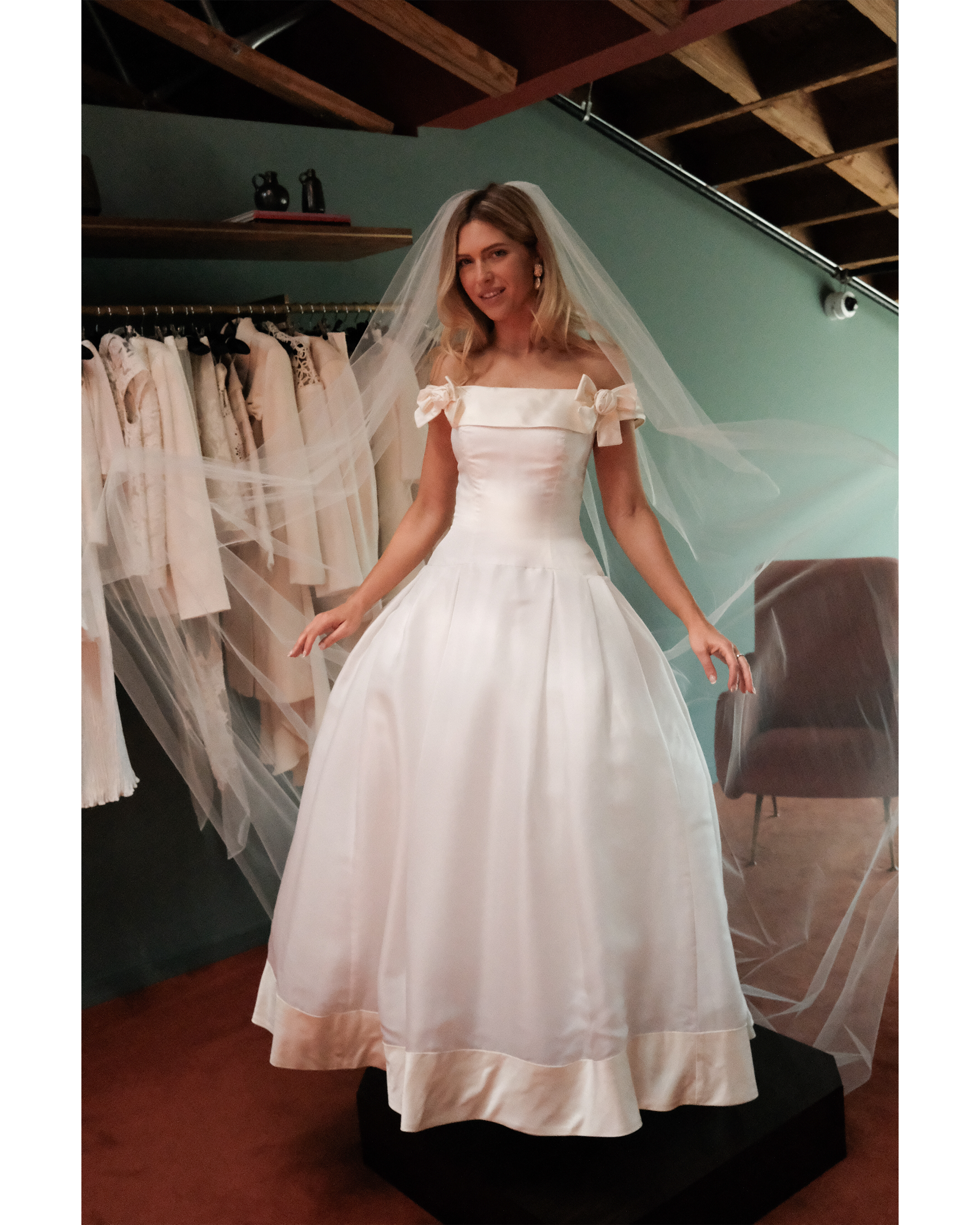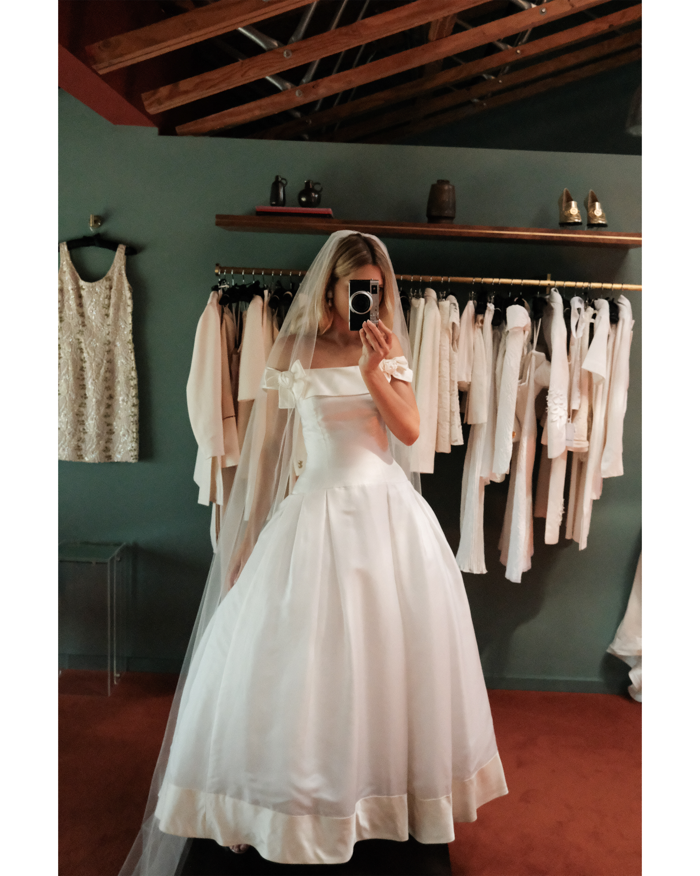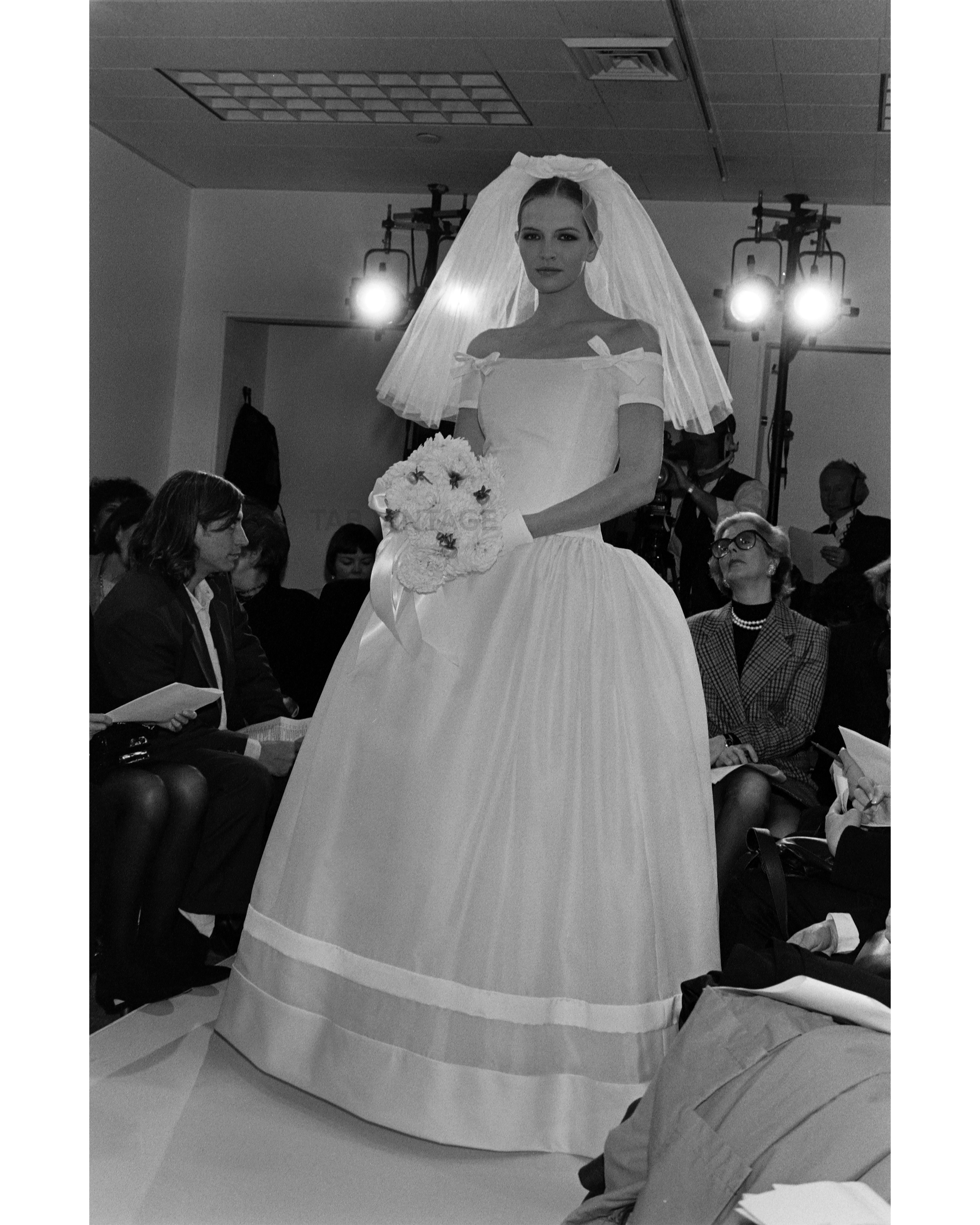1999 Off-Shoulder Ivory Ballgown with Ecru Bow Details
