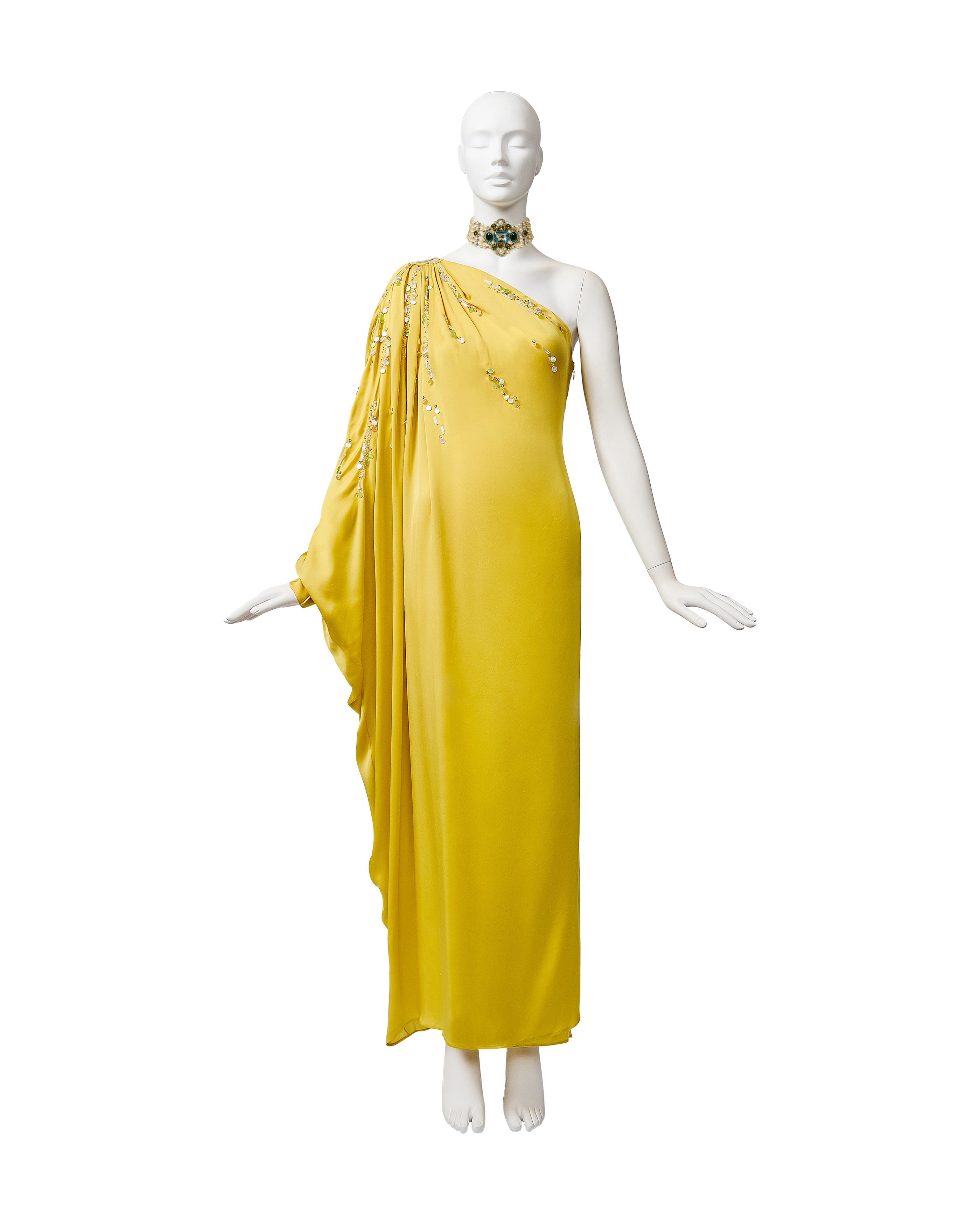 Resort 2008 Christian Dior by John Galliano faux pearl and jewel-tone rhinestone choker necklace. Five-strand faux pearl necklace with olive green, emerald green and turquoise center silver-plated rhinestone detail. Two silver-tone chains at nape of neck for adjustable sizing when worn, with small stamped 'D' at end of chains. As seen on the runway, repeated throughout in various colorways. Missing single pearl at center right (unnoticeable when worn unless upon close inspection). Dress from same collection available for purchase separately via link here (NOT included with purchase of necklace).