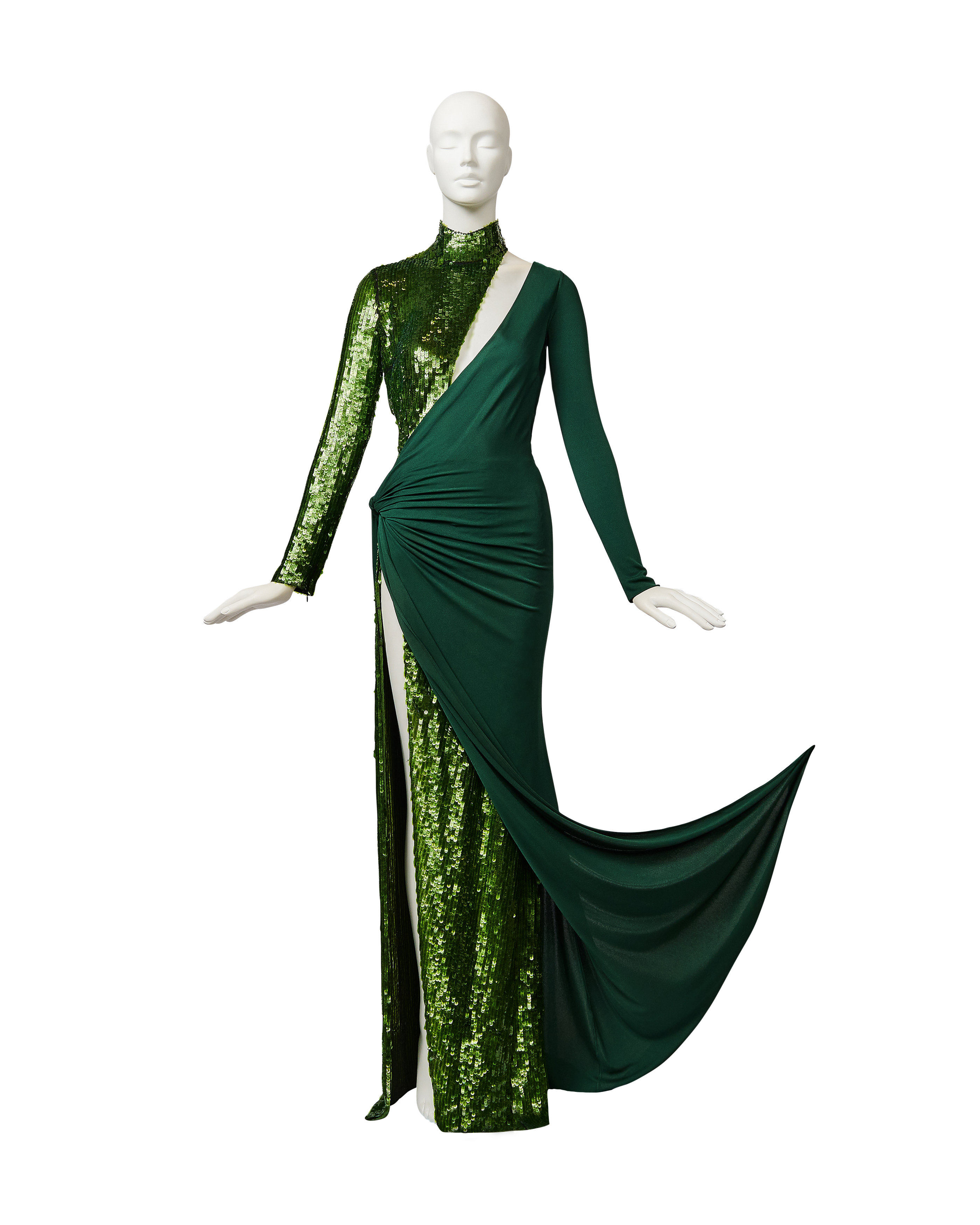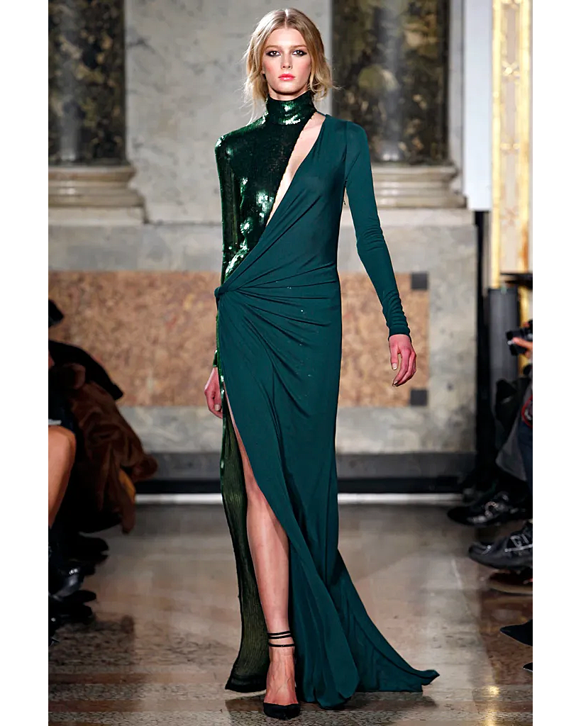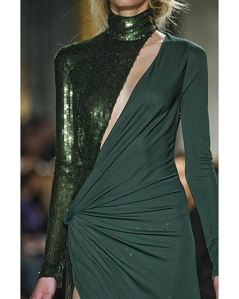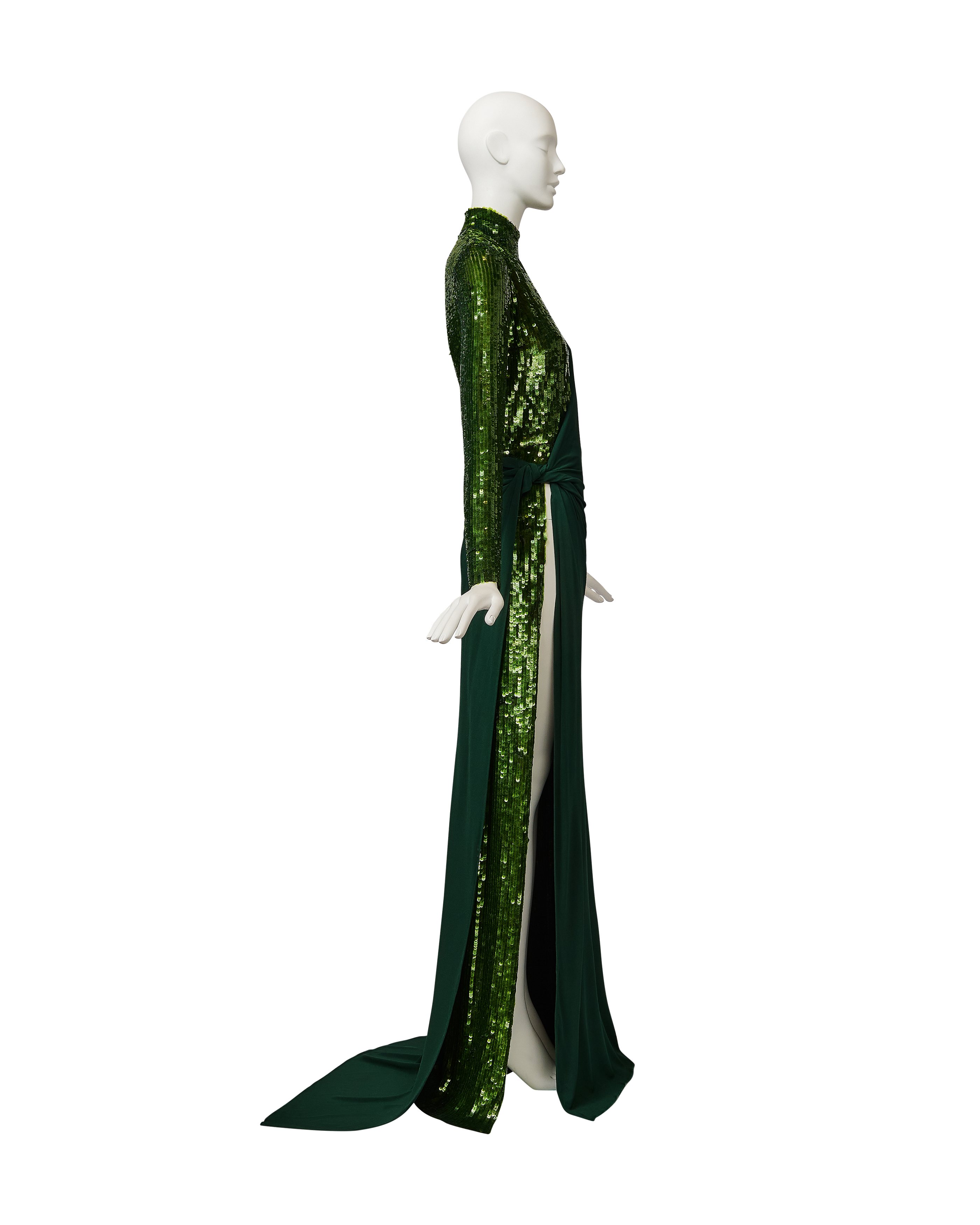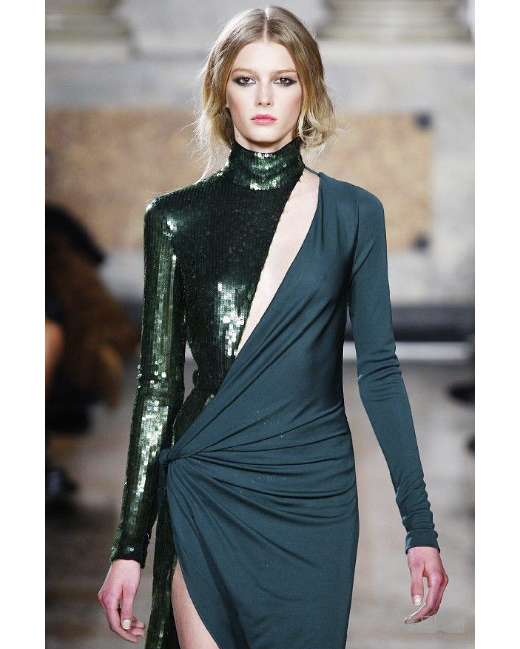 A/W 2011 Green Asymmetrical Sequin Embellished Gown