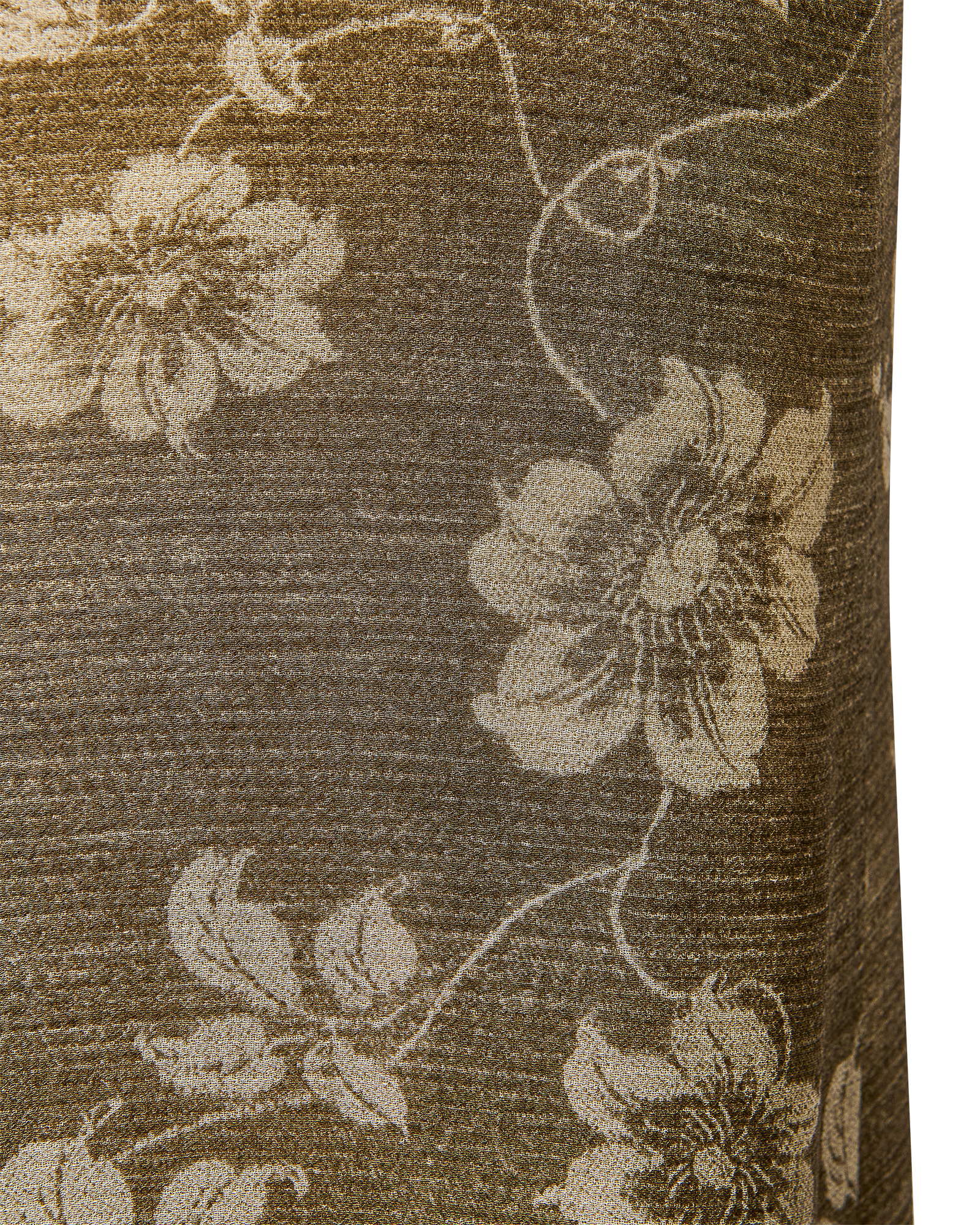 S/S 1994 Calvin Klein Collection brown floral pattern midi slip dress. Sleeveless scoop neck slip dress with ecru floral pattern throughout. Concealed back zip closure. Fabric Contents: 100% Silk; lined with light gray semi-sheer Silk lining. As seen on the runway (Look #60). In excellent vintage condition with no flaws to note.