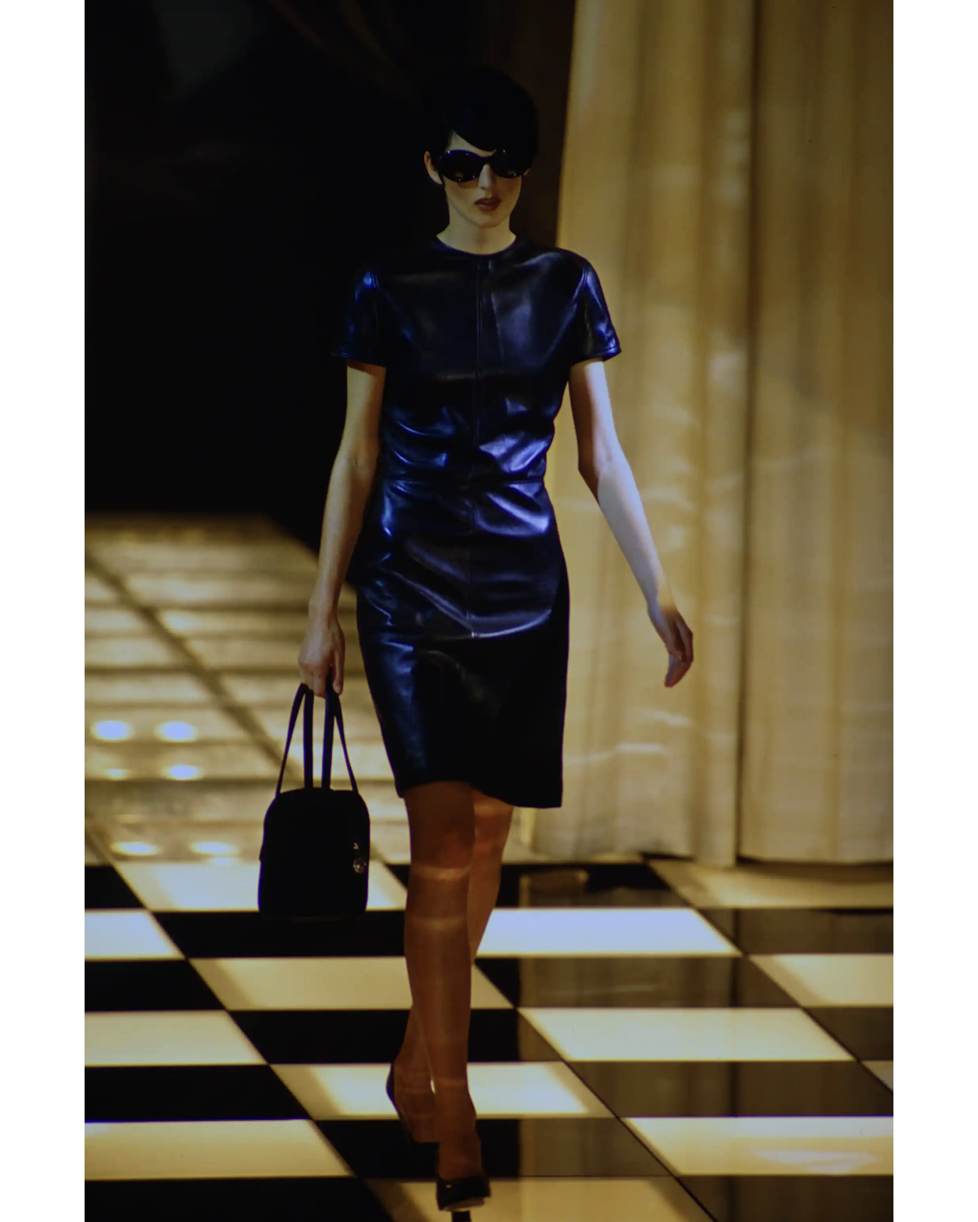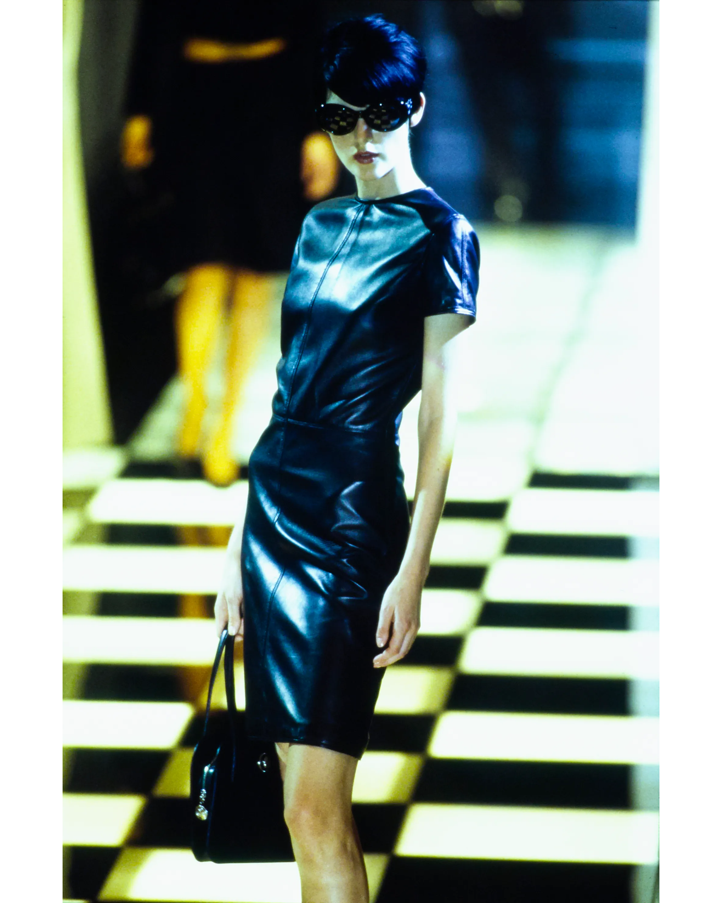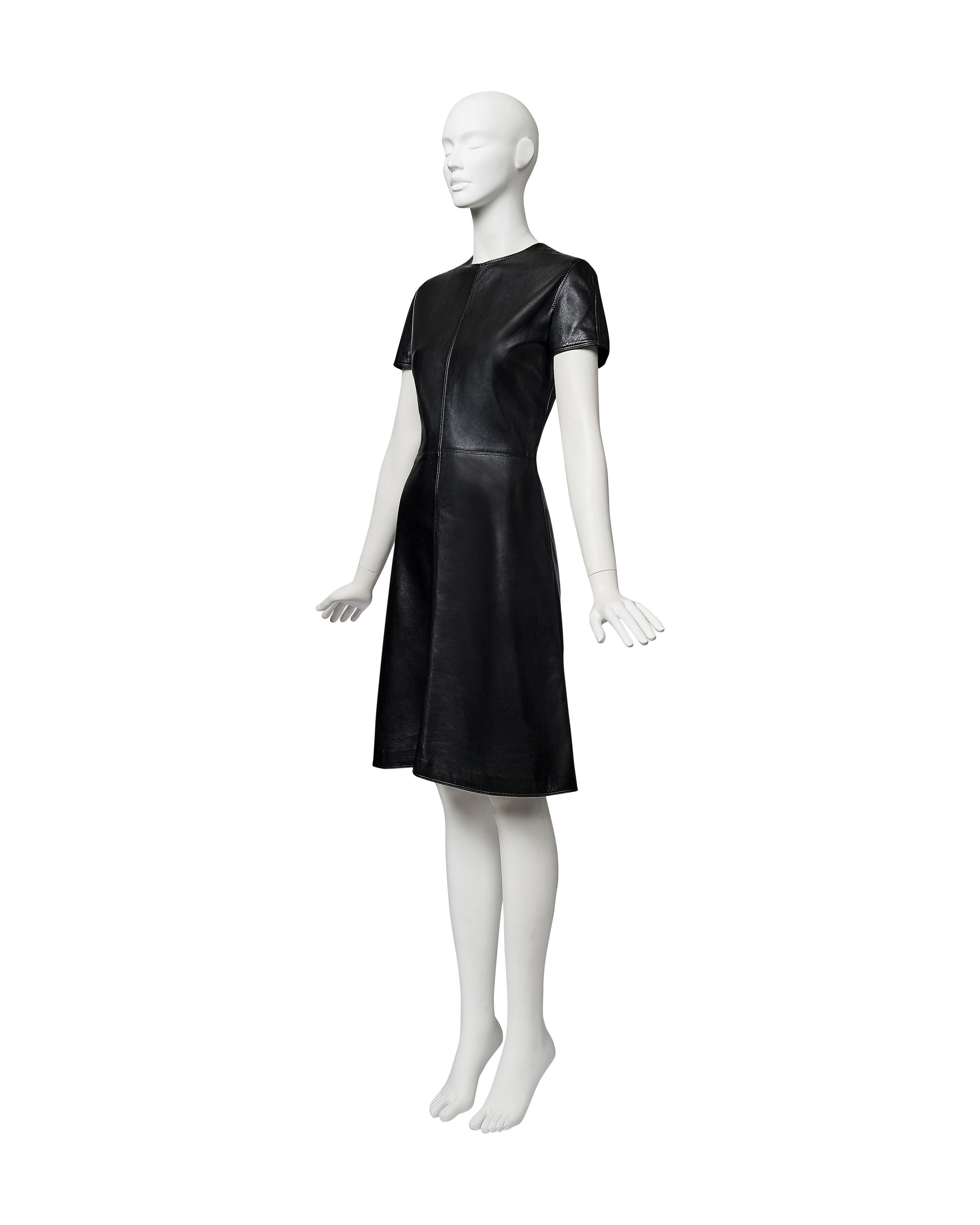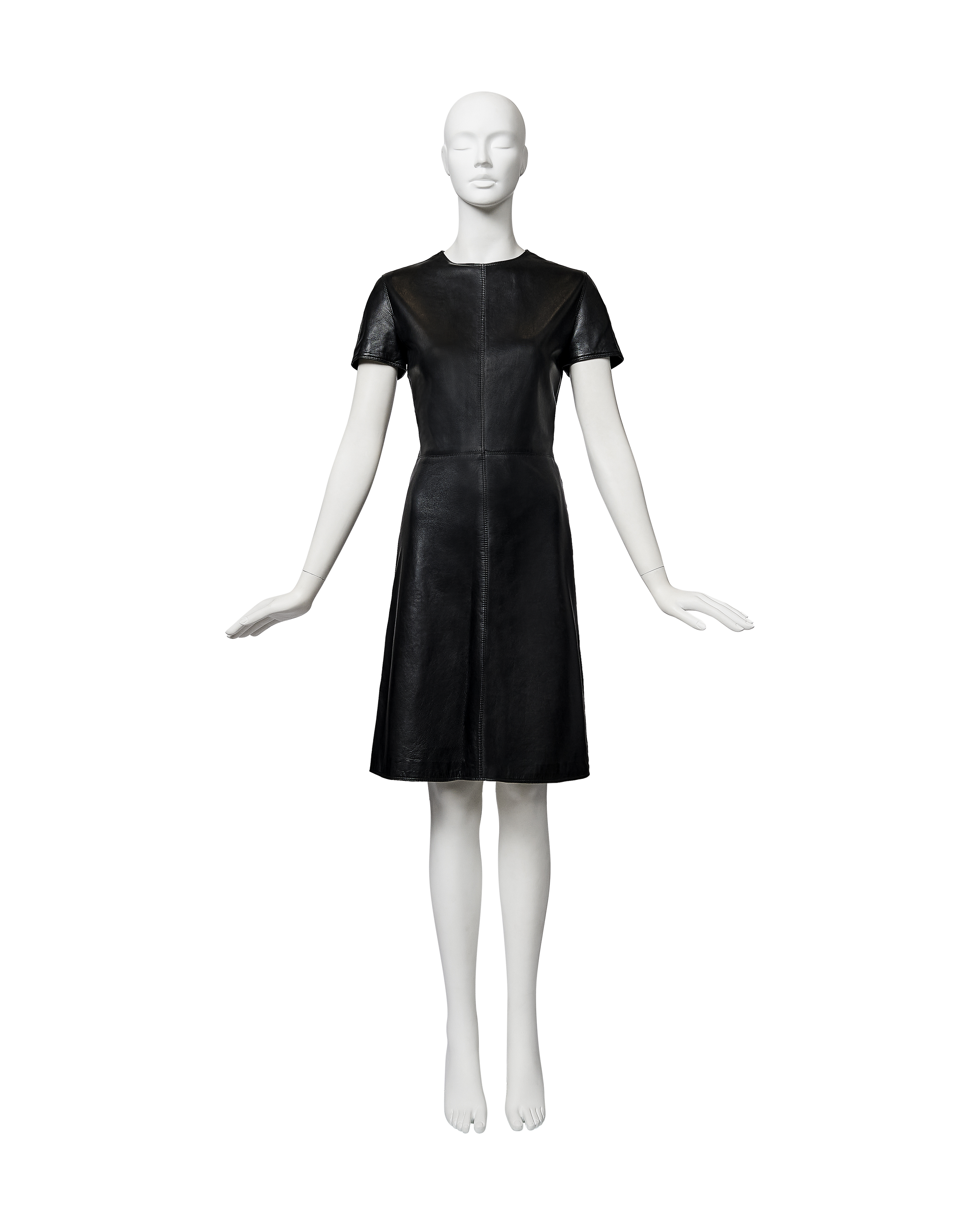 S/S 1996 Black Leather Above-Knee A-Line Dress