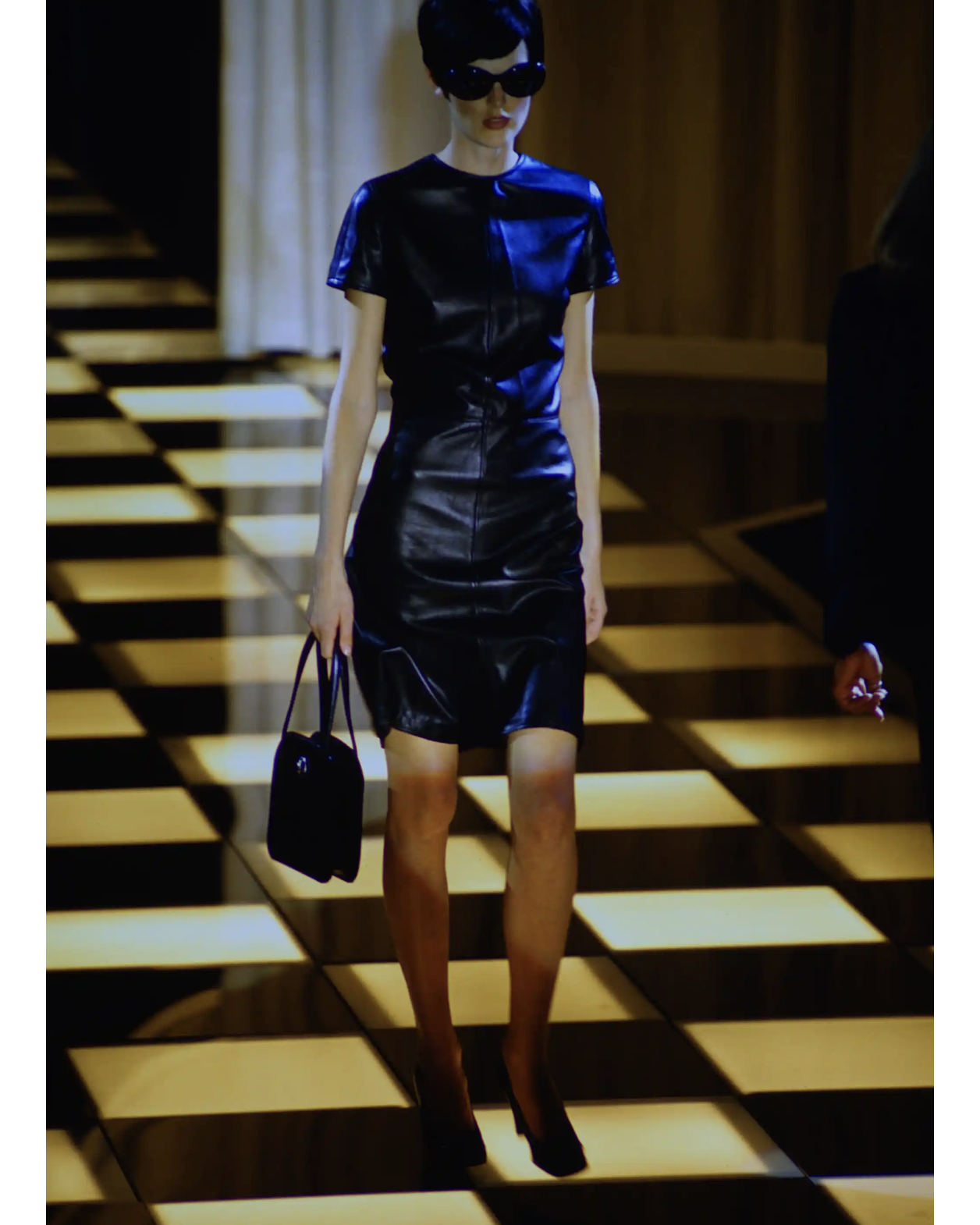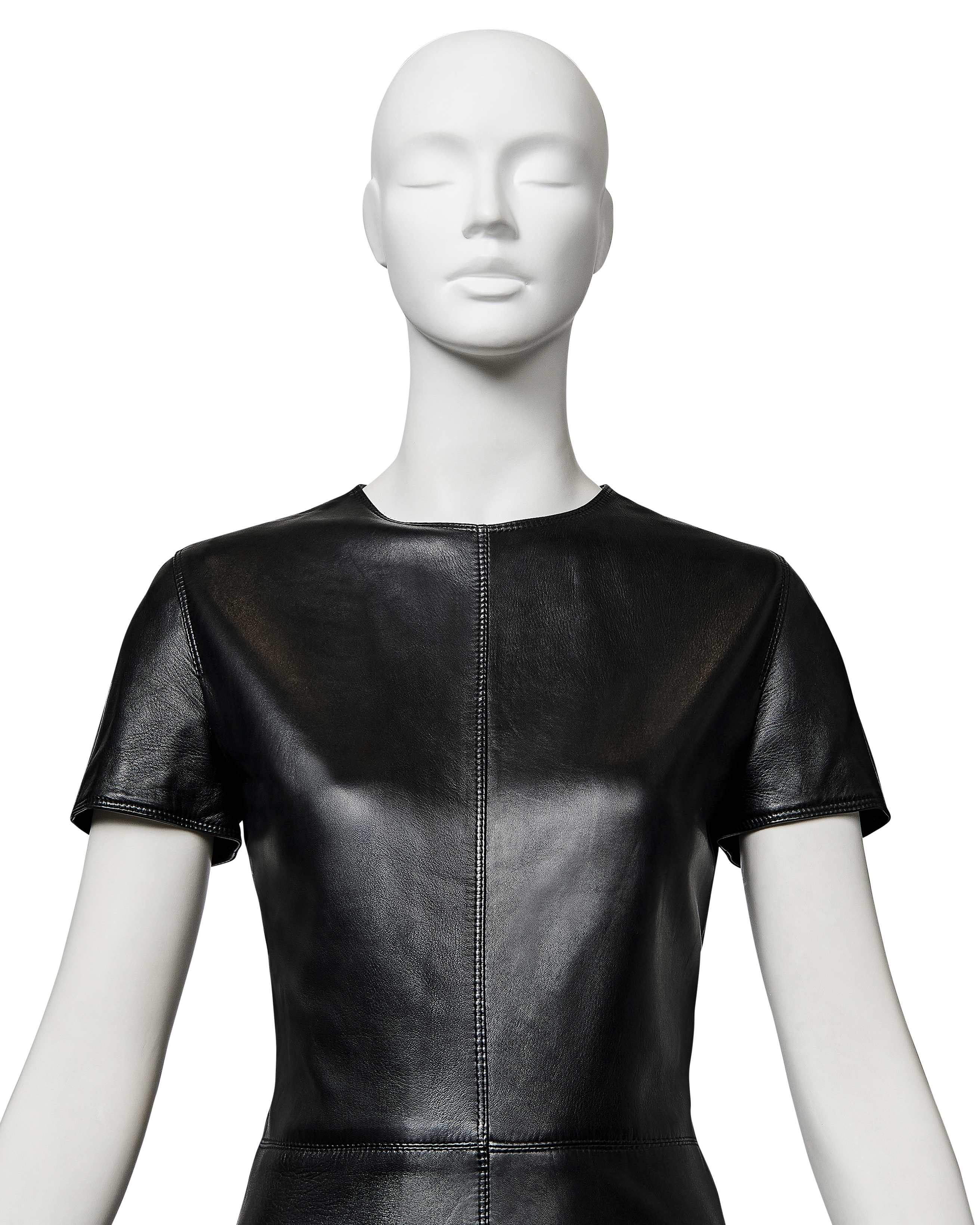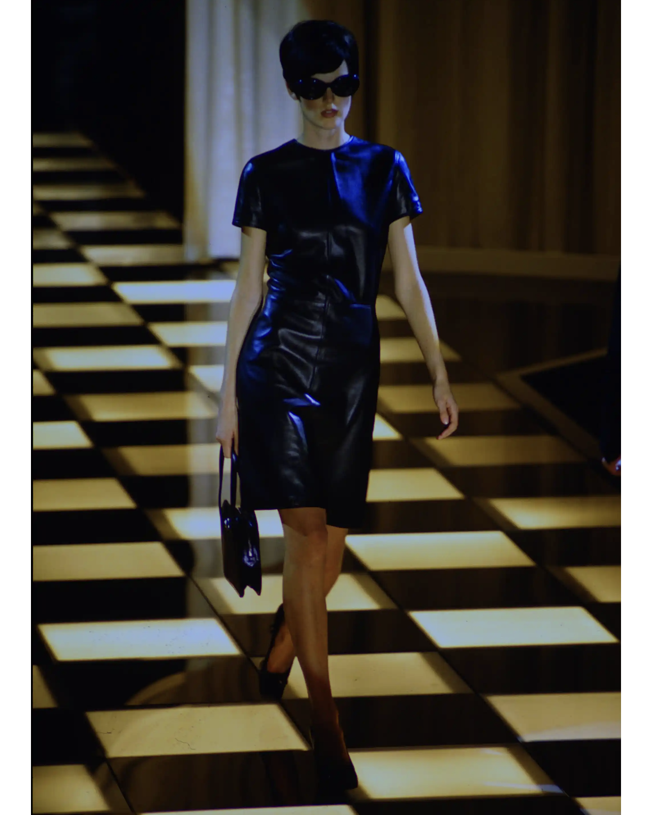 S/S 1996 Black Leather Above-Knee A-Line Dress