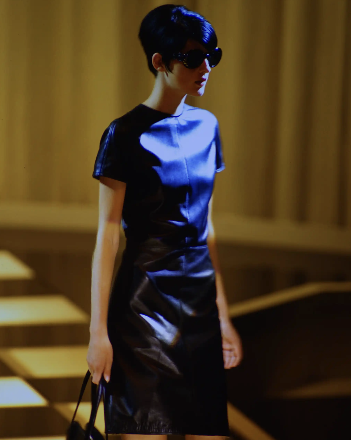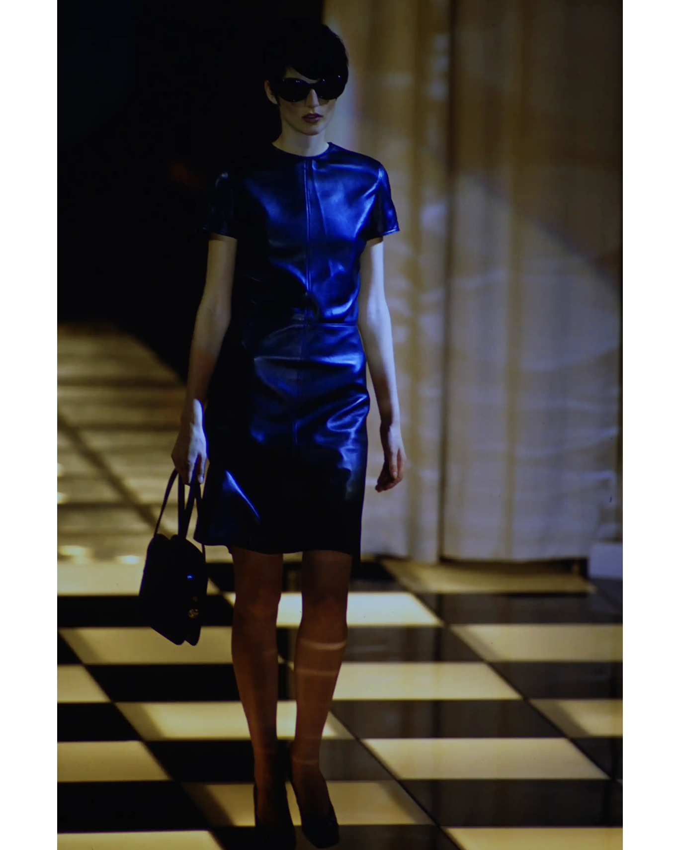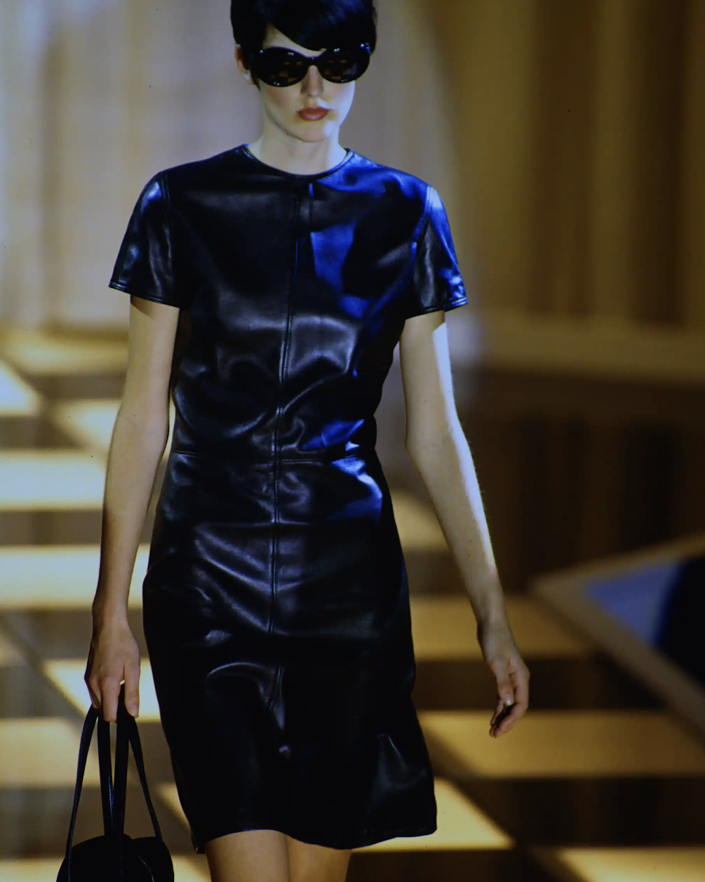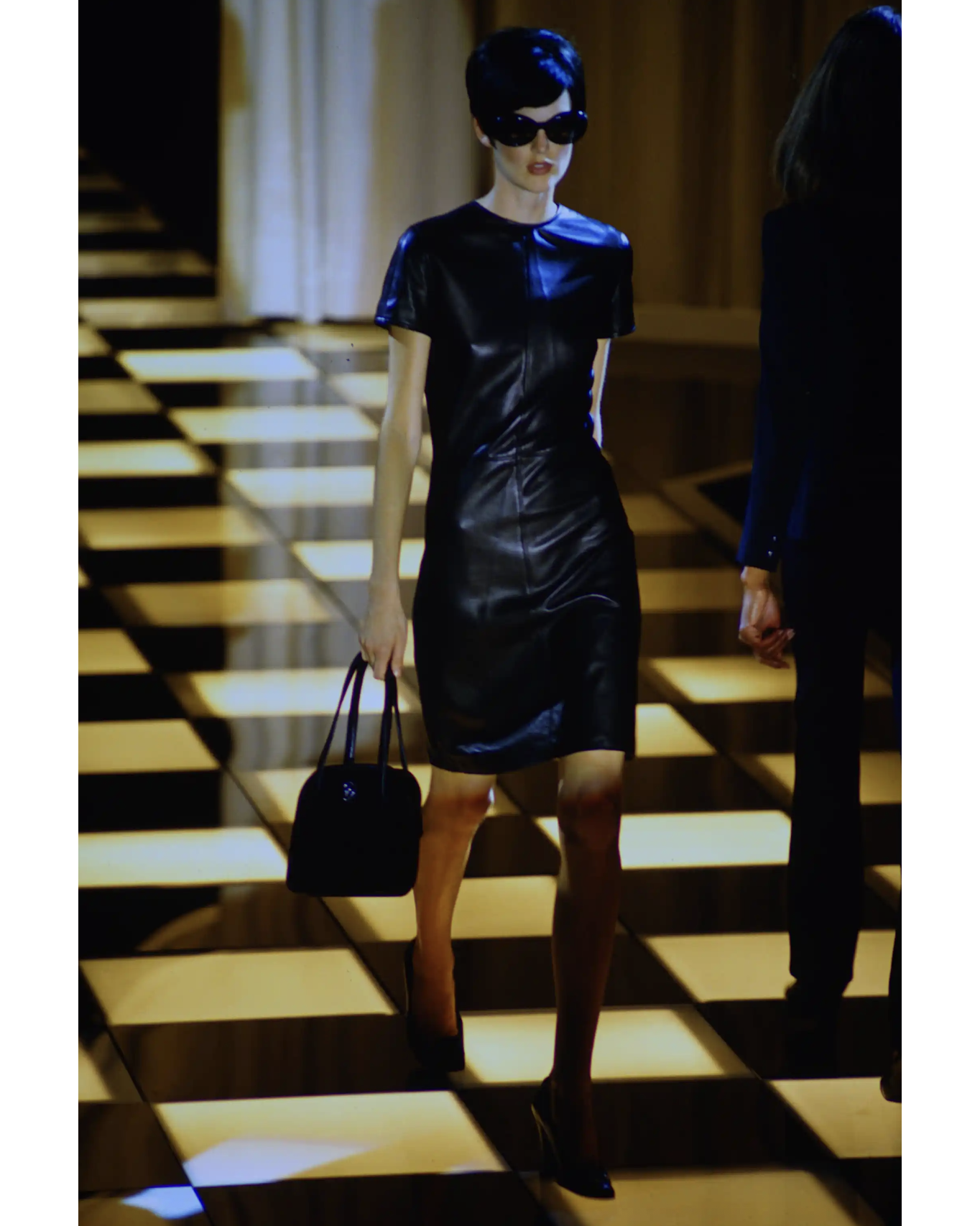 S/S 1996 Black Leather Above-Knee A-Line Dress