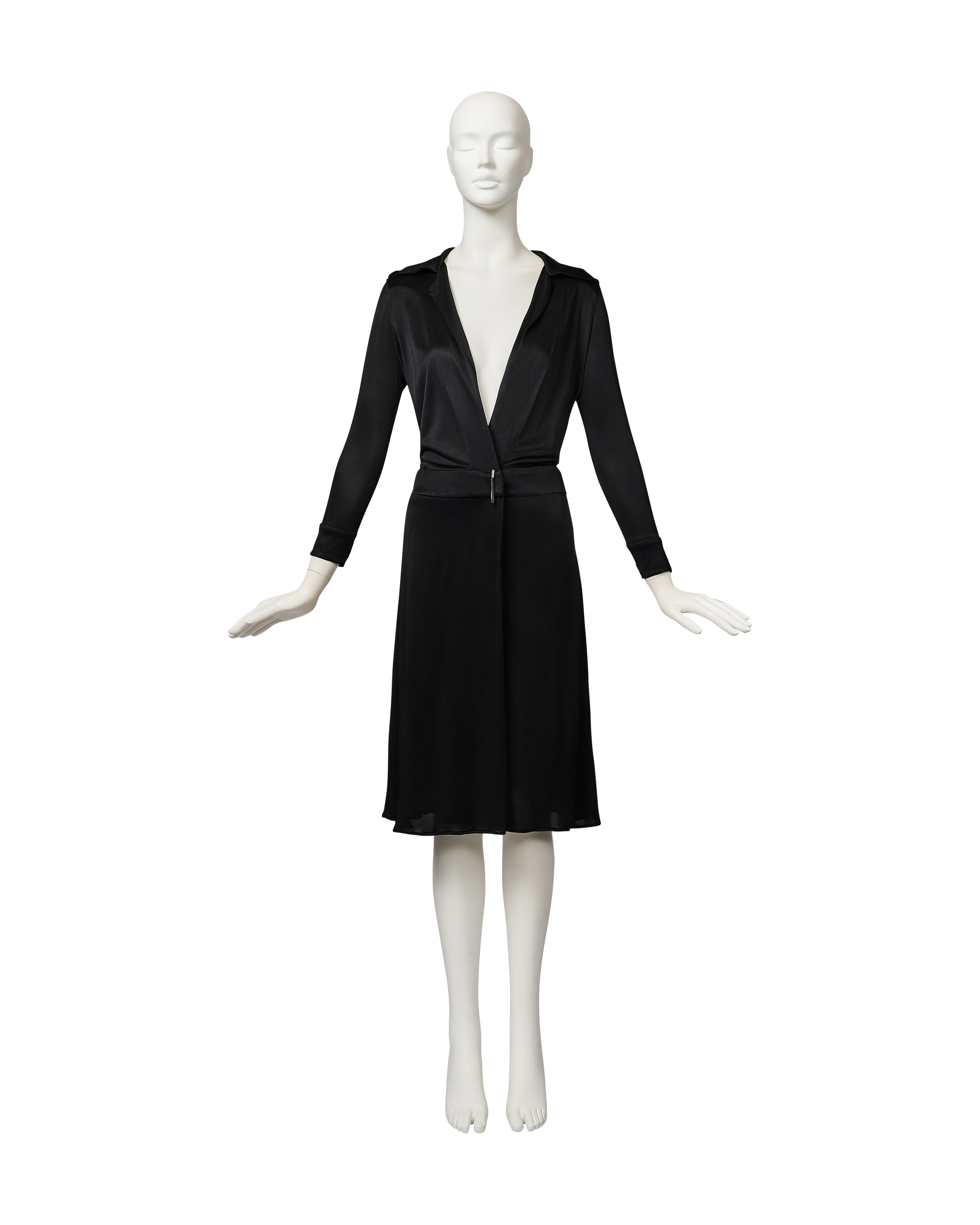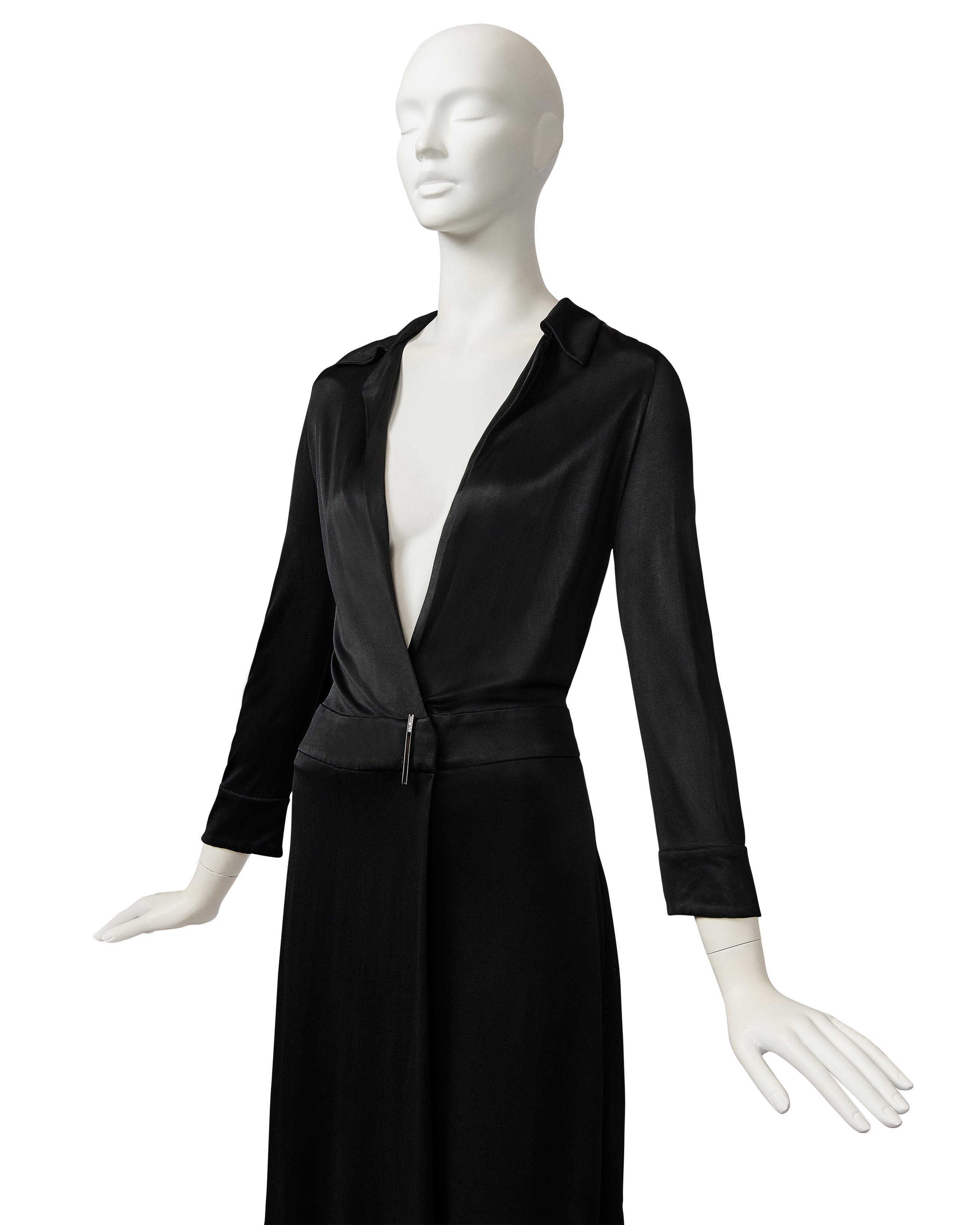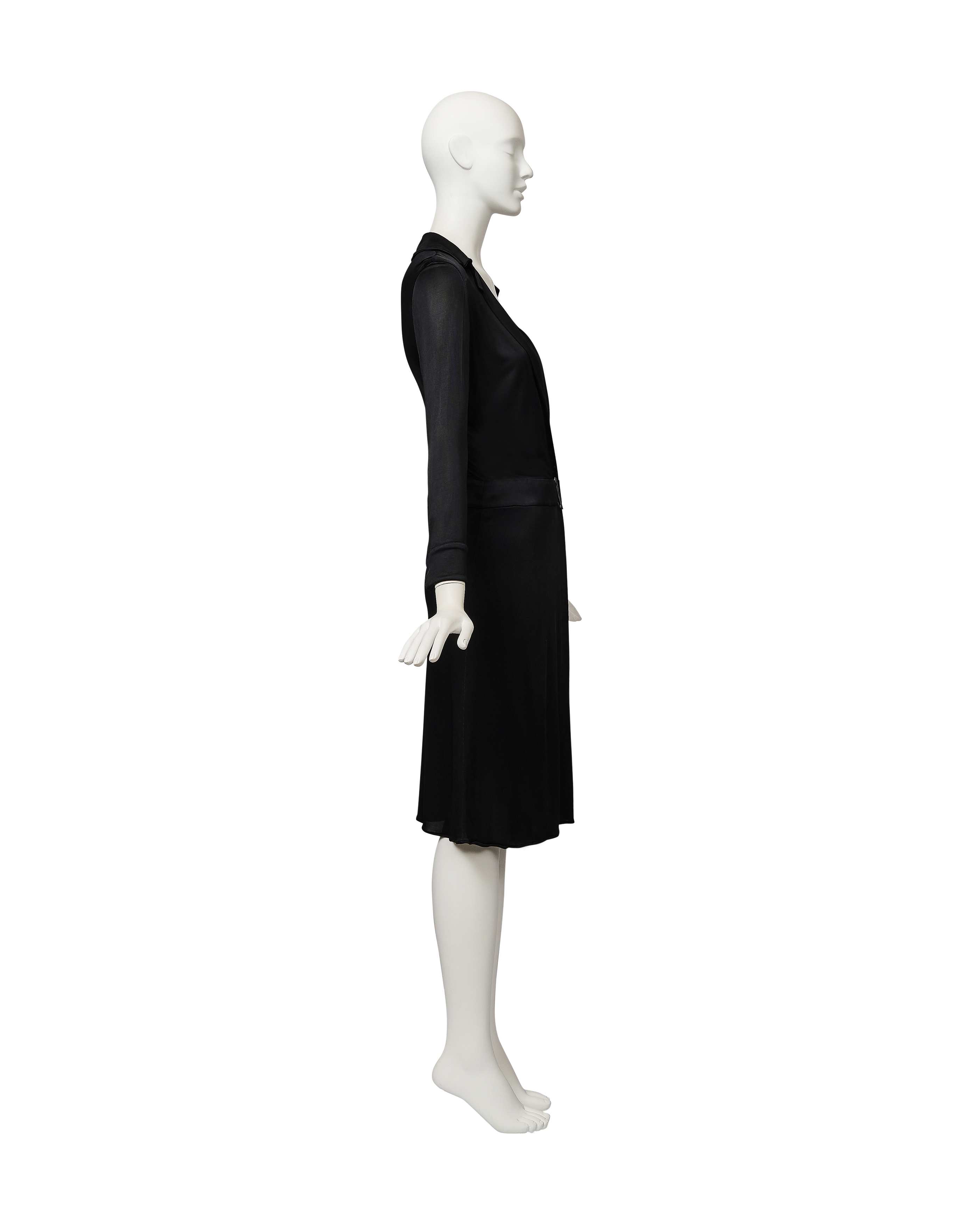 S/S 2000 Long Sleeve Plunge Neckline Black Silk Jersey Dress