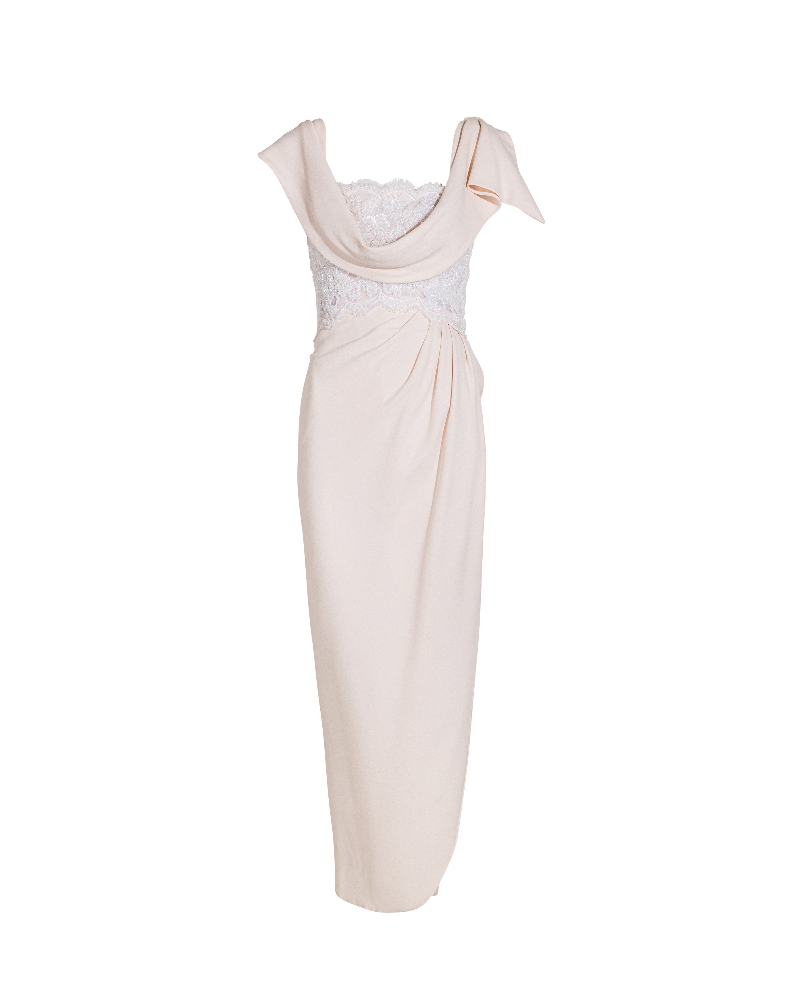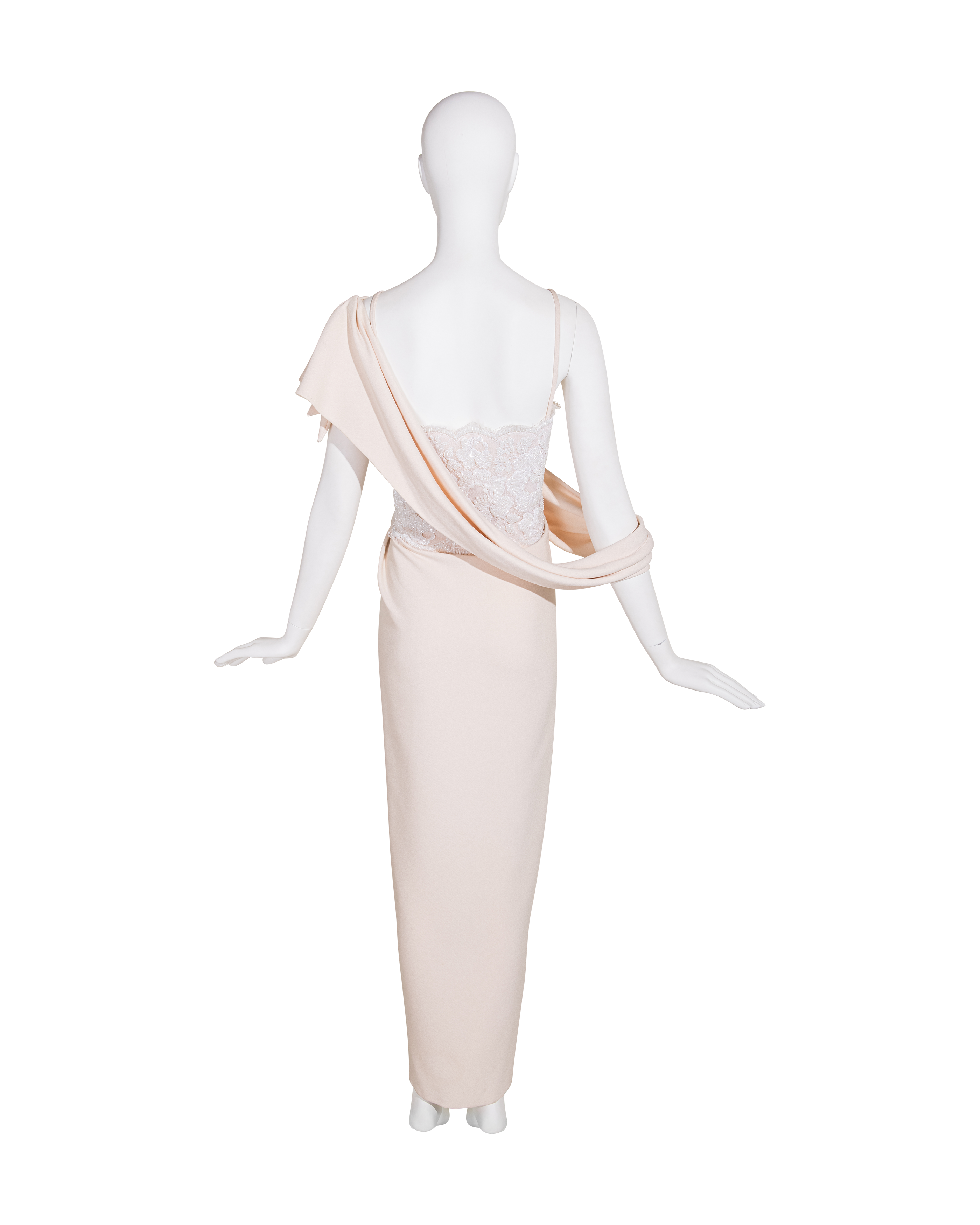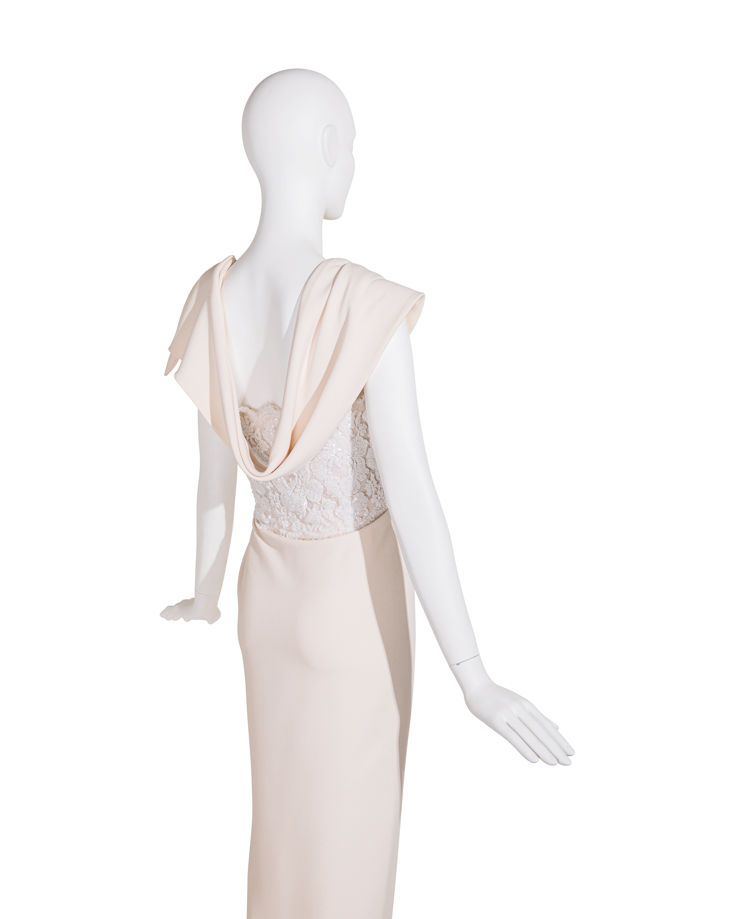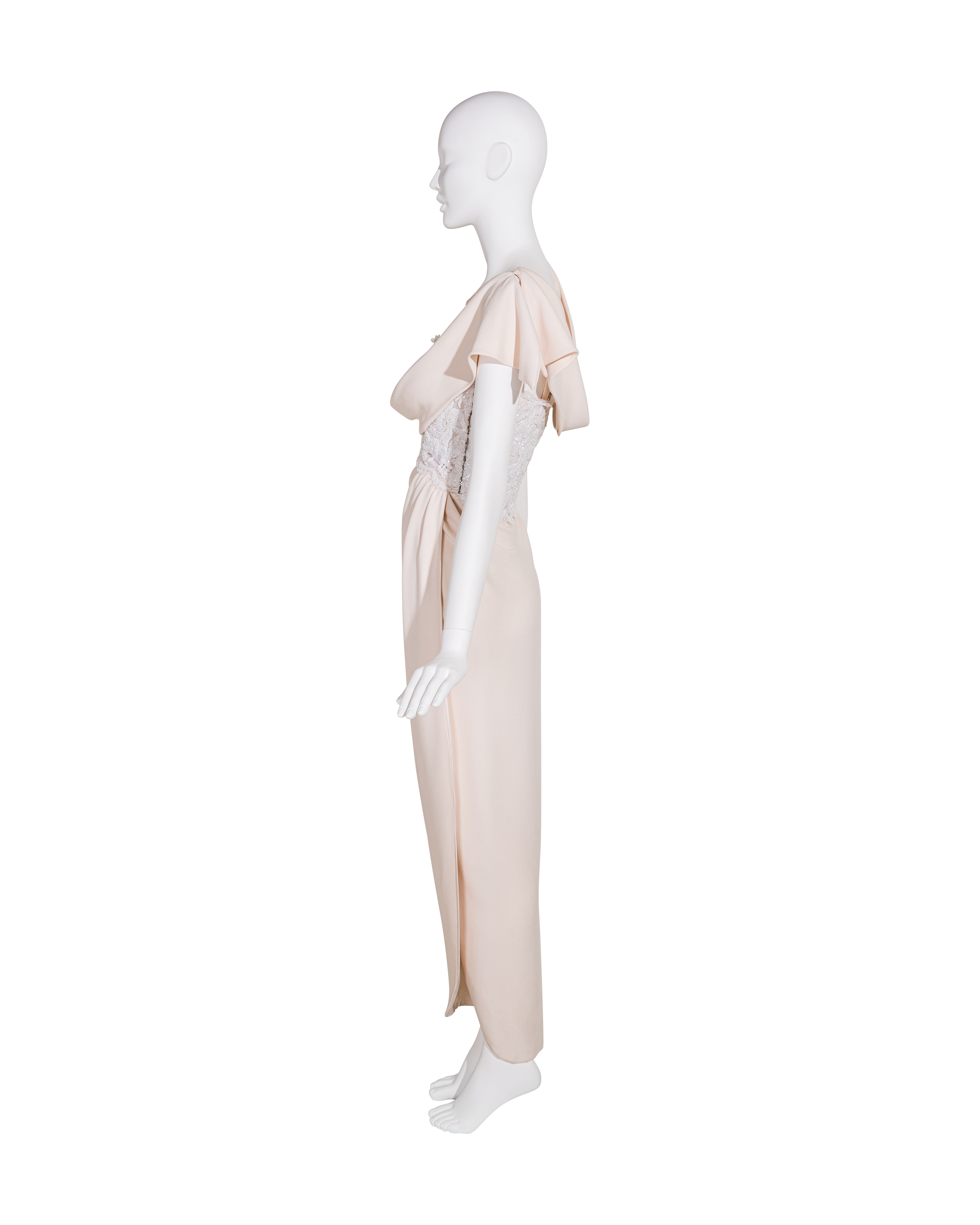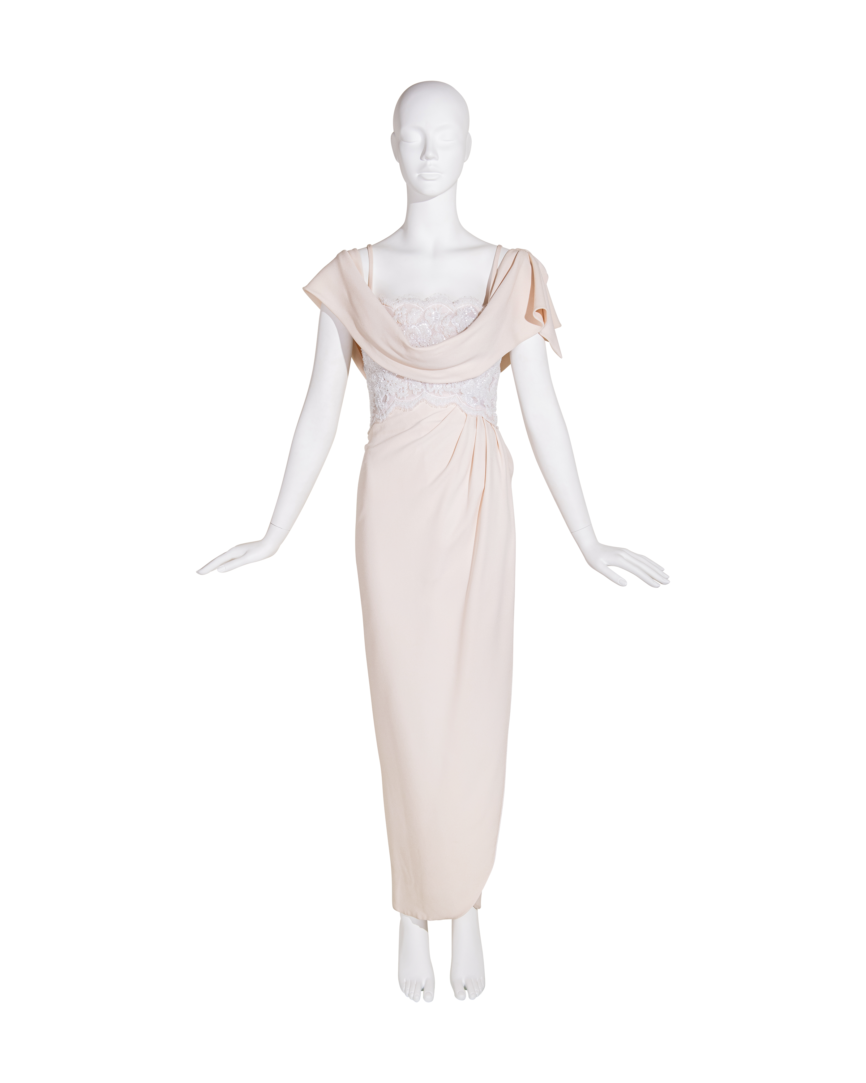 1980's Haute Couture Ecru Floral Embroidered Silk Gown