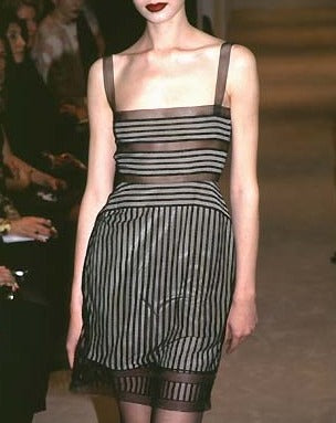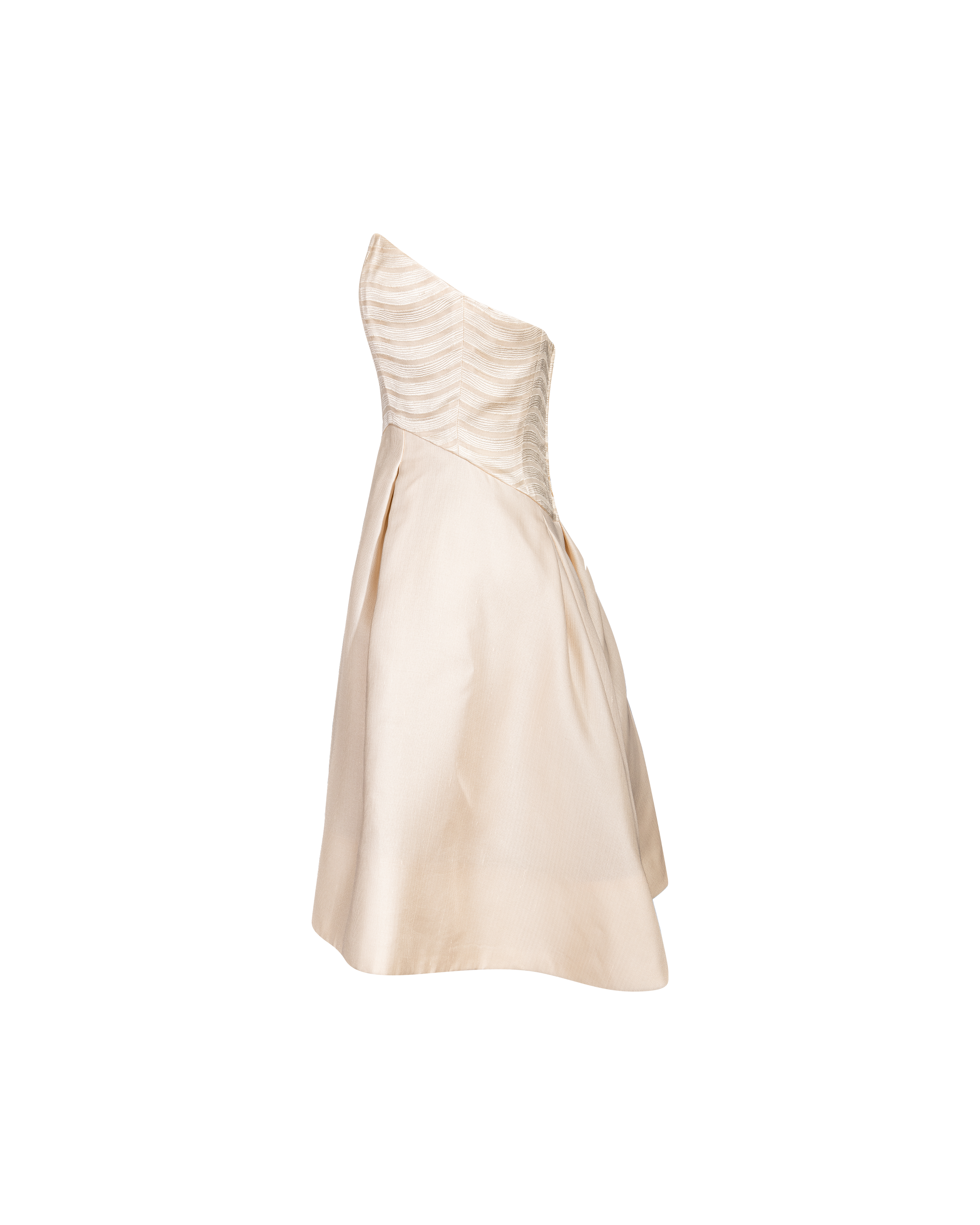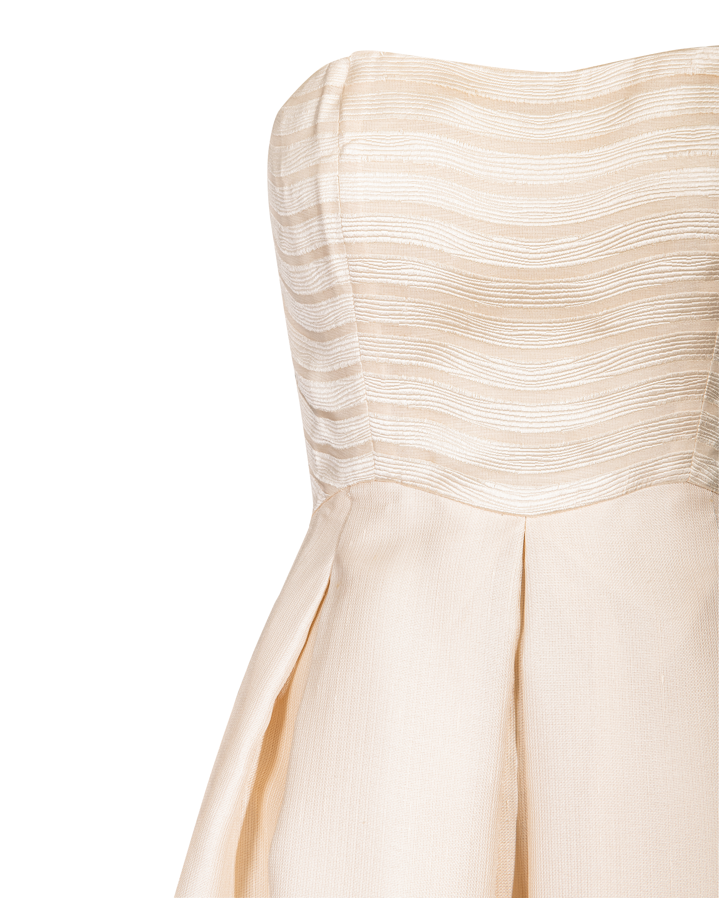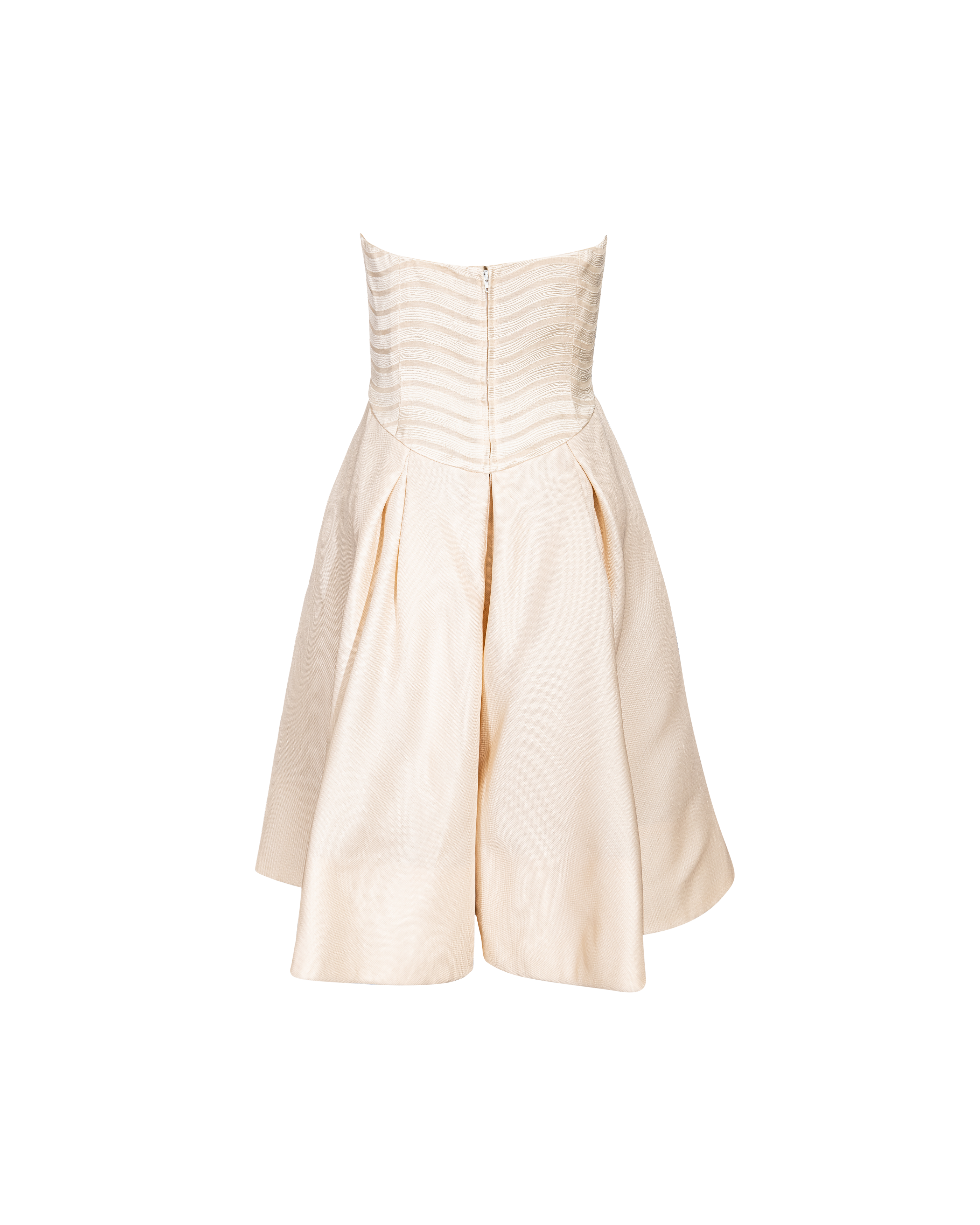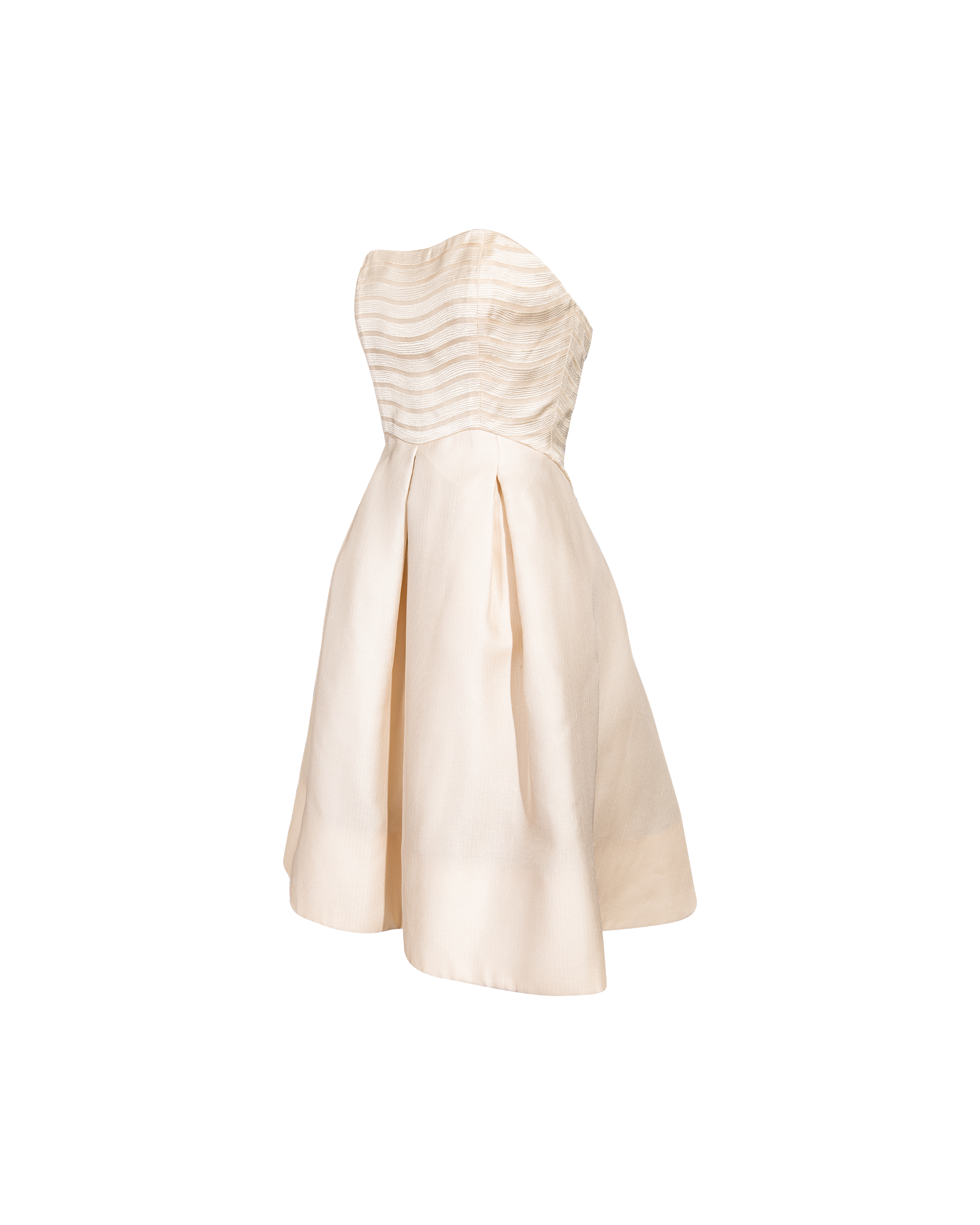 1990's Ecru Striped Corset Strapless Cocktail Dress