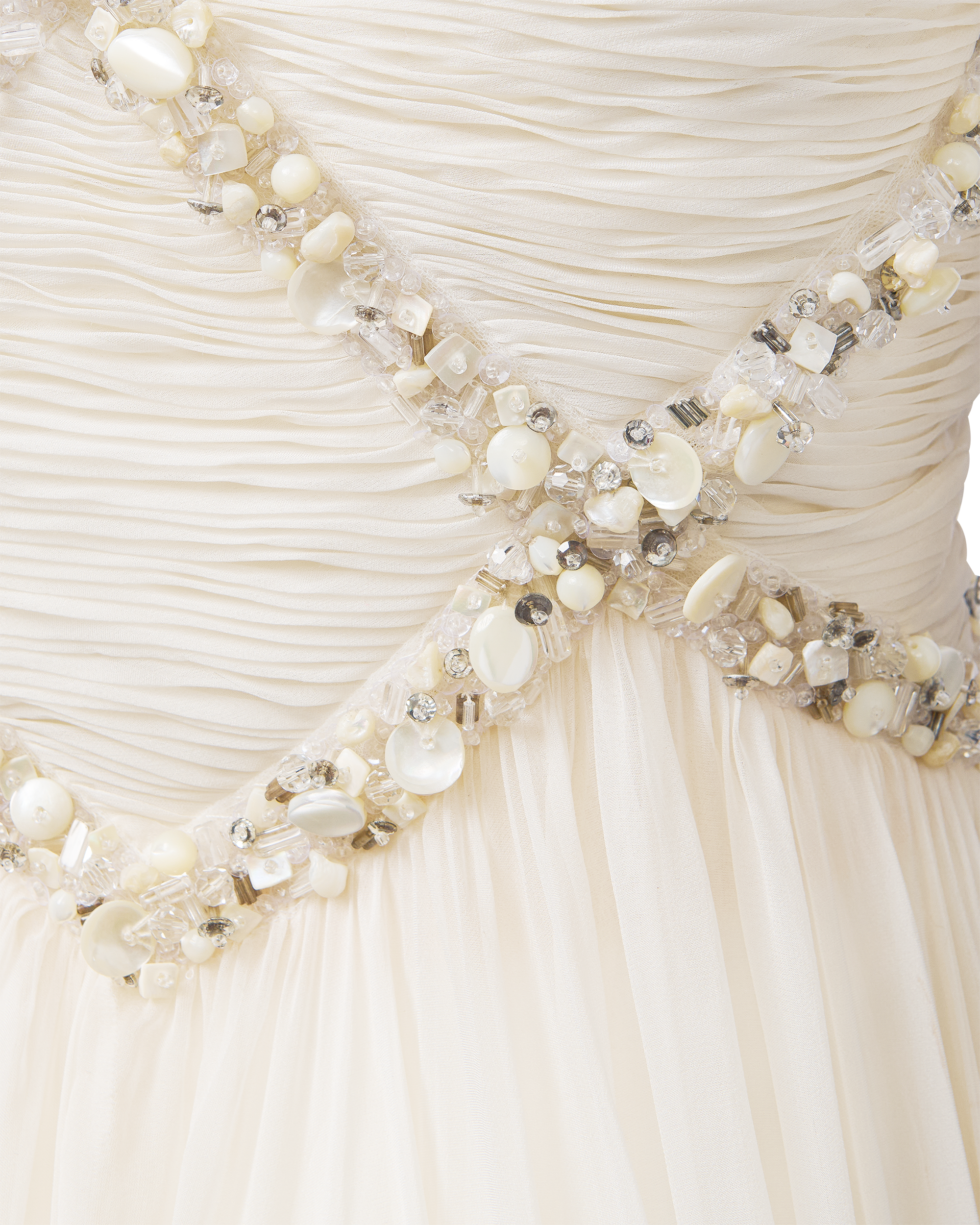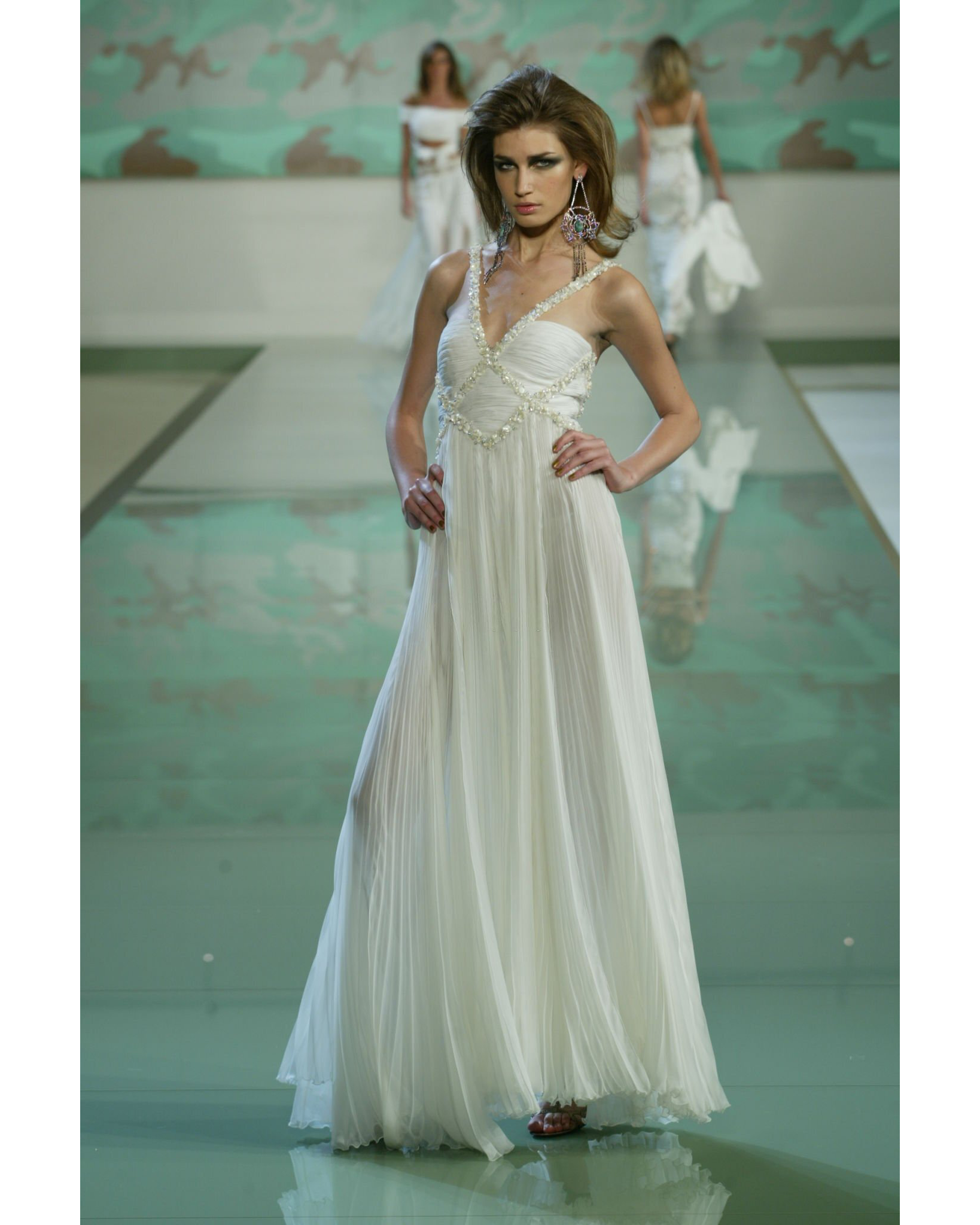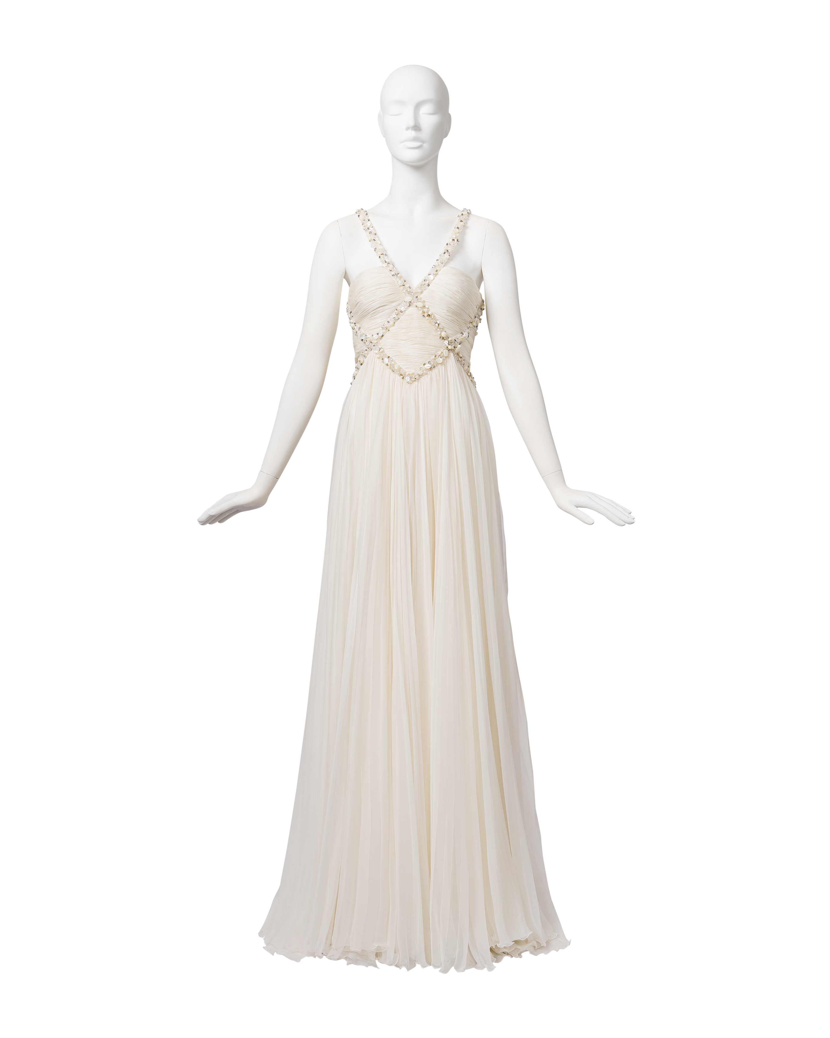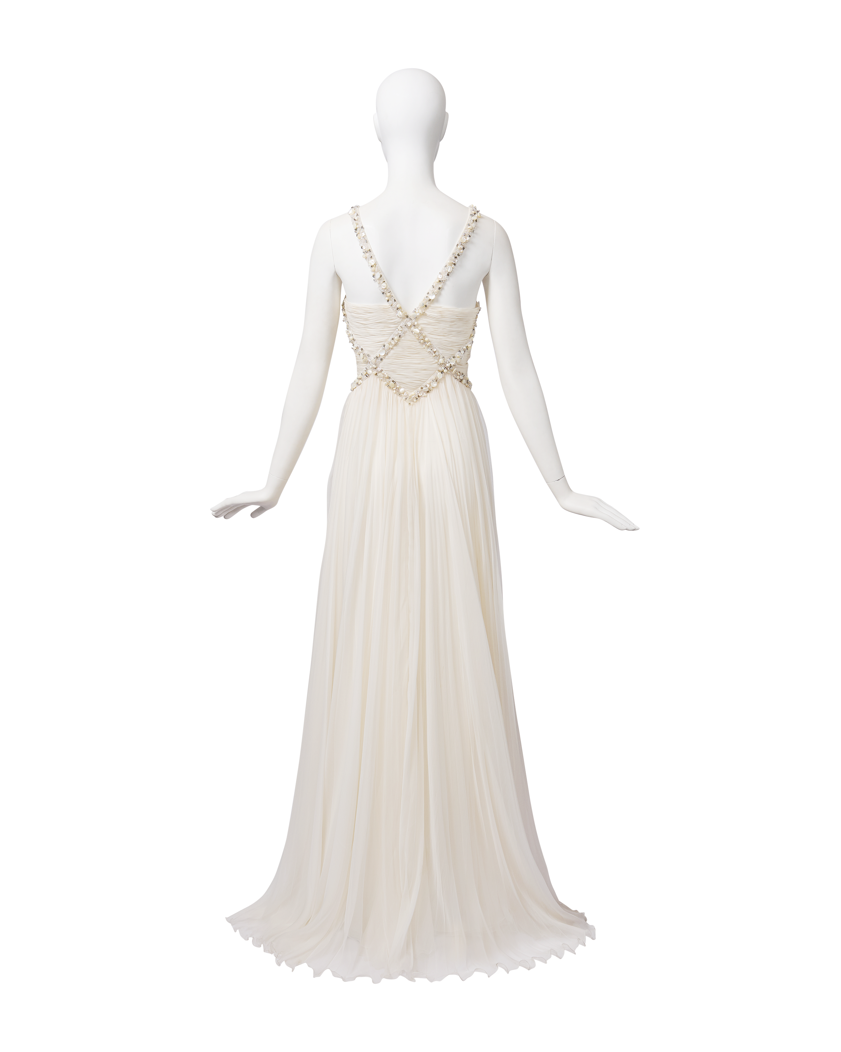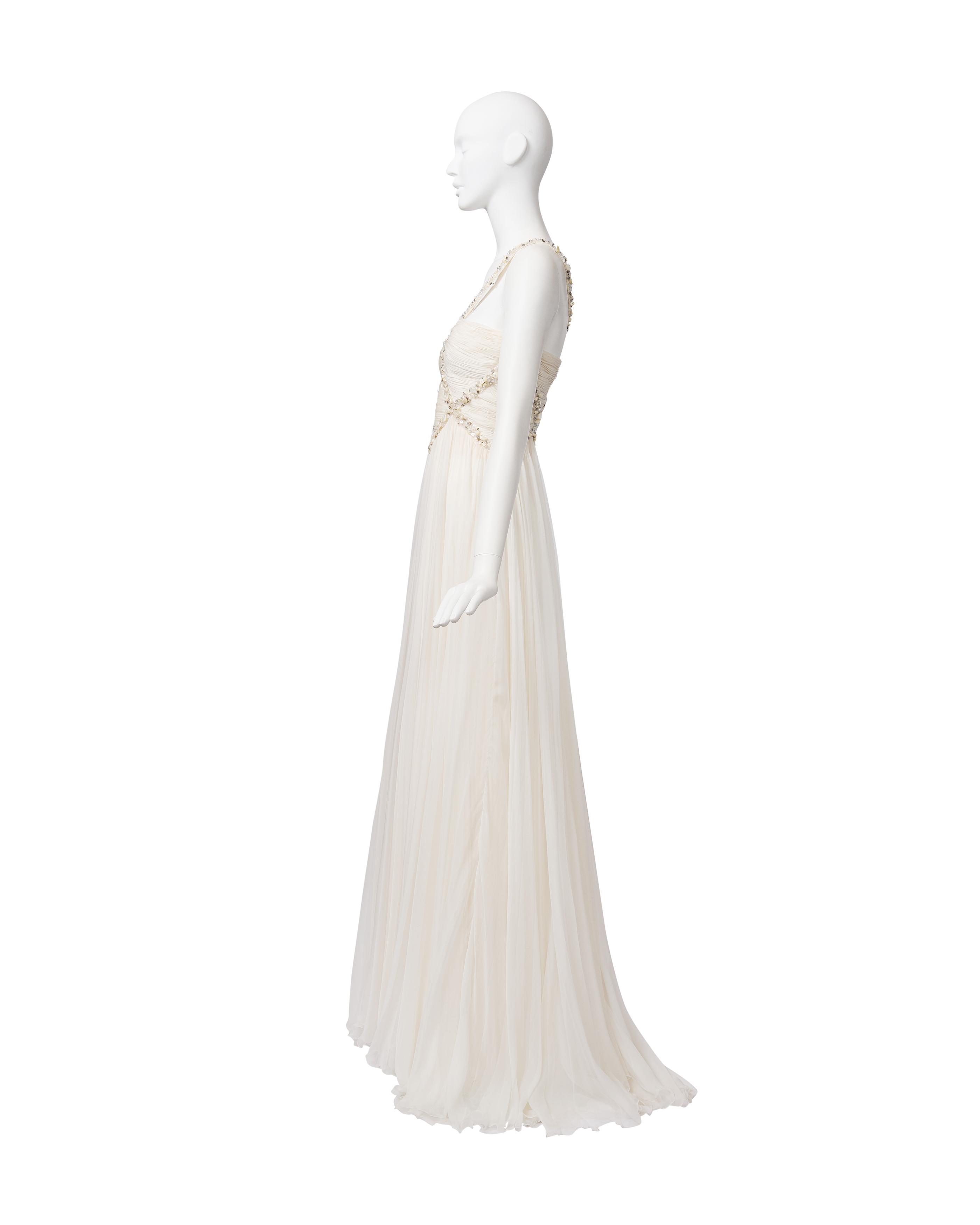 S/S 2003 Ivory Pleated Gown with Embellished Geometric Bust