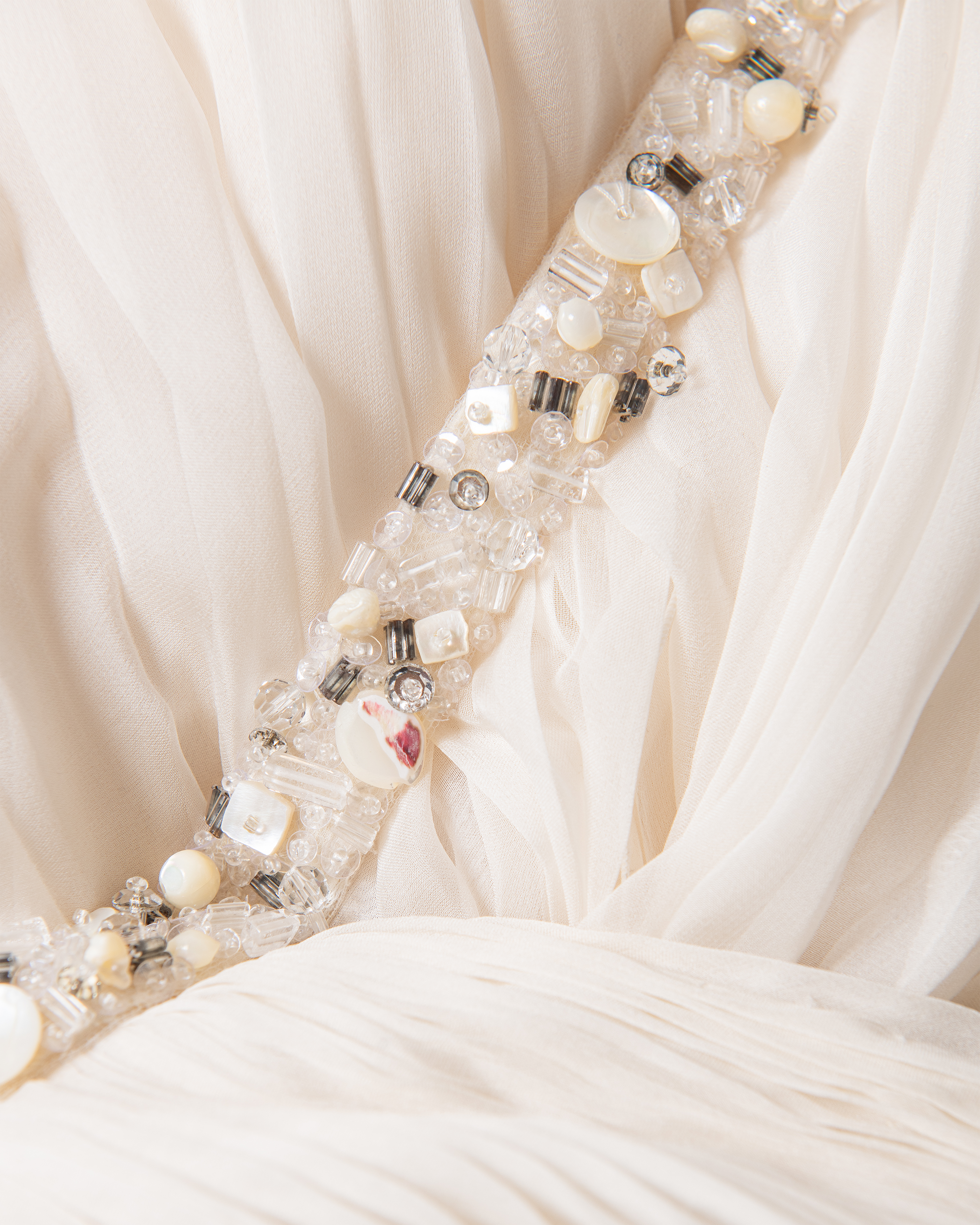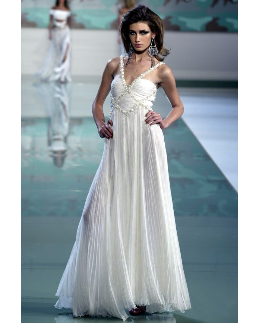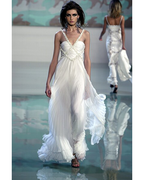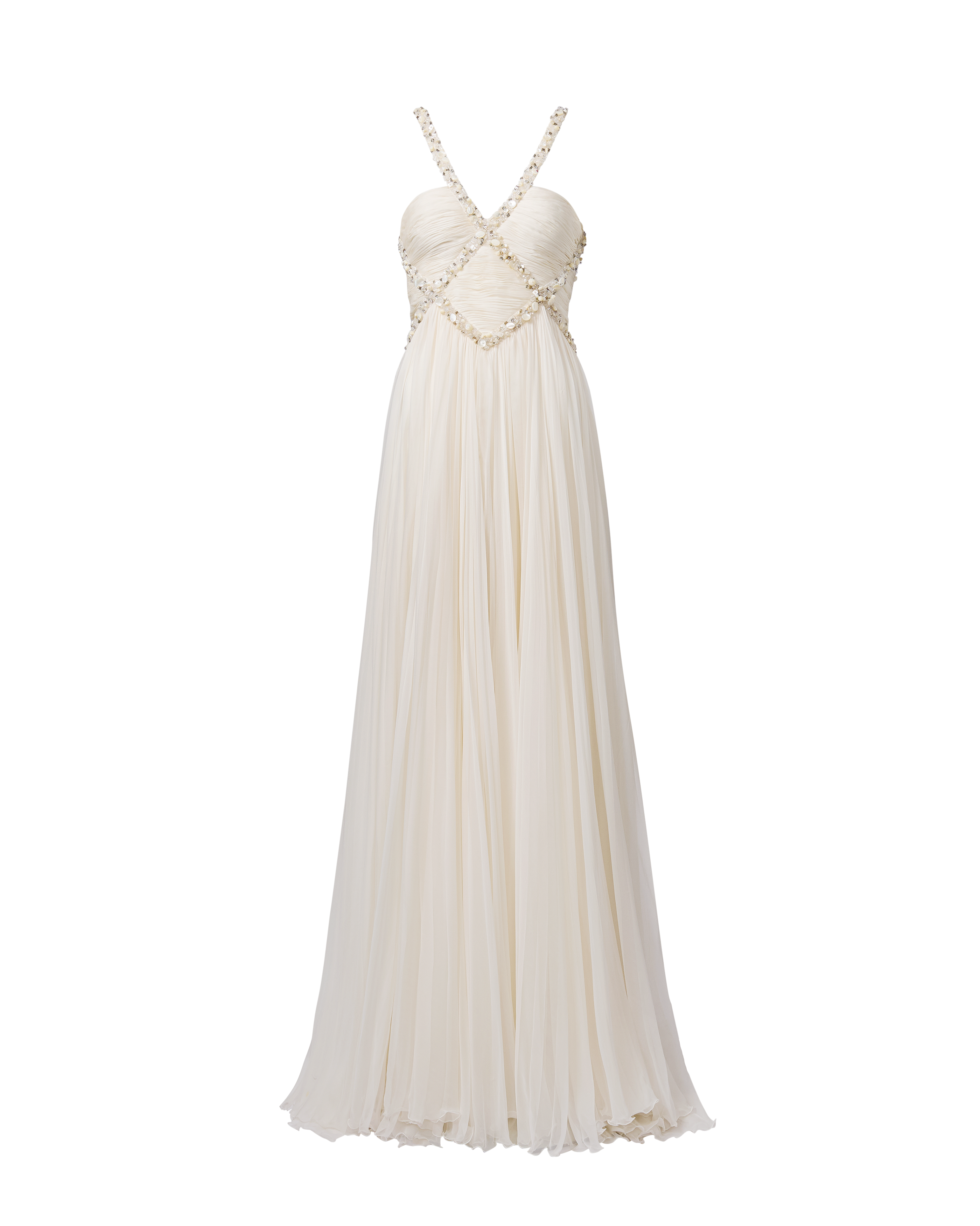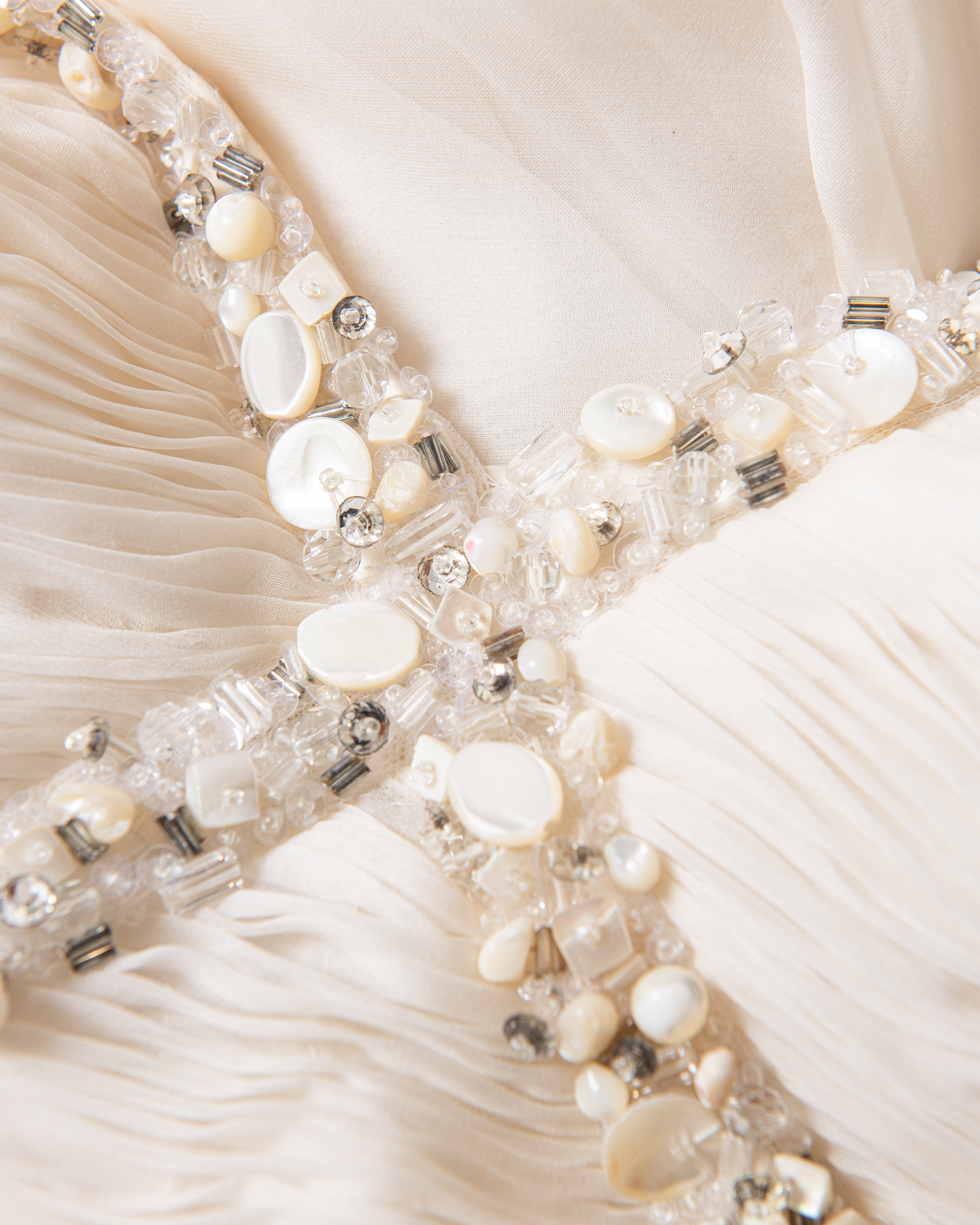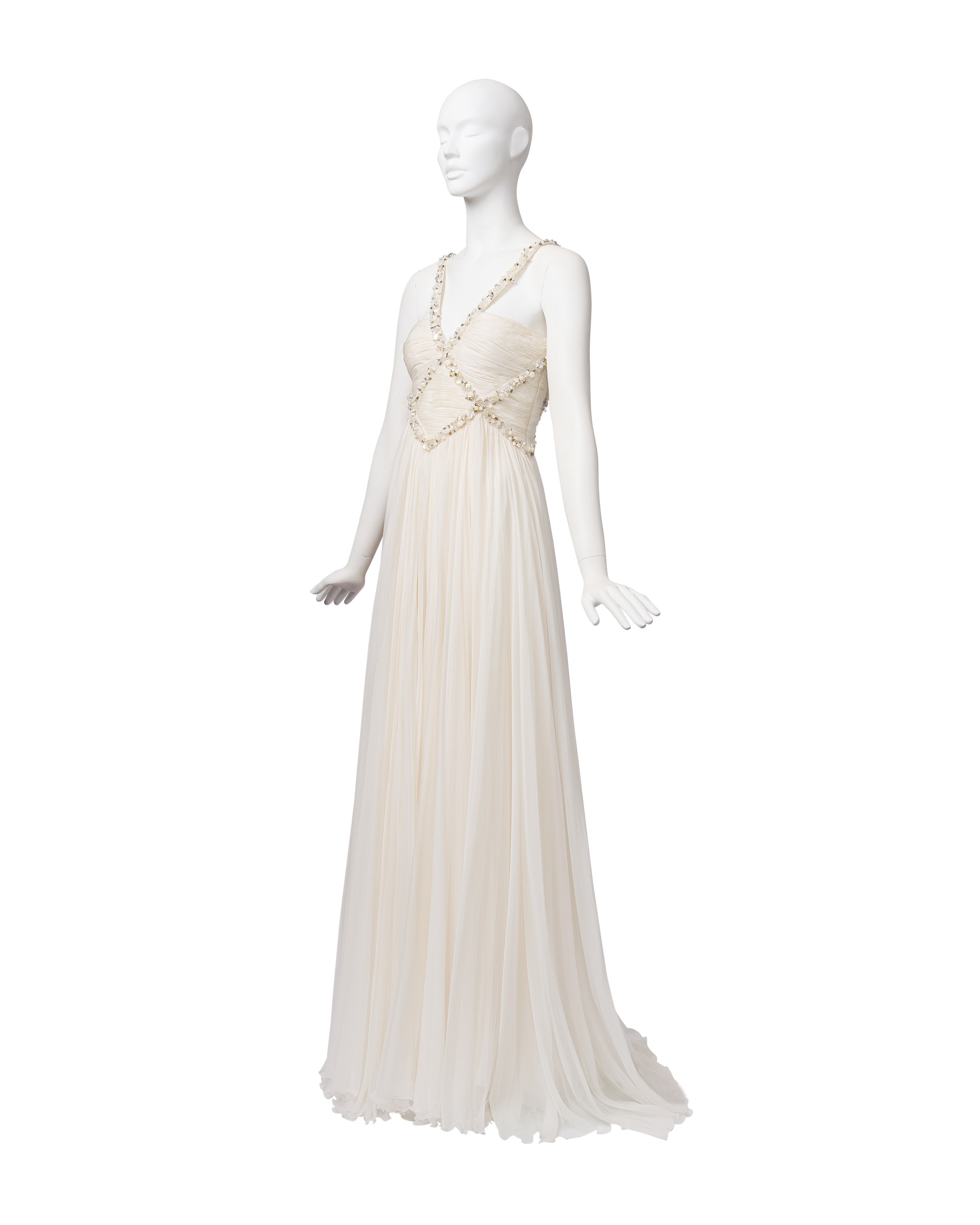 S/S 2003 Ivory Pleated Gown with Embellished Geometric Bust