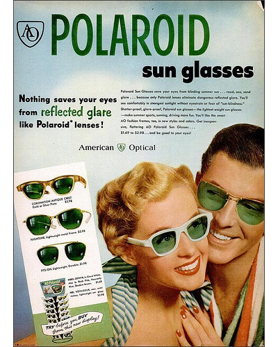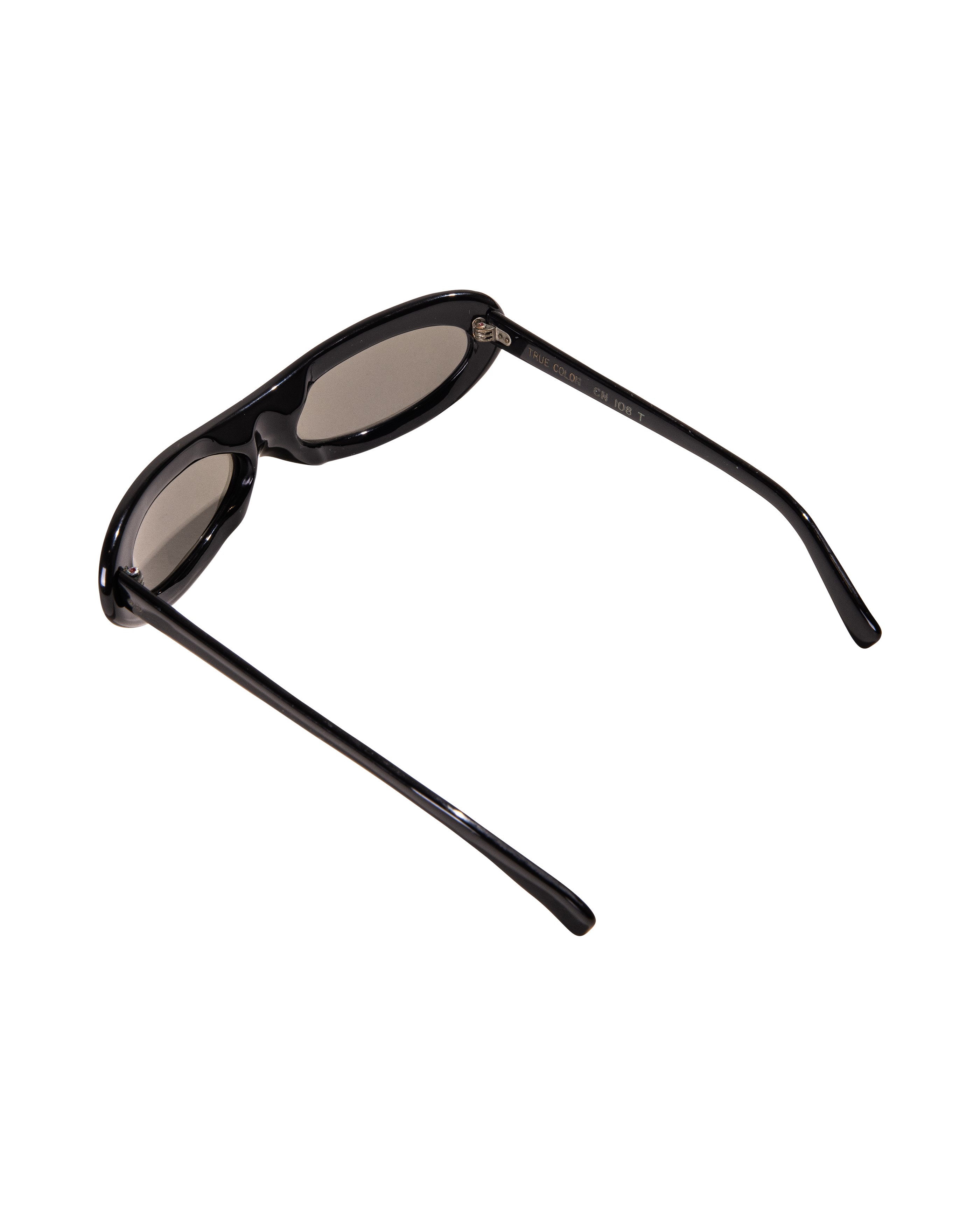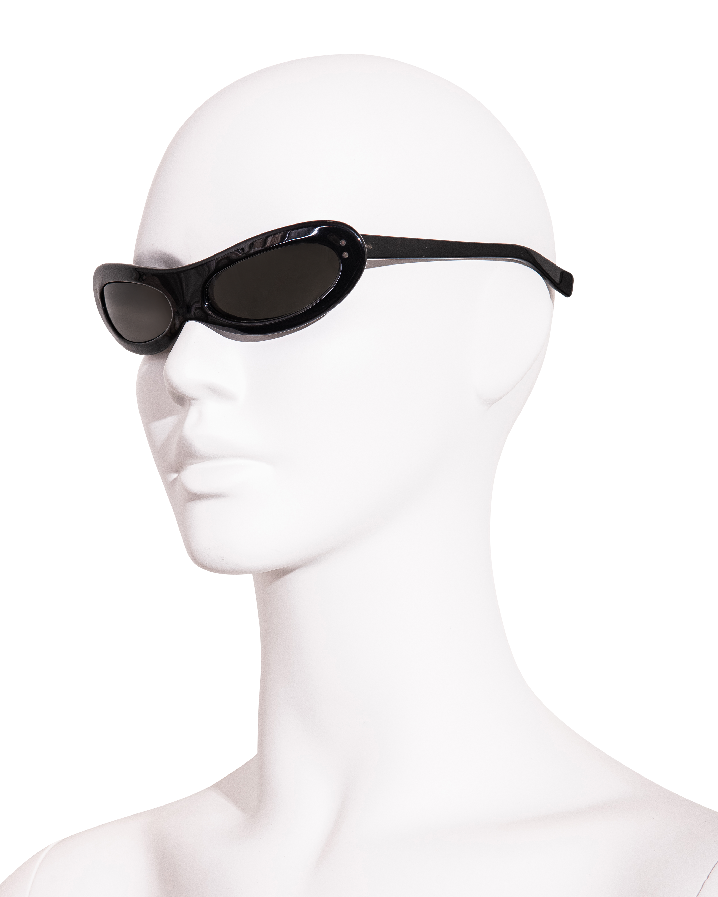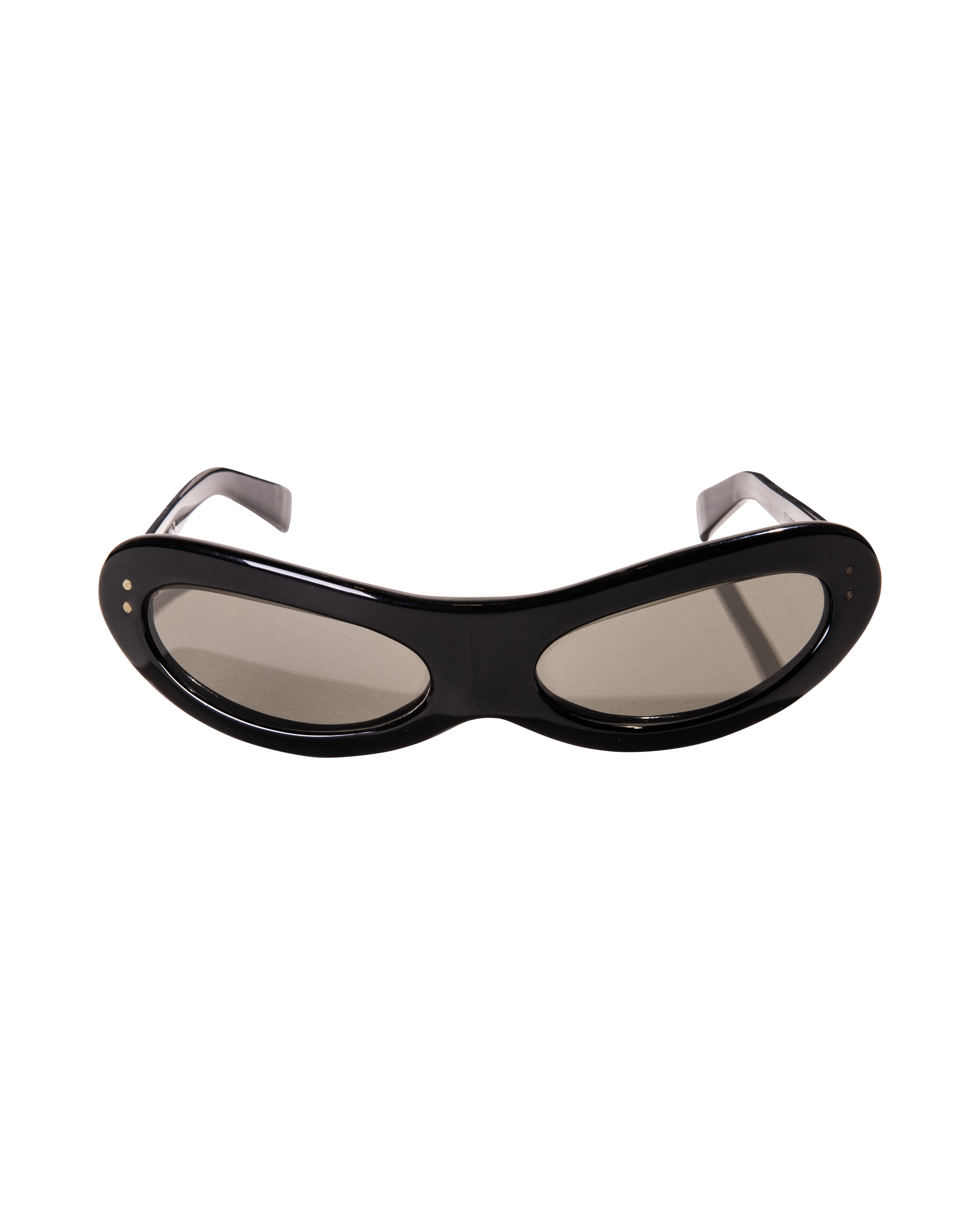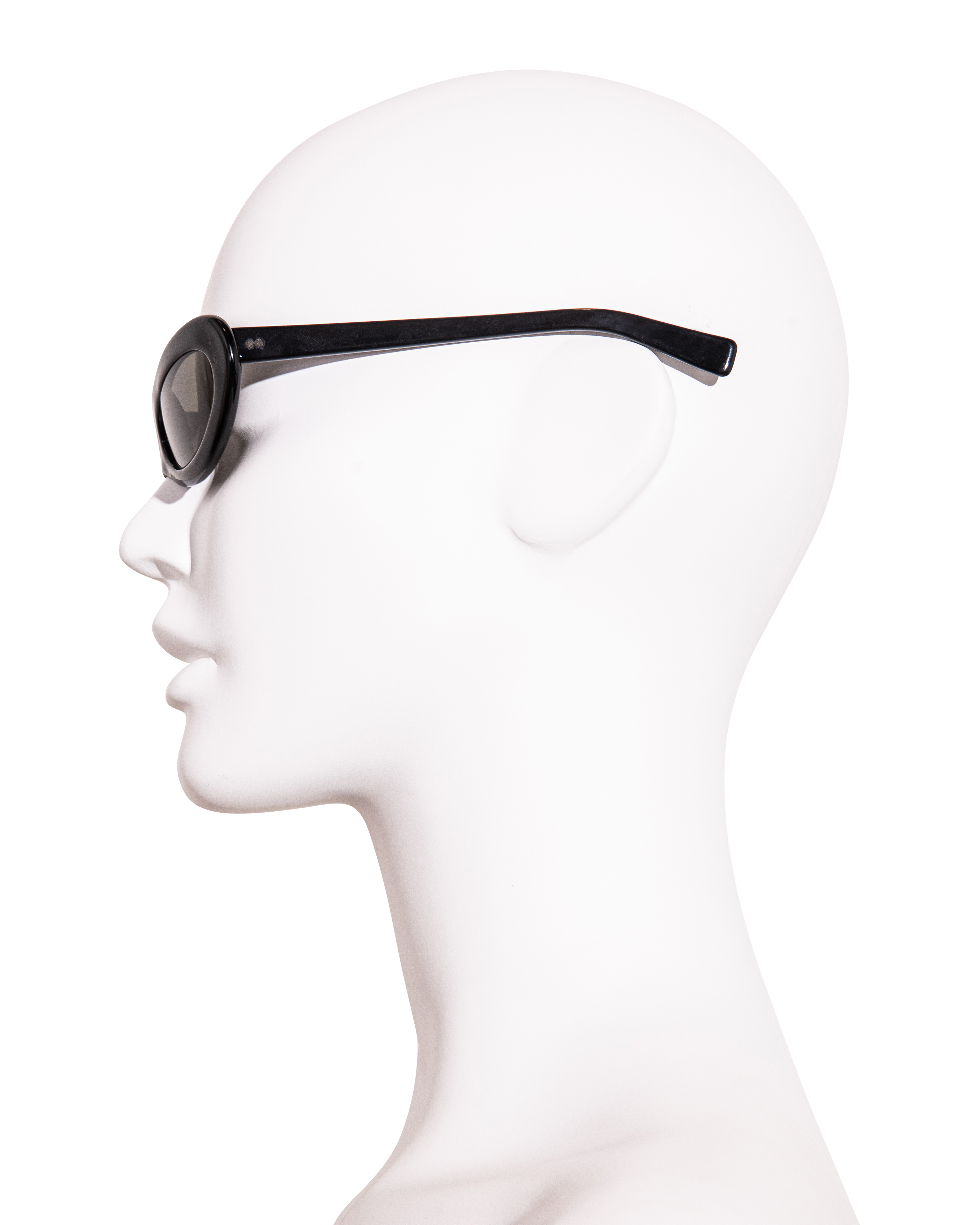 1960's Special Vintage American Optical Mid-Century black curved sunglasses. Narrow black sunglasses with two dot detail at side of lenses. In very good vintage condition with light wear throughout.