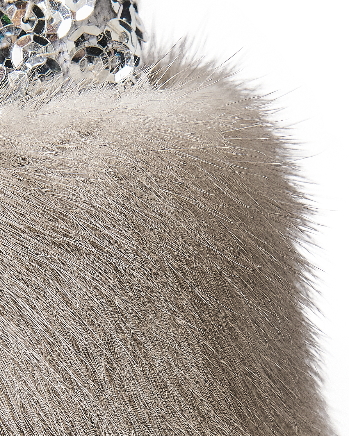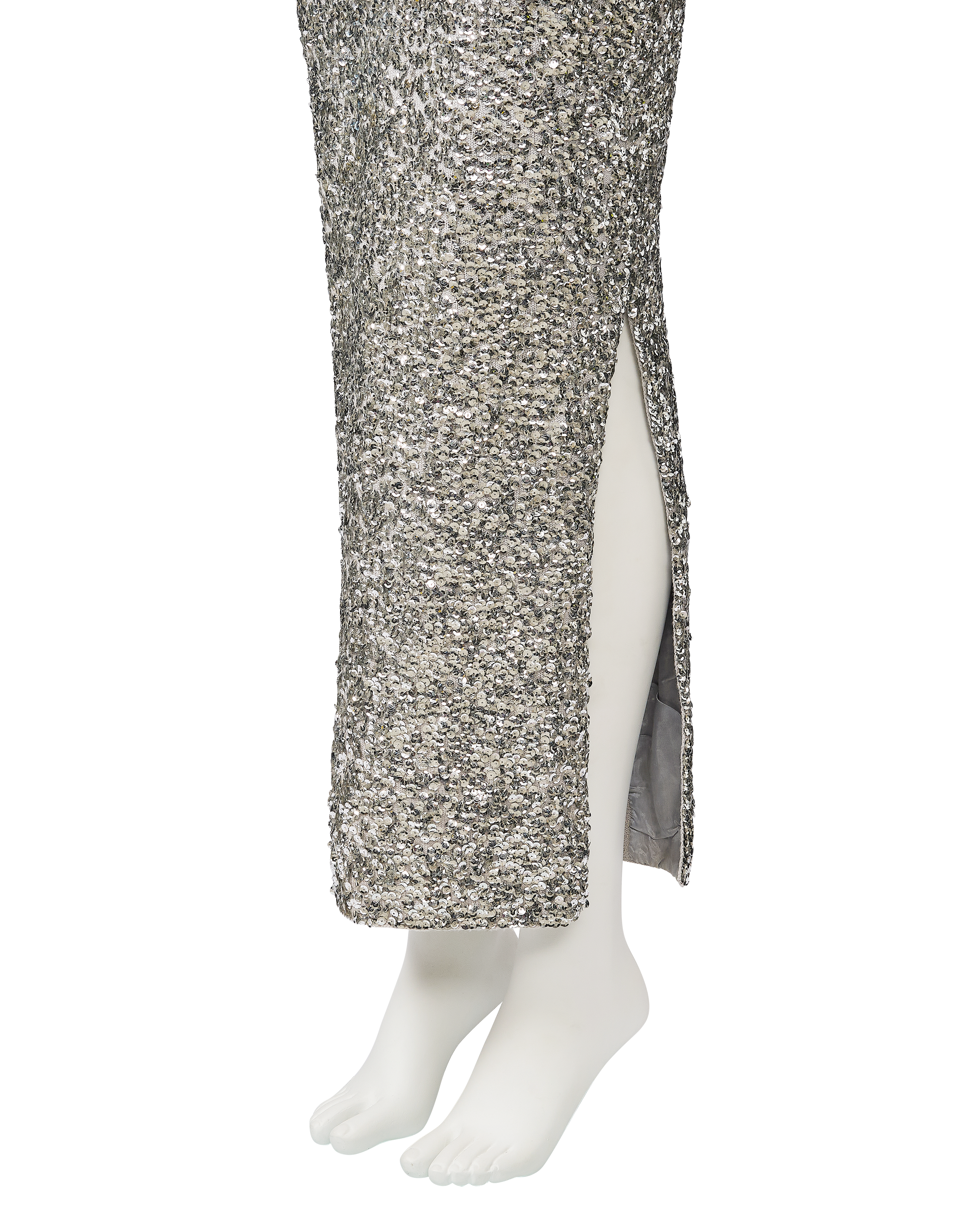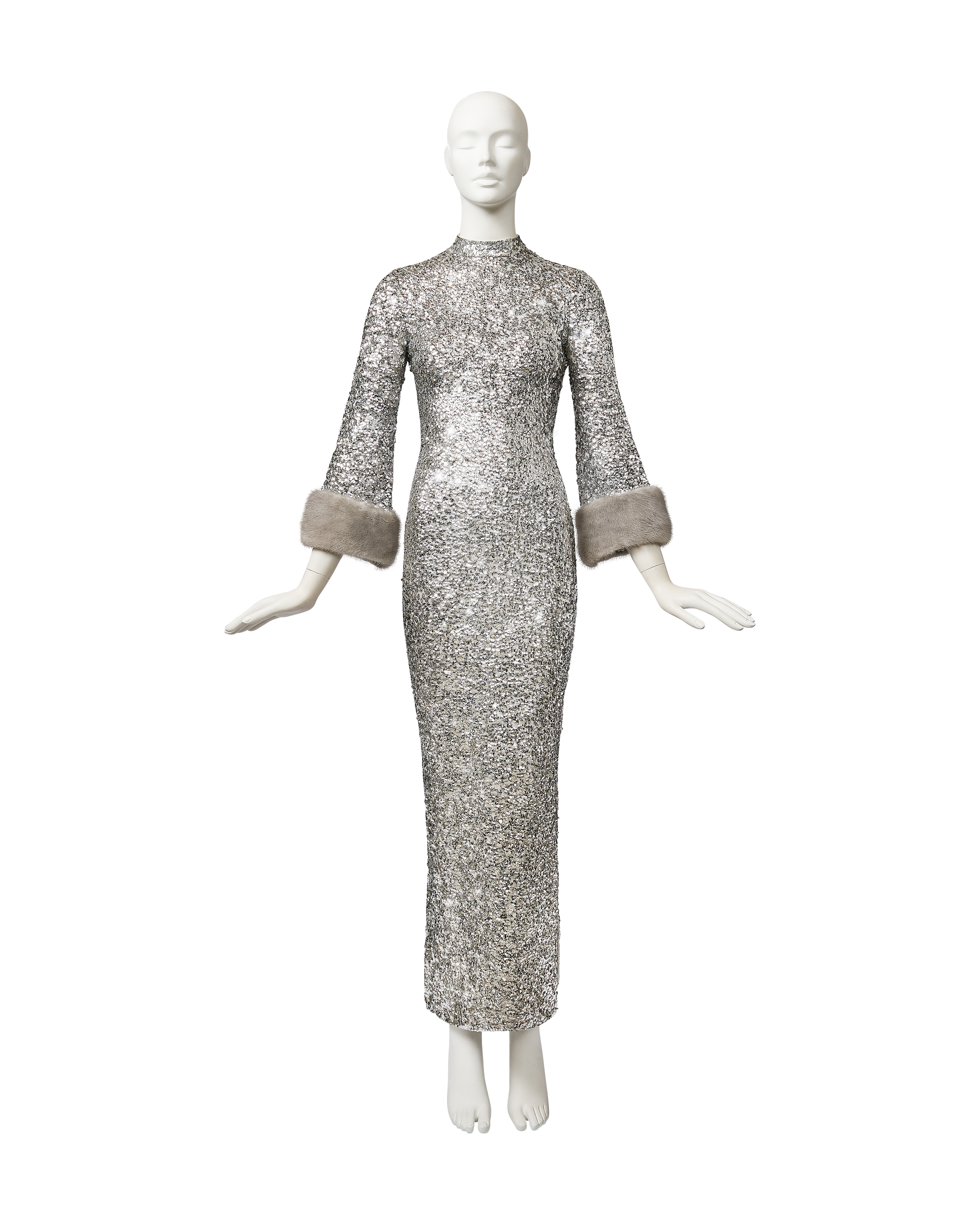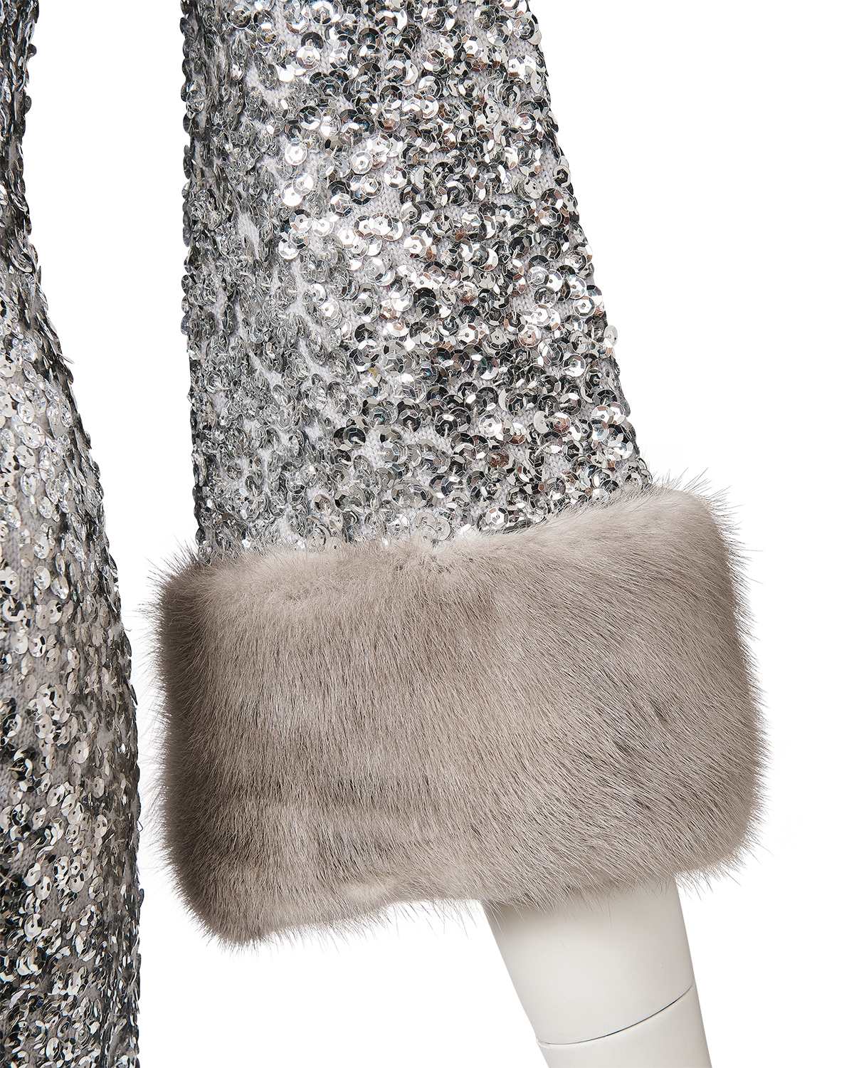 1960's Silver Sequin Knit Gown with Mink Cuffs
