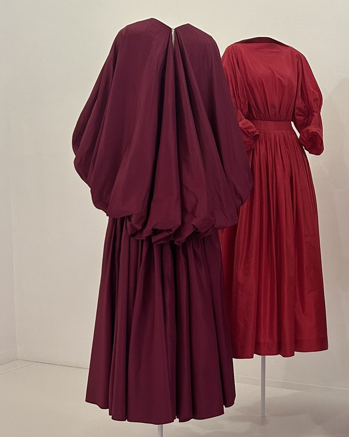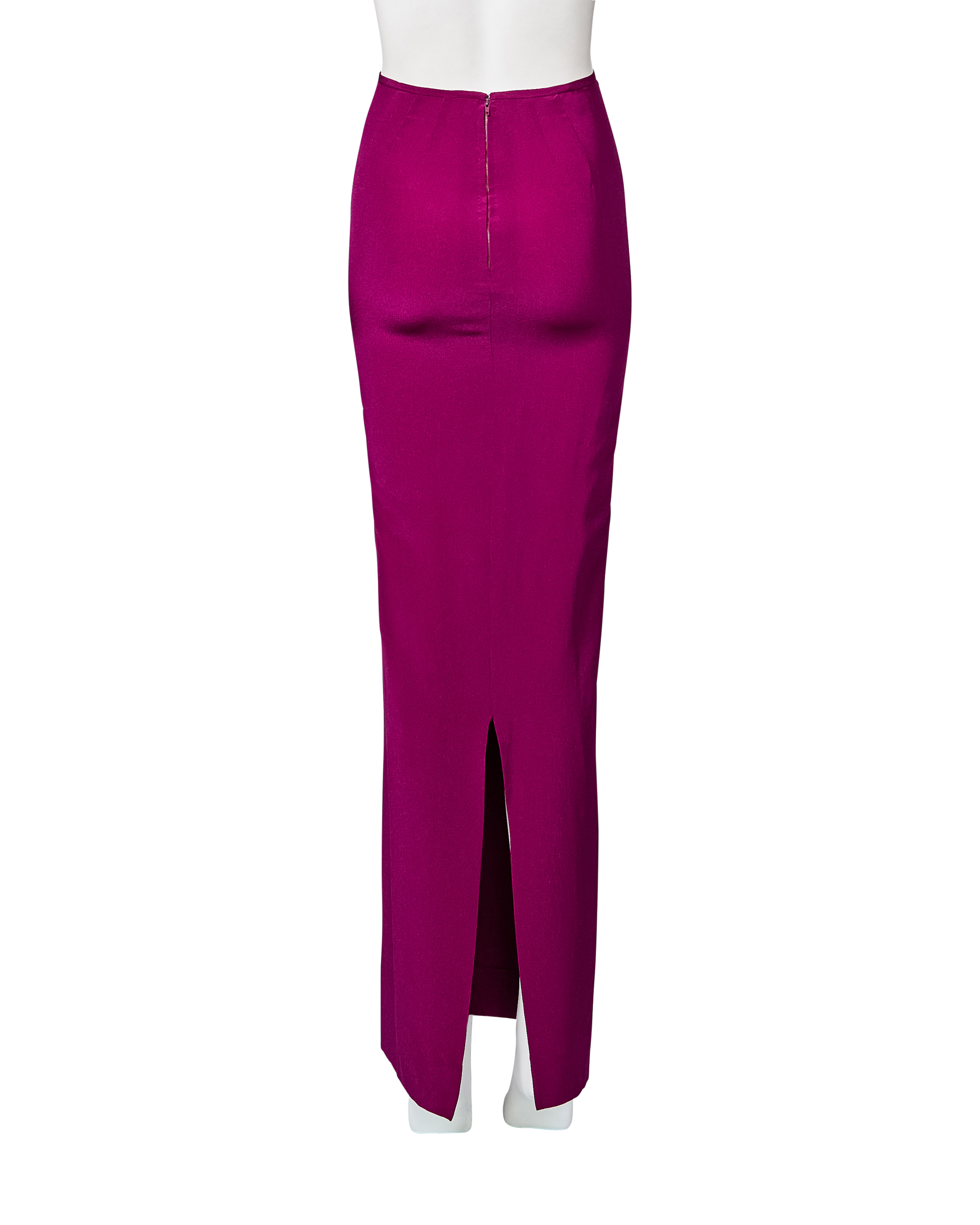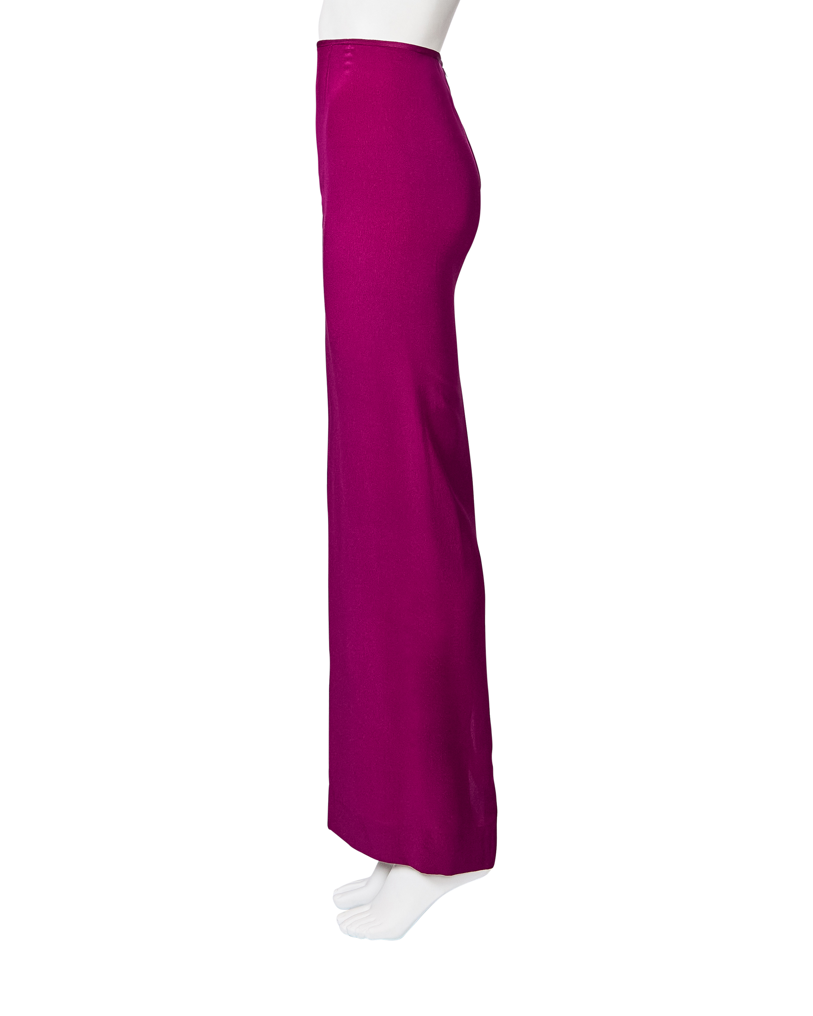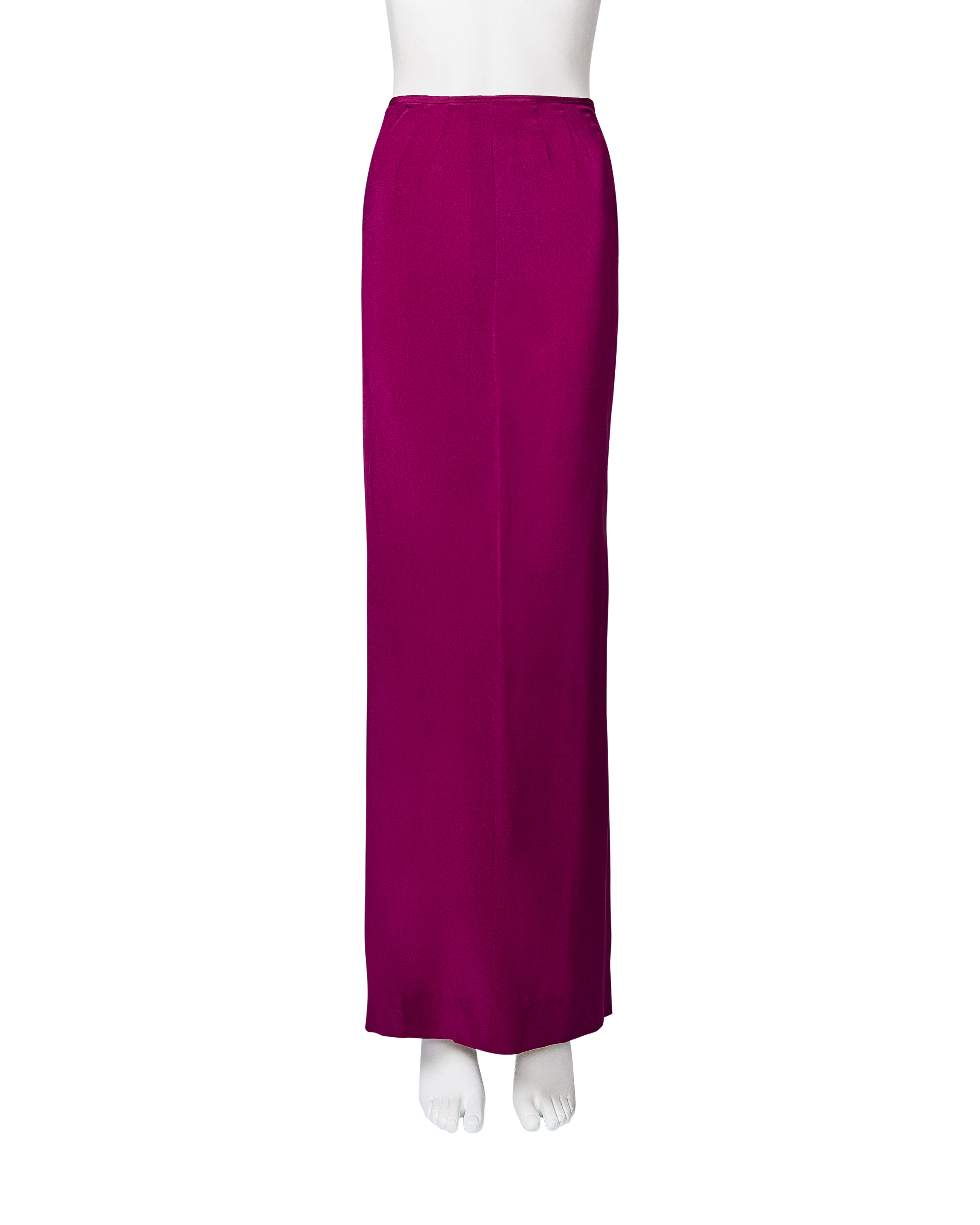 1970's Magenta Crepe Draped Top and Skirt Ensemble