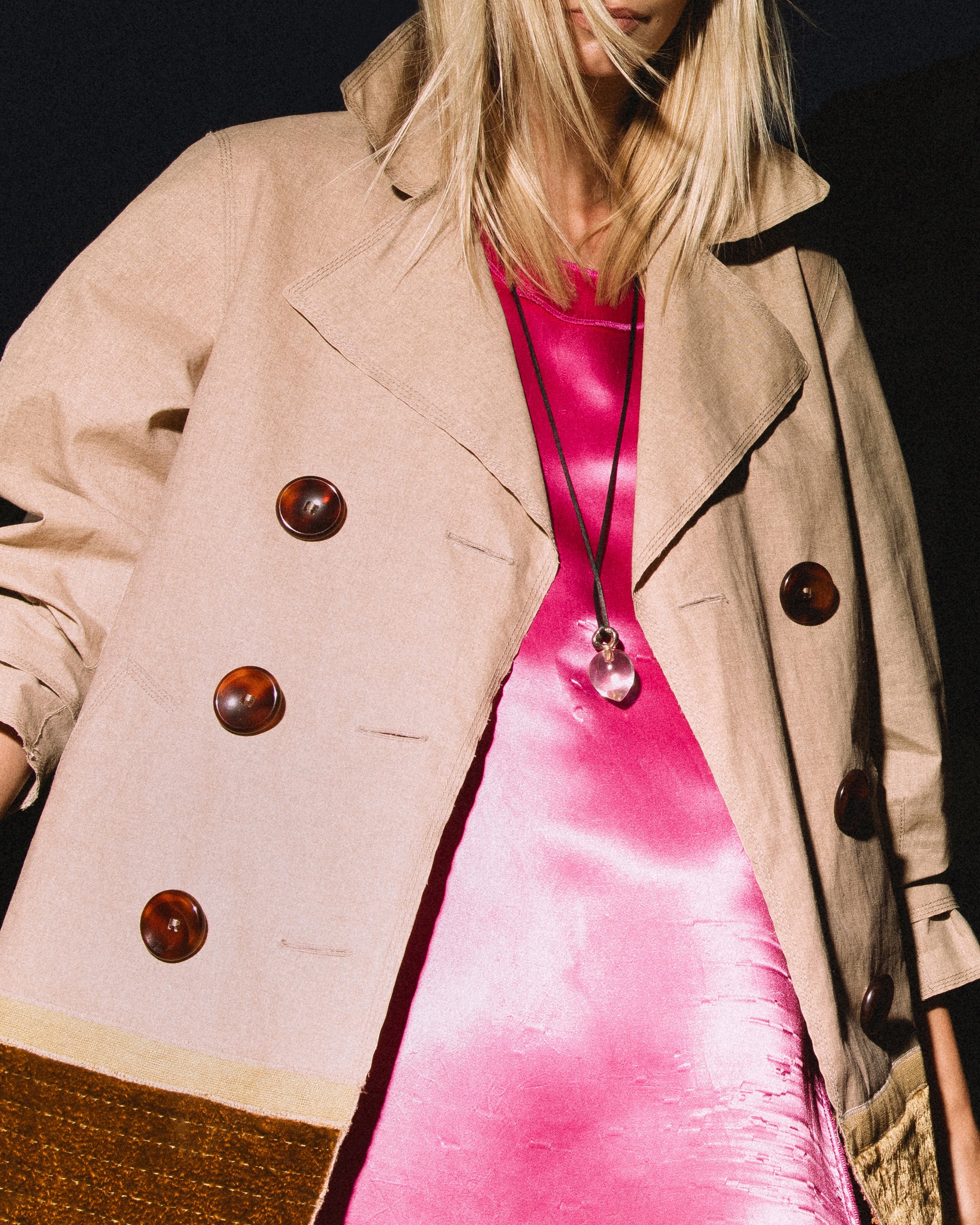 Styled with pink Maison Martin Margiela 'Lining' Dress available for purchase here, and Louis Vuitton jacket available for purchase here (not included with purchase of necklace). White bra top and skirt are utilized for e-commerce purposes only and are not included with purchase.