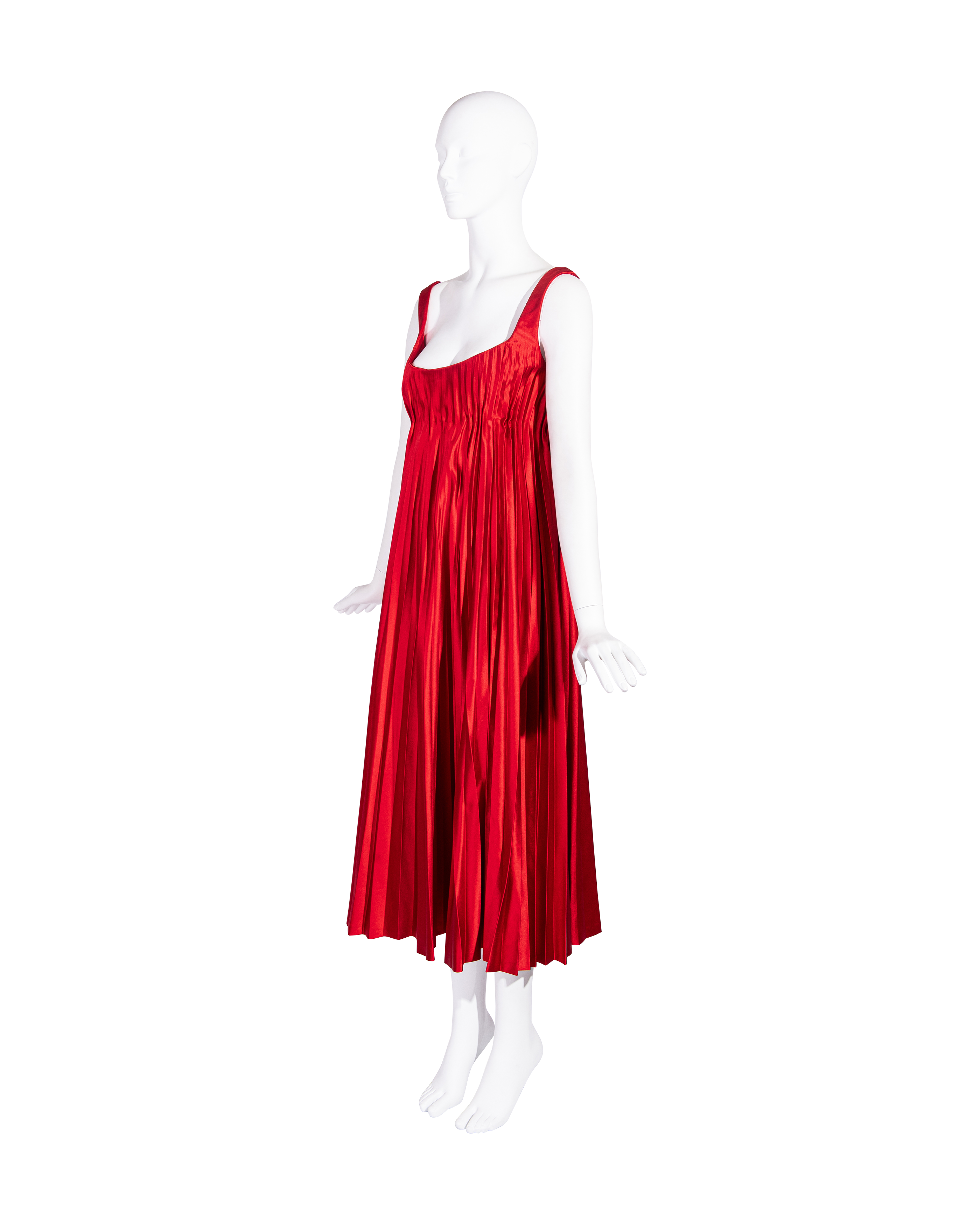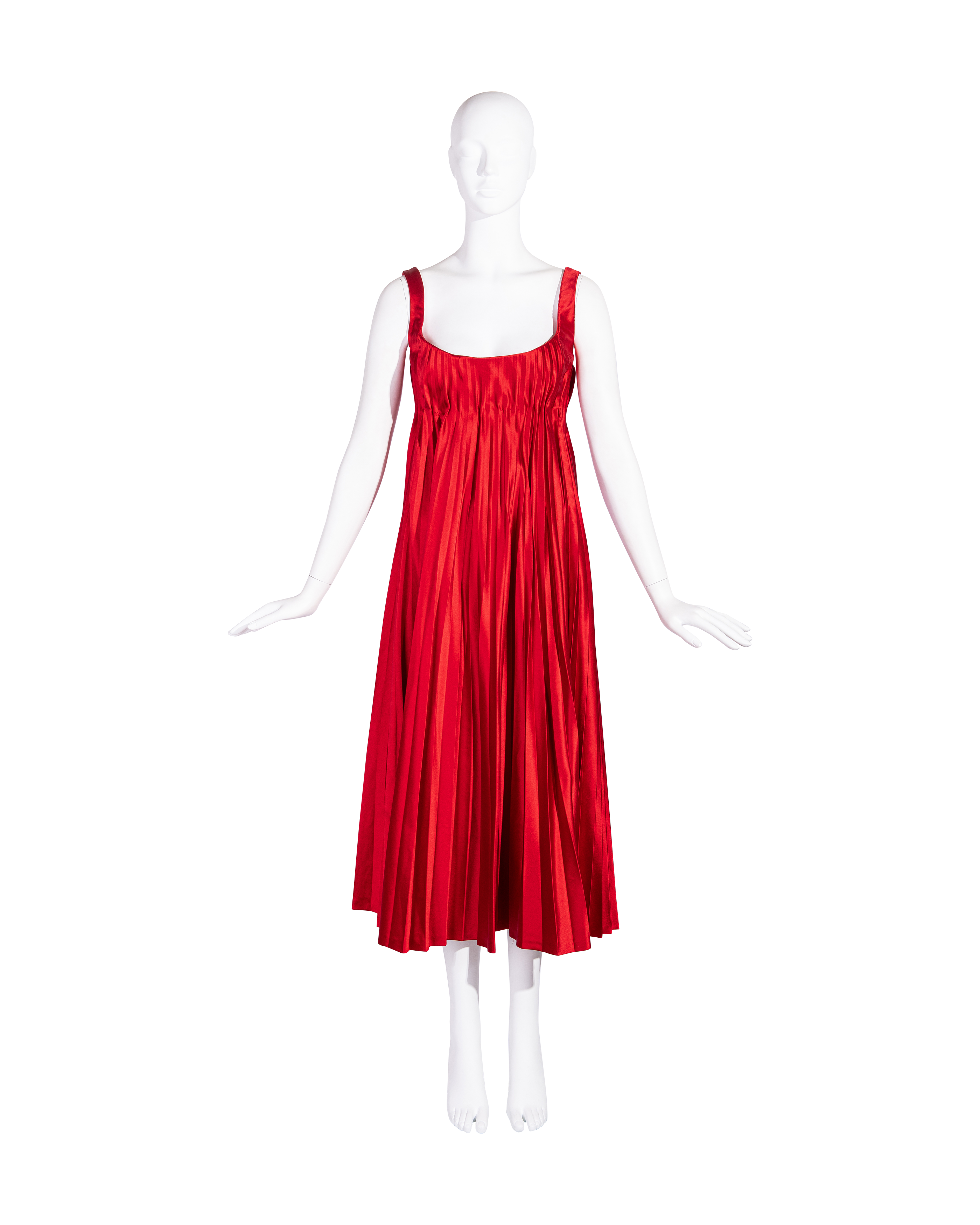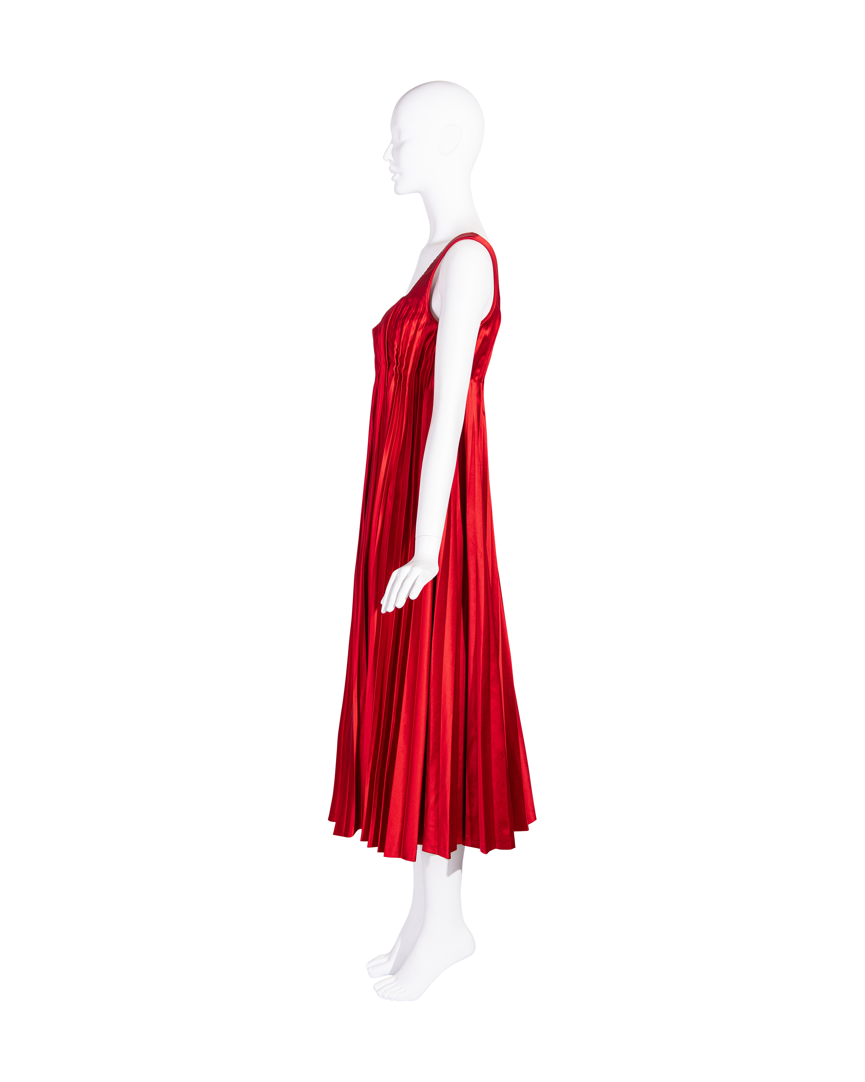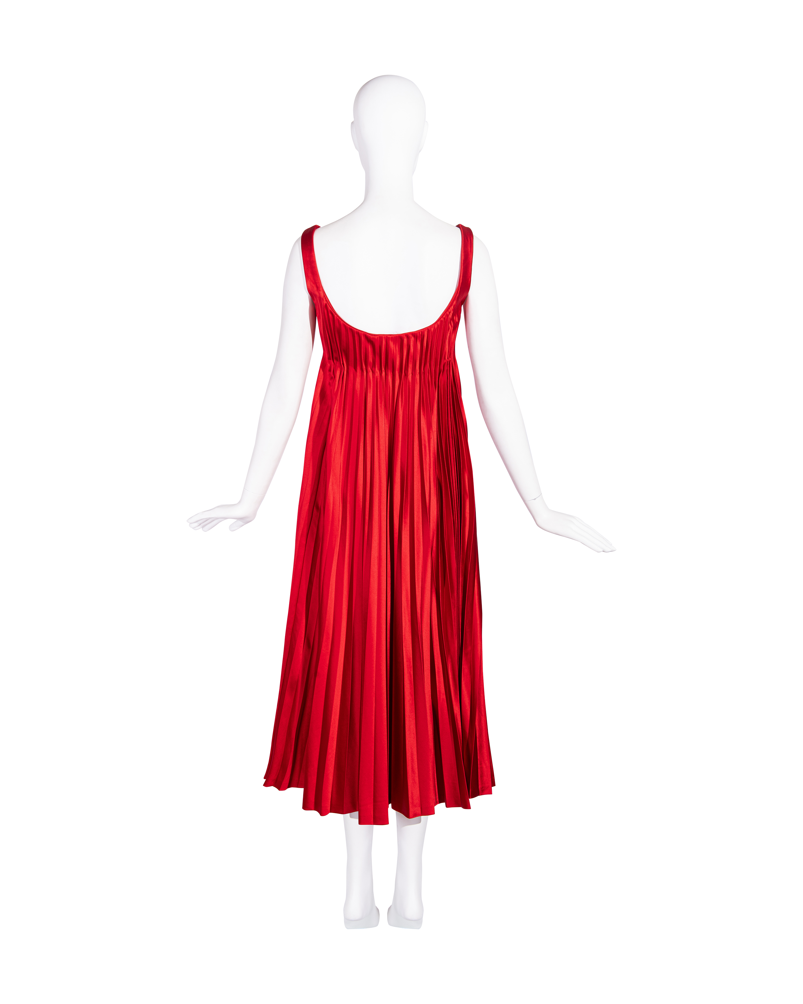 A/W 2003 Red Sleeveless Pleated Midi Dress
