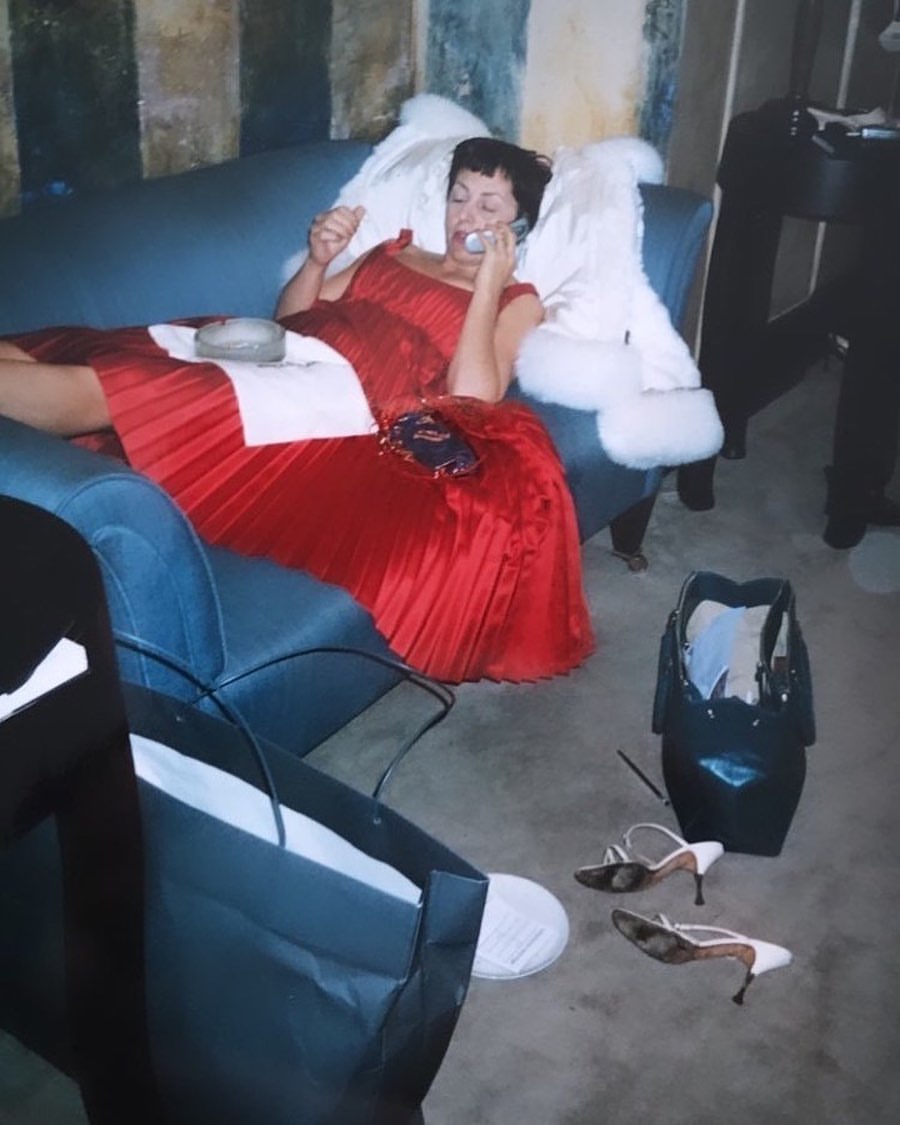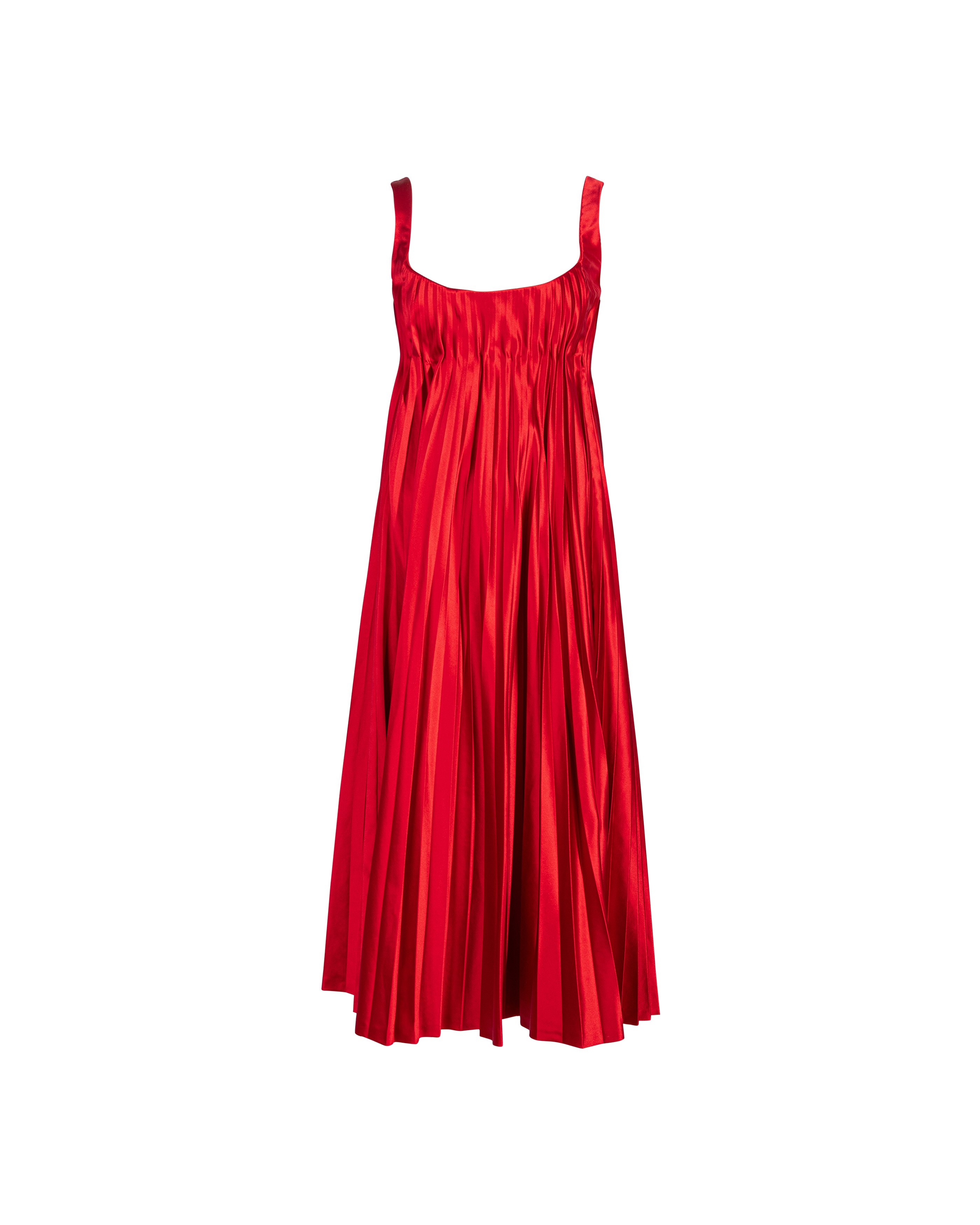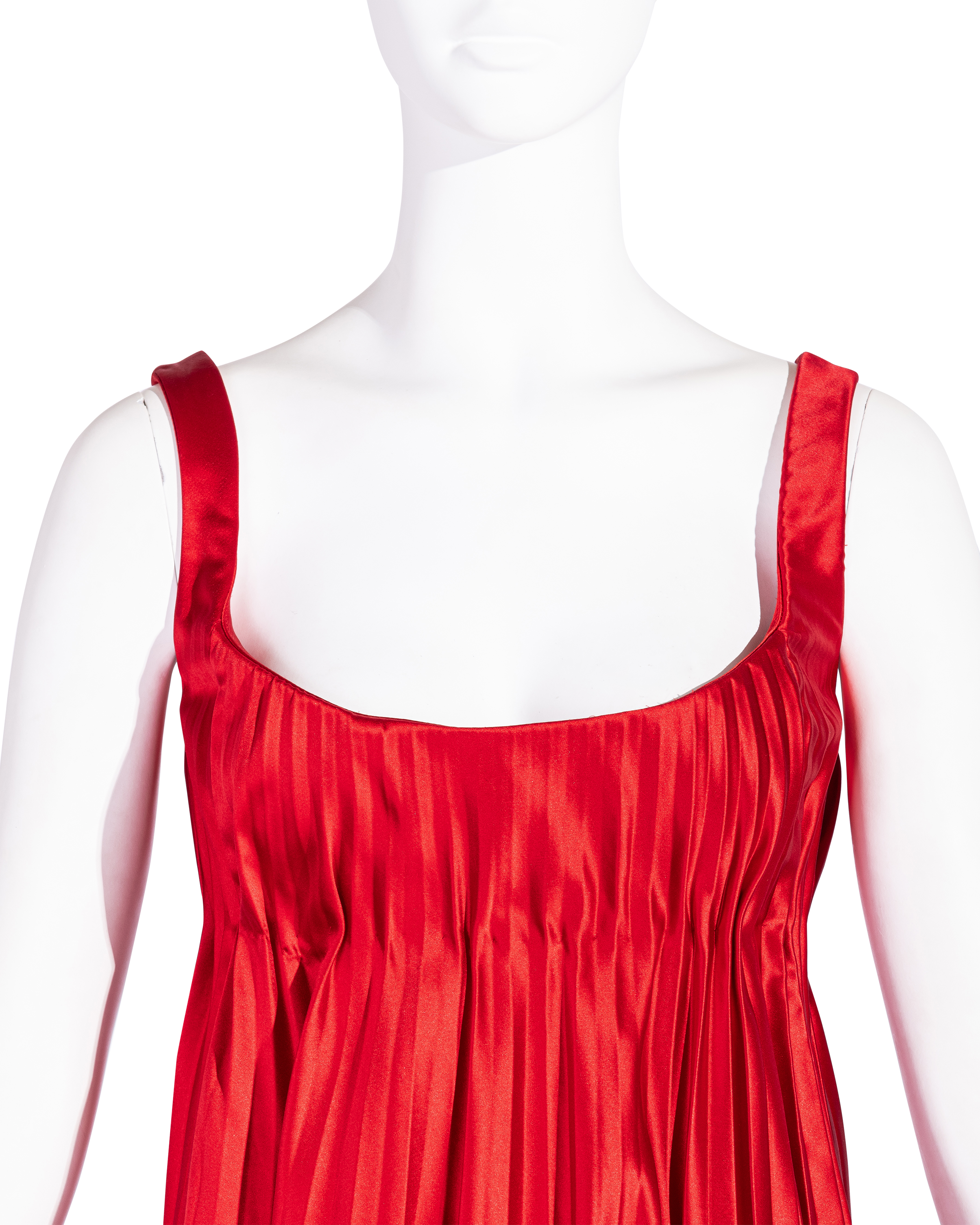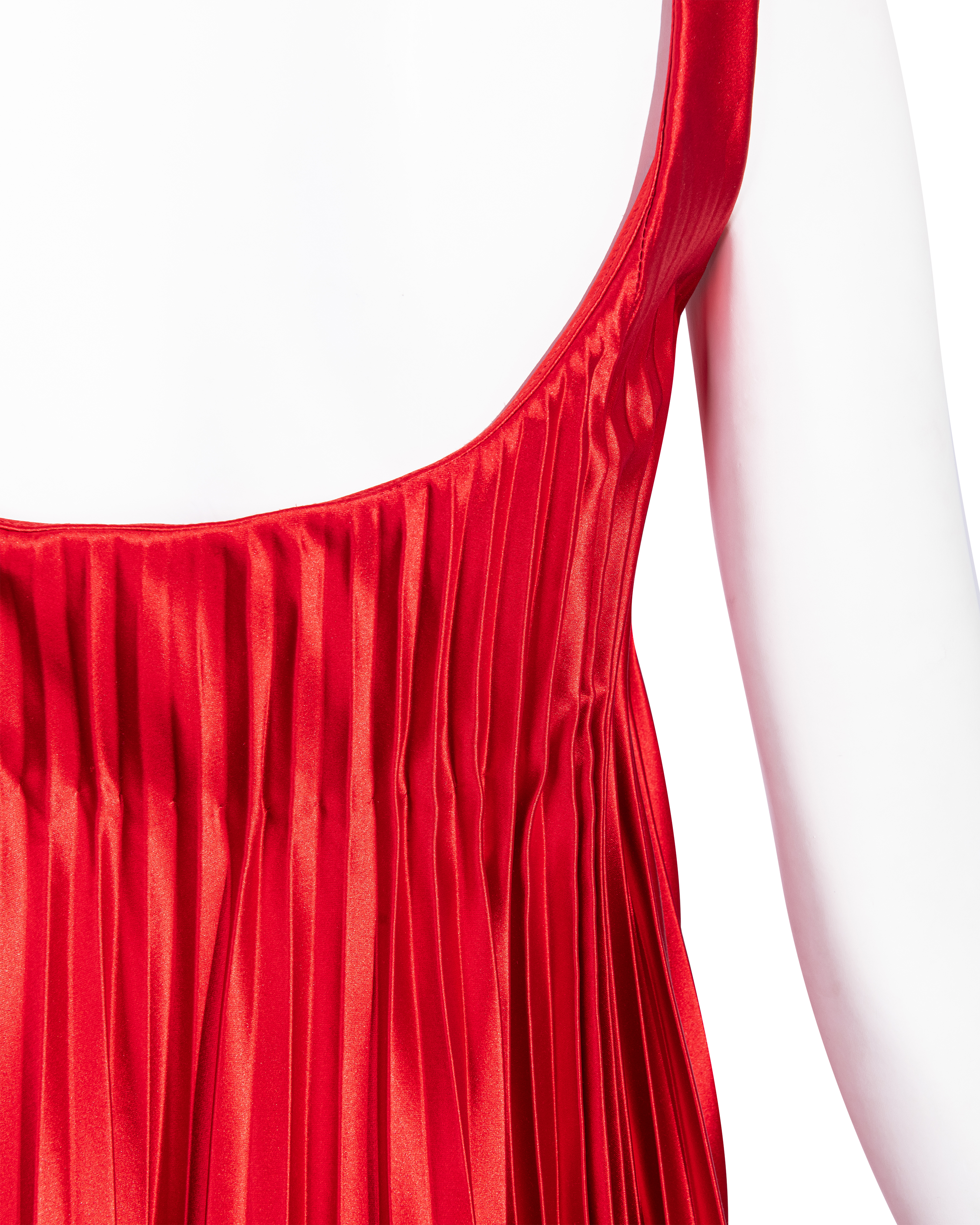 A/W 2003 Red Sleeveless Pleated Midi Dress