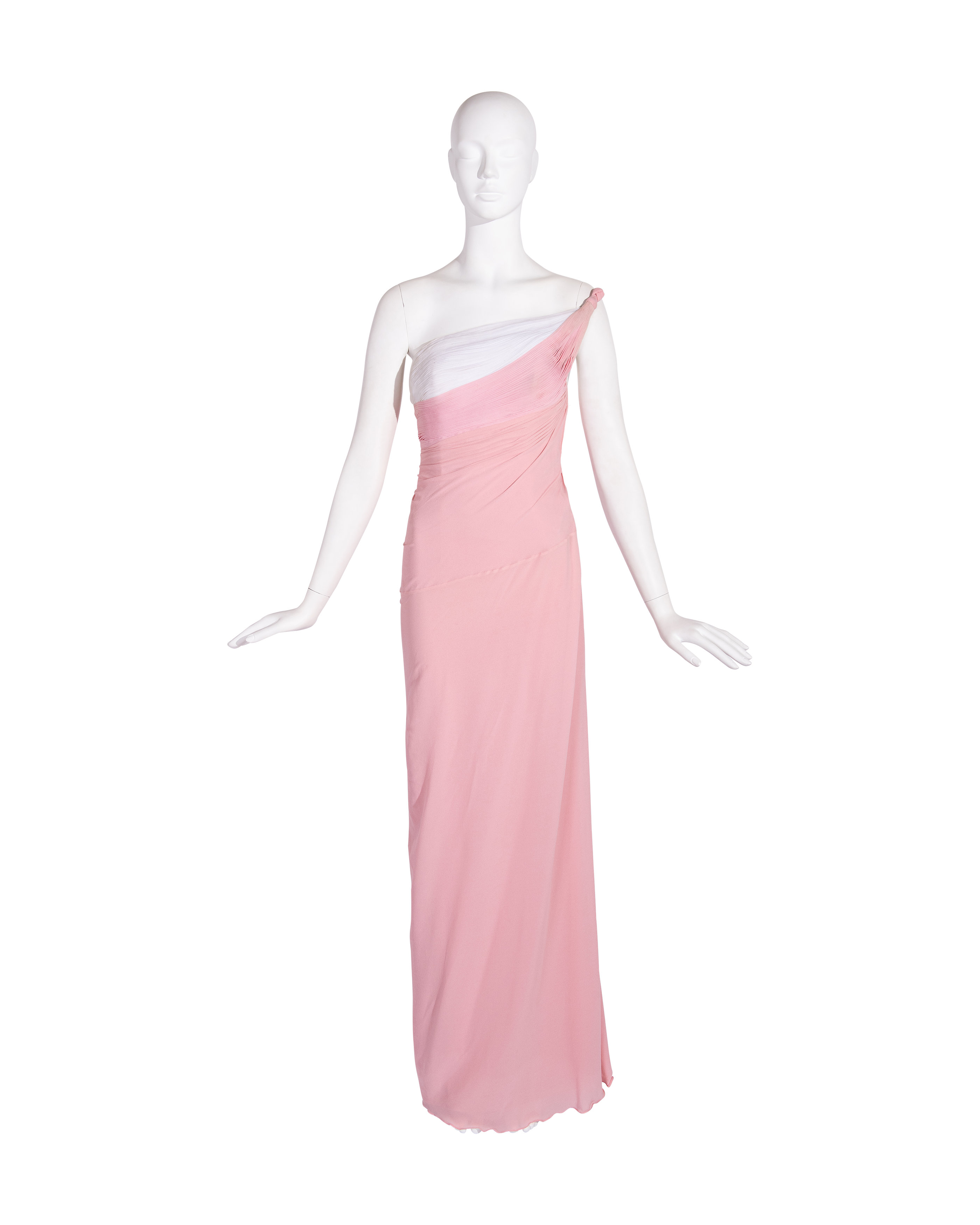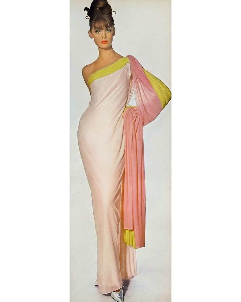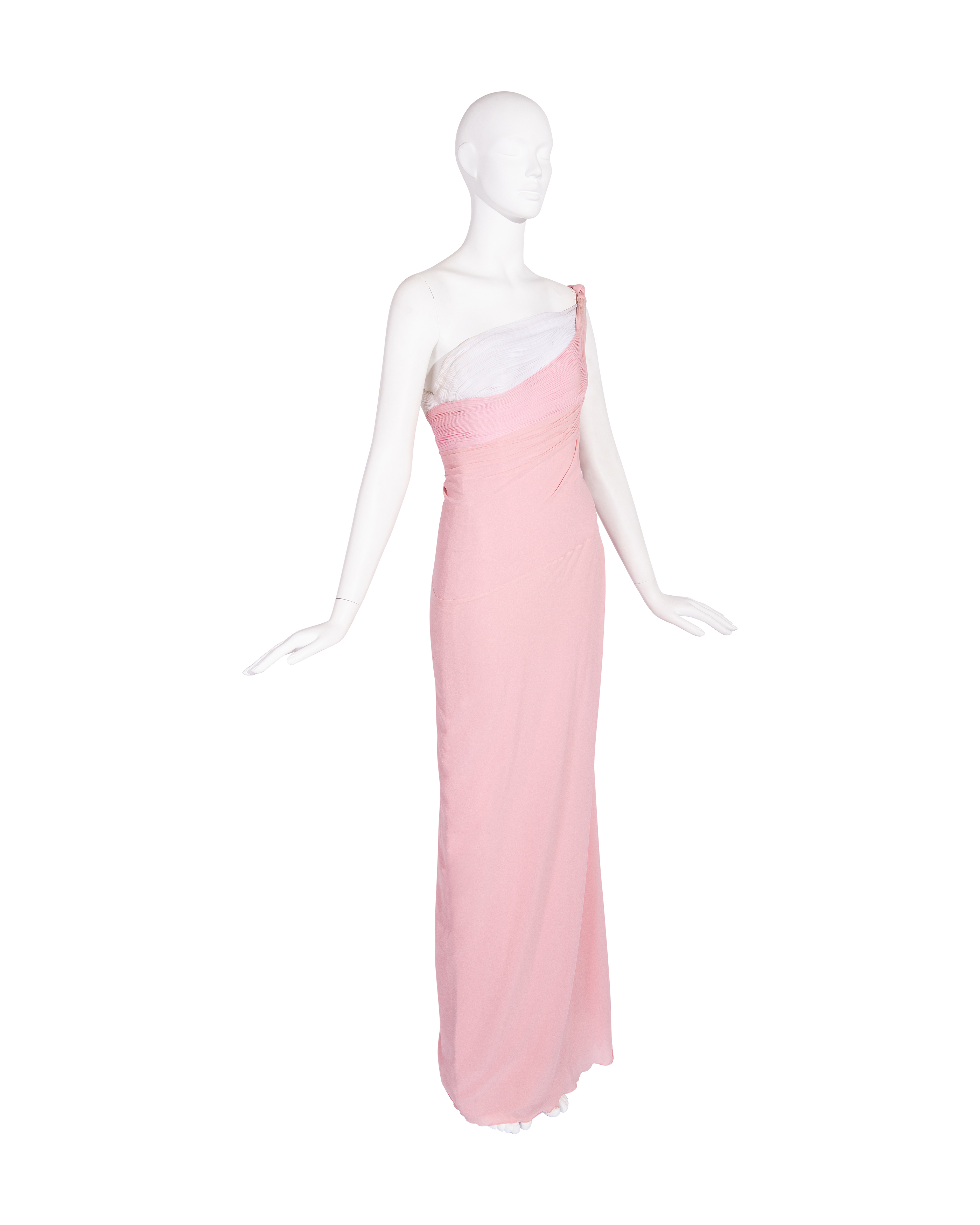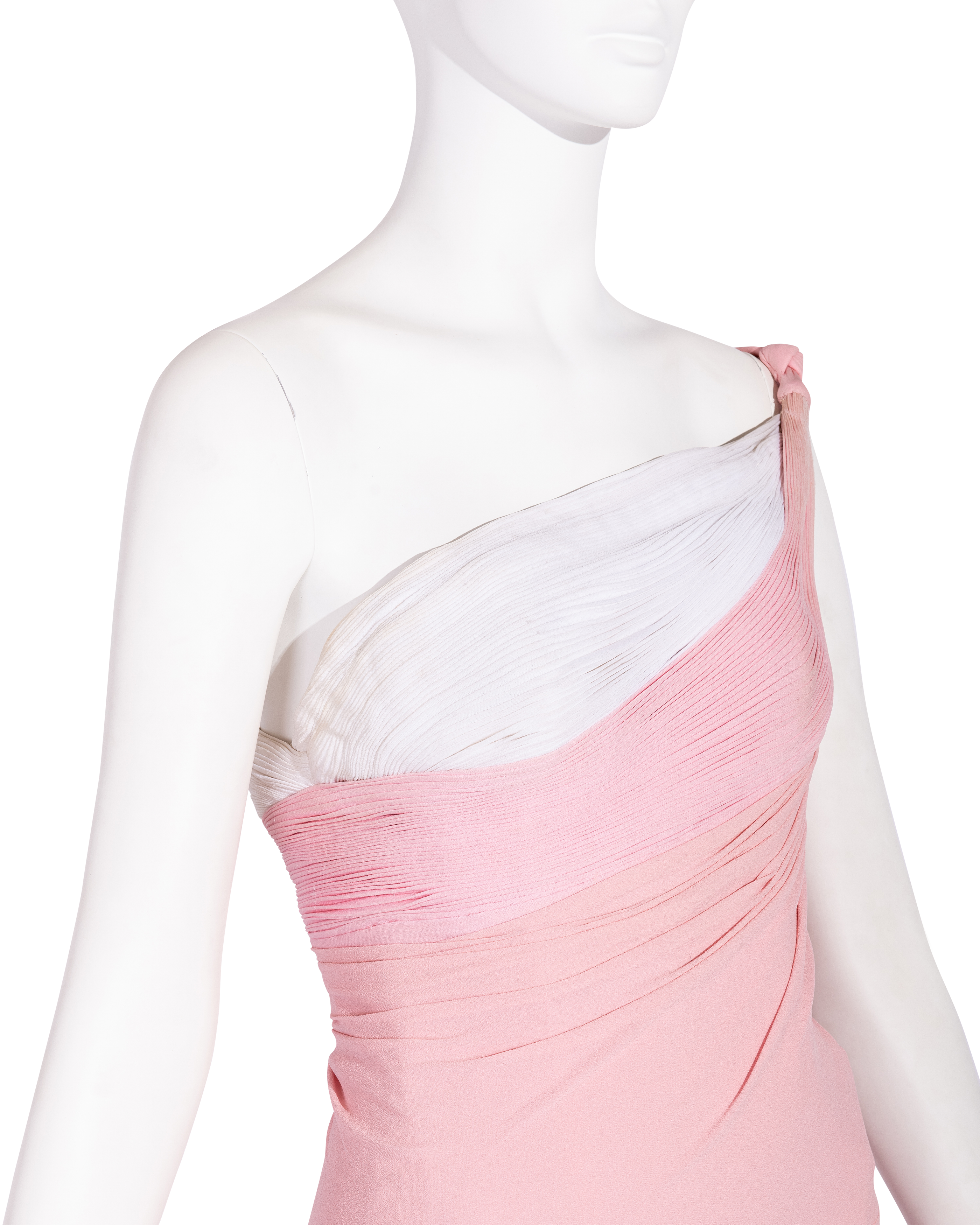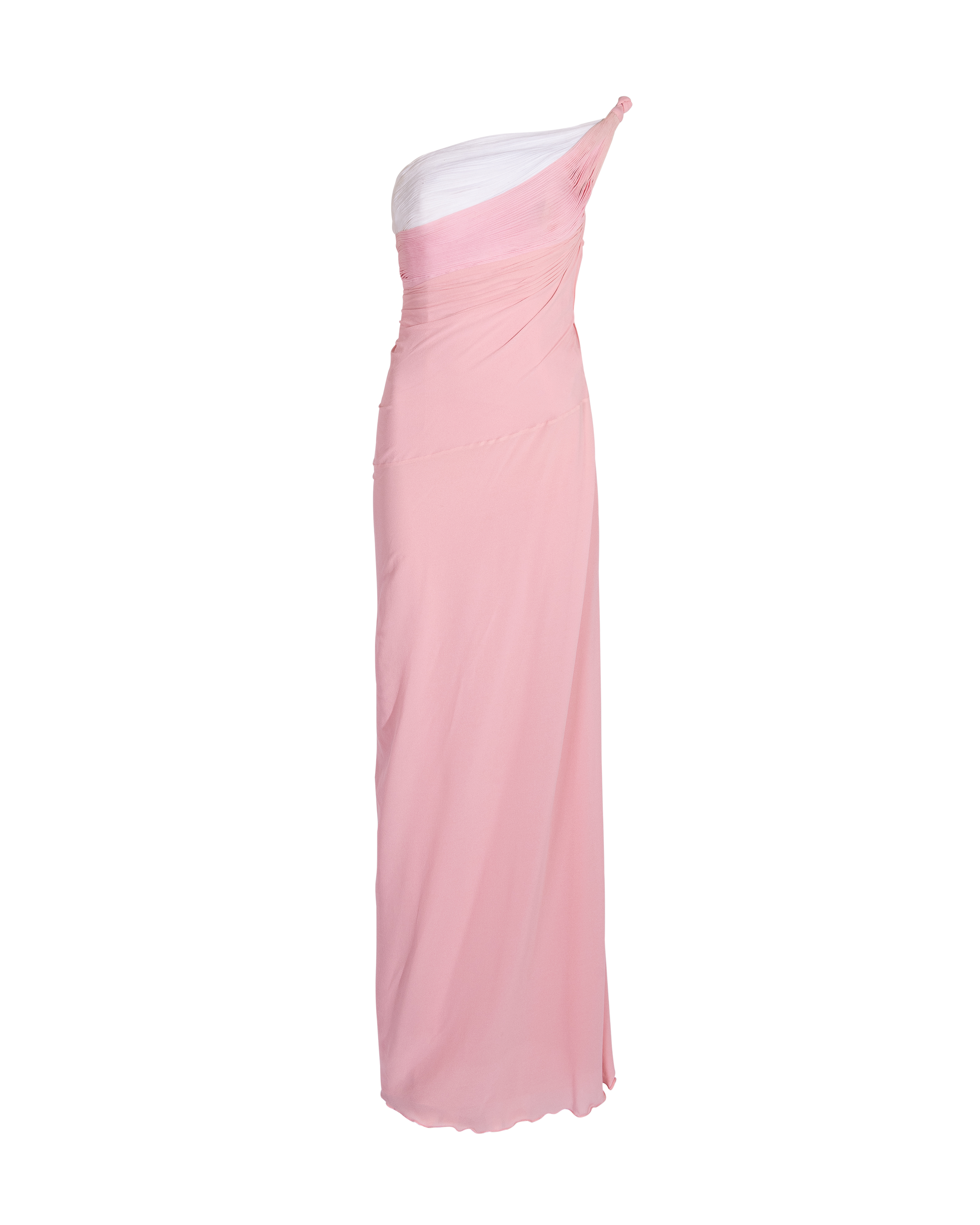 S/S 1963 Haute Couture Hand-Pleated One-Shoulder Pink and Cream Gown