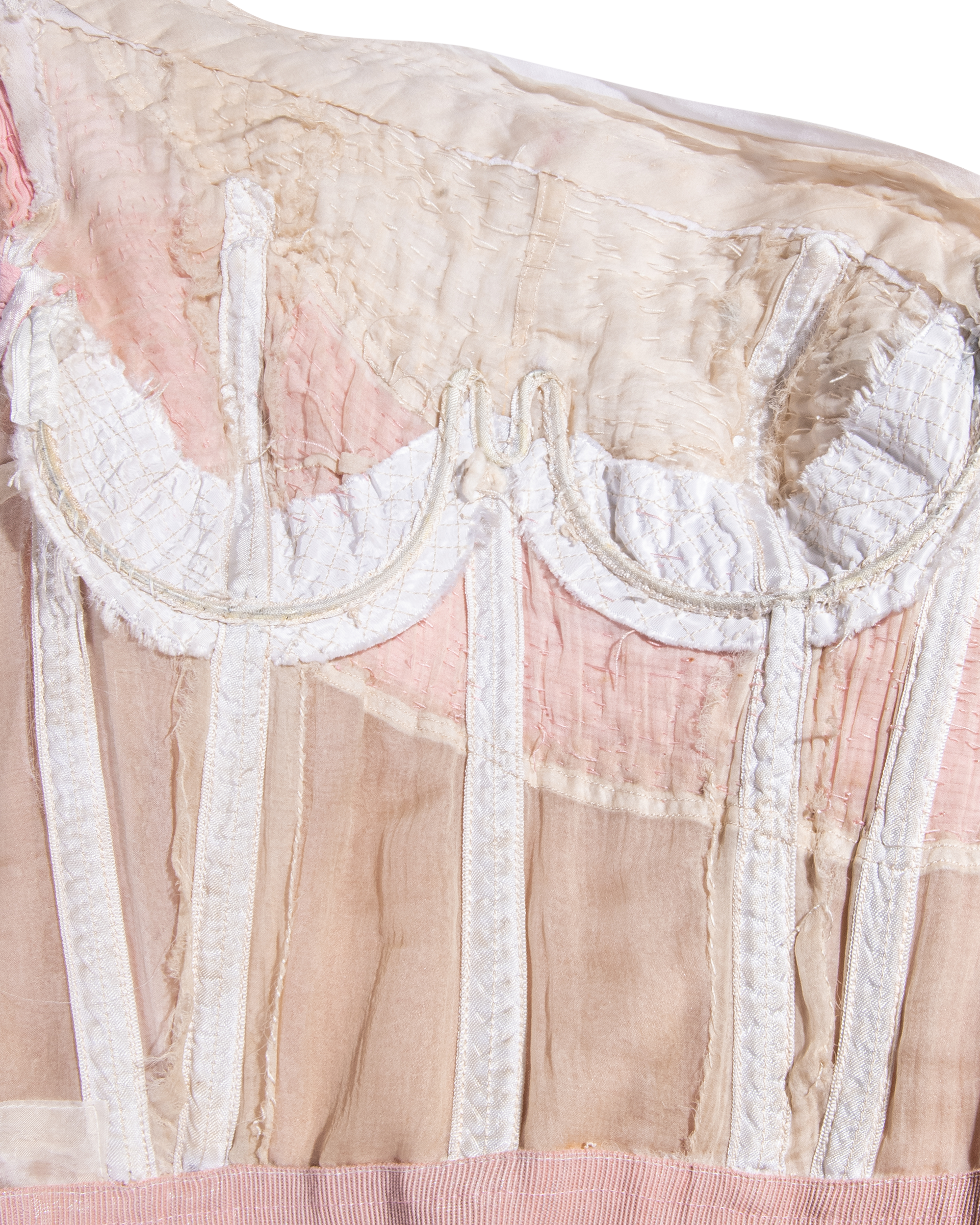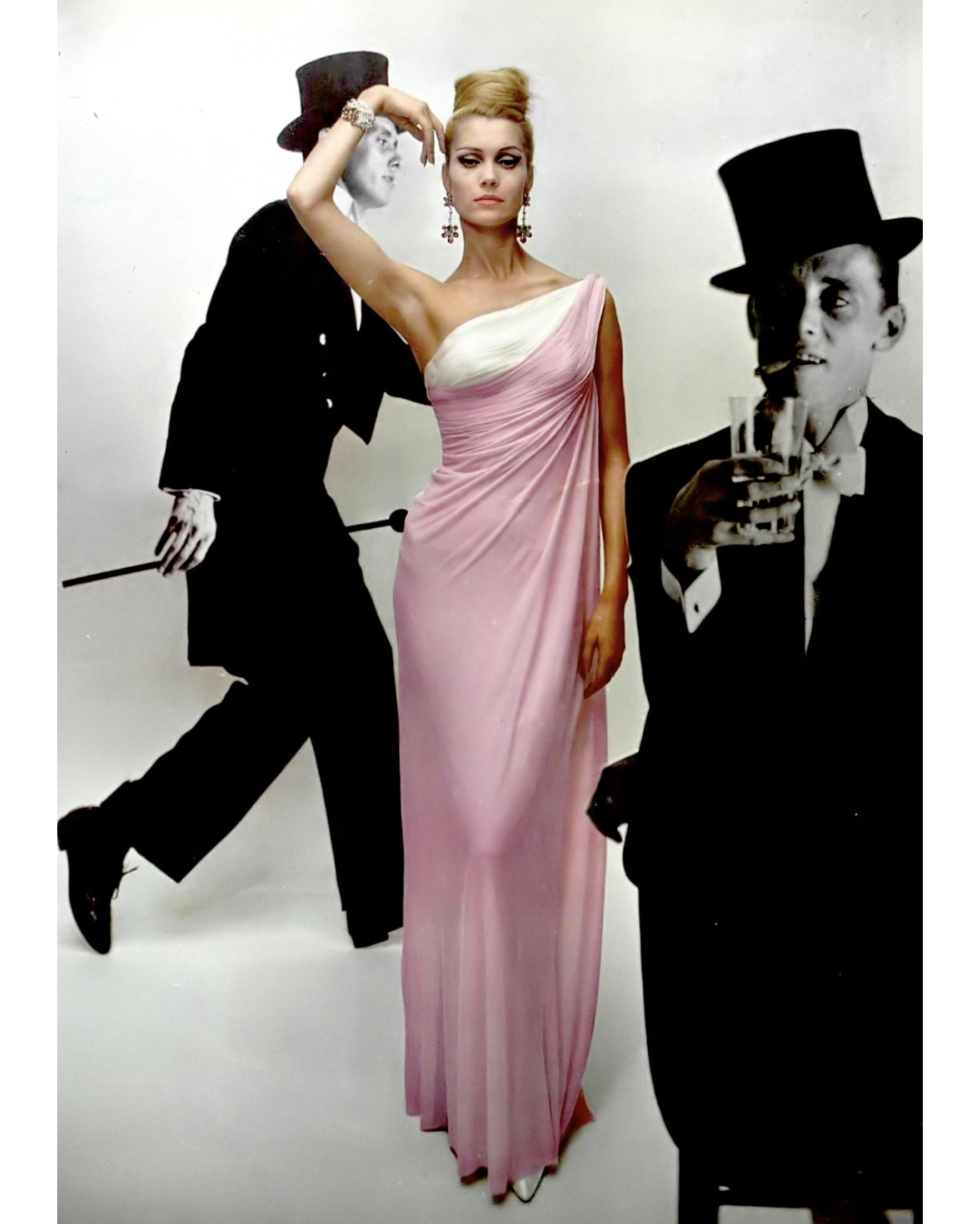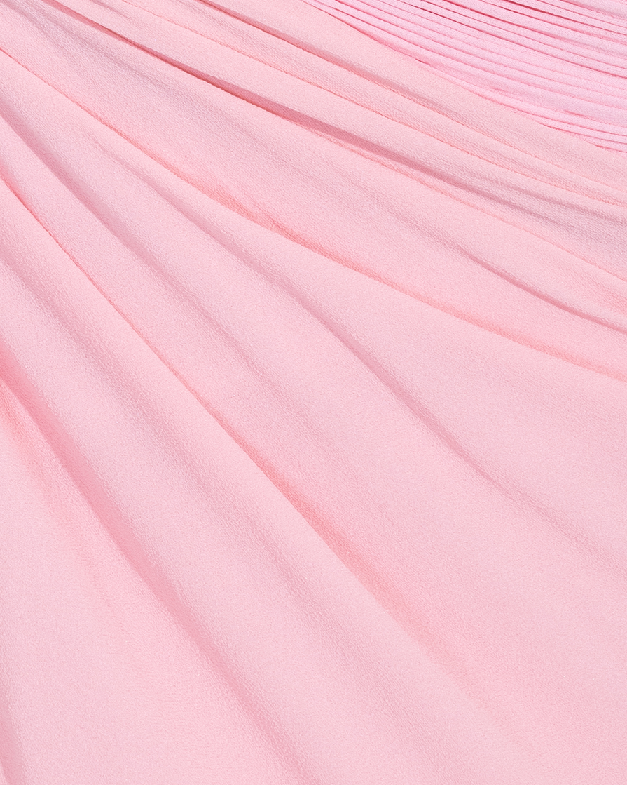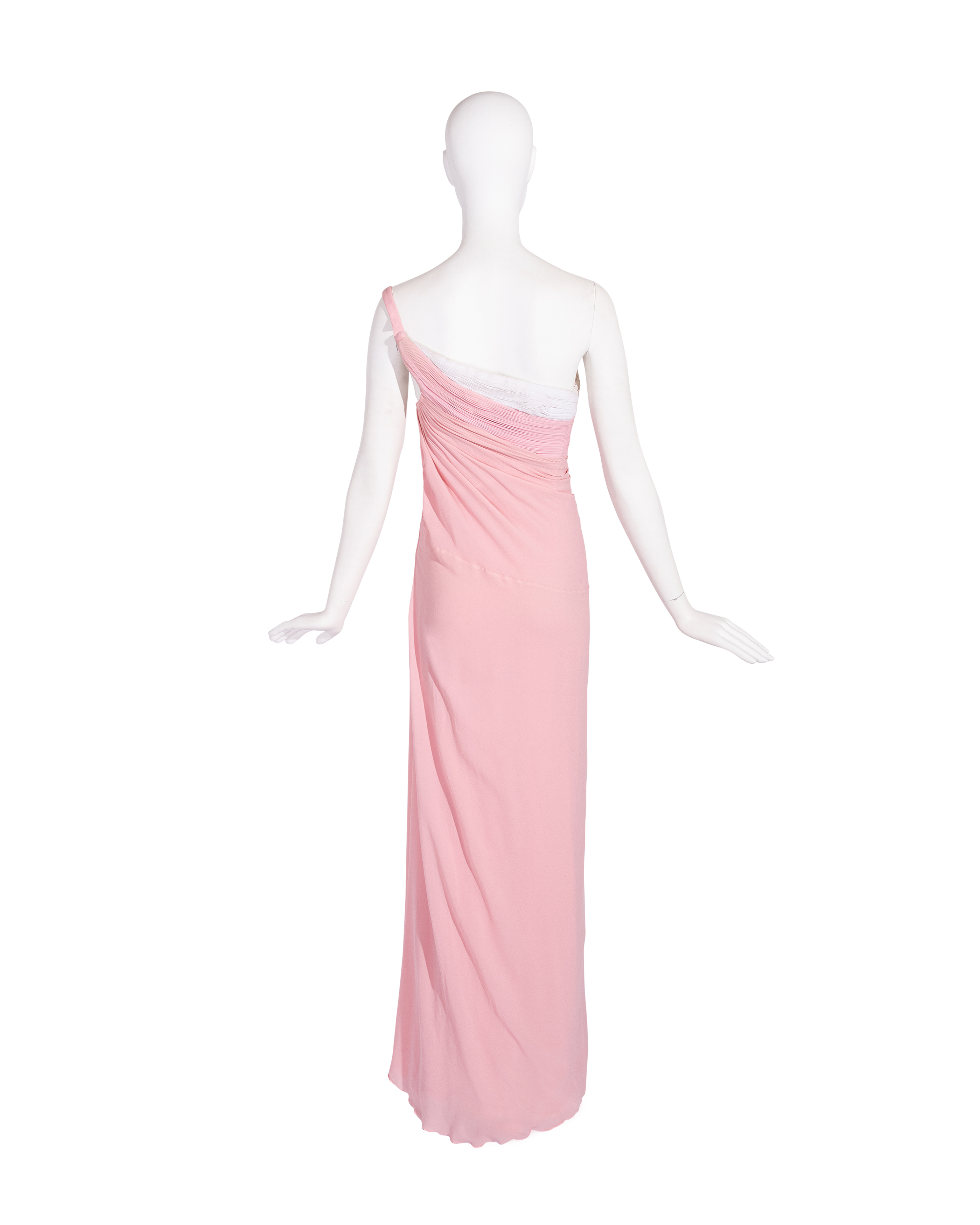 S/S 1963 Haute Couture Hand-Pleated One-Shoulder Pink and Cream Gown