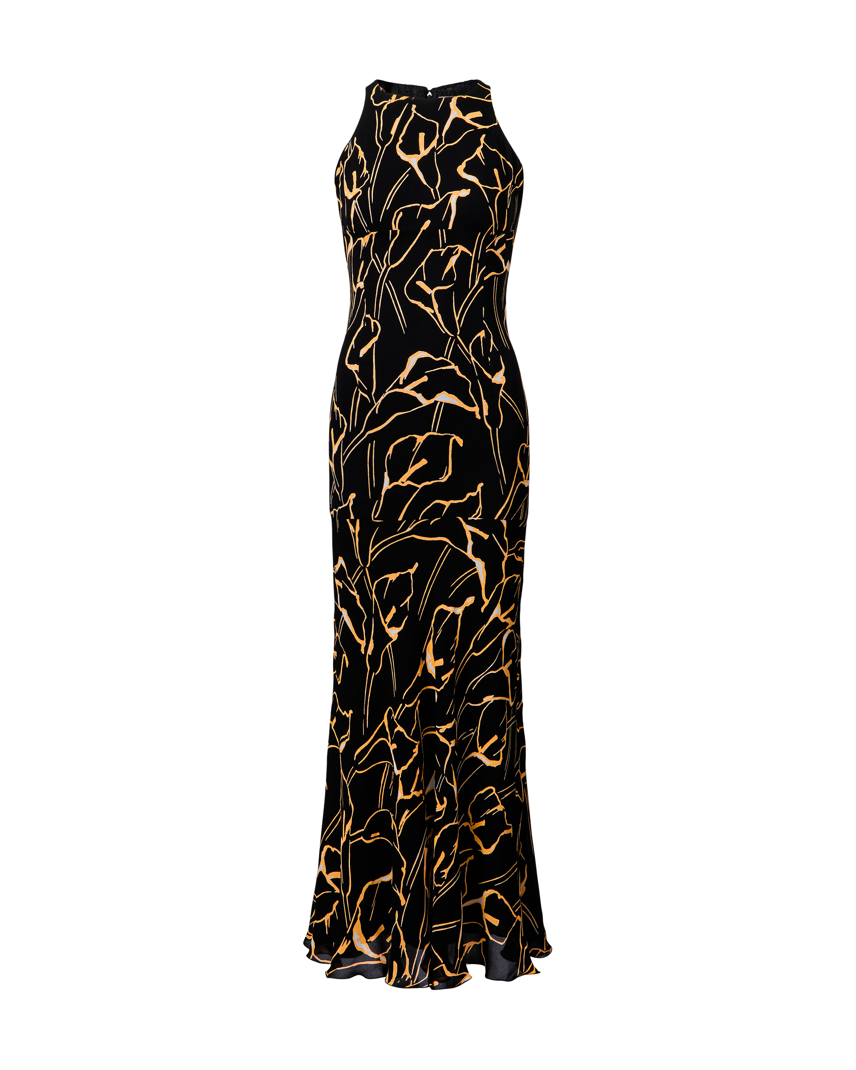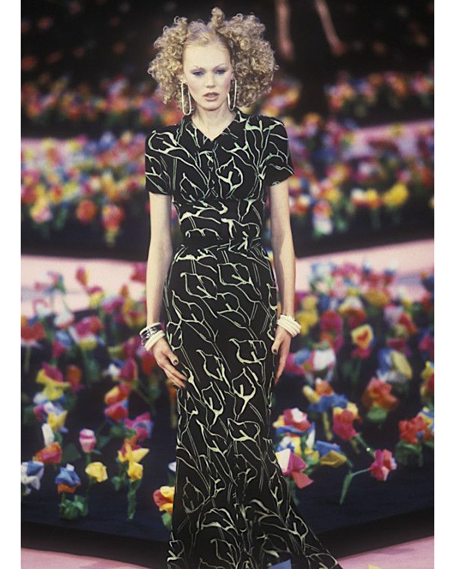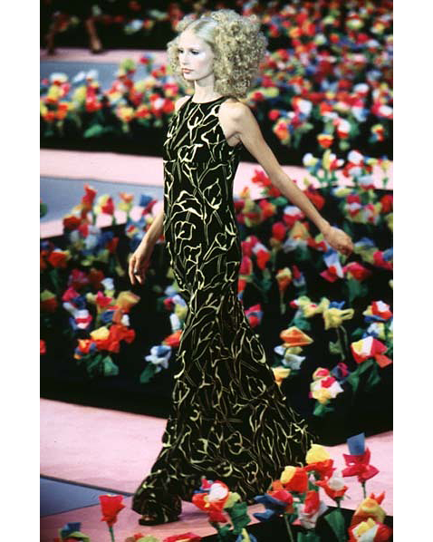 S/S 1997 Black and Yellow Coral Pattern Gown