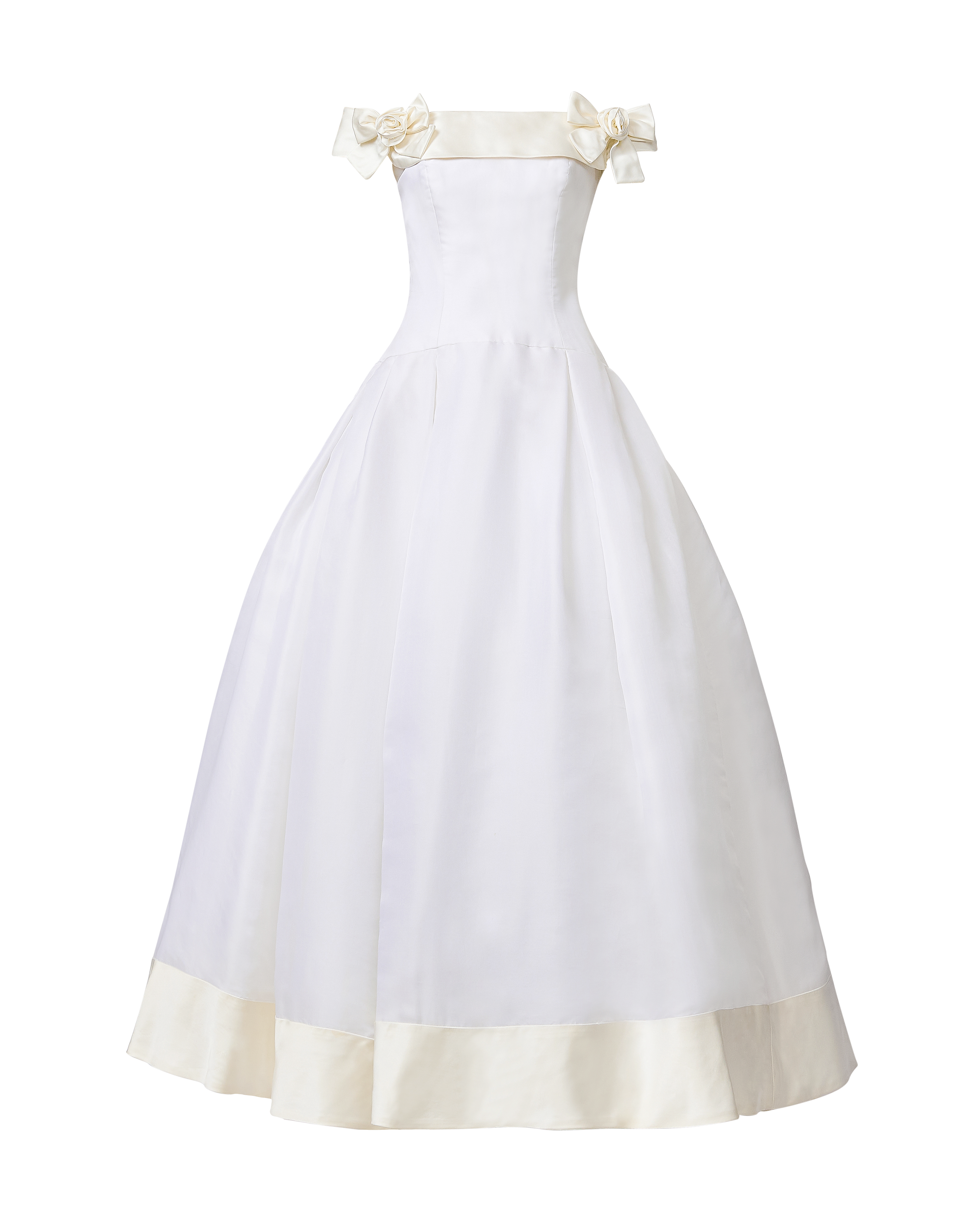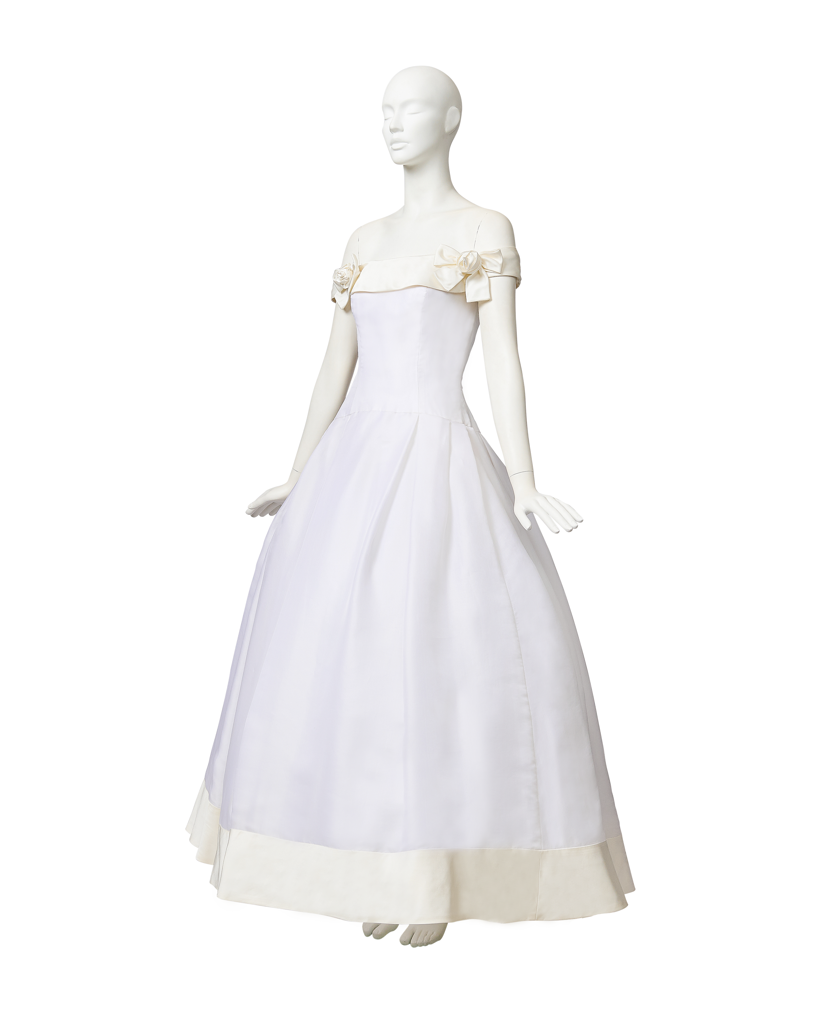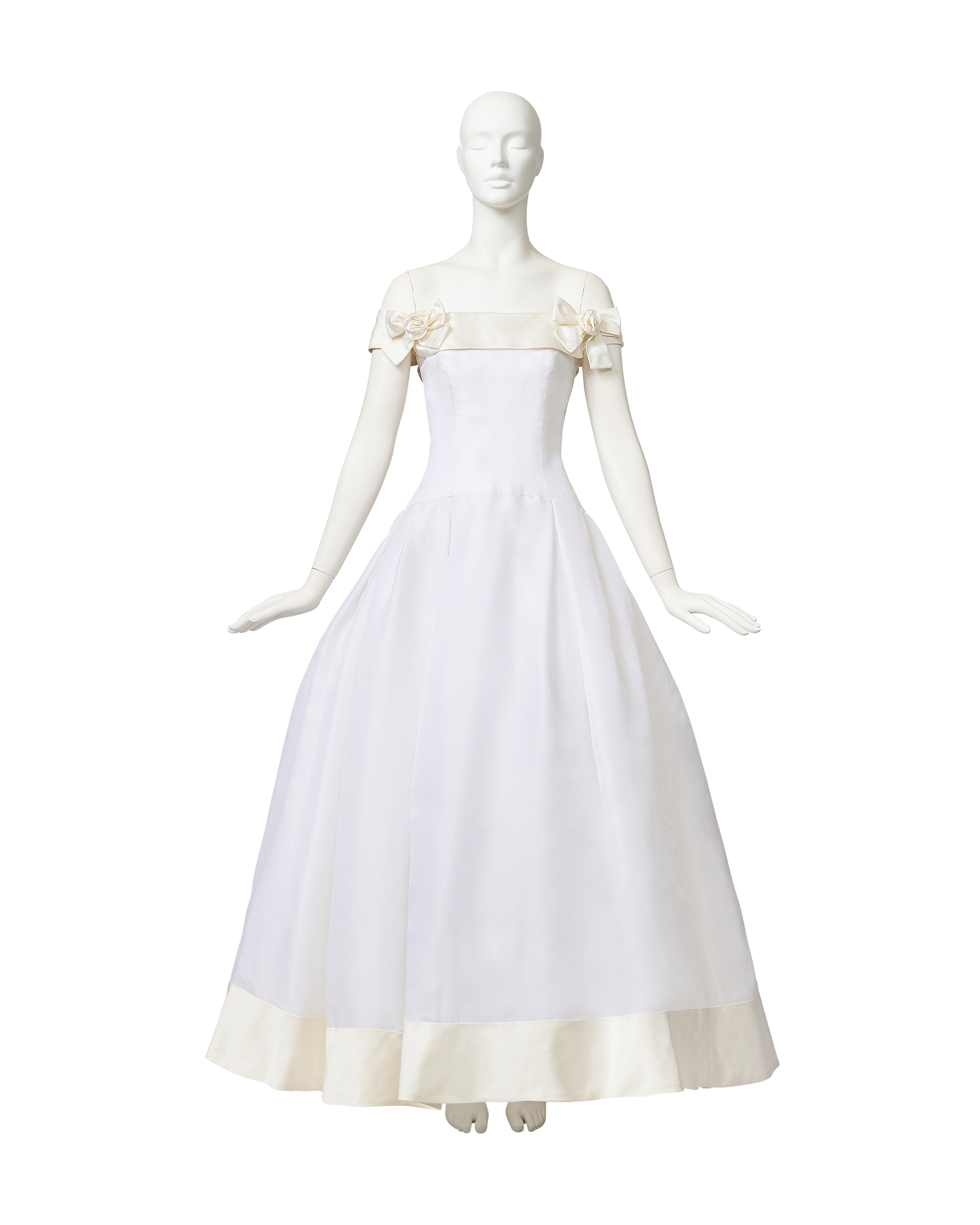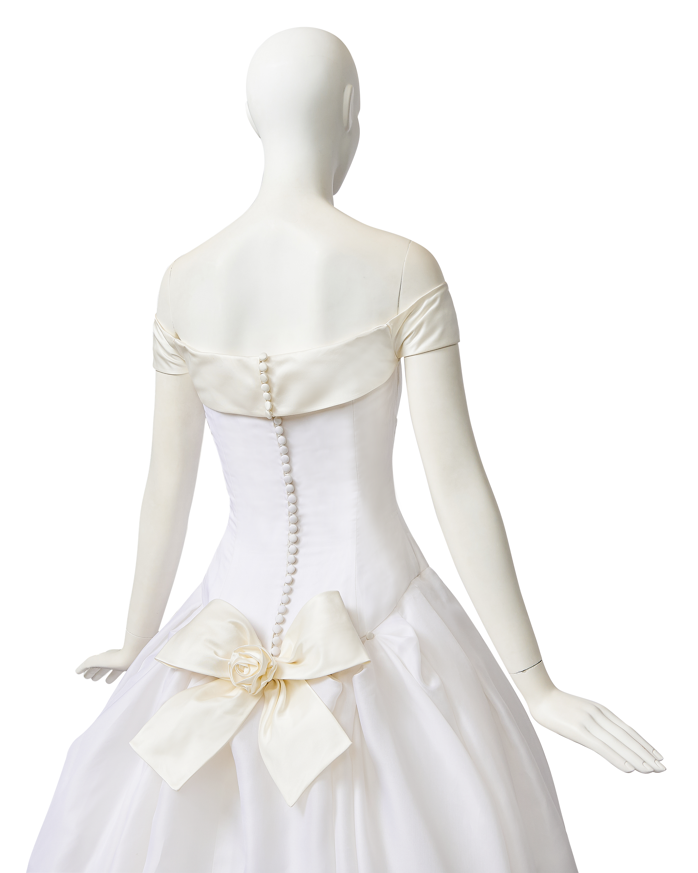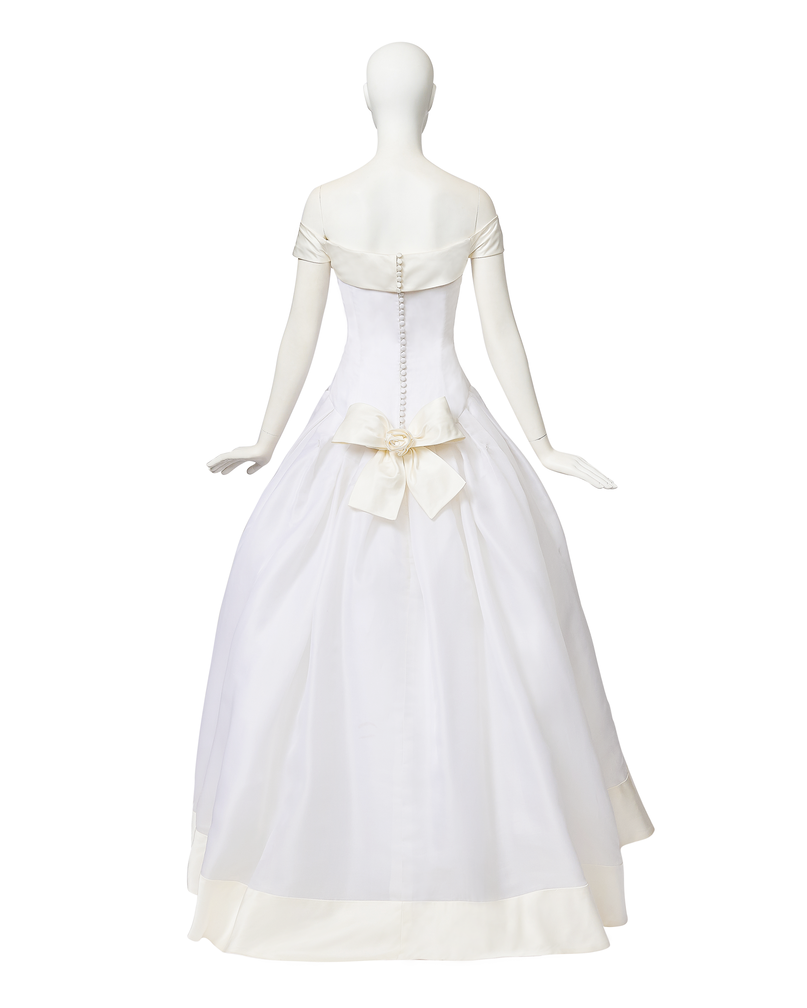 1999 Off-Shoulder Ivory Ballgown with Ecru Bow Details