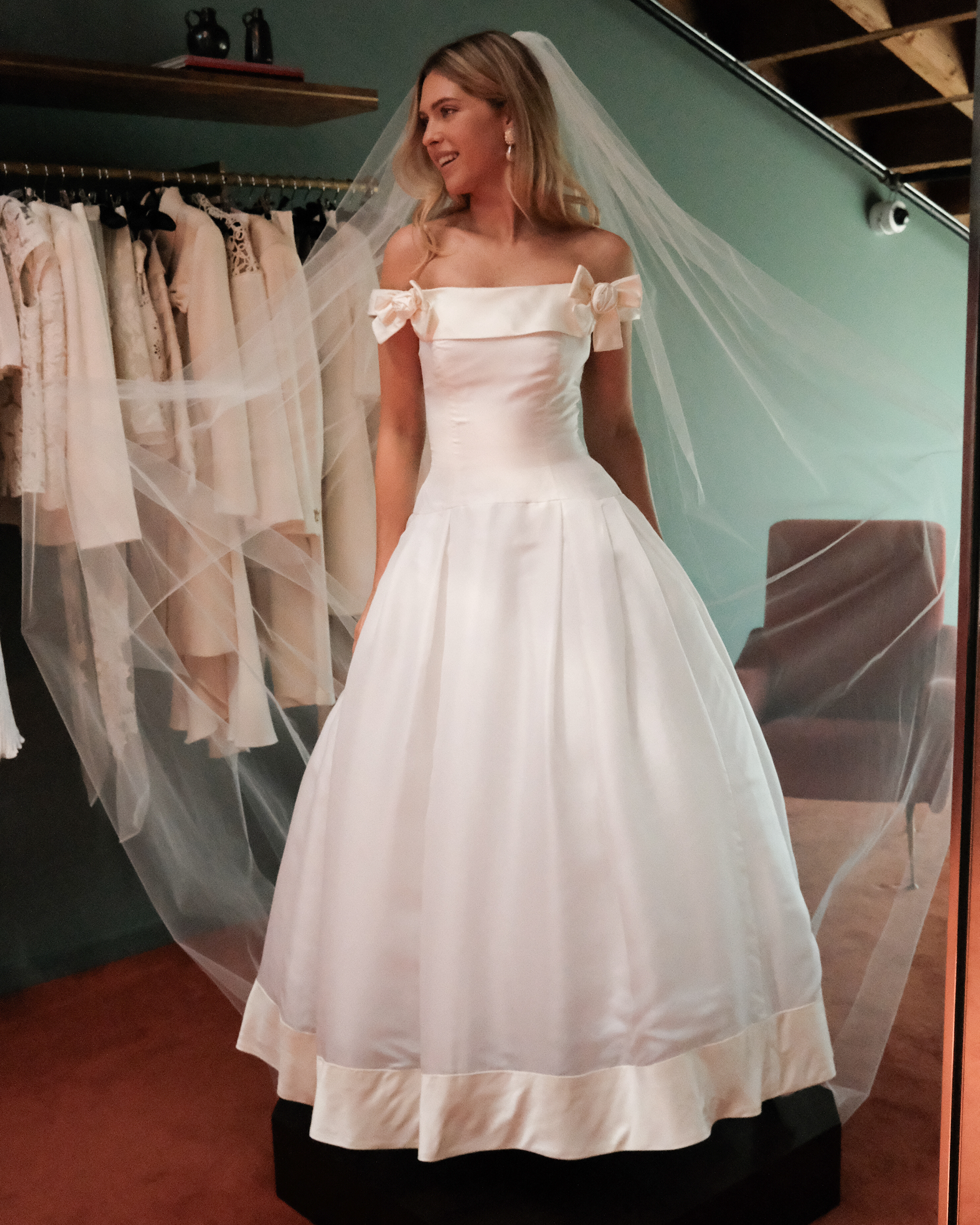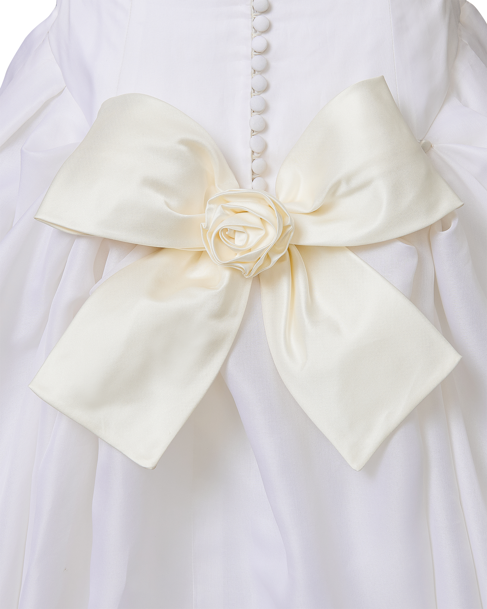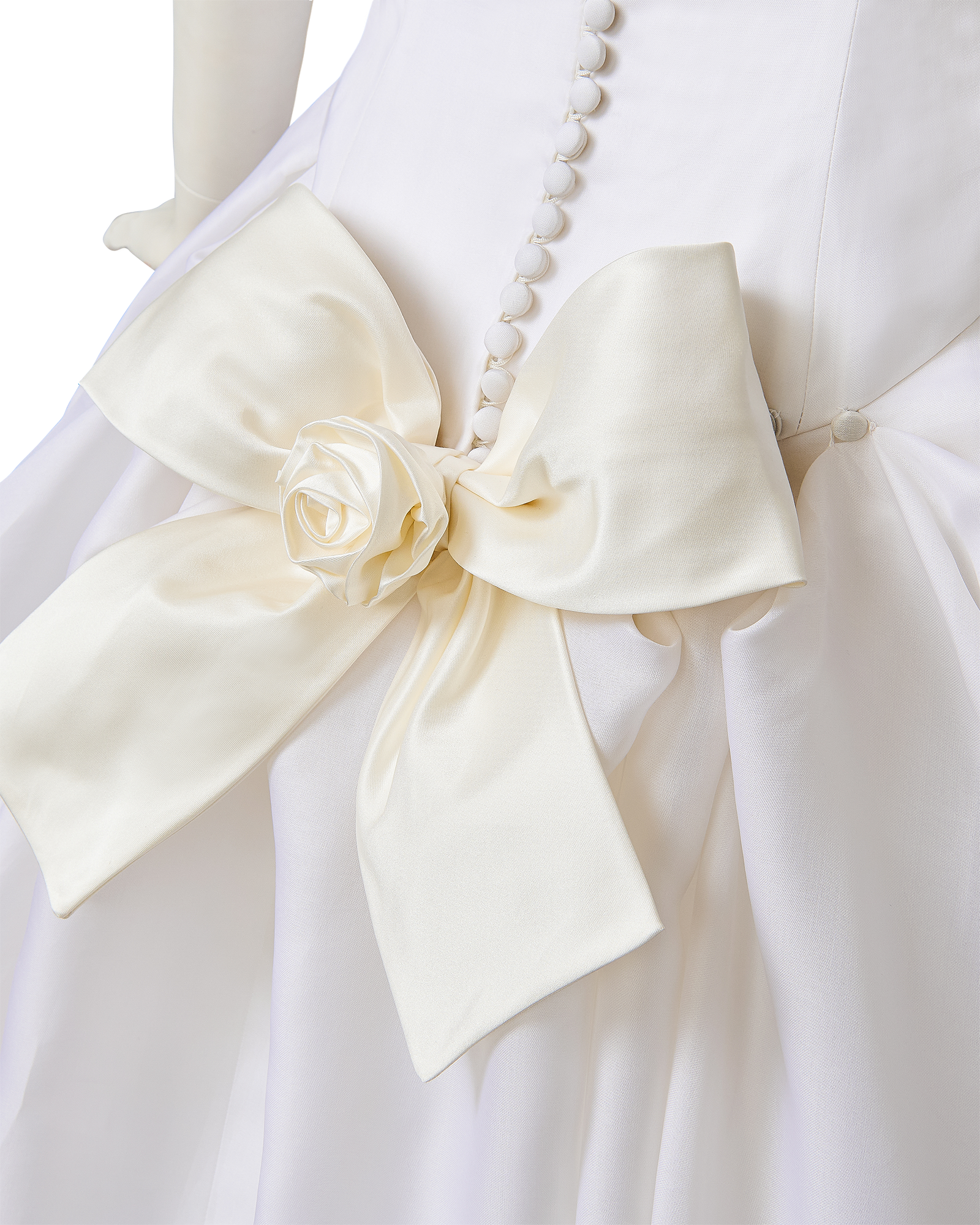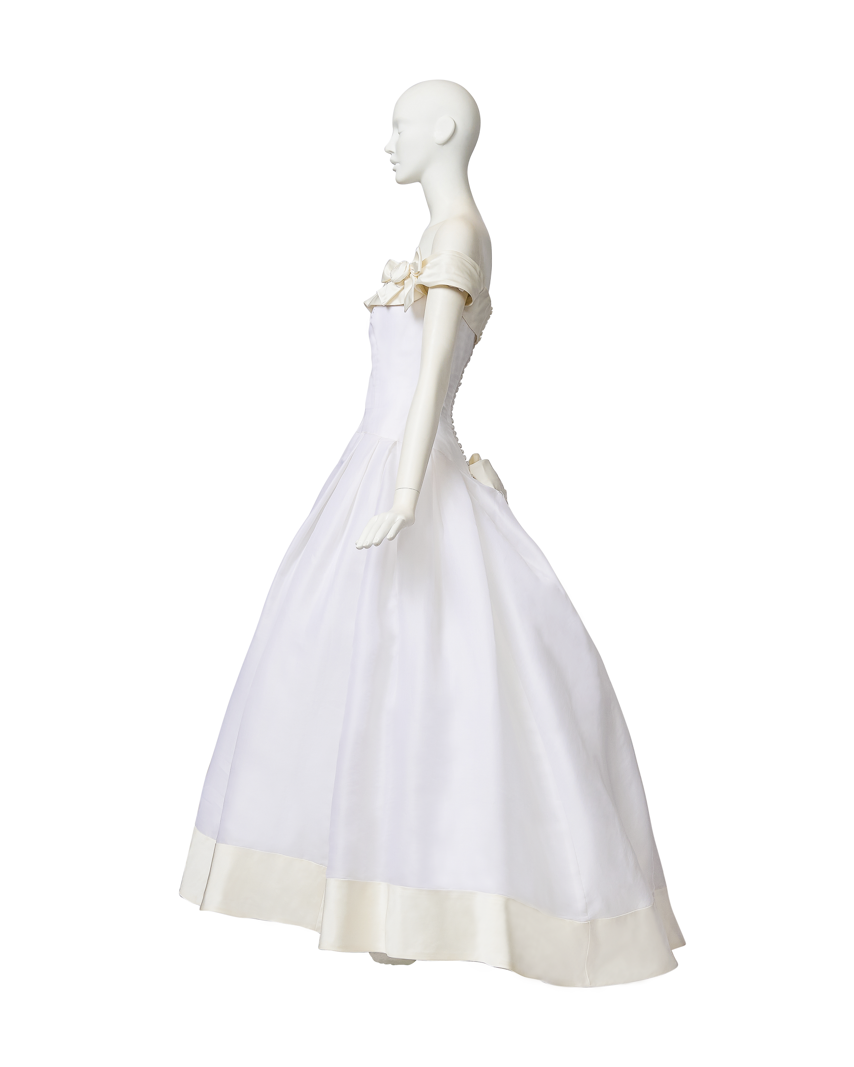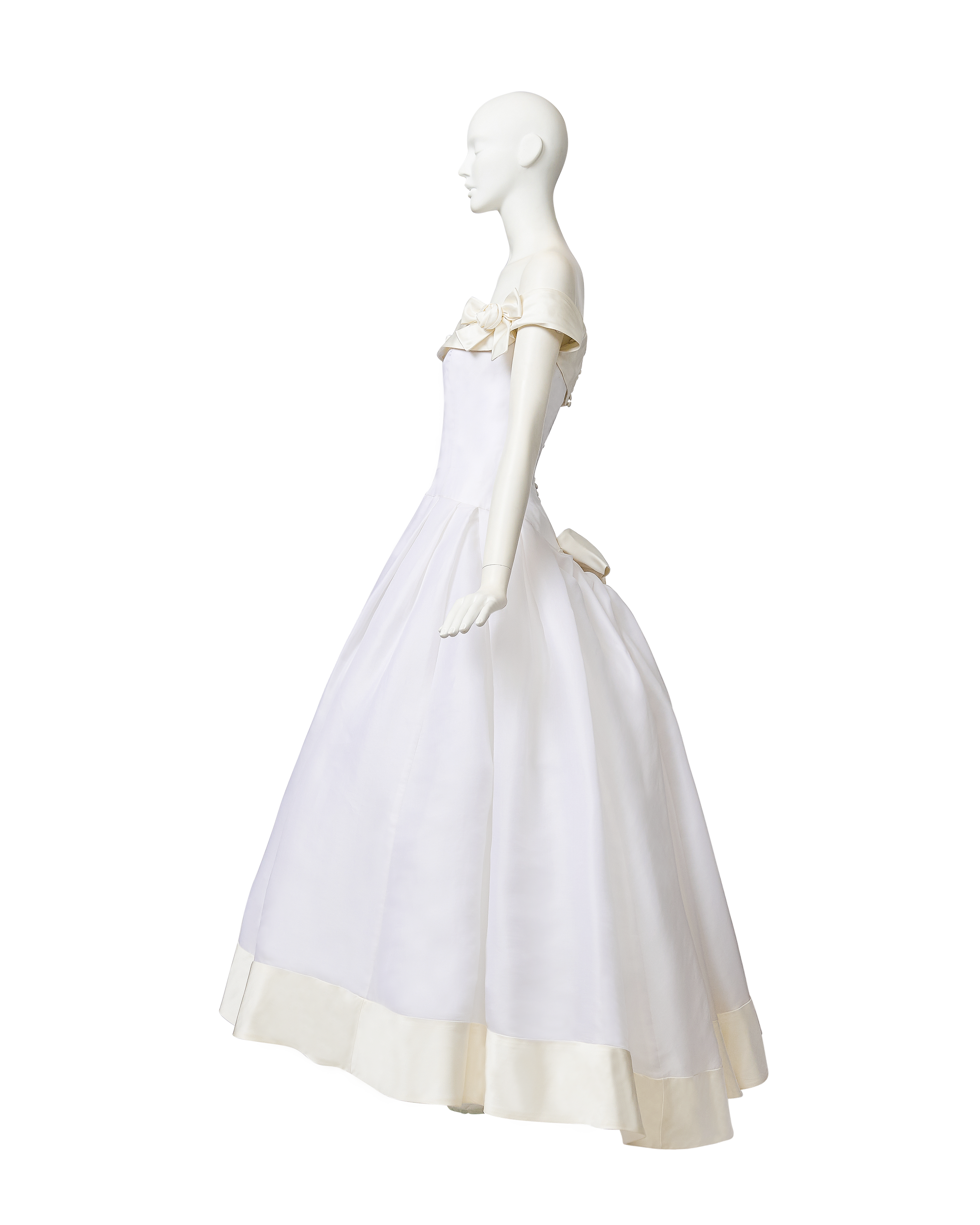 1999 Off-Shoulder Ivory Ballgown with Ecru Bow Details