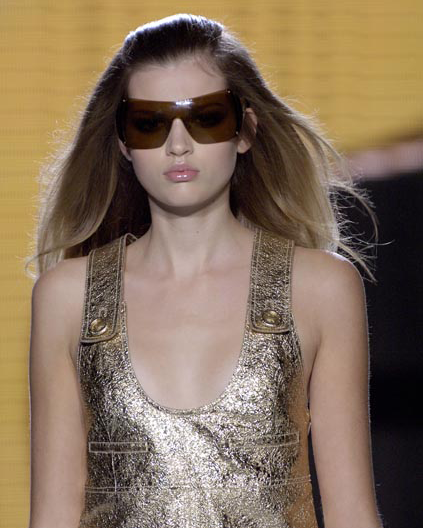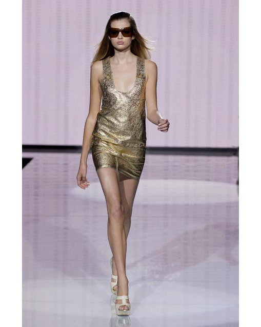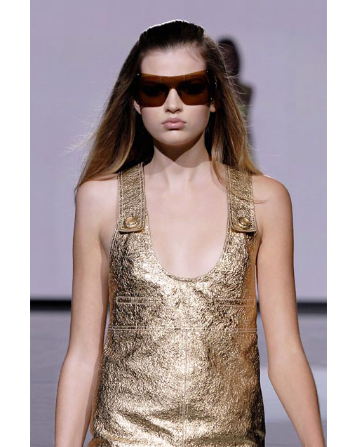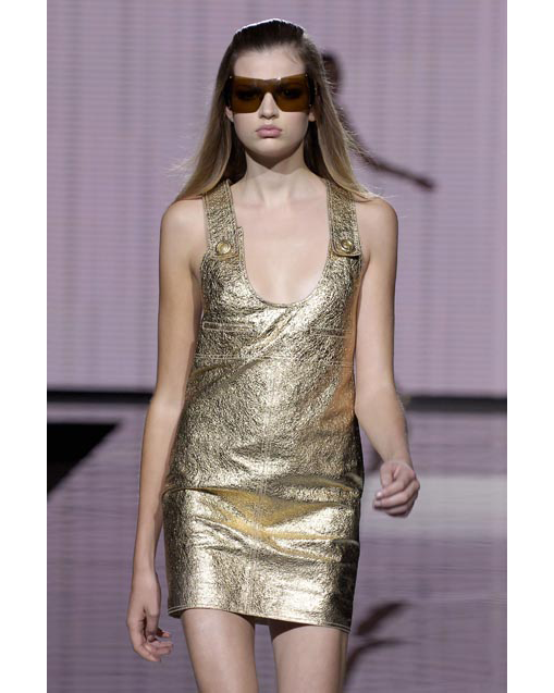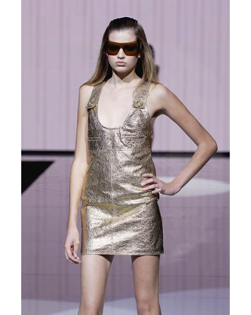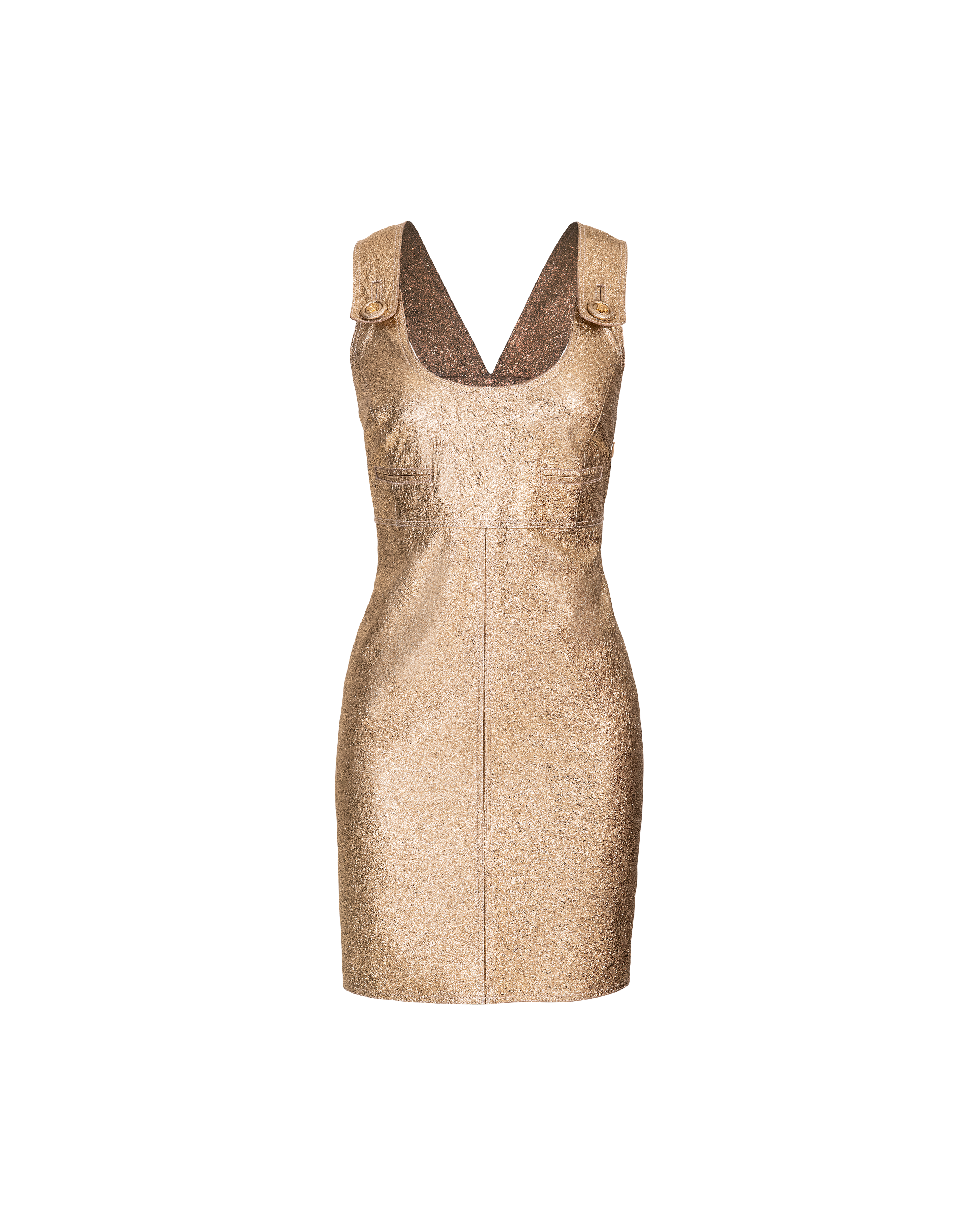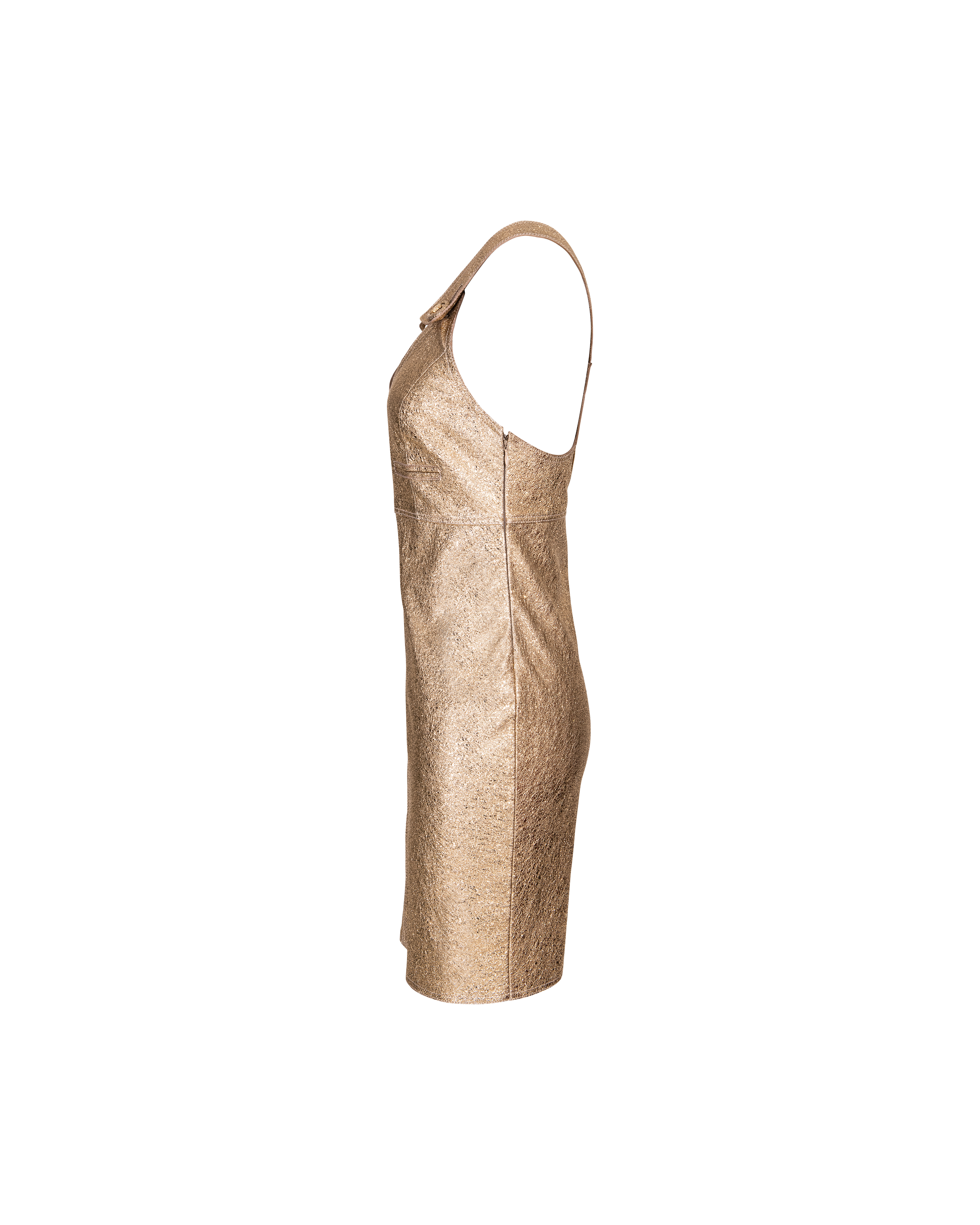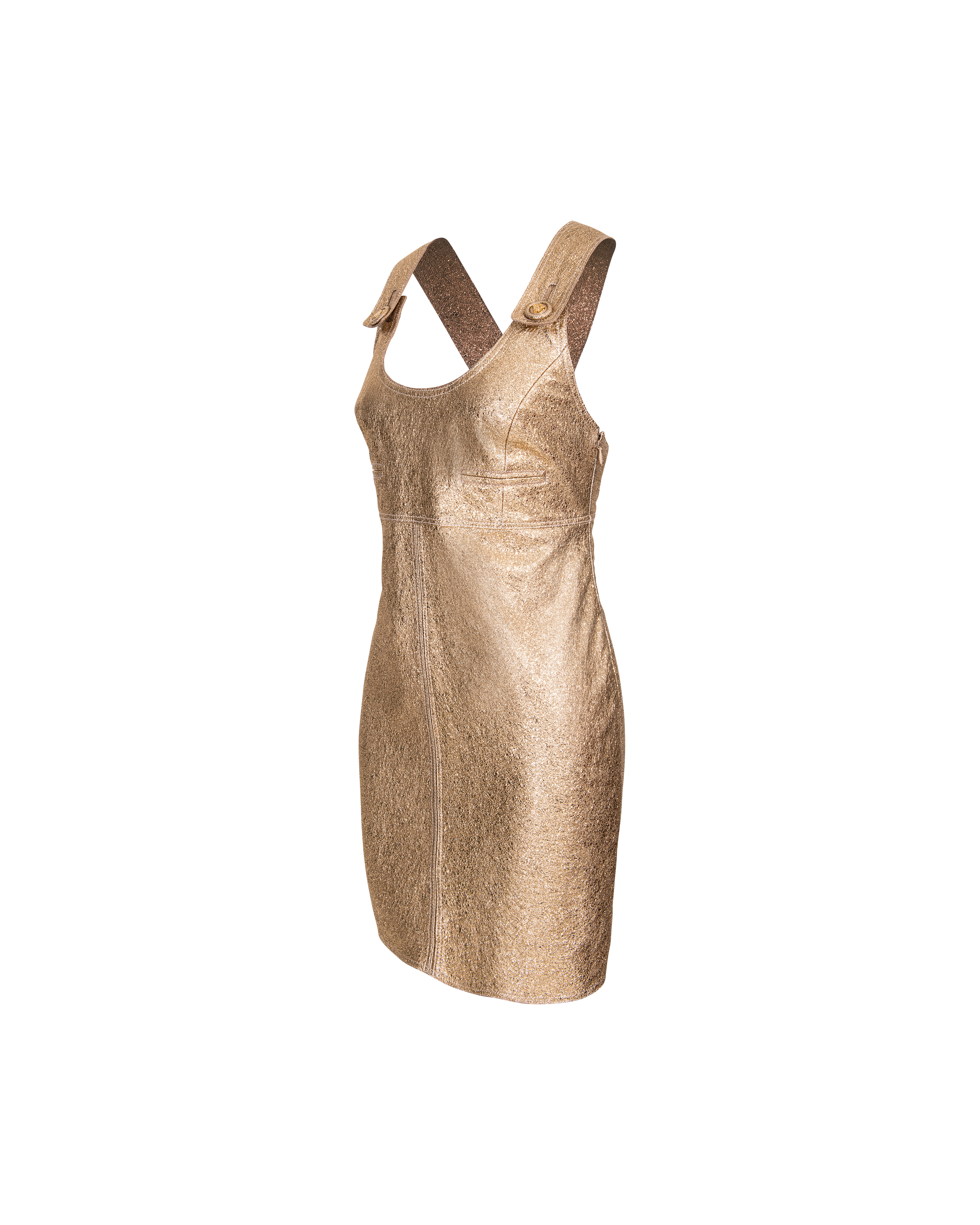 S/S 2007 Metallic Gold Leather 'Overall' Motif Mini Dress