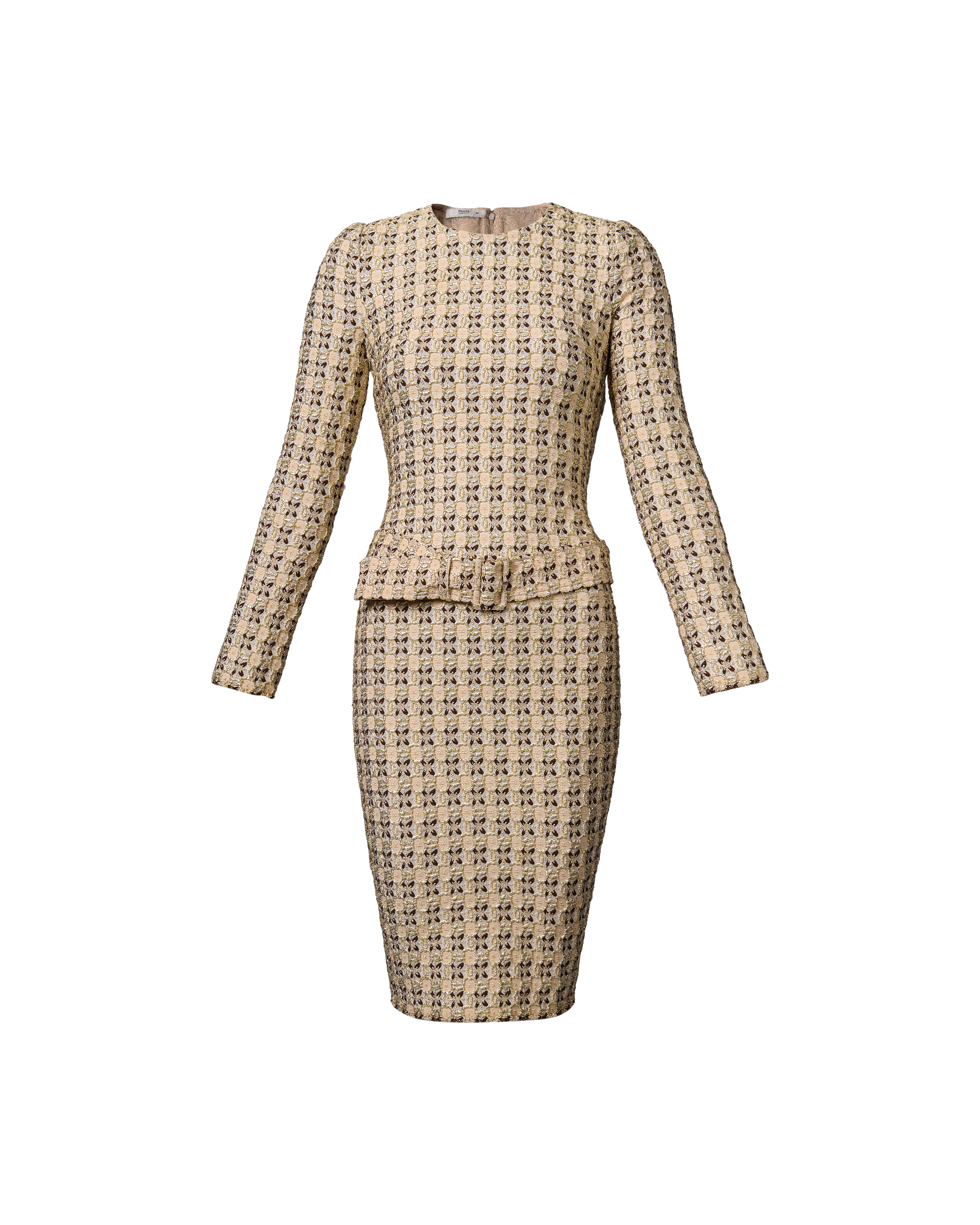 S/S 2002 Gold Brocade Long Sleeve Dress and Belt